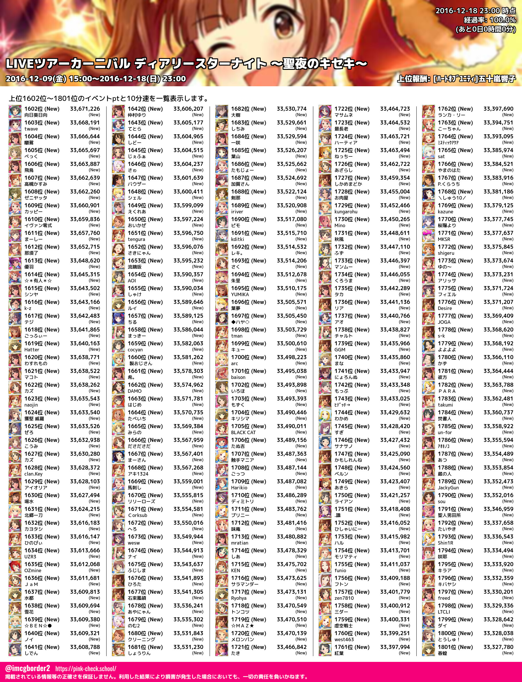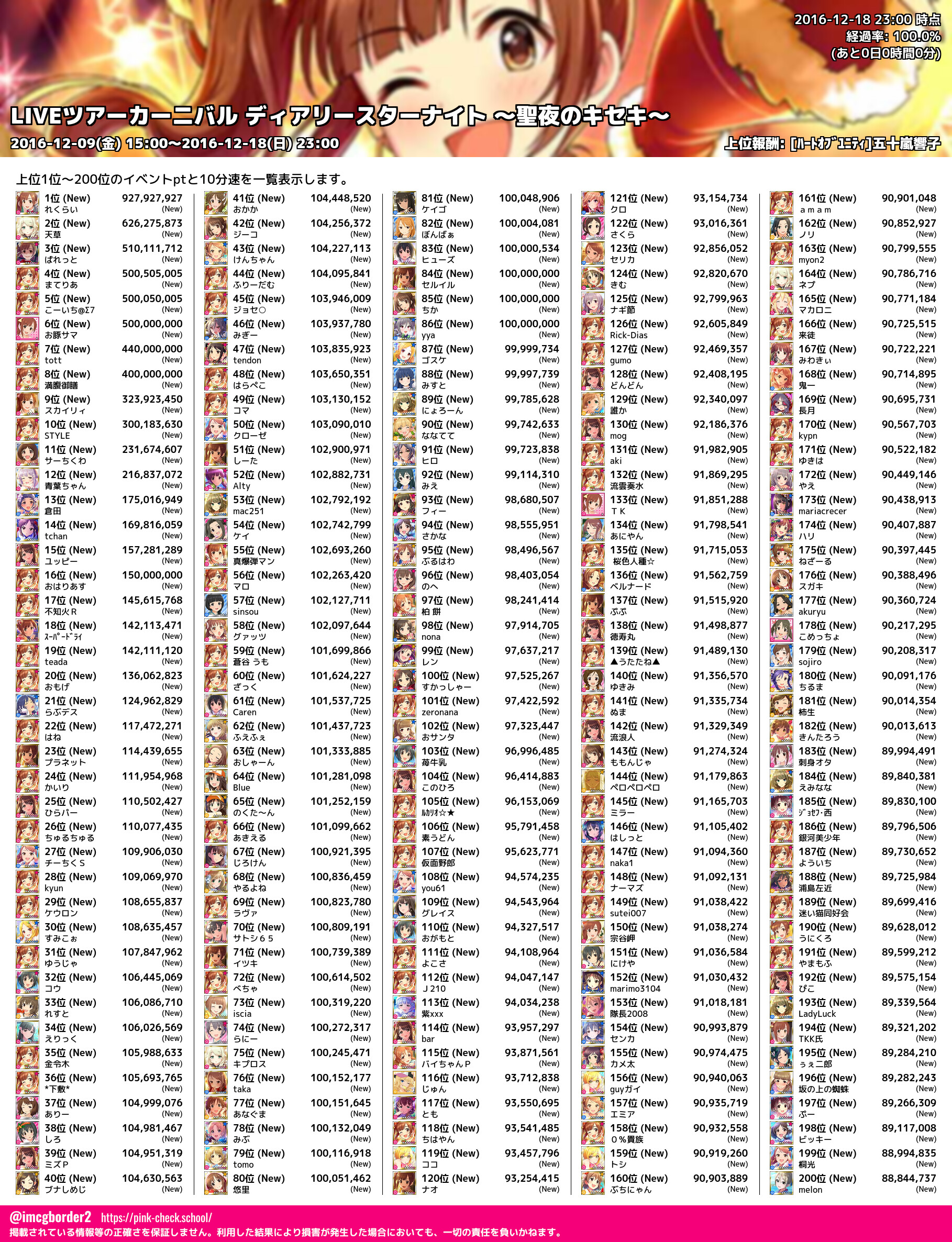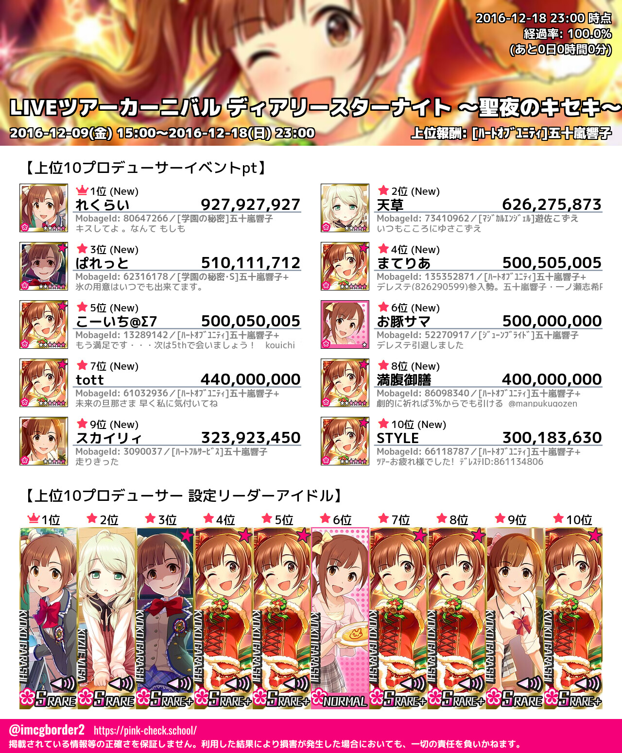 上位プロデューサースコア (2016-12-18 23:00 時点)
