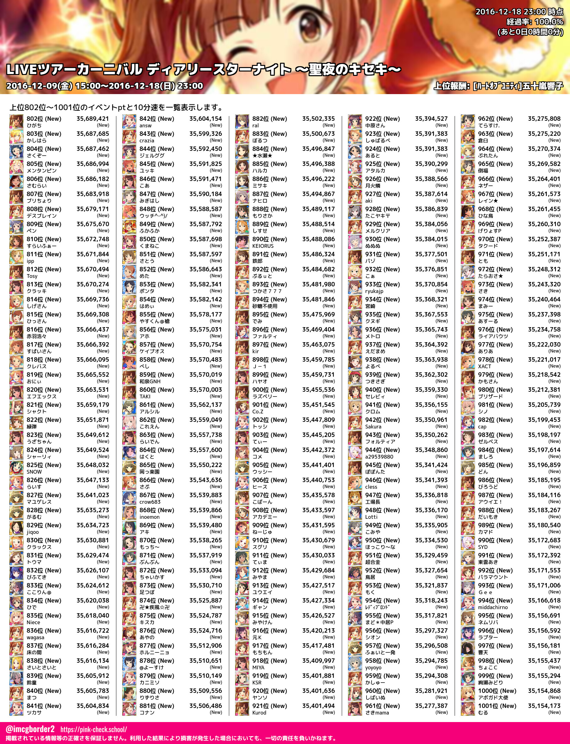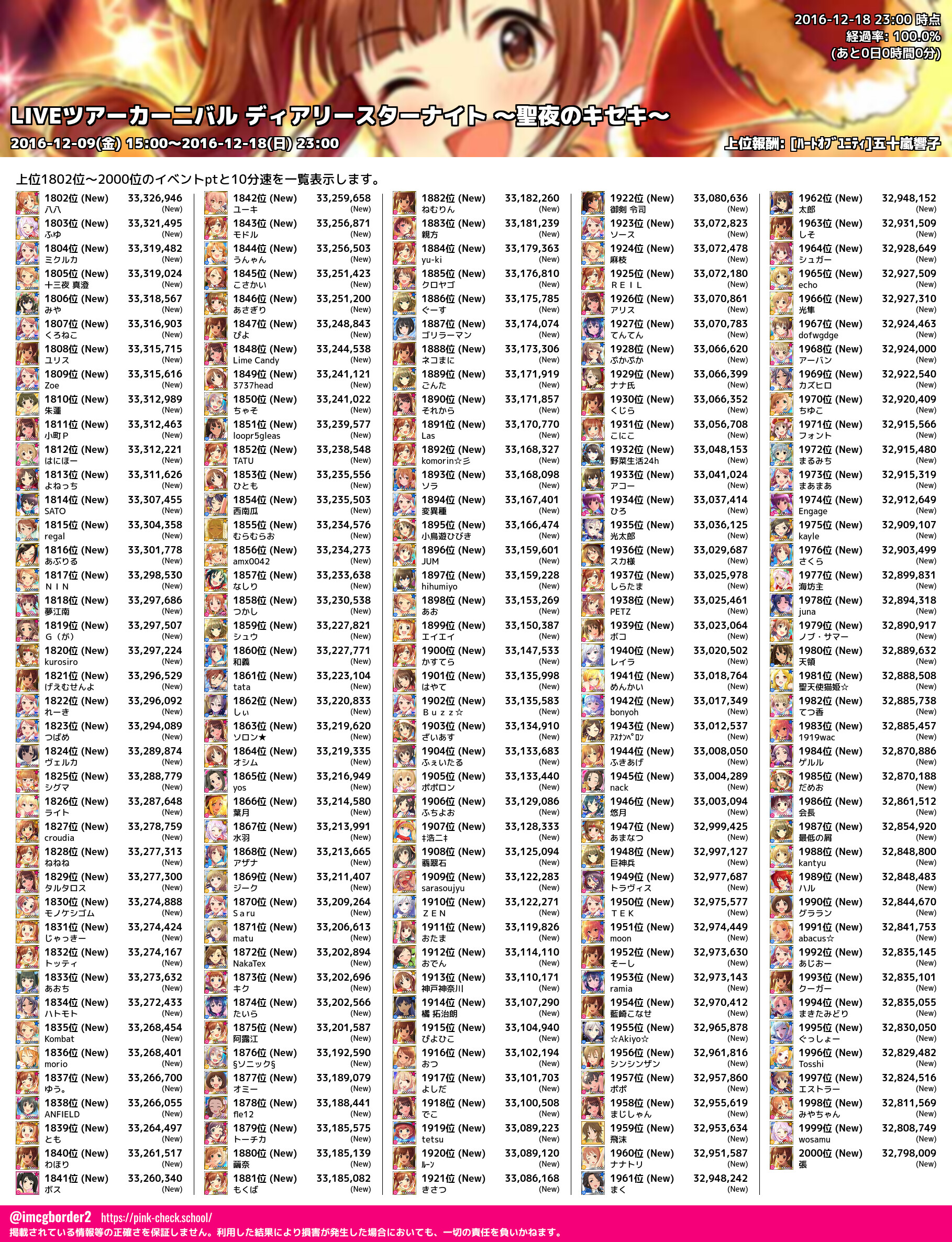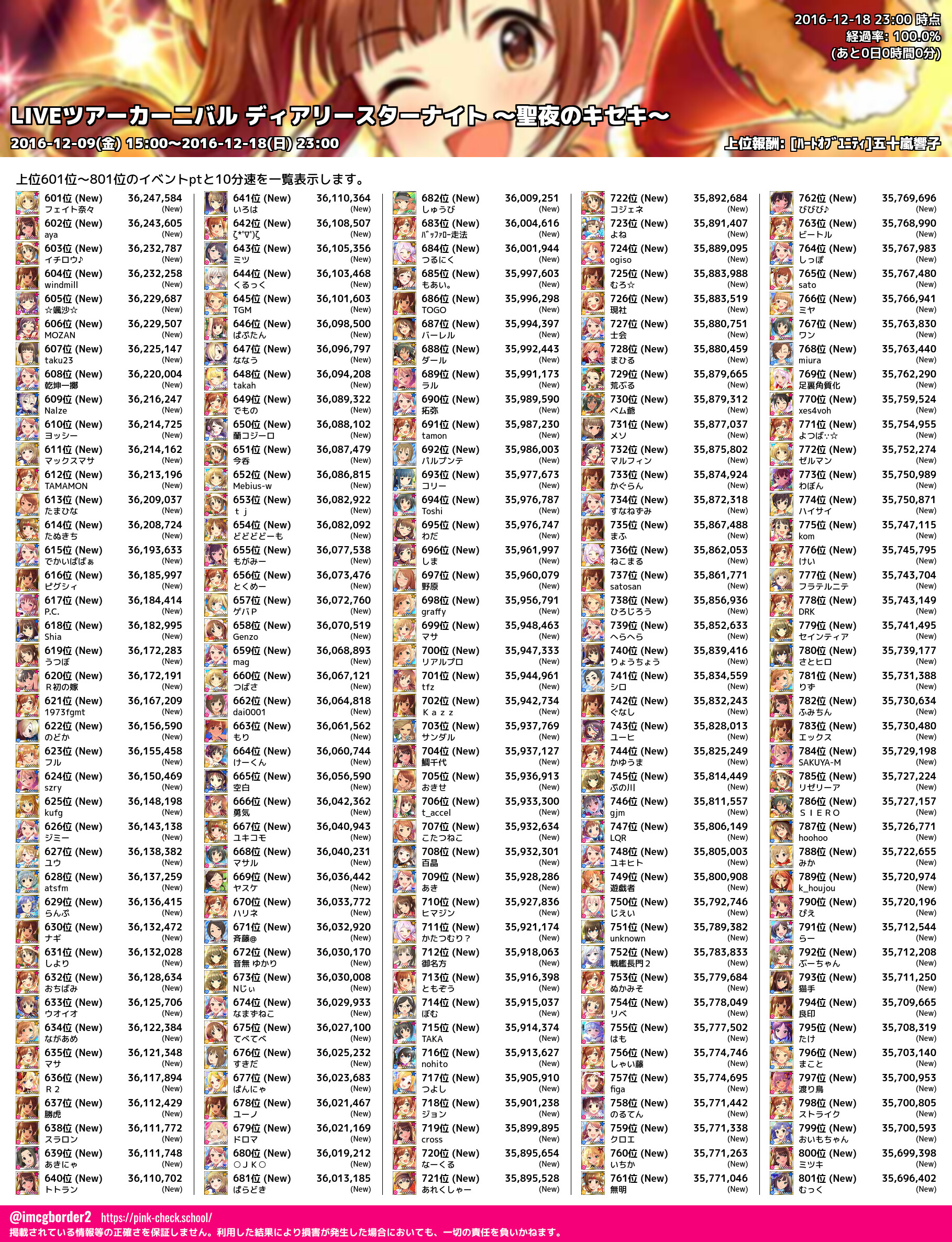 上位プロデューサースコア (2016-12-18 23:00 時点)