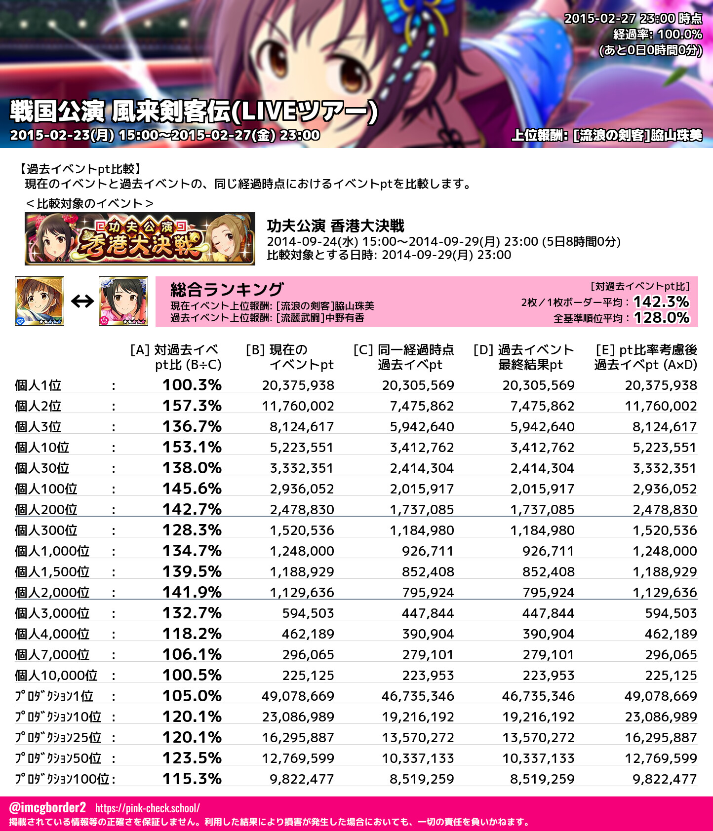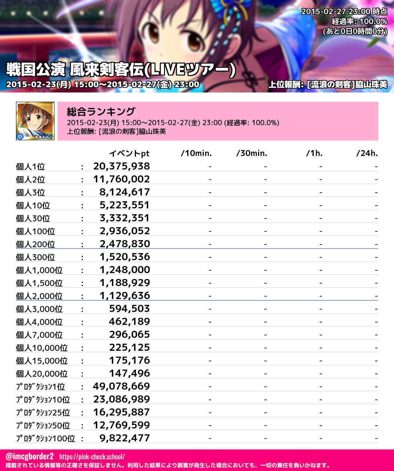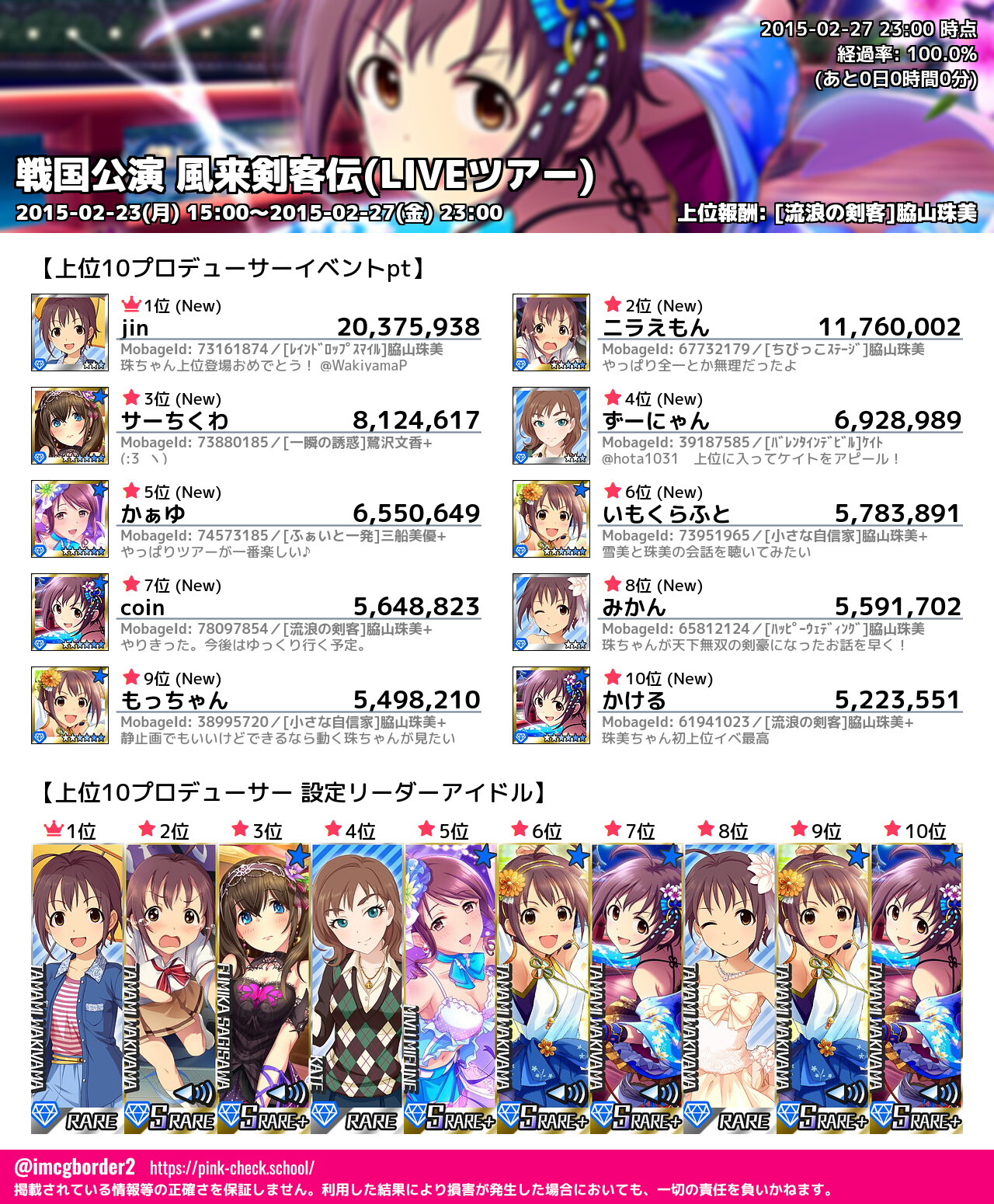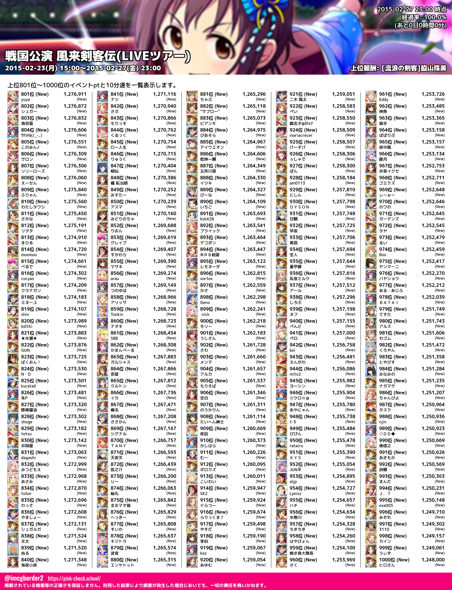 上位プロデューサースコア (2015-02-27 23:00 時点)