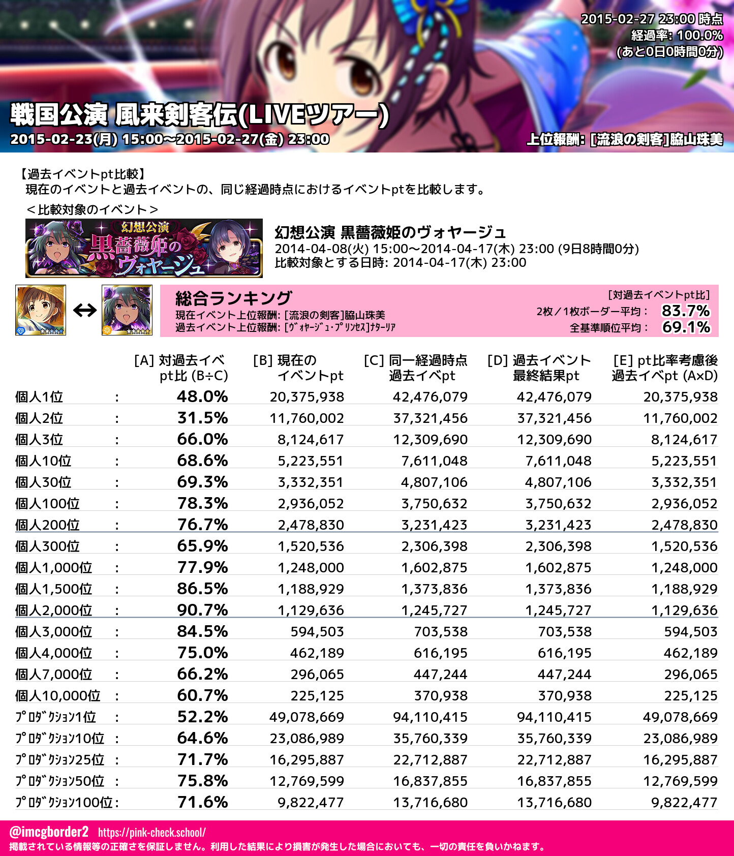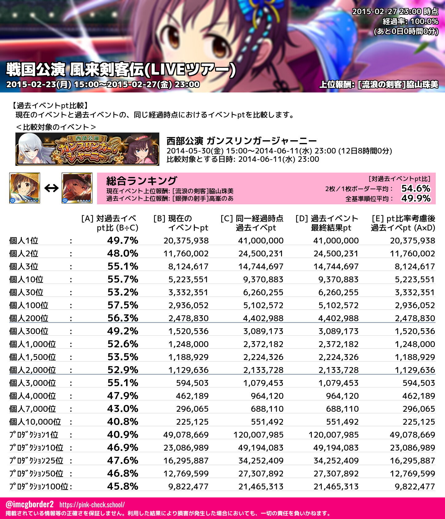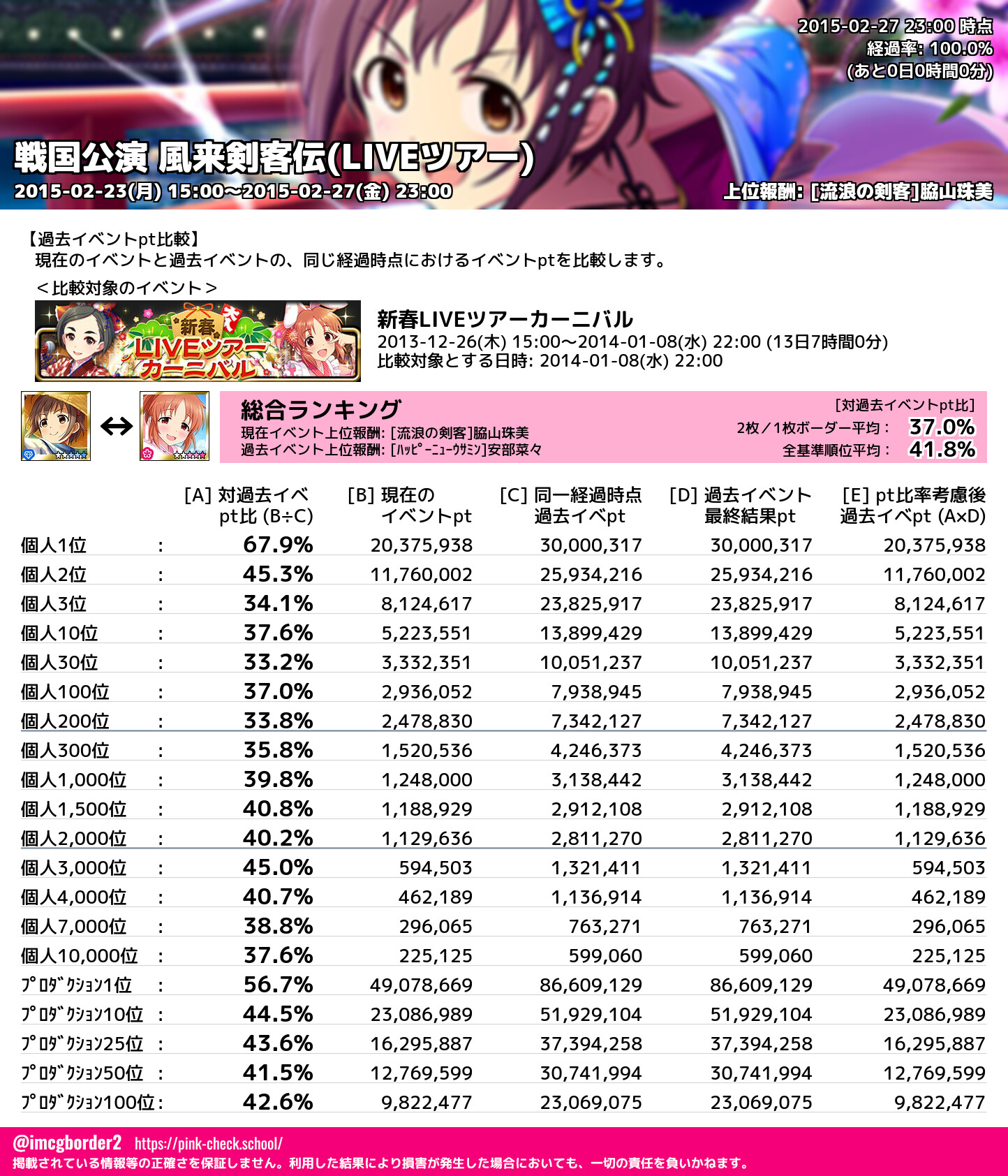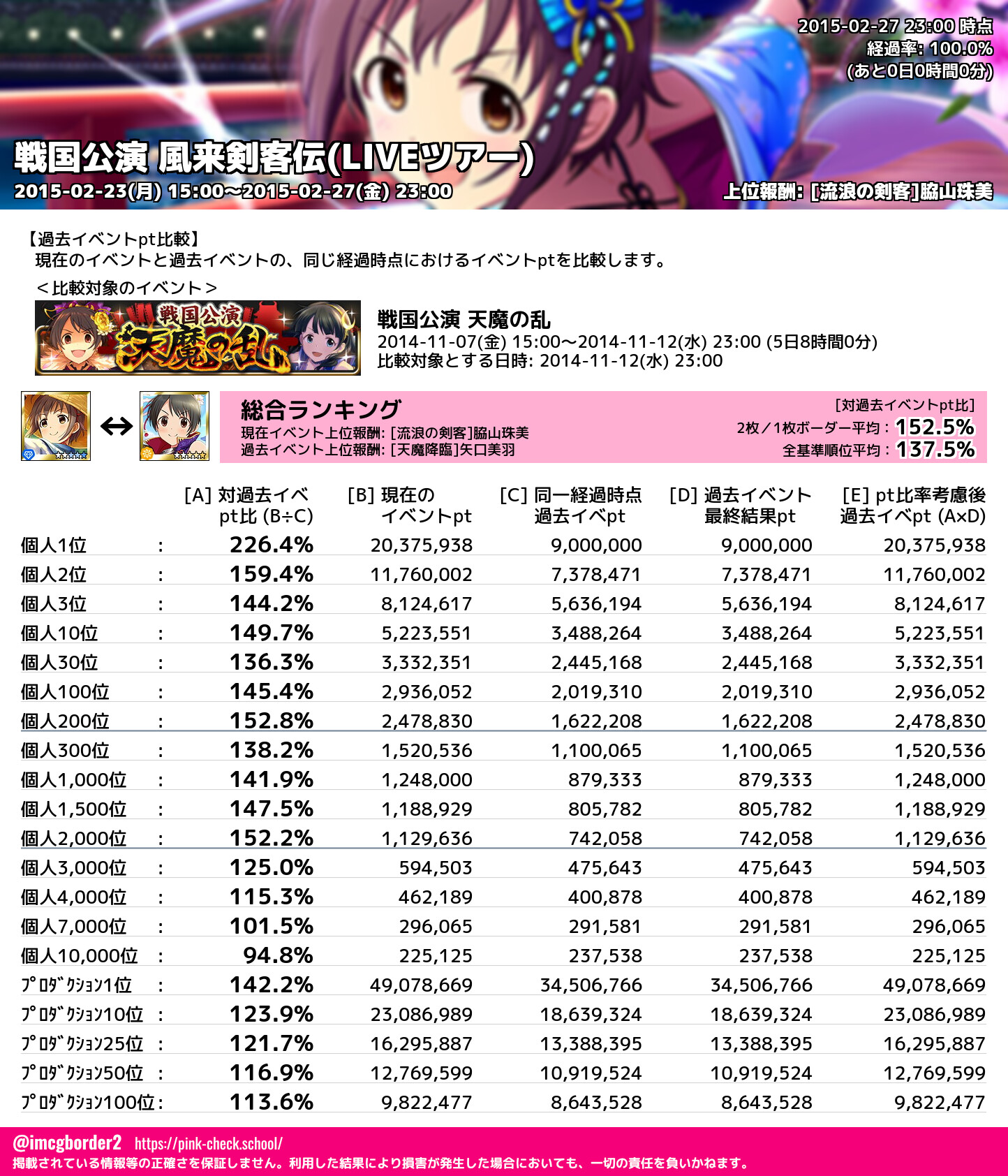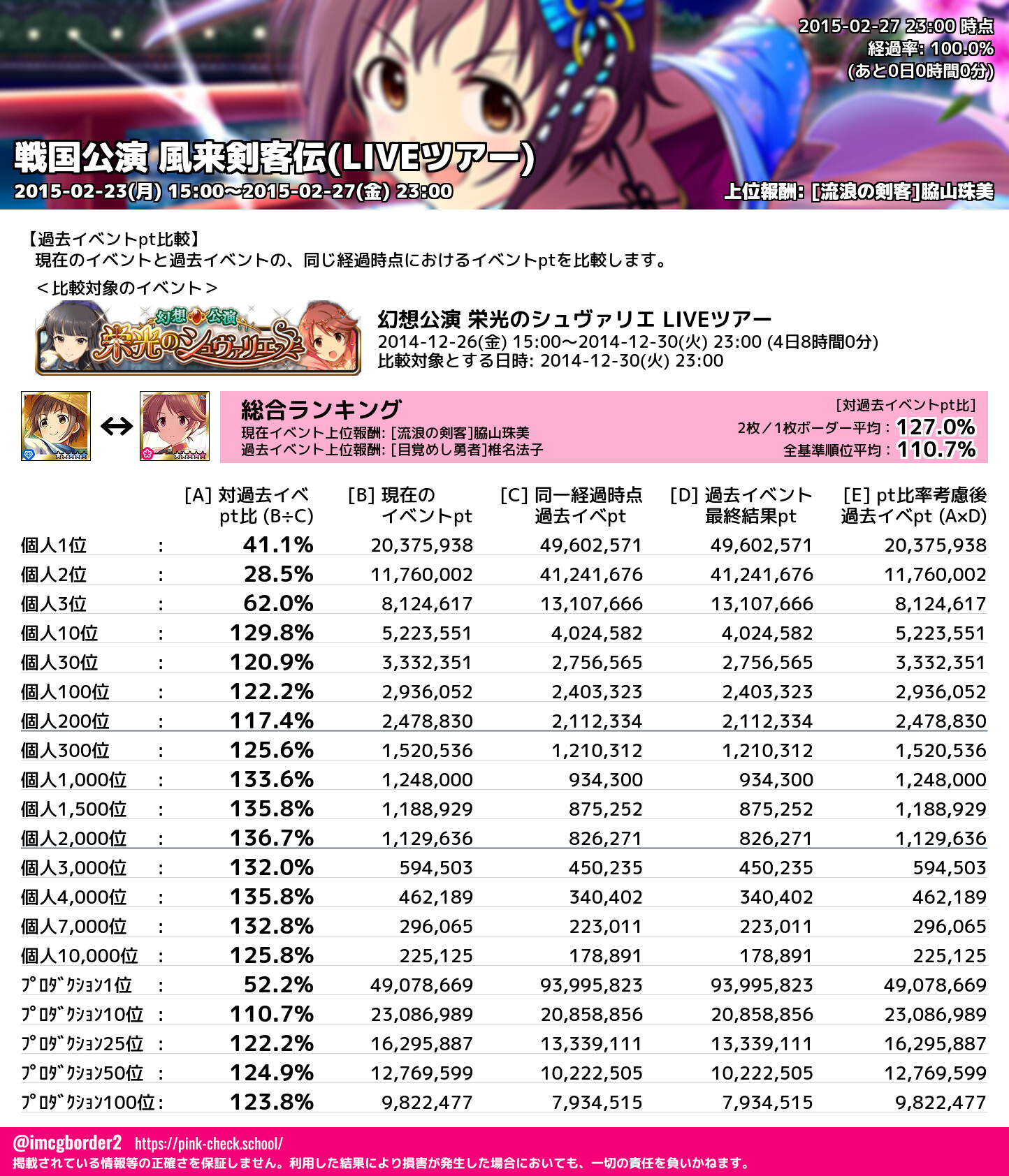 上位プロデューサースコア (2015-02-27 23:00 時点)