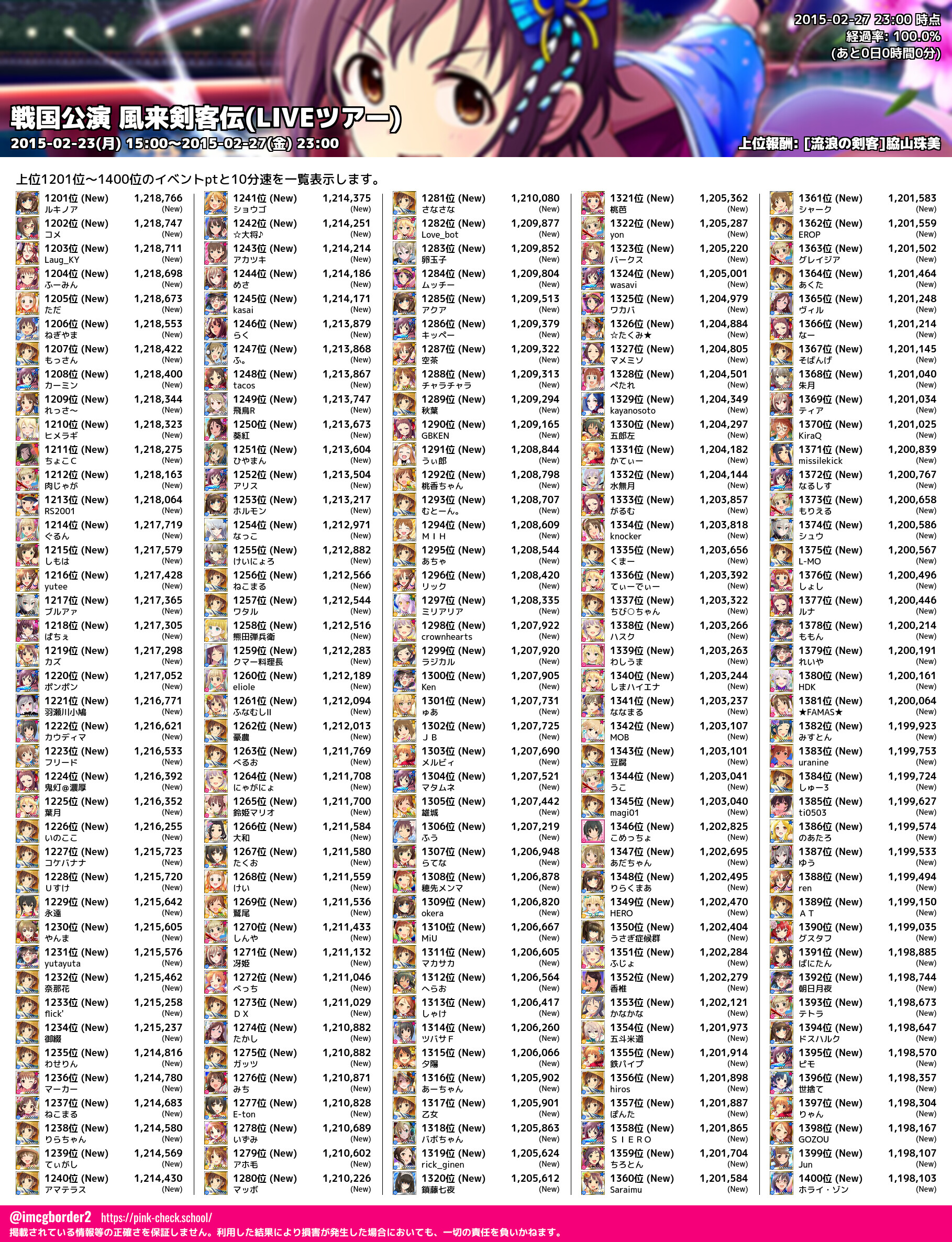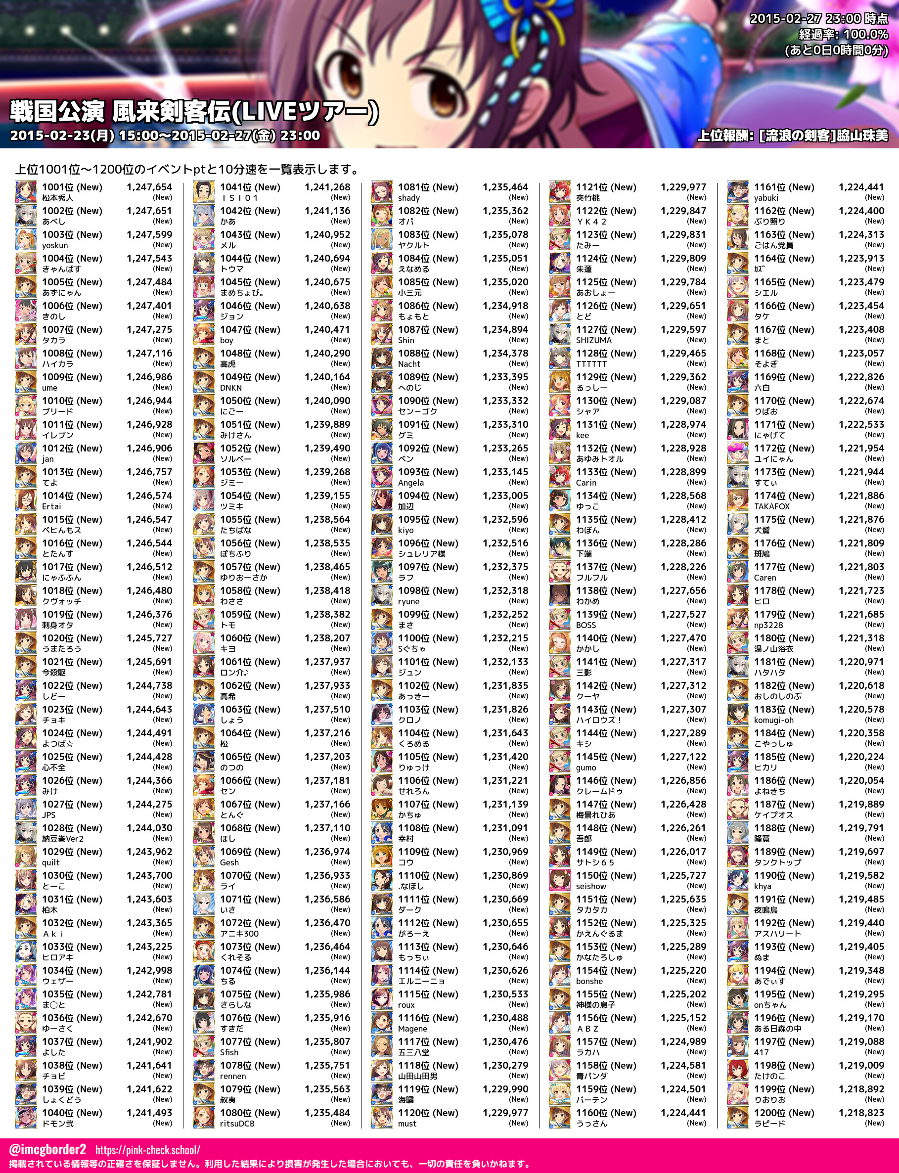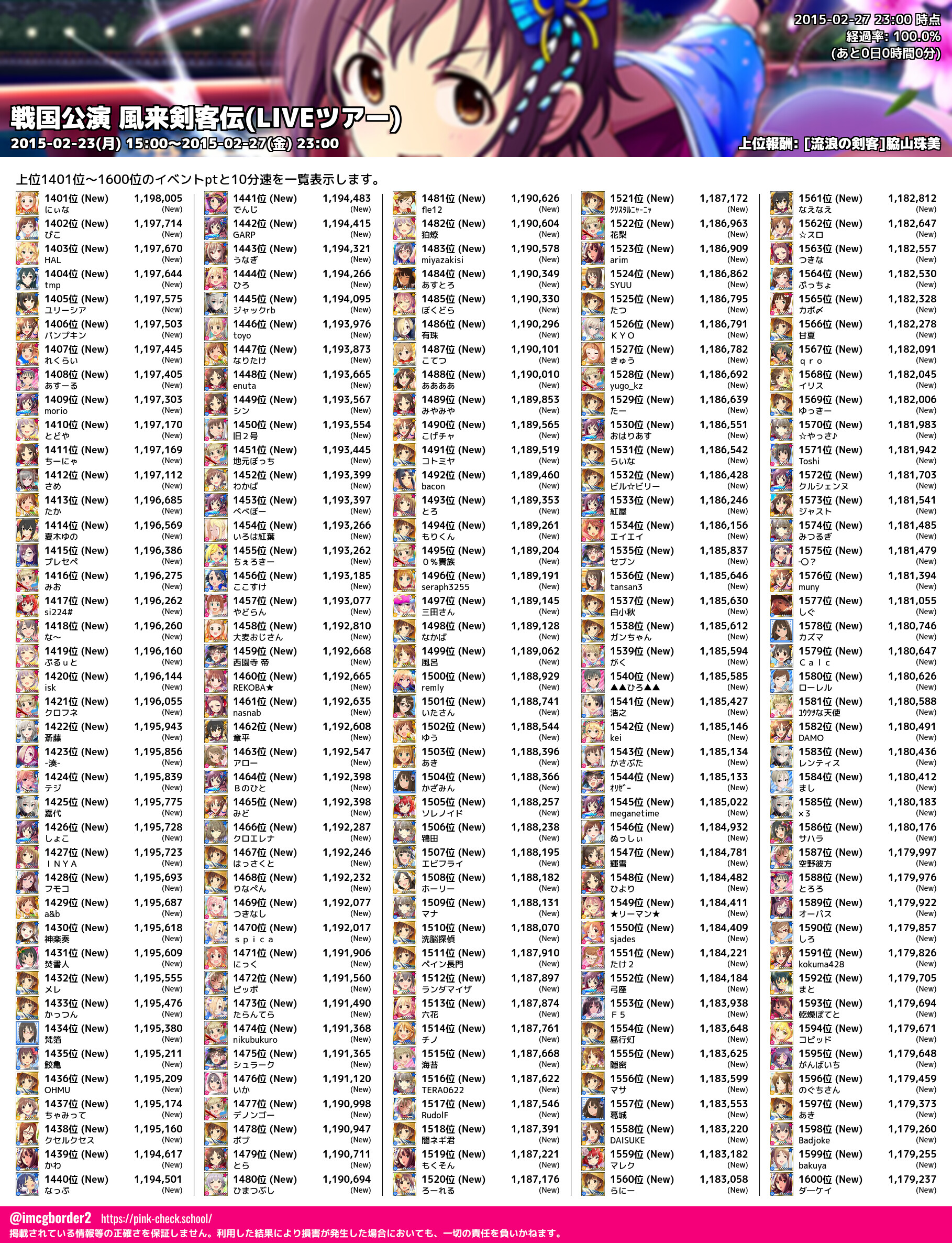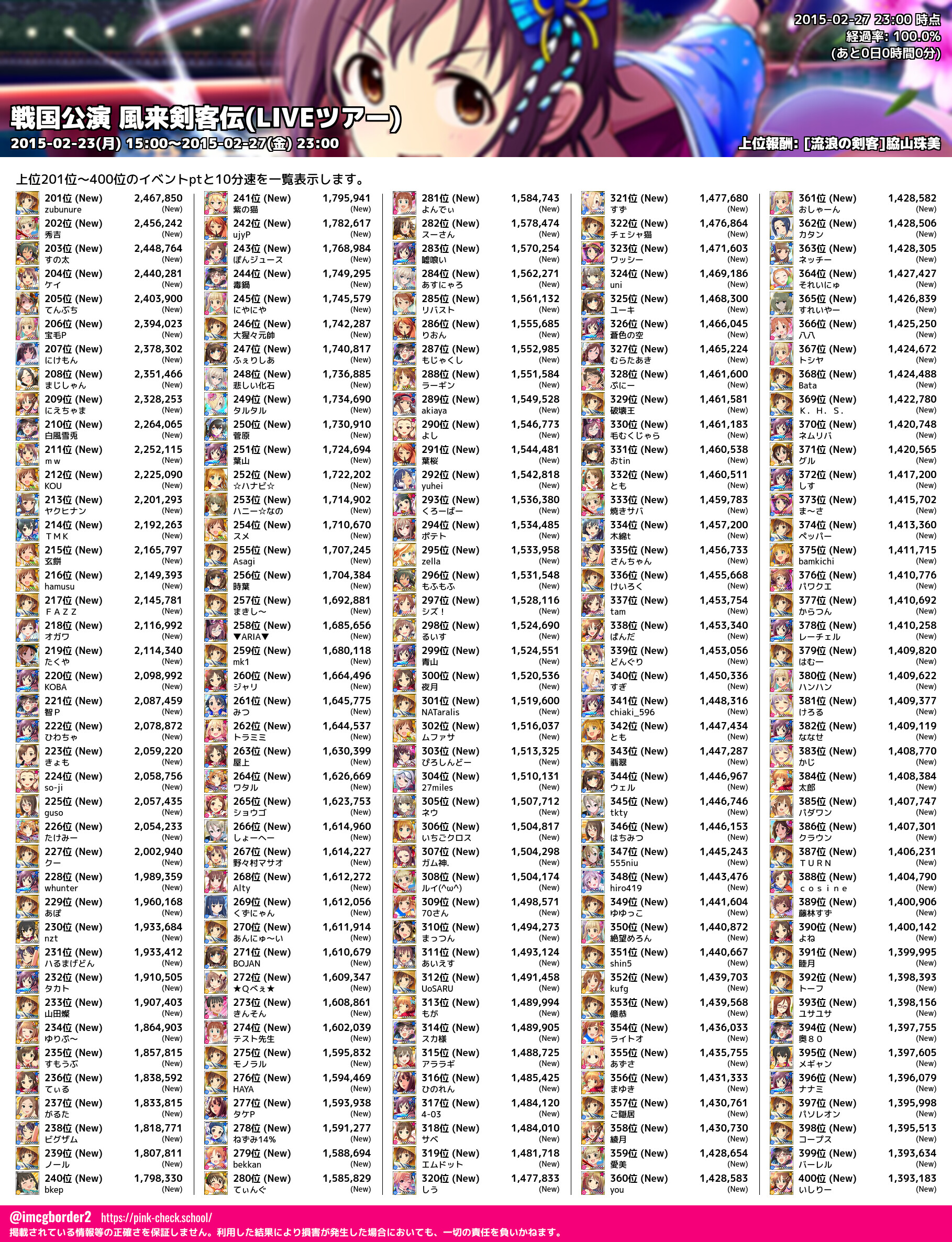 | 開催期間 | 2015-02-23(月) 15:00~2015-02-27(金) 23:00 |