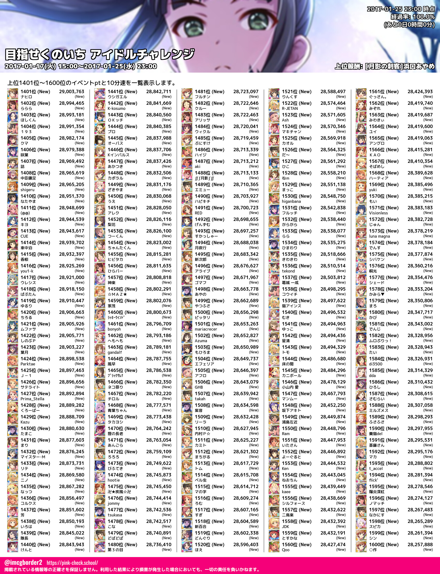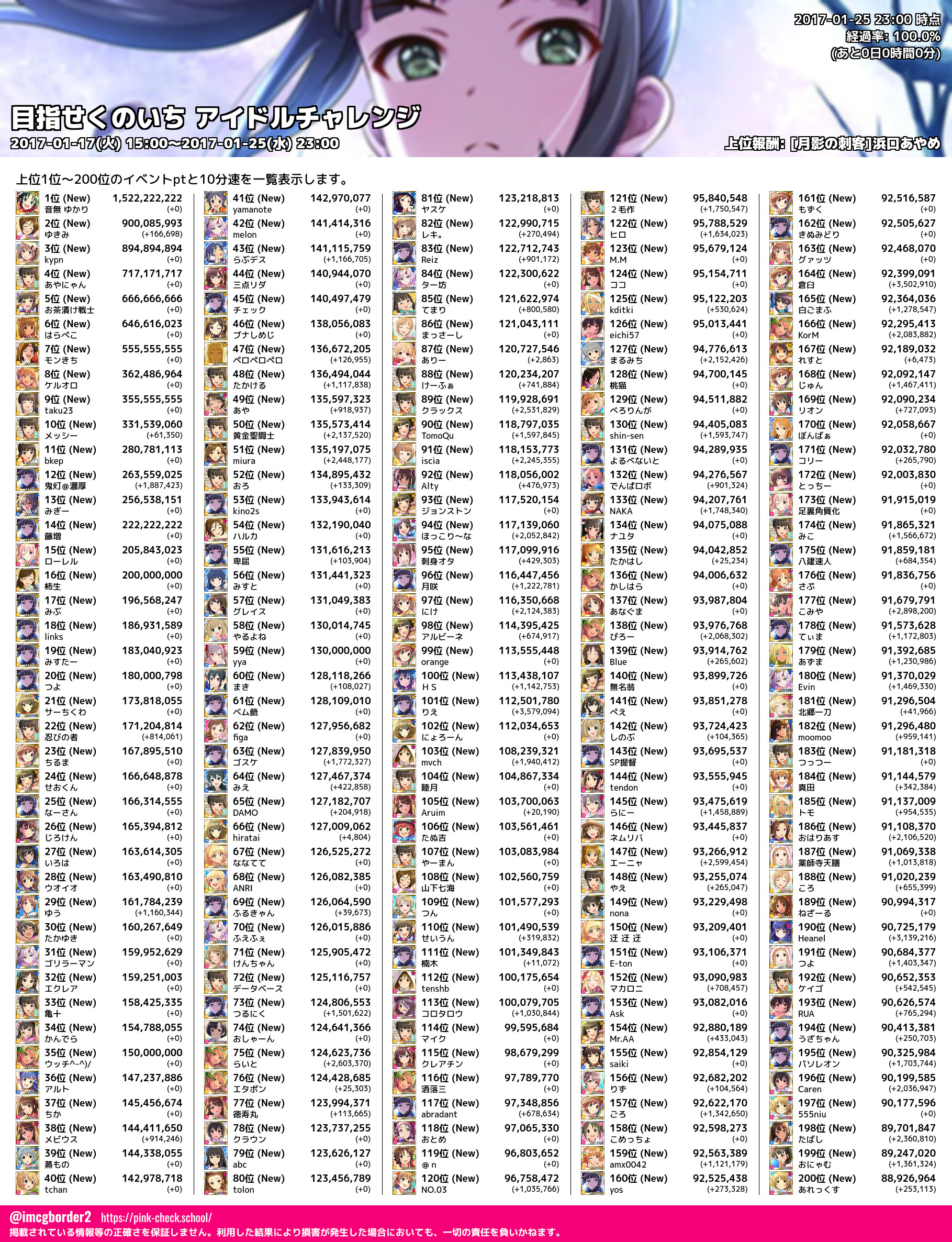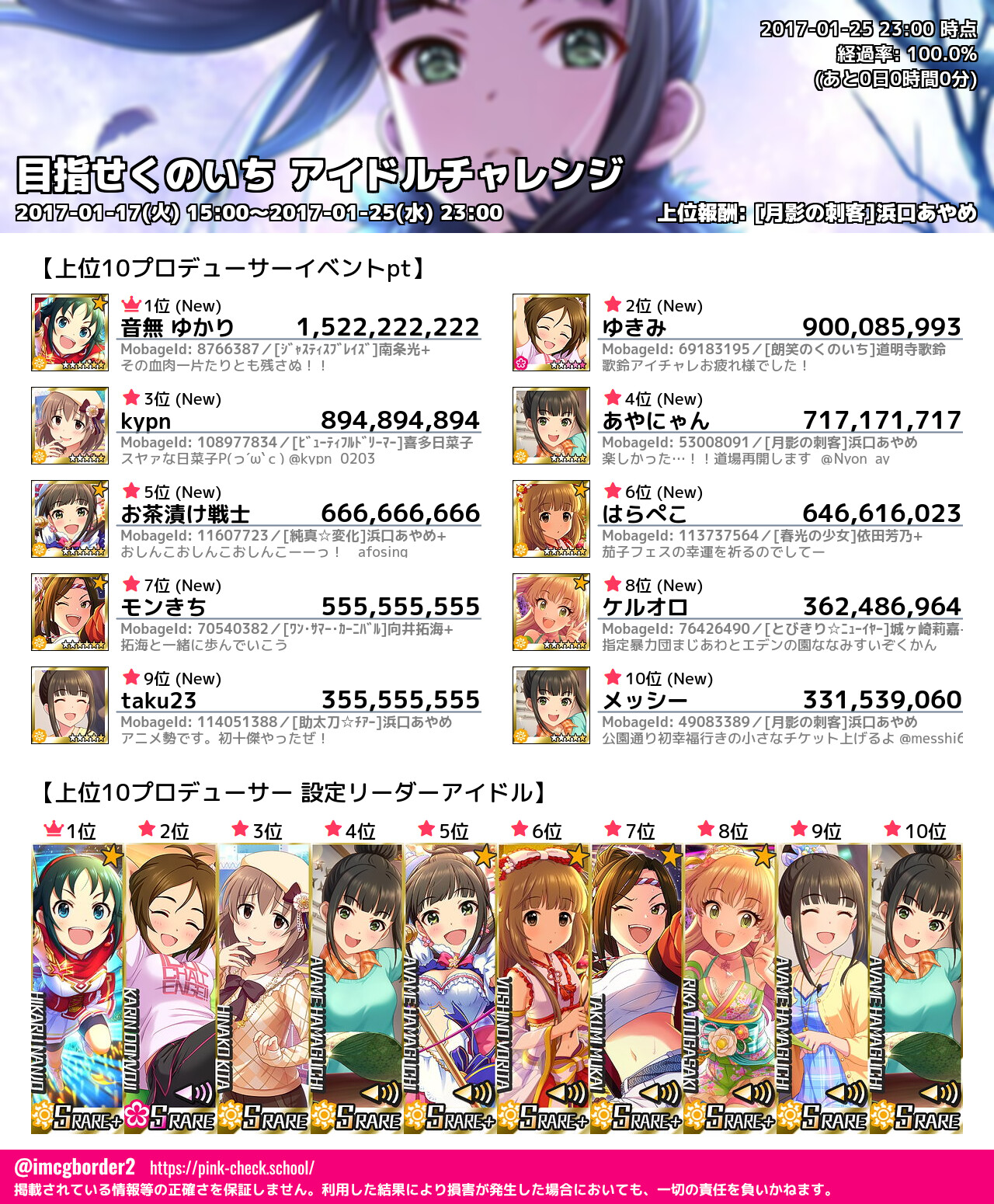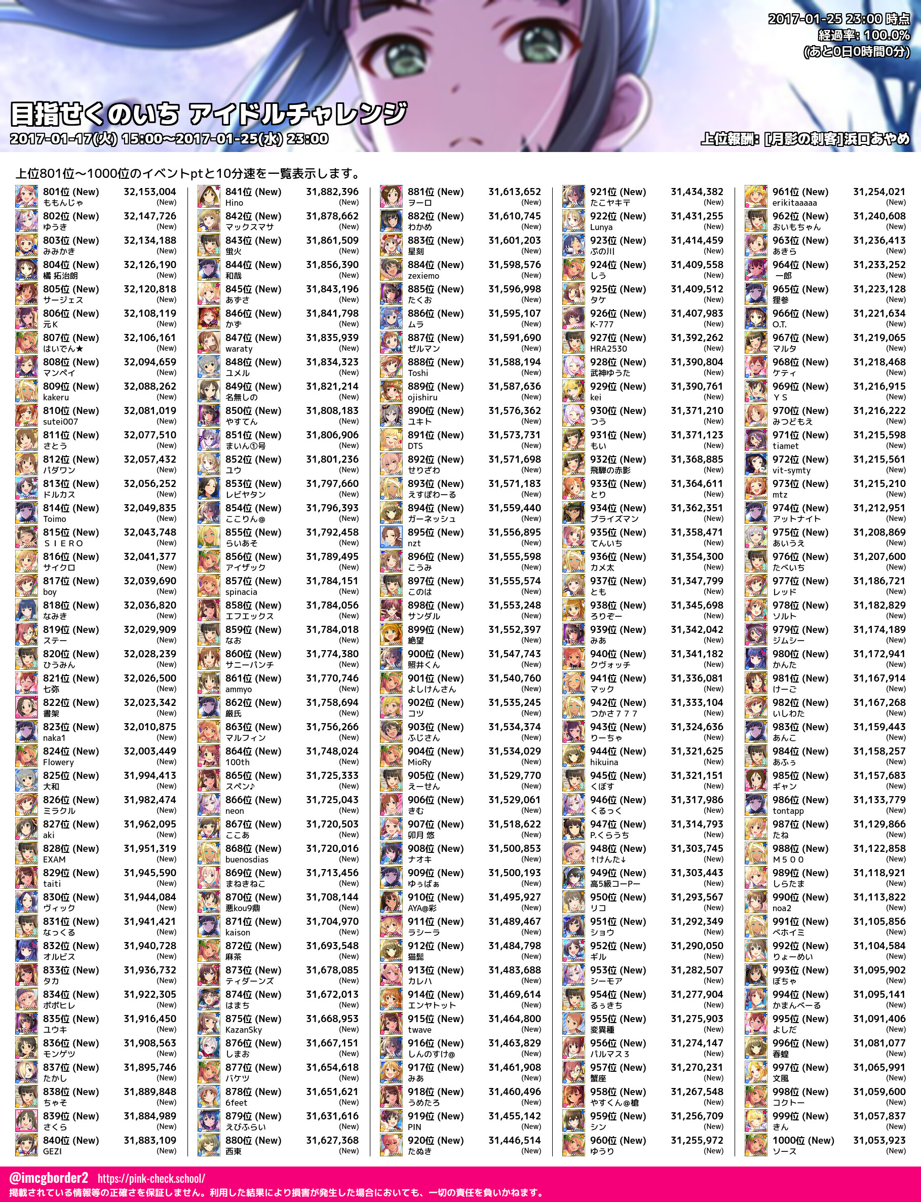 上位プロデューサースコア (2017-01-25 23:00 時点)