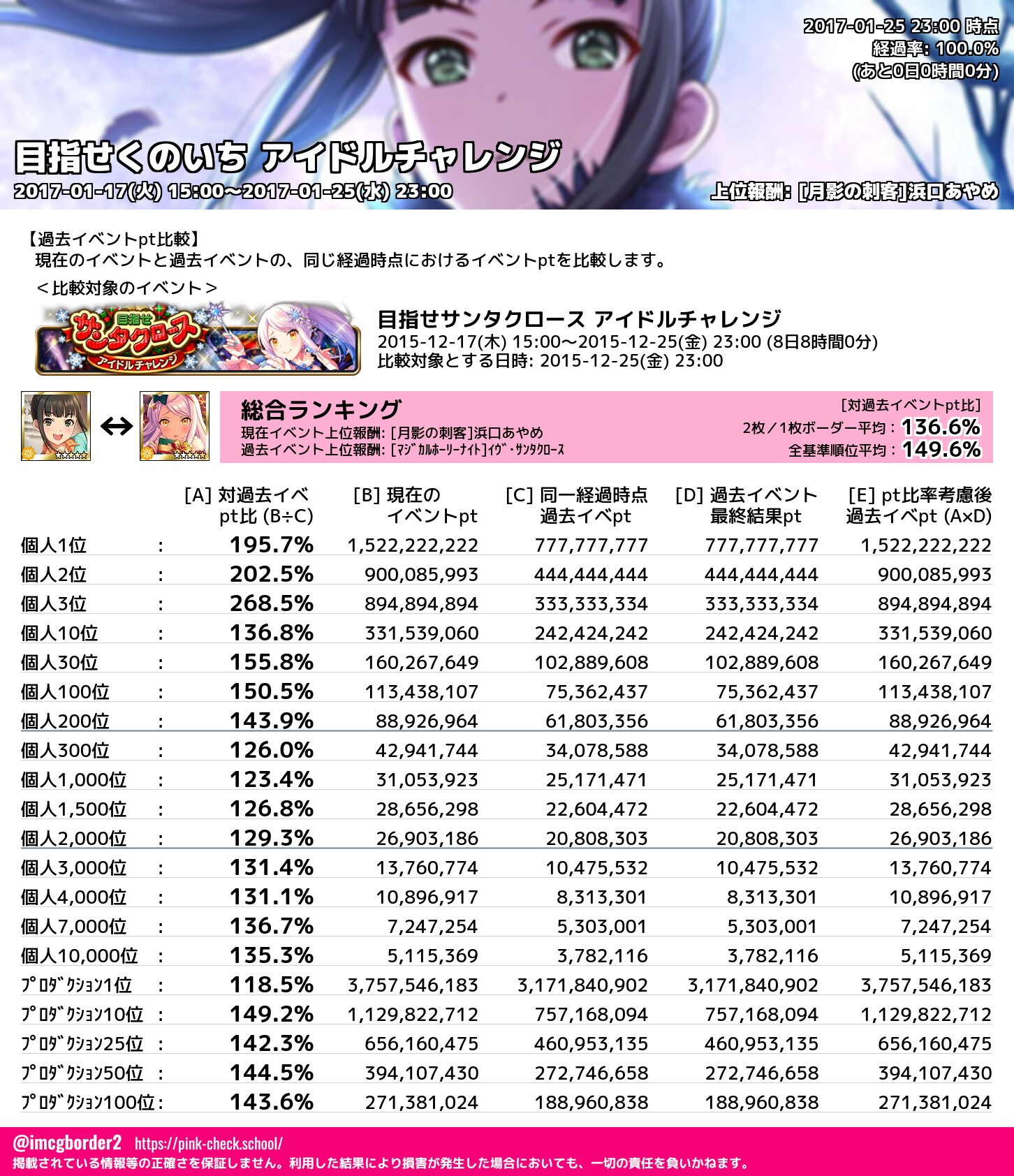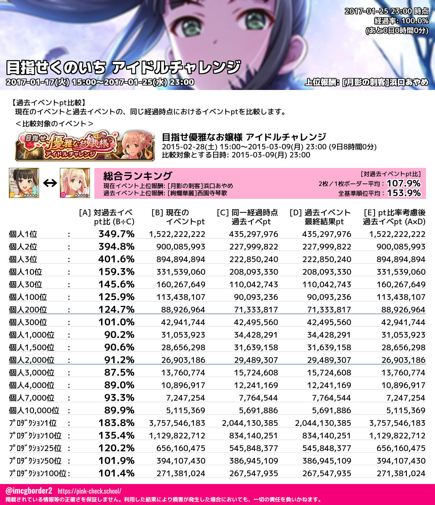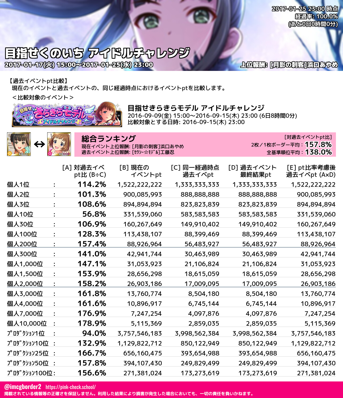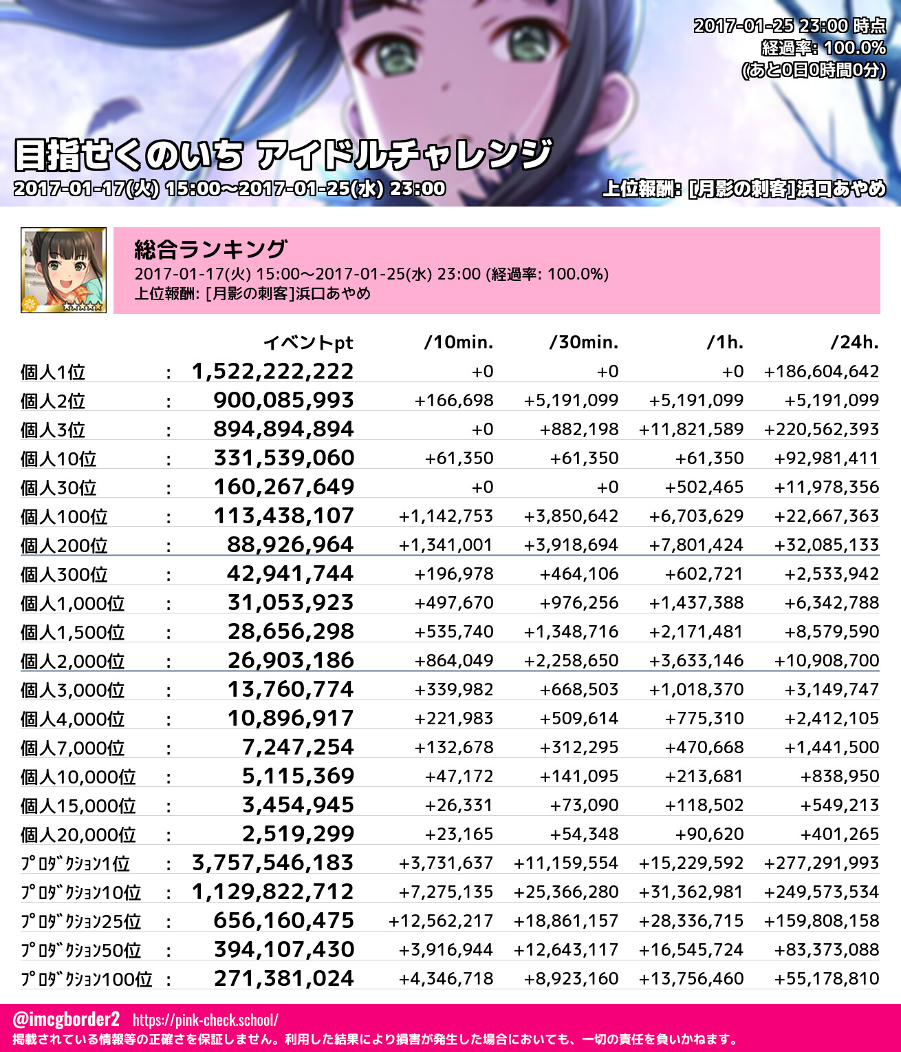上位プロデューサースコア (2017-01-25 23:00 時点)