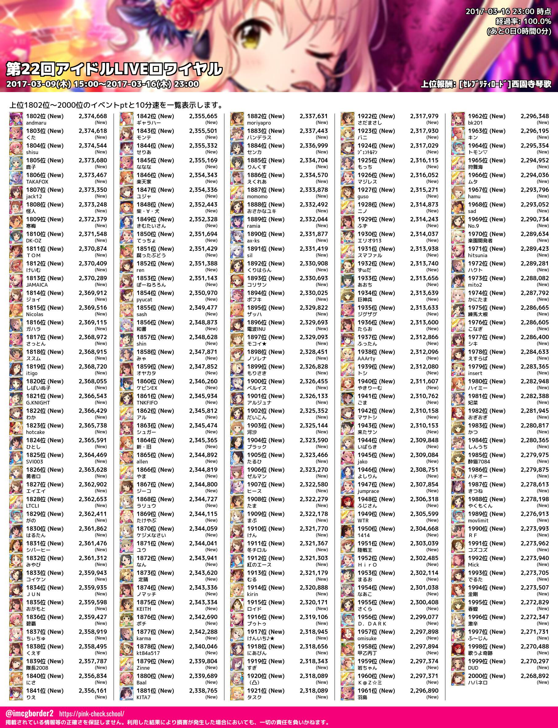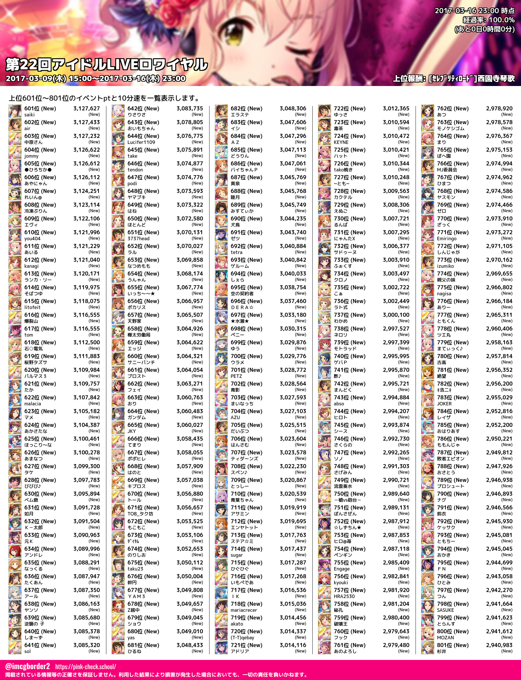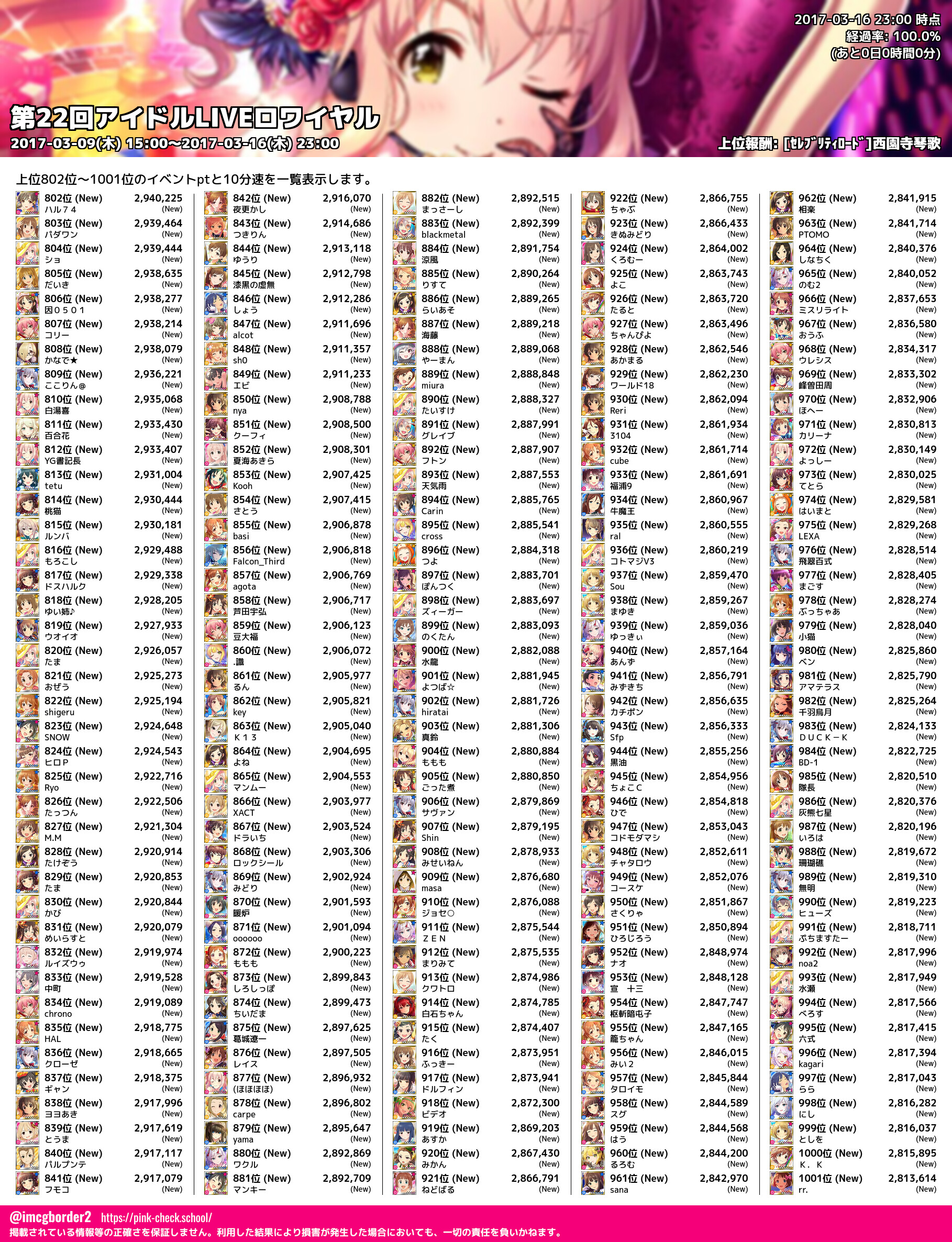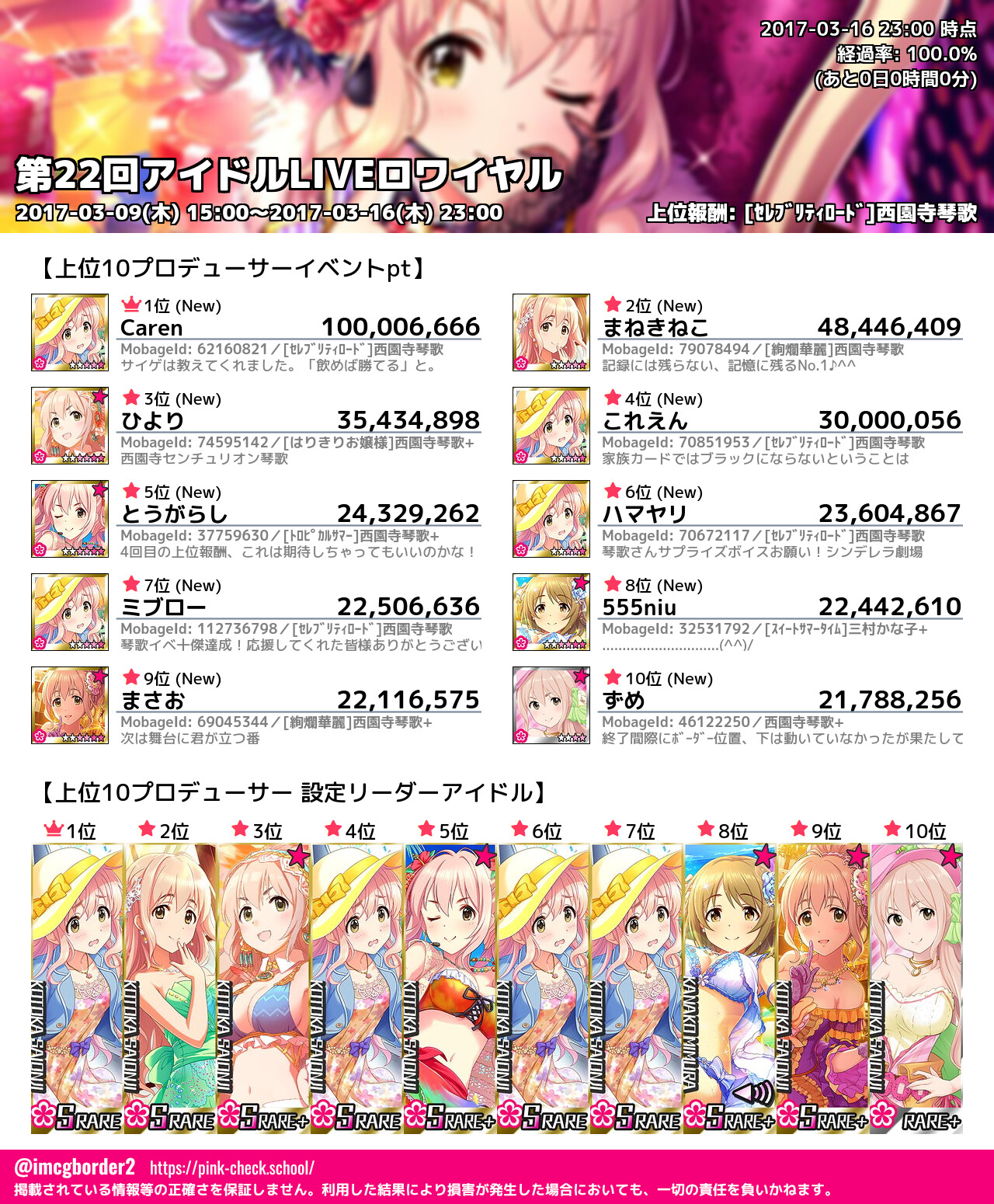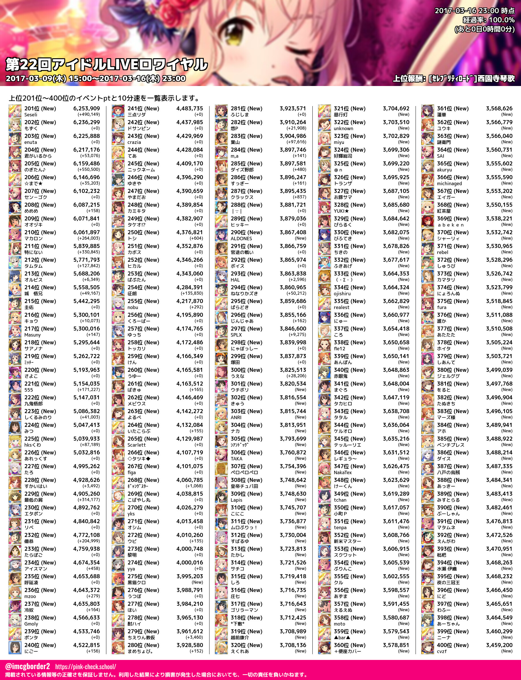 上位プロデューサースコア (2017-03-16 23:00 時点)