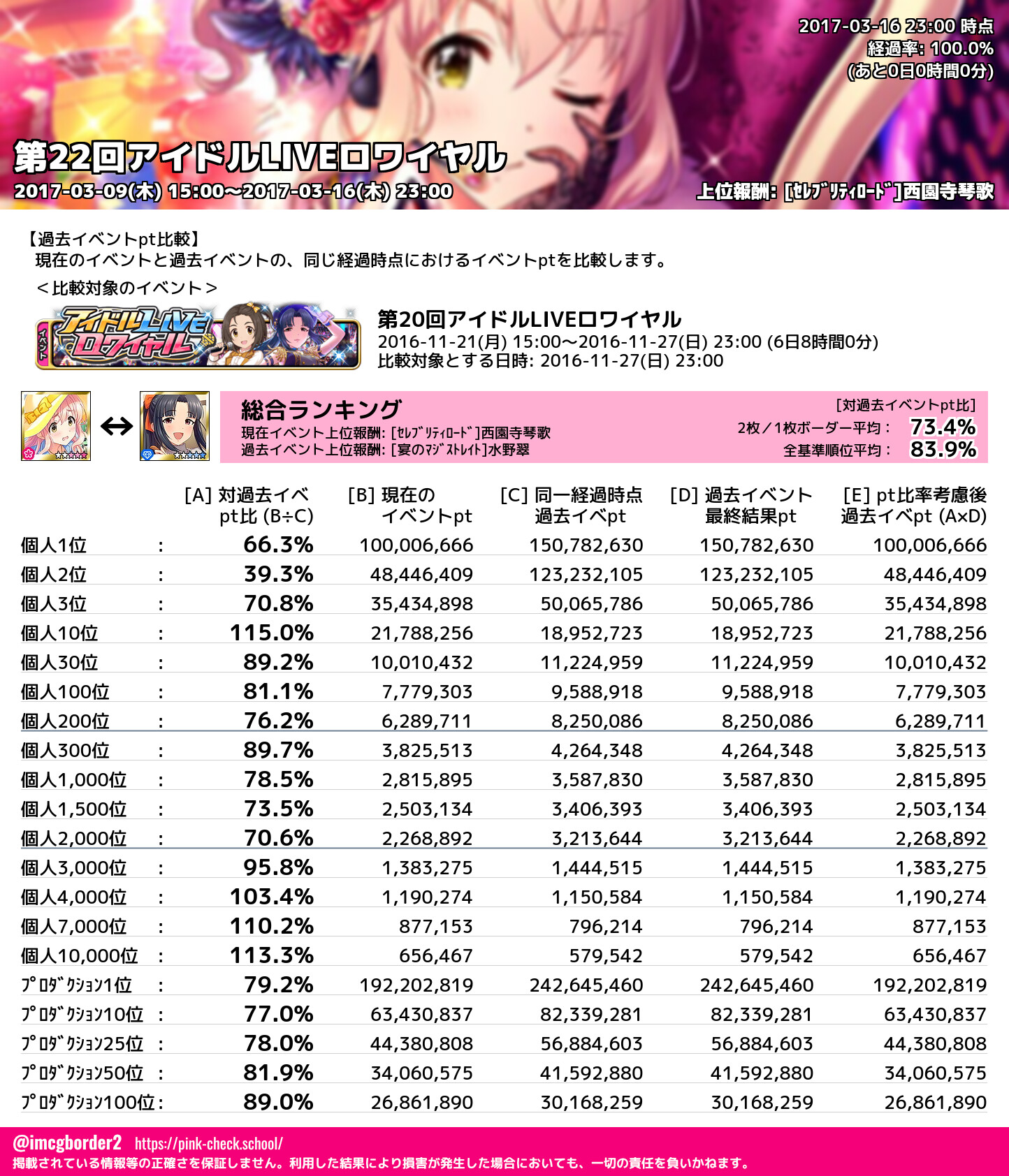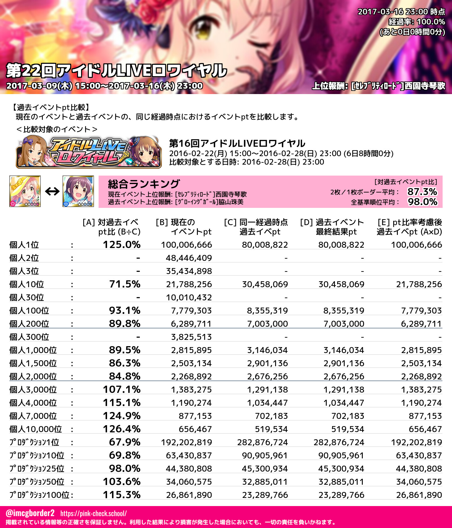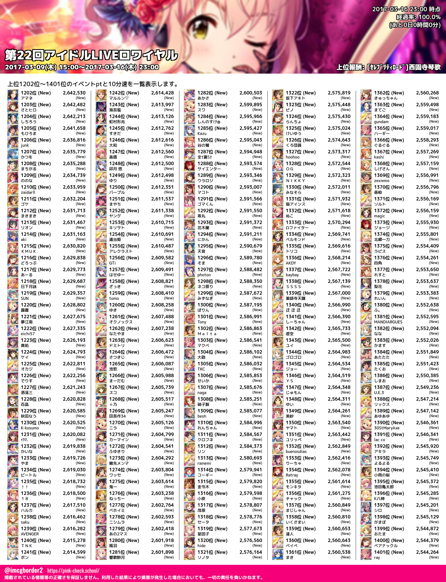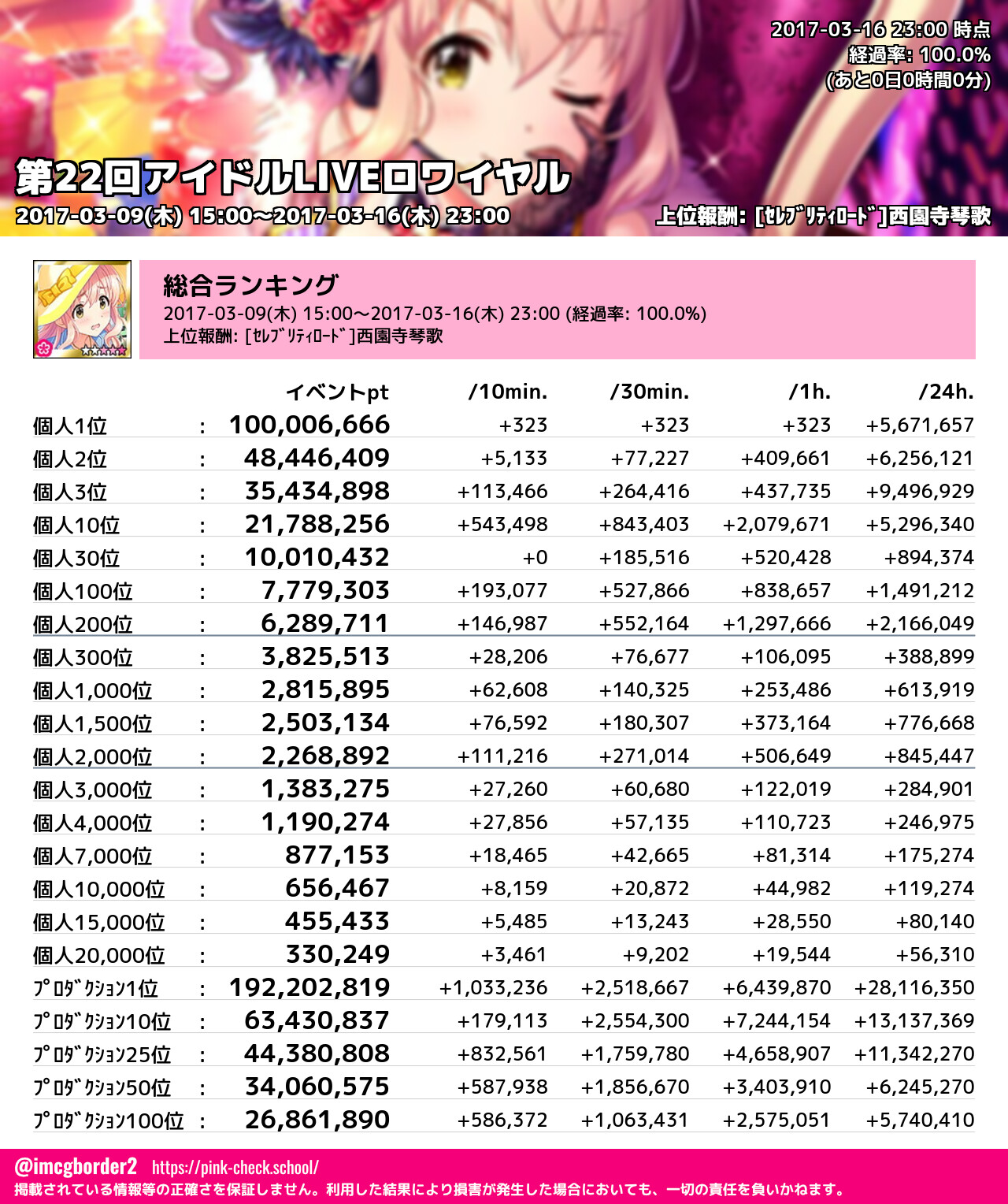 上位プロデューサースコア (2017-03-16 23:00 時点)