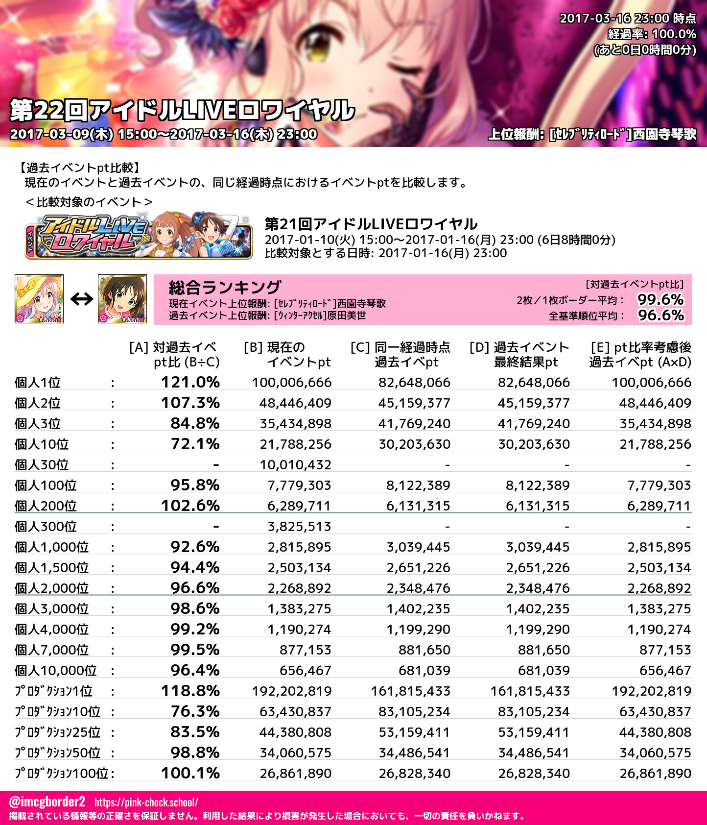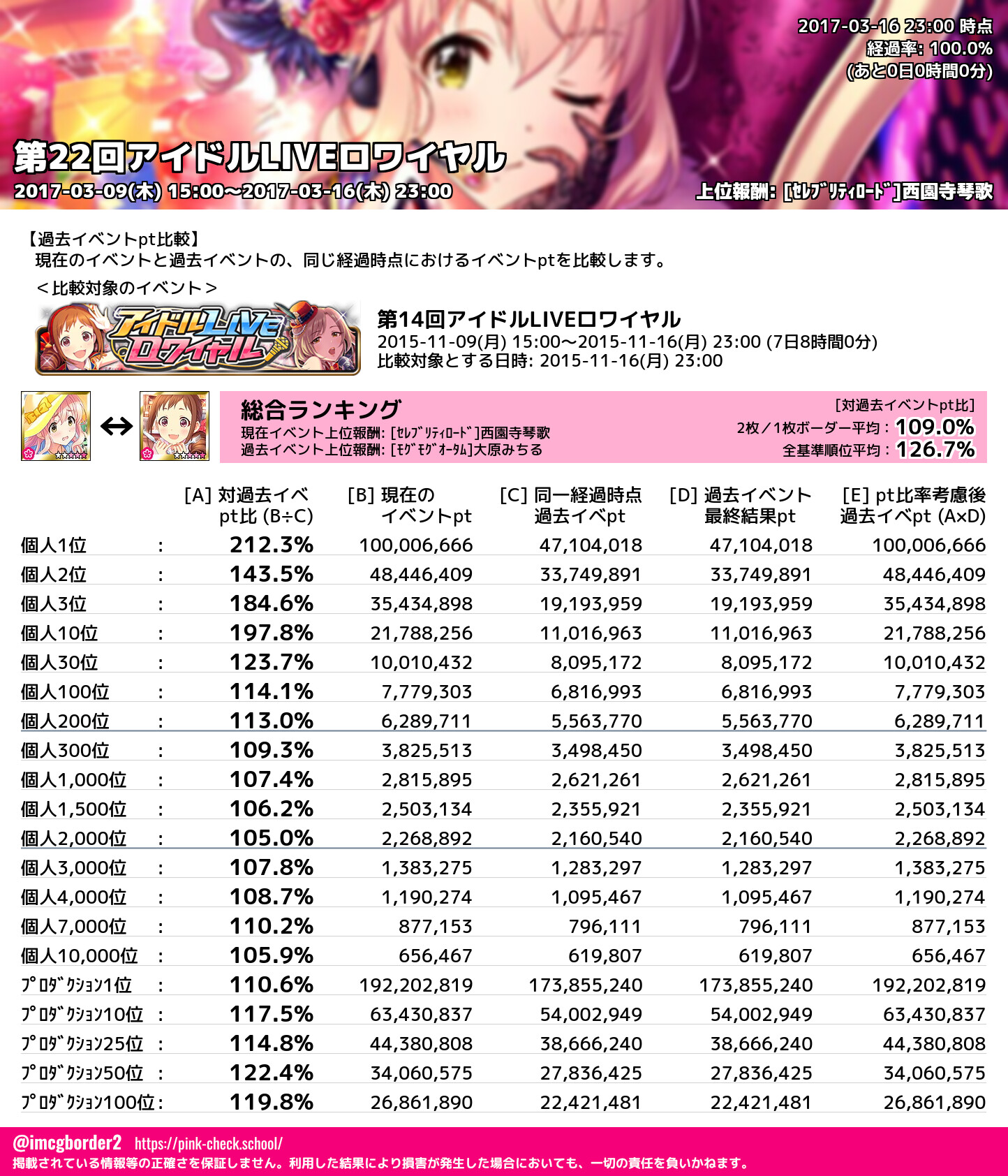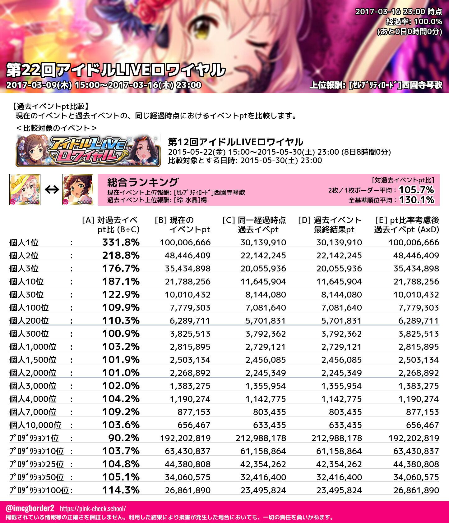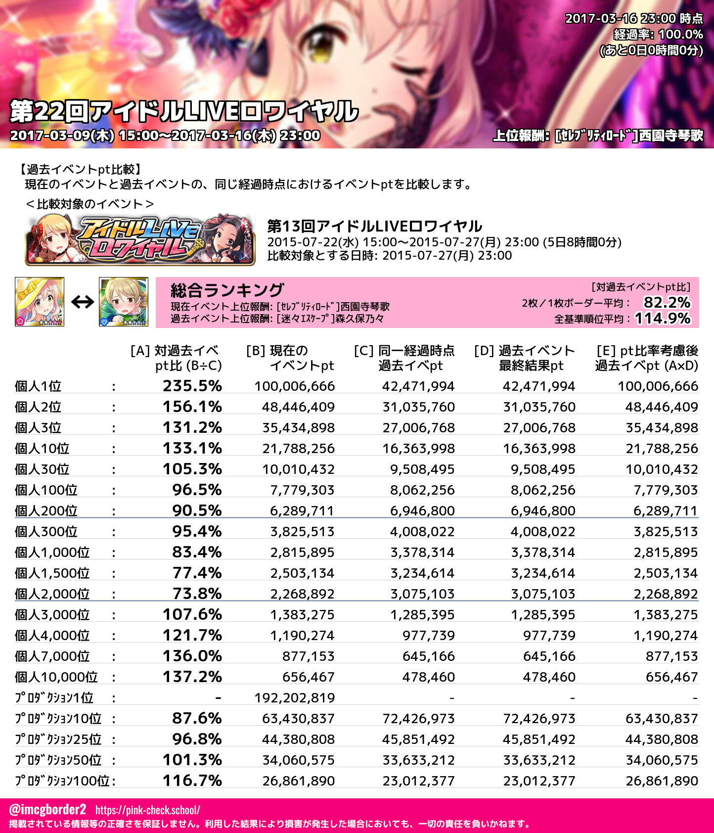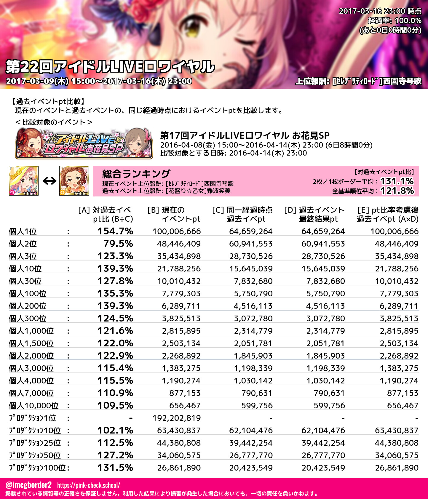 上位プロデューサースコア (2017-03-16 23:00 時点)
