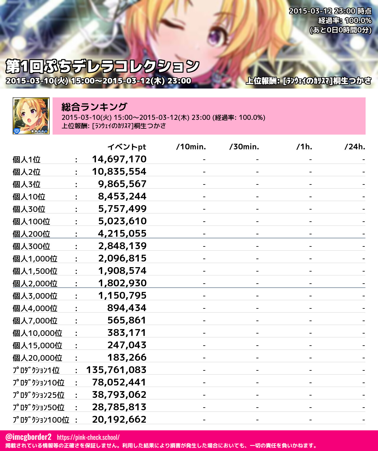 第1回ぷちデレラコレクション 結果集計完了