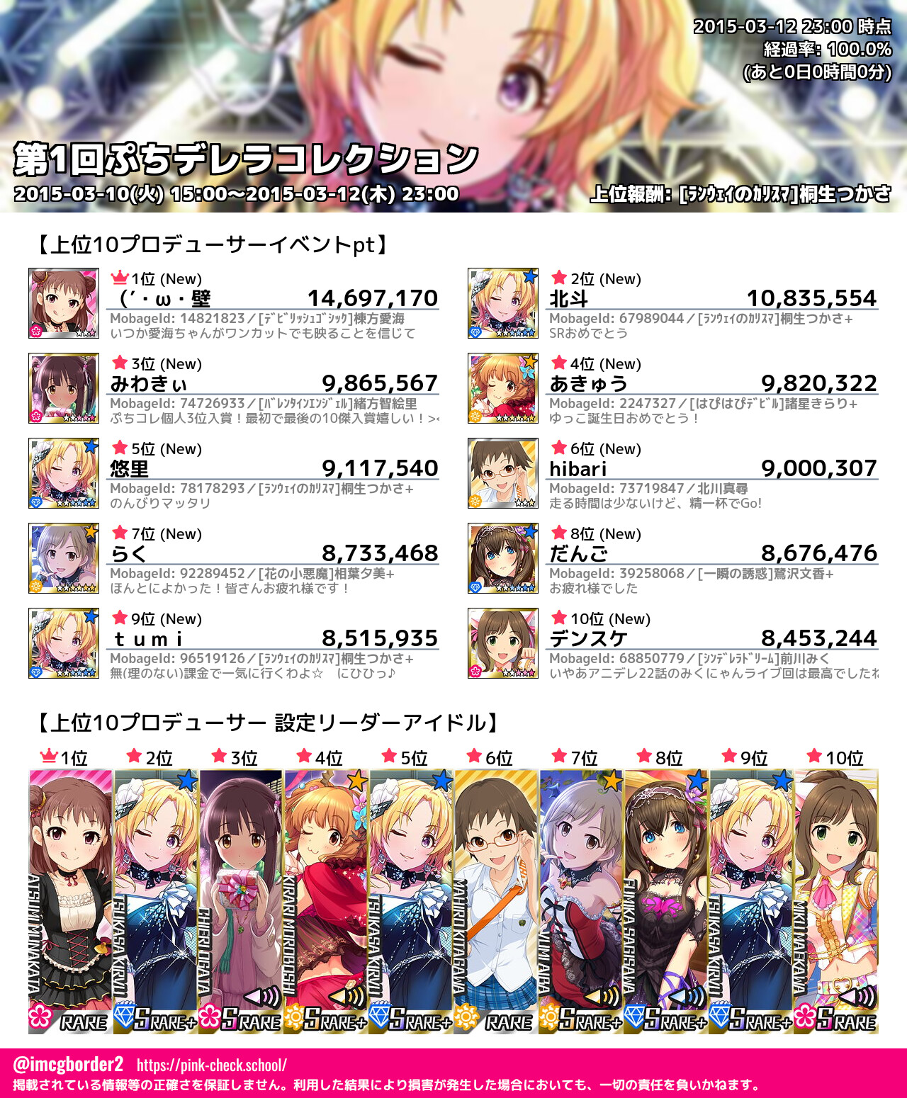 上位プロデューサースコア (2015-03-12 23:00 時点)