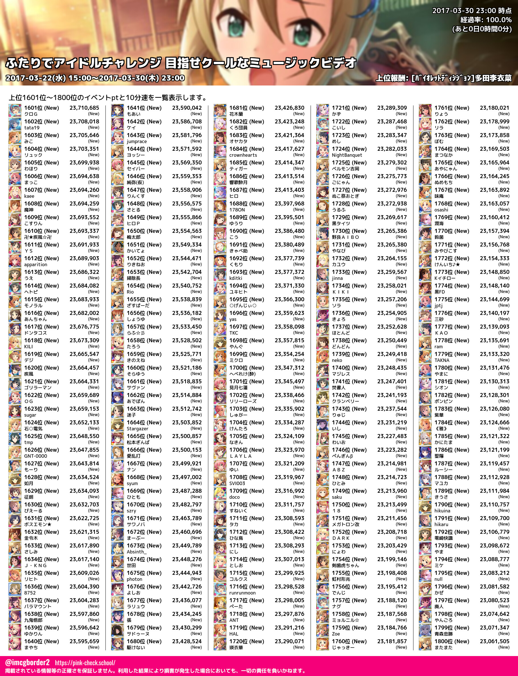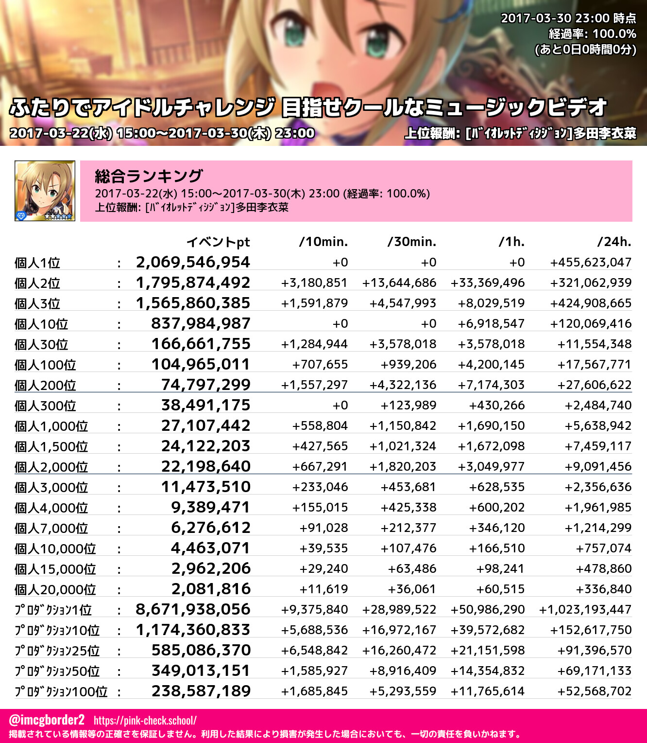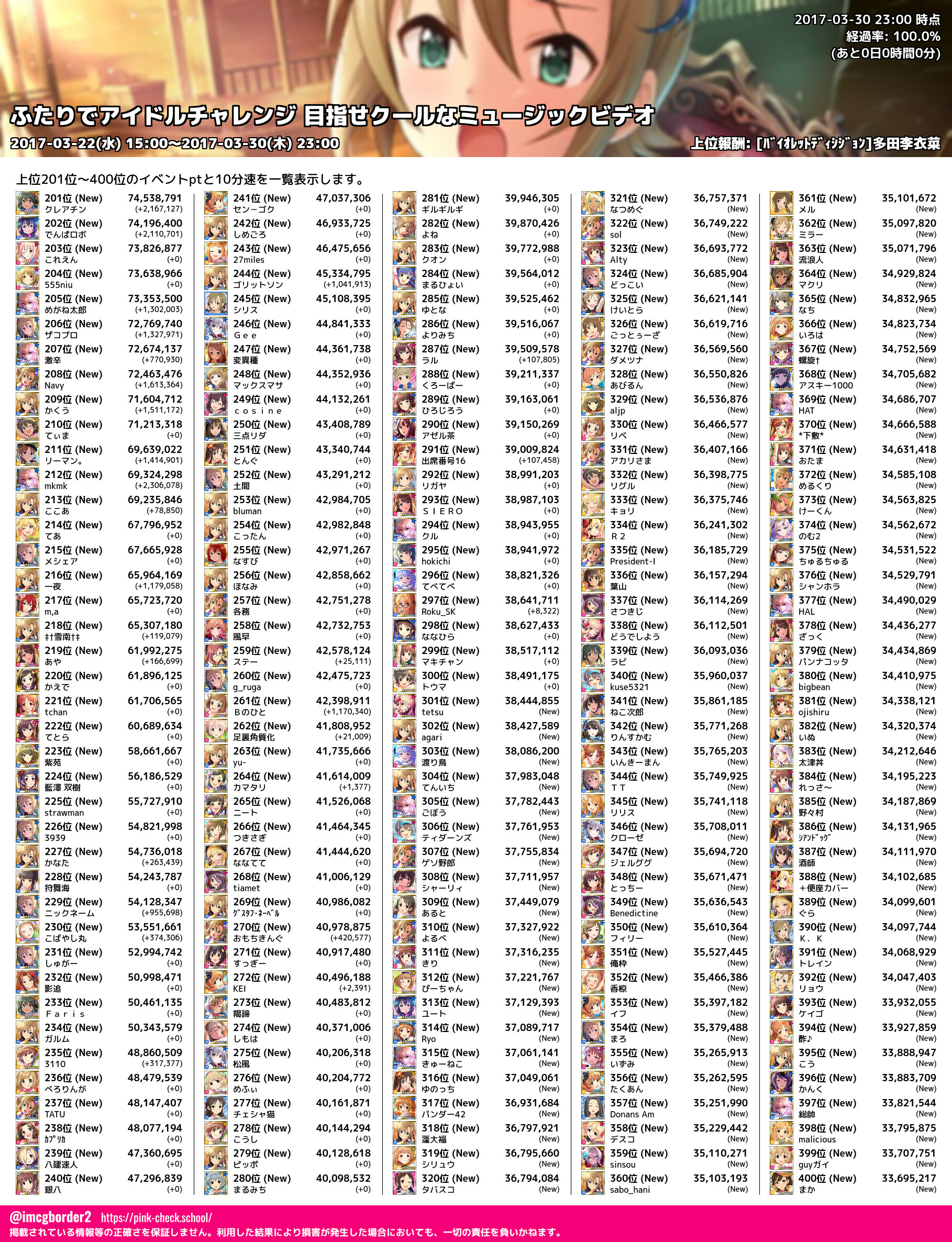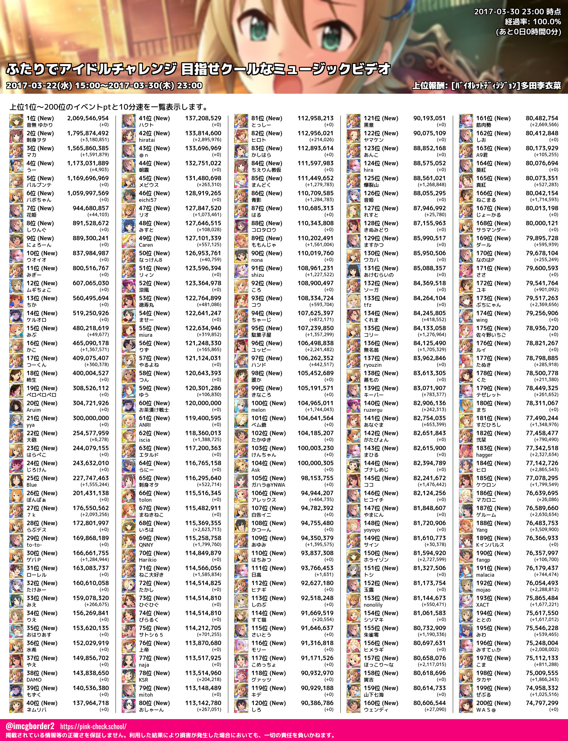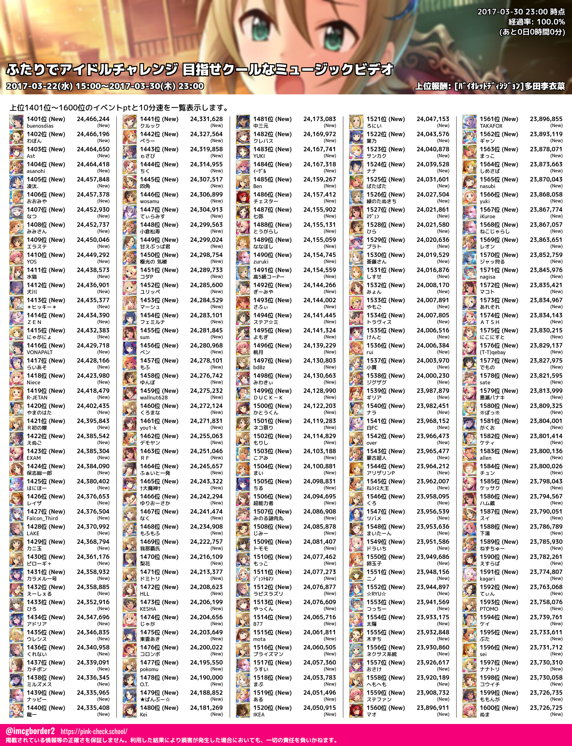 上位プロデューサースコア (2017-03-30 23:00 時点)