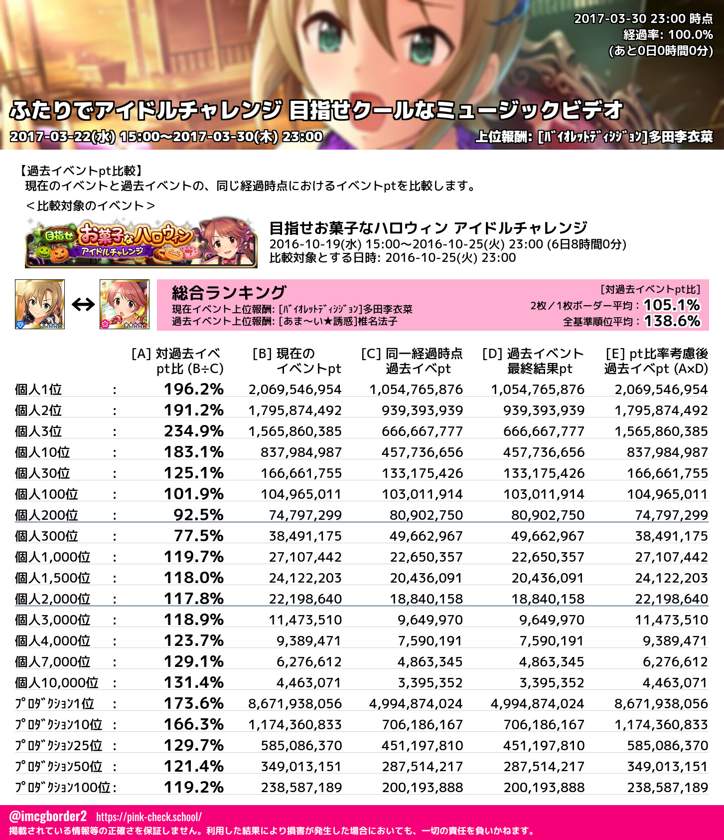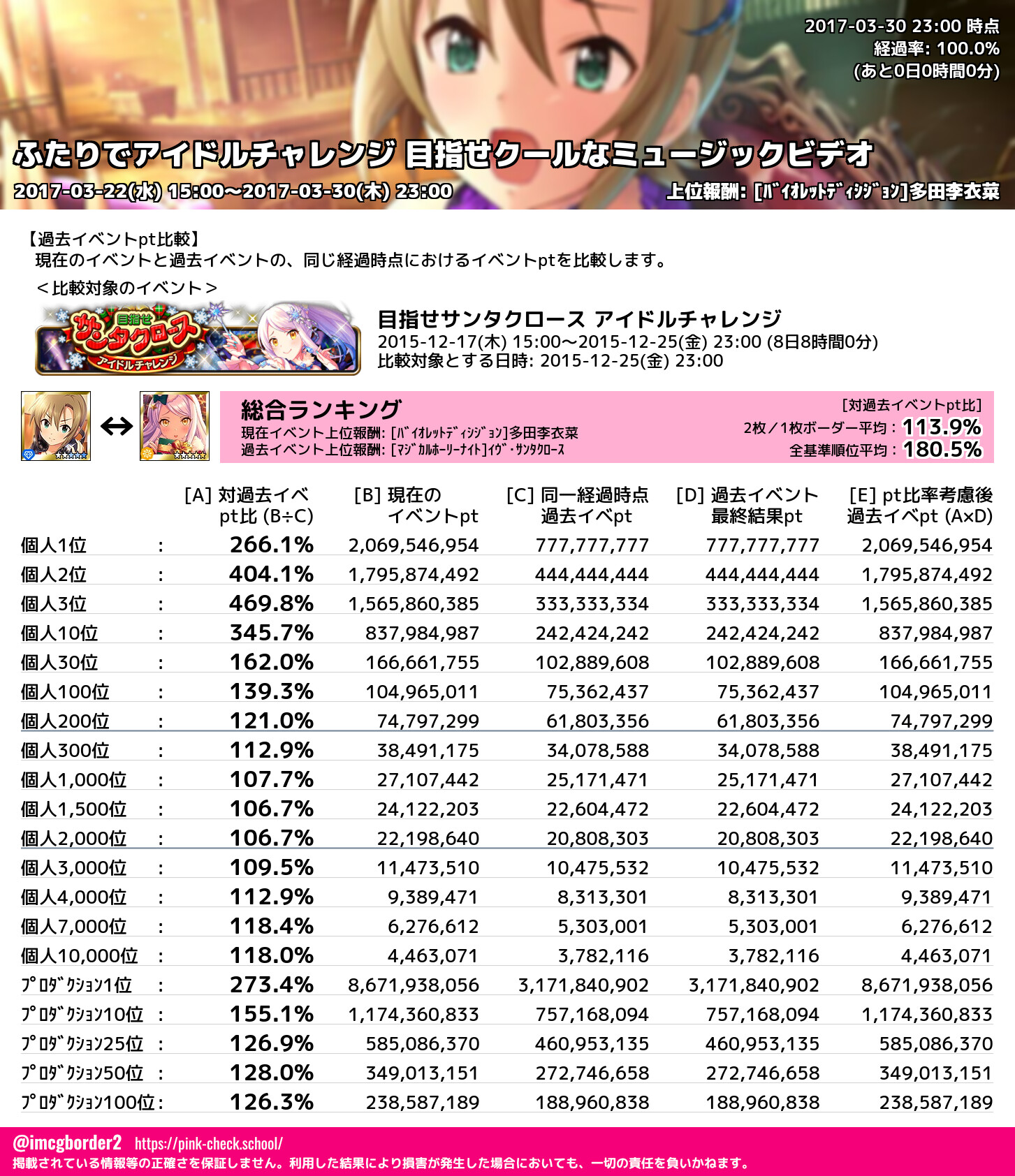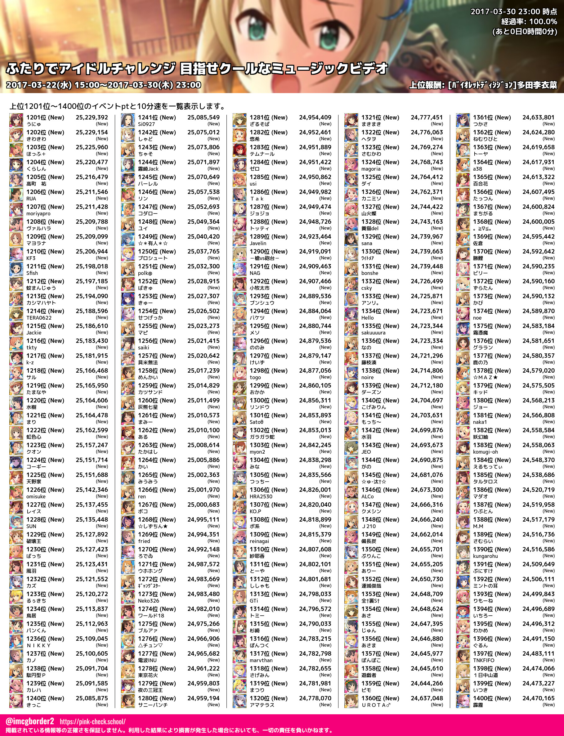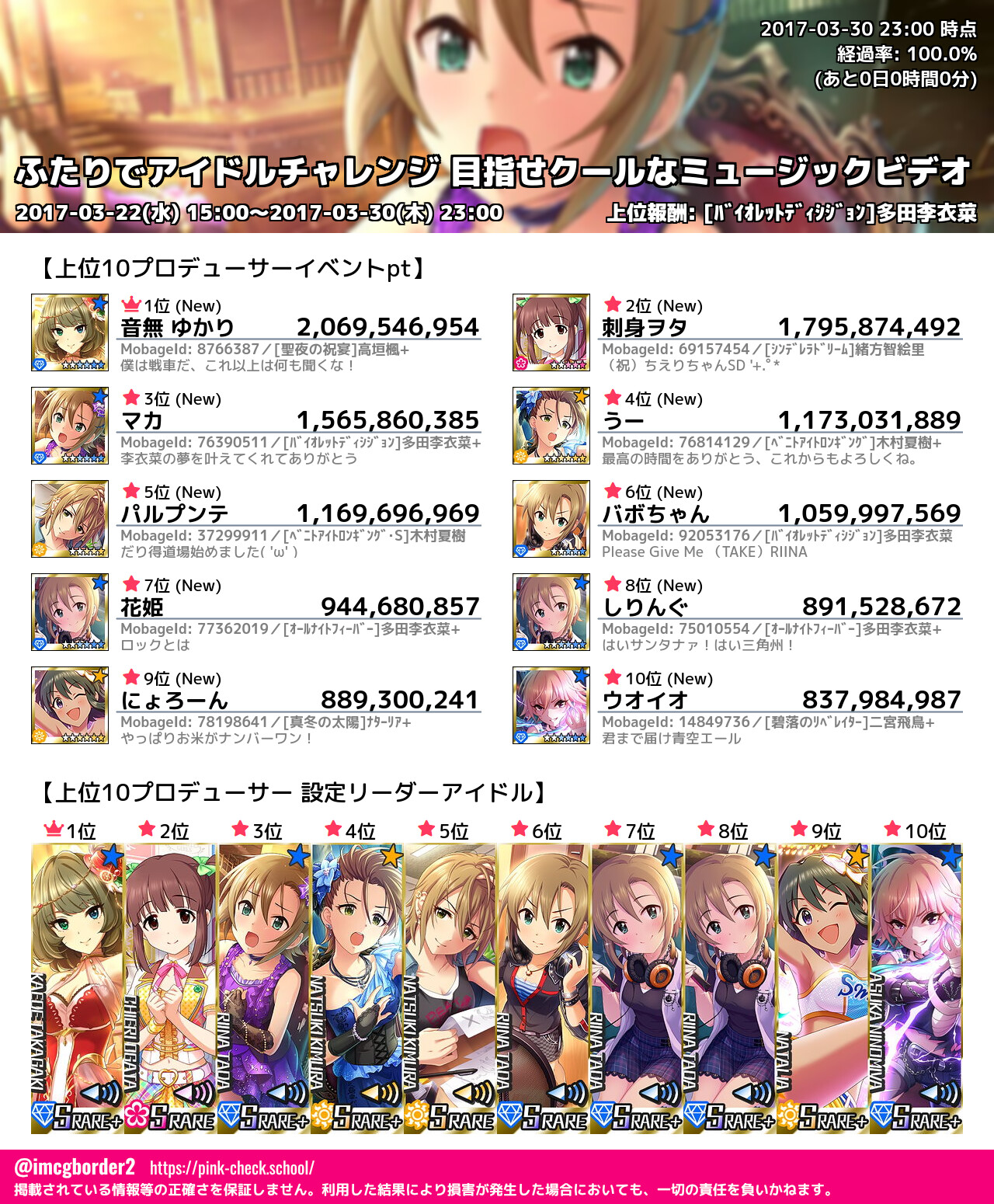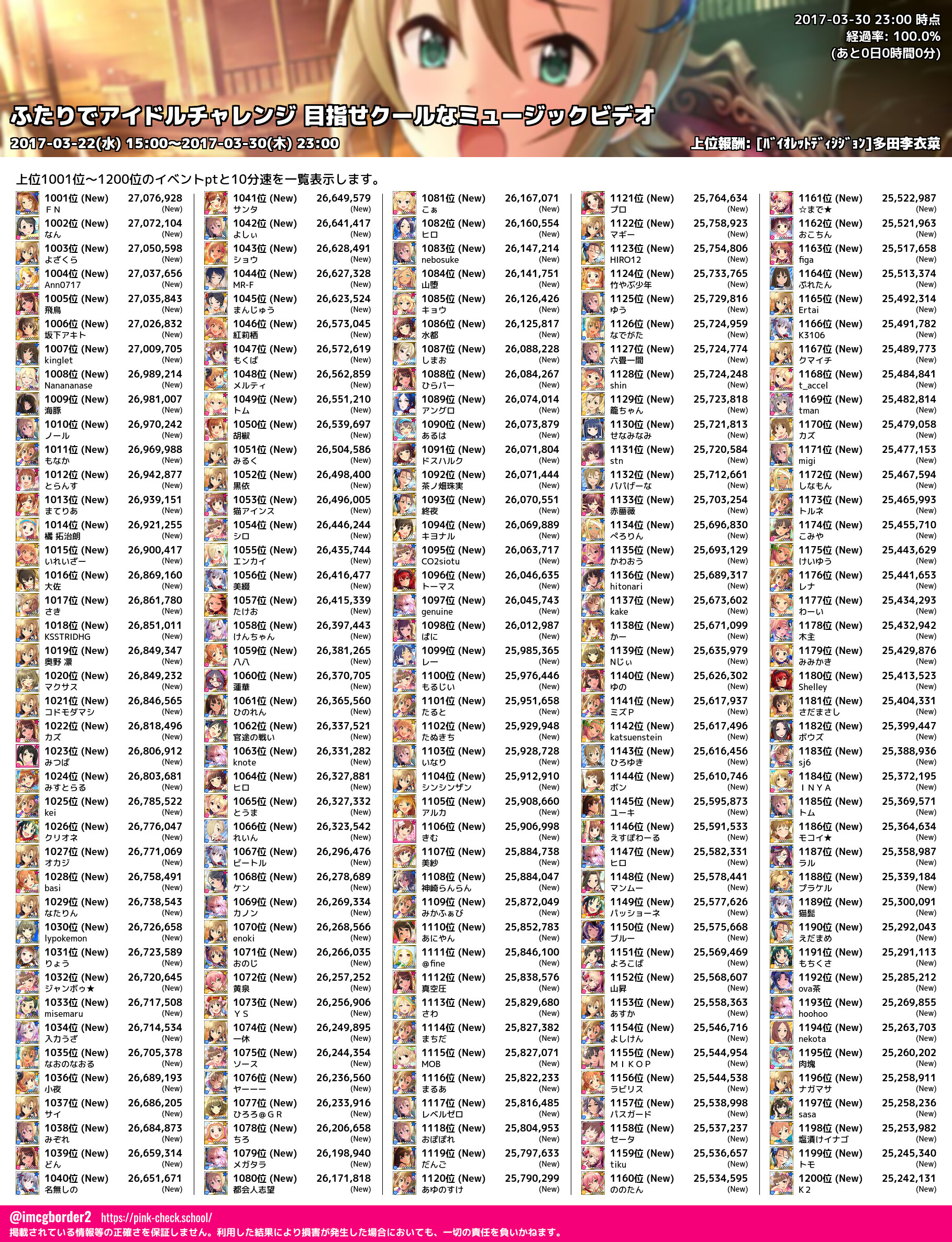 上位プロデューサースコア (2017-03-30 23:00 時点)