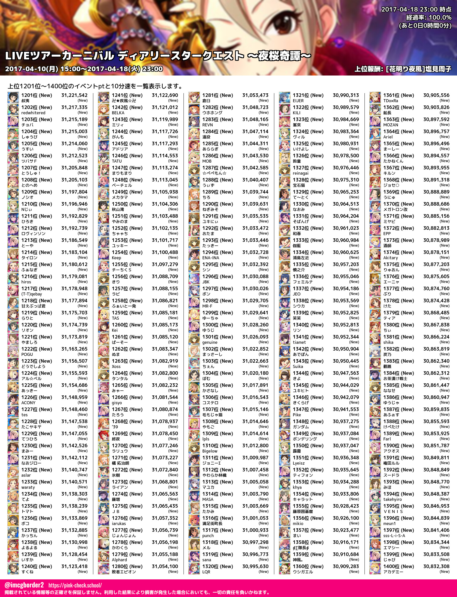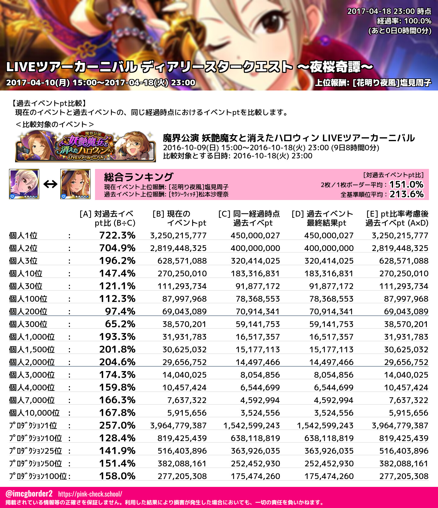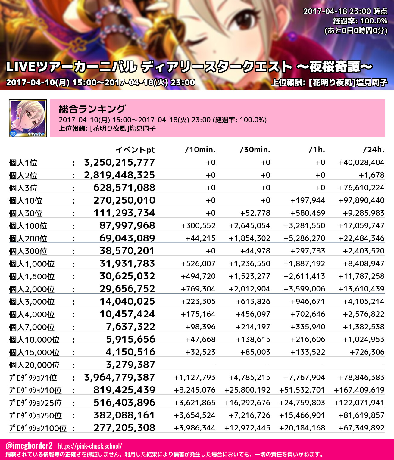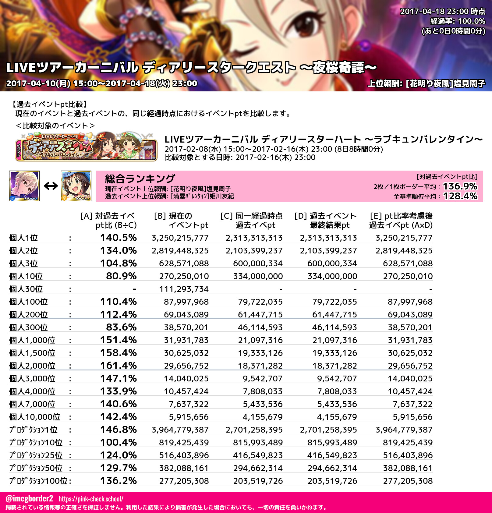 LIVEツアーカーニバル ディアリースタークエスト ~夜桜奇譚~ 結果集計完了