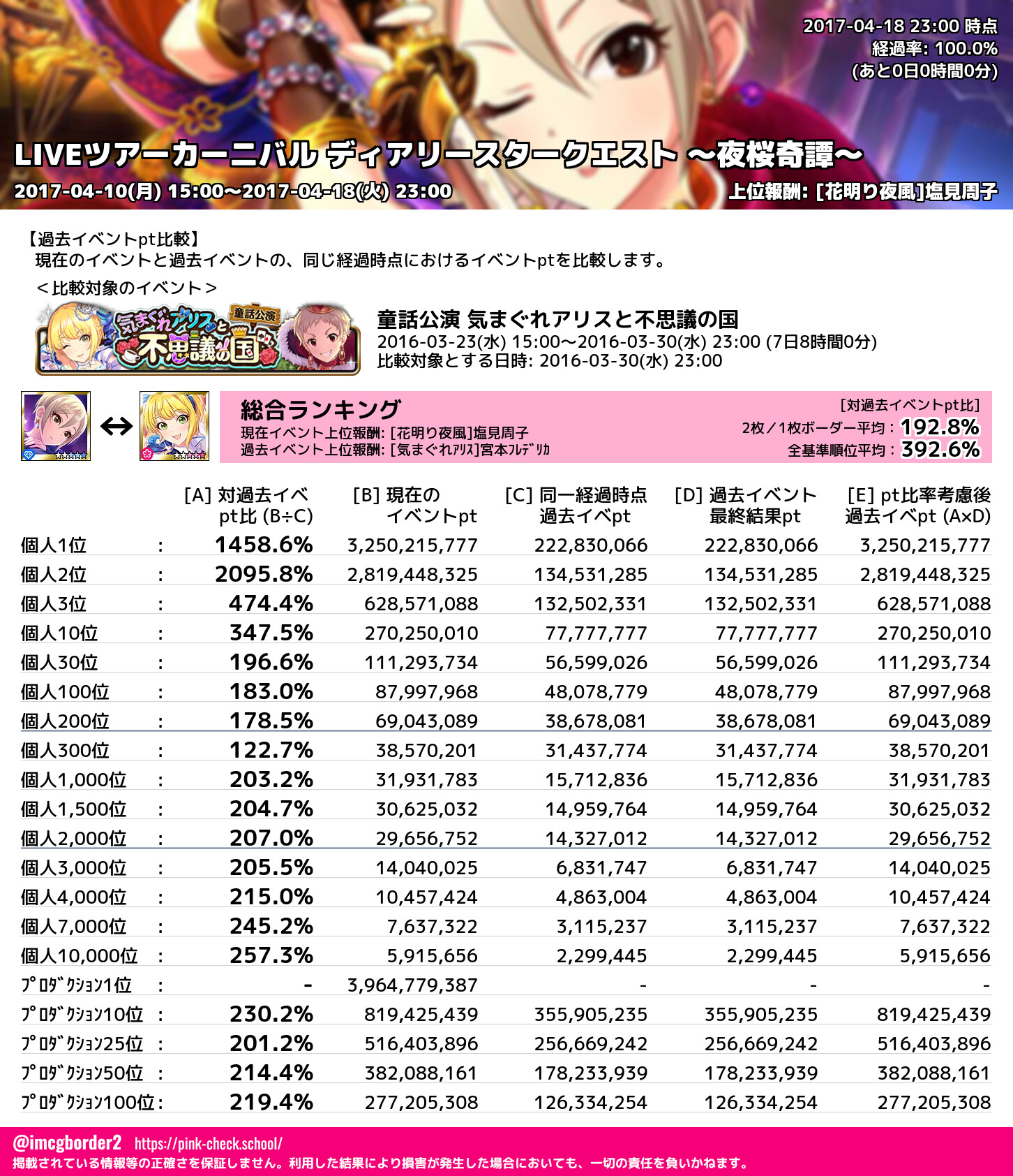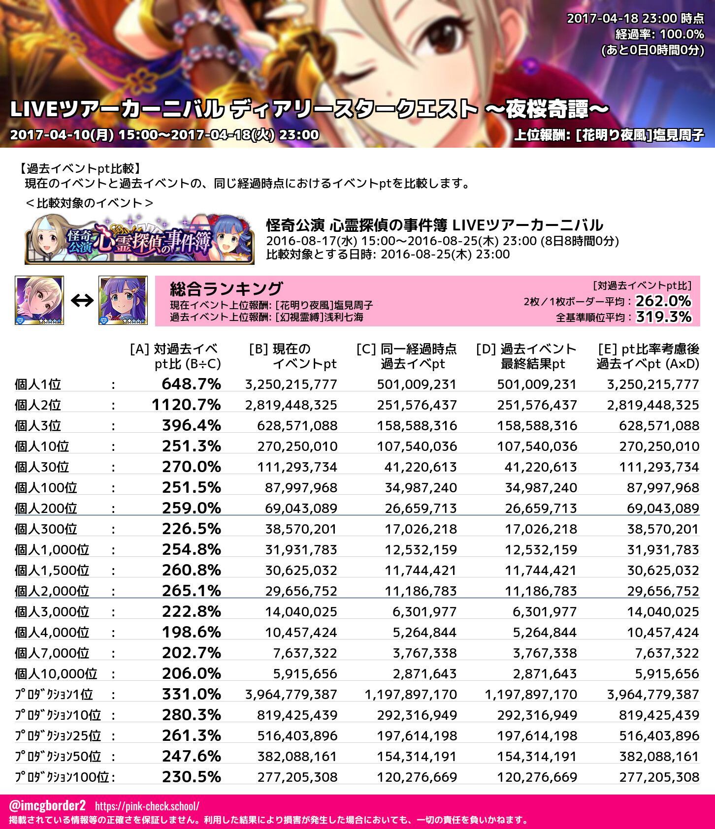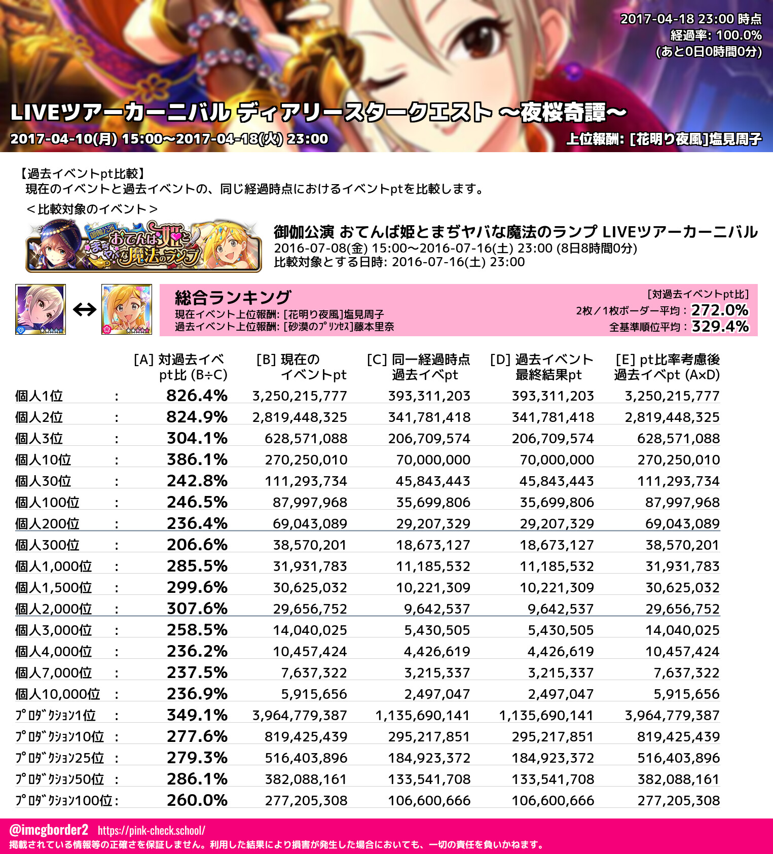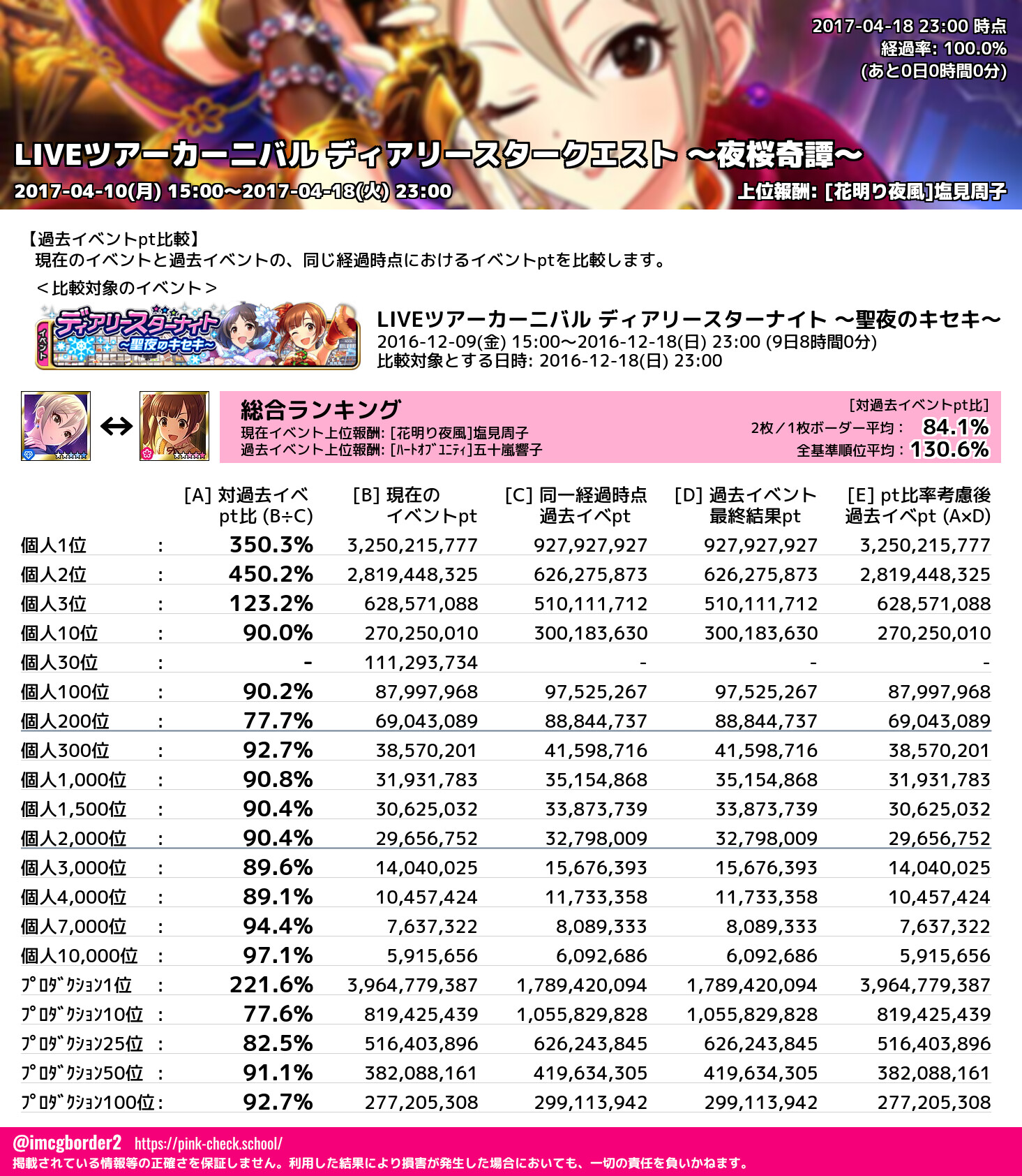 LIVEツアーカーニバル ディアリースタークエスト ~夜桜奇譚~ 結果集計完了