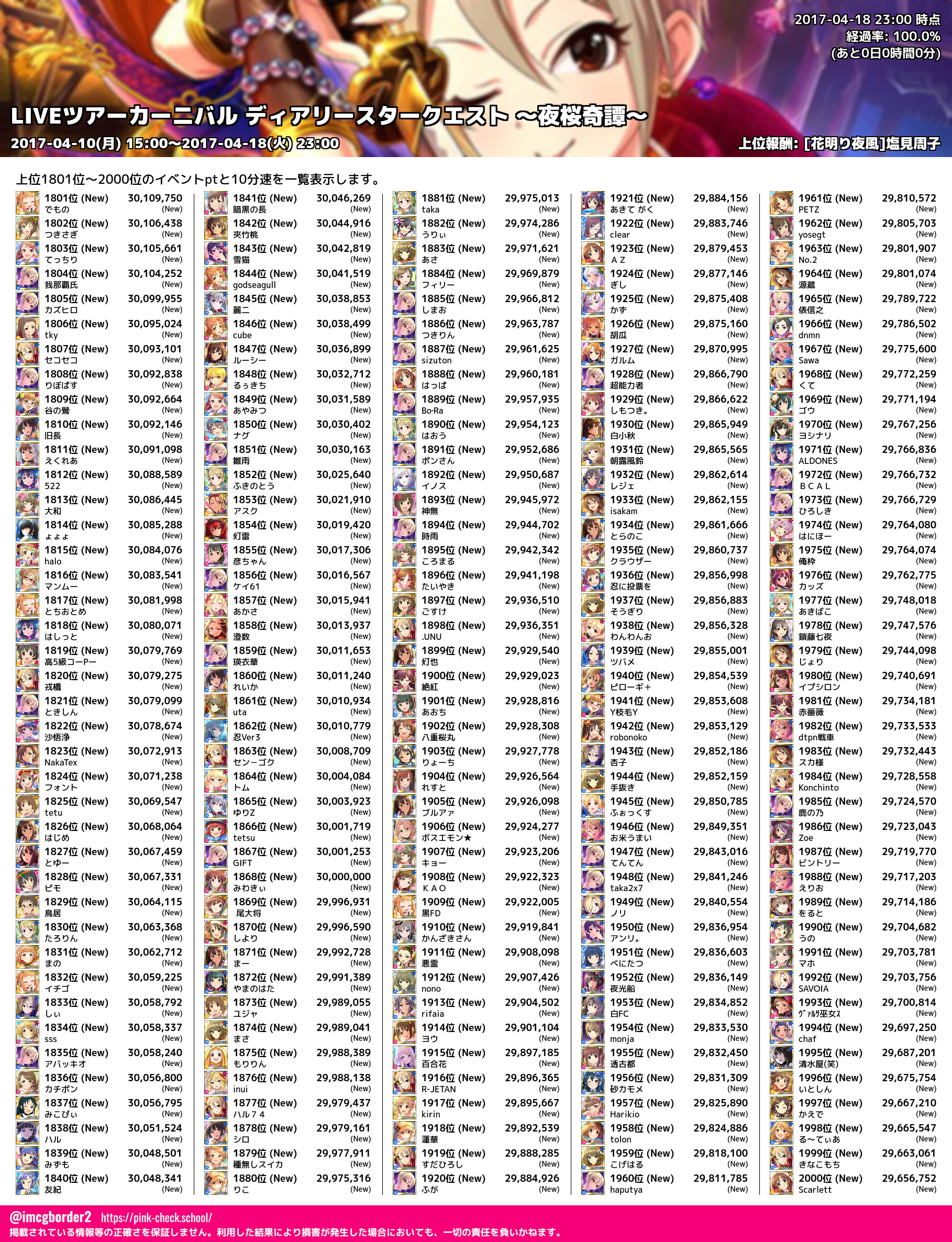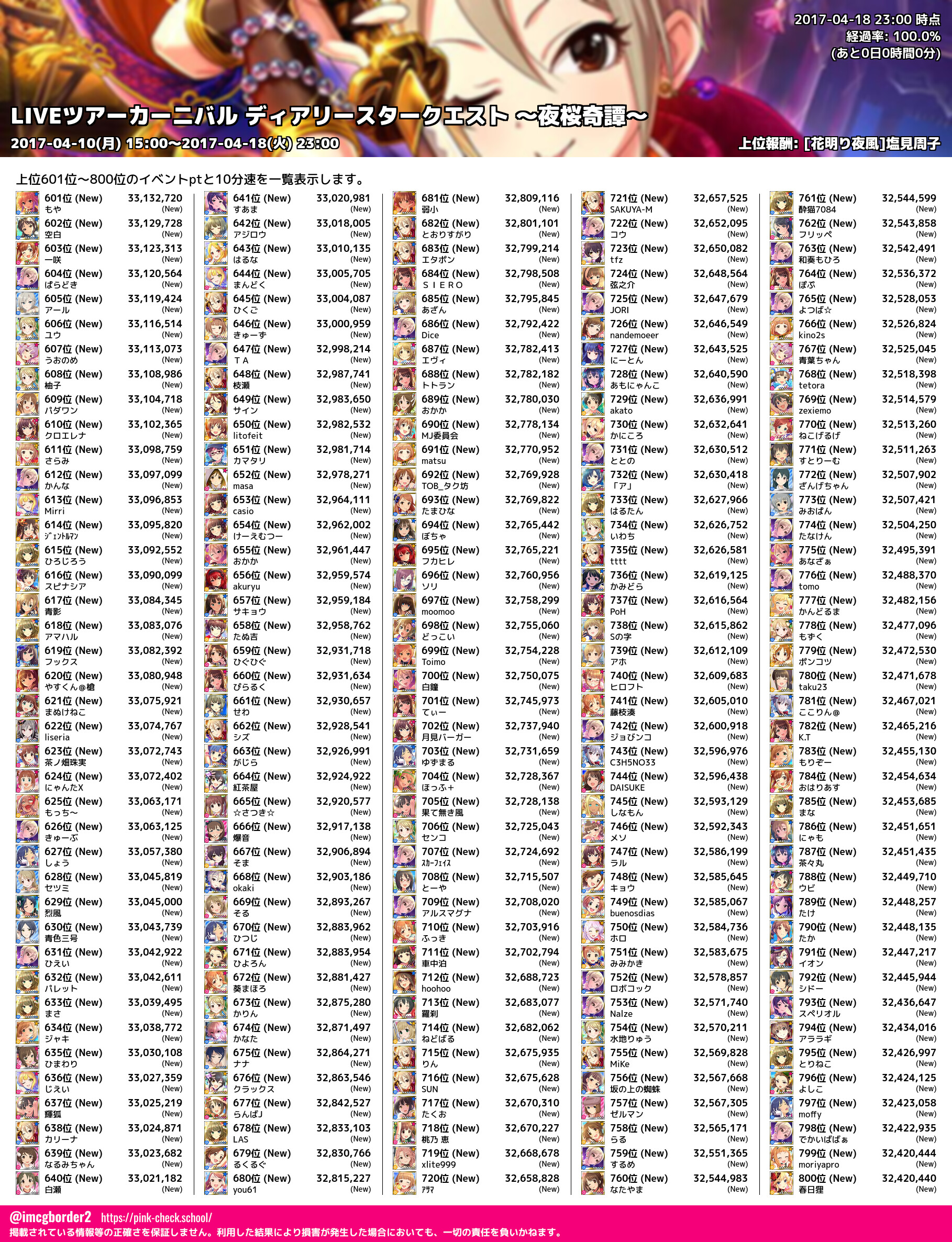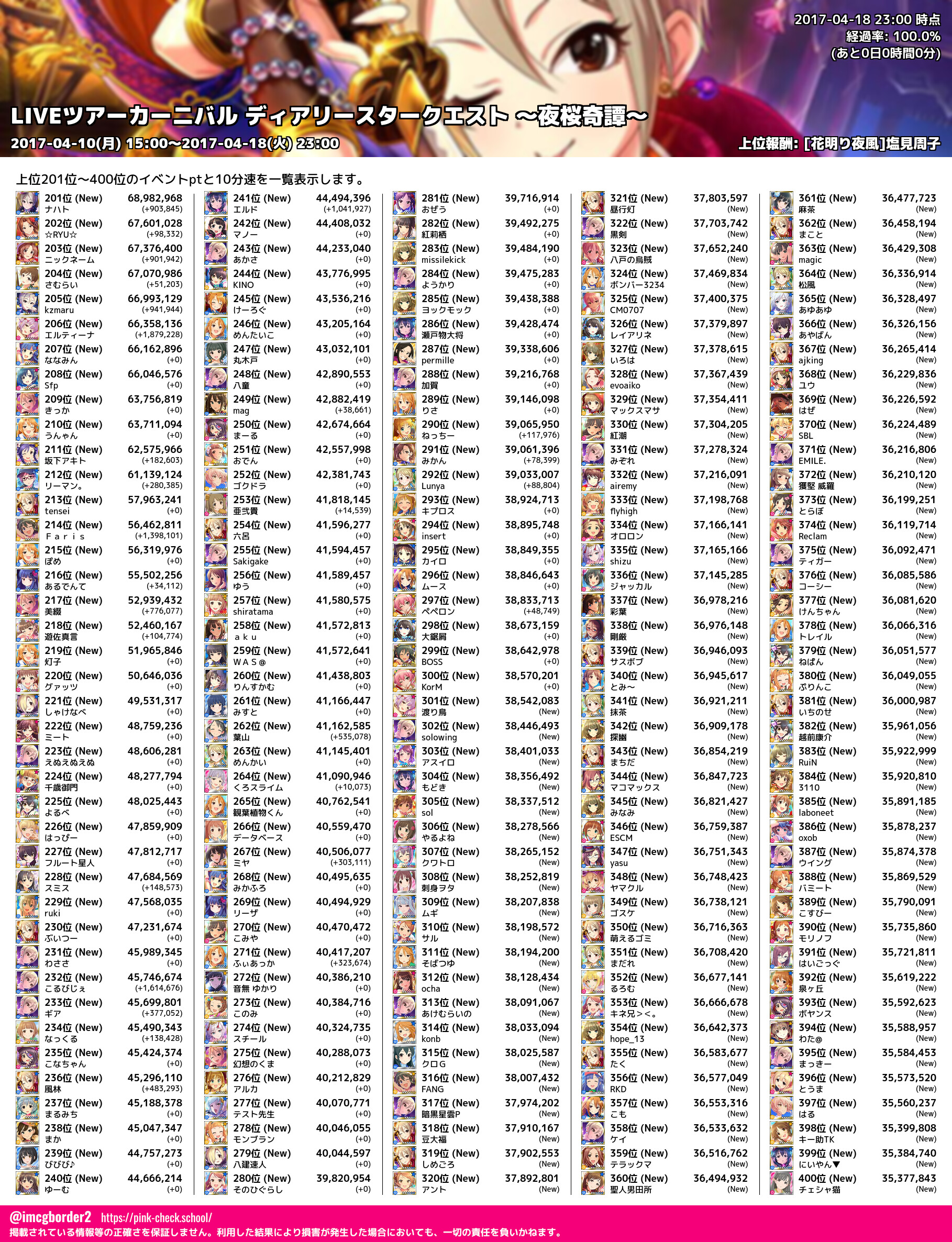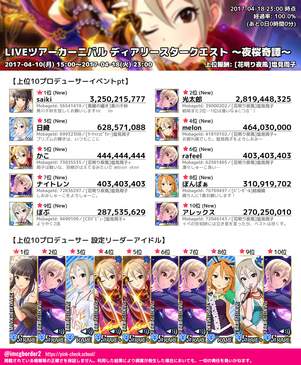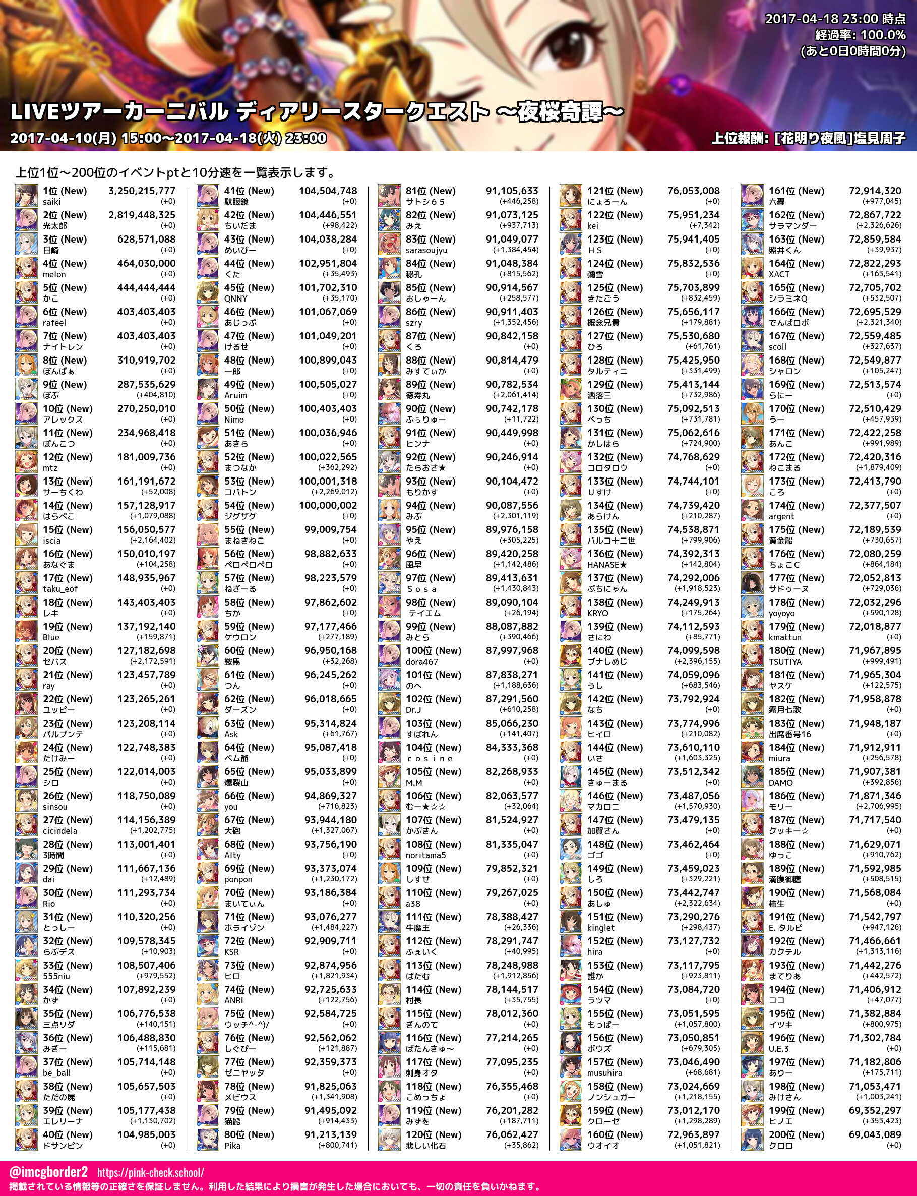 上位プロデューサースコア (2017-04-18 23:00 時点)