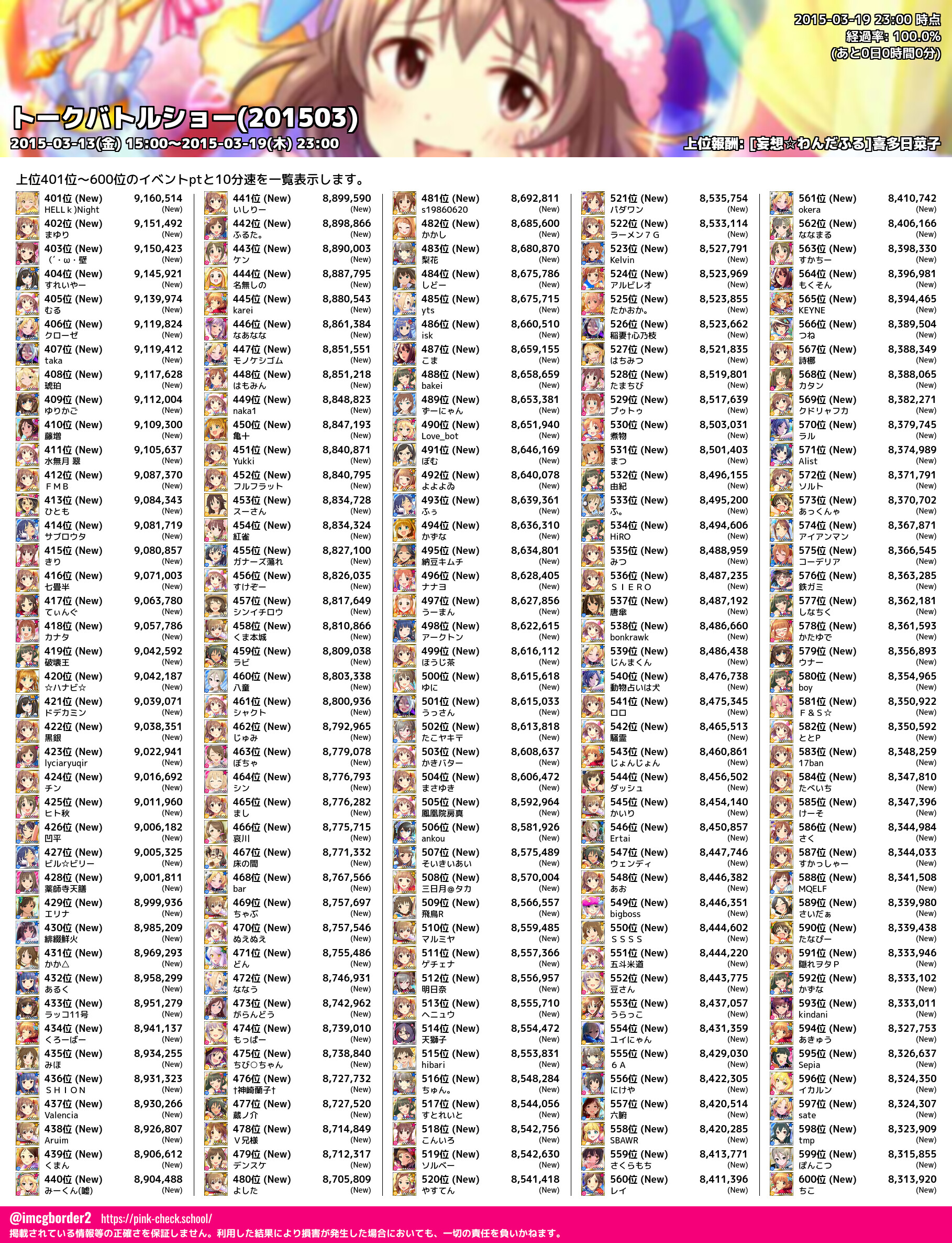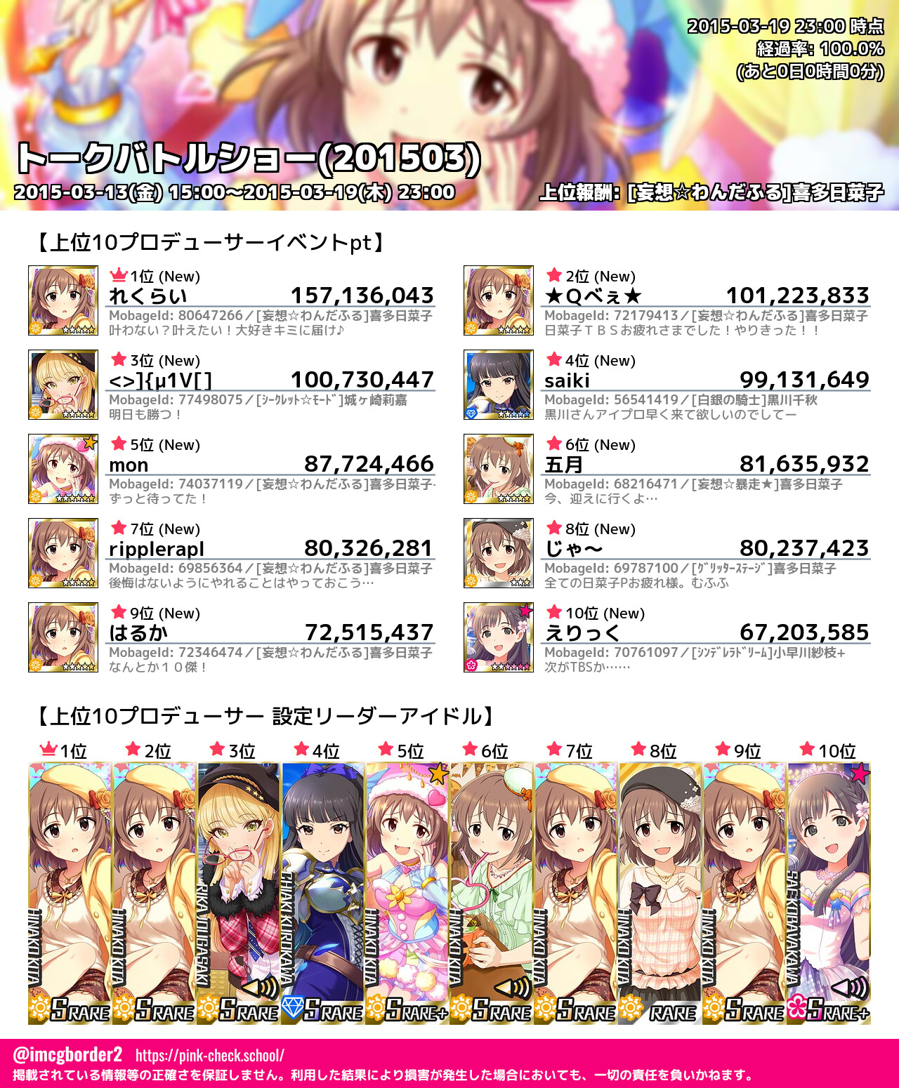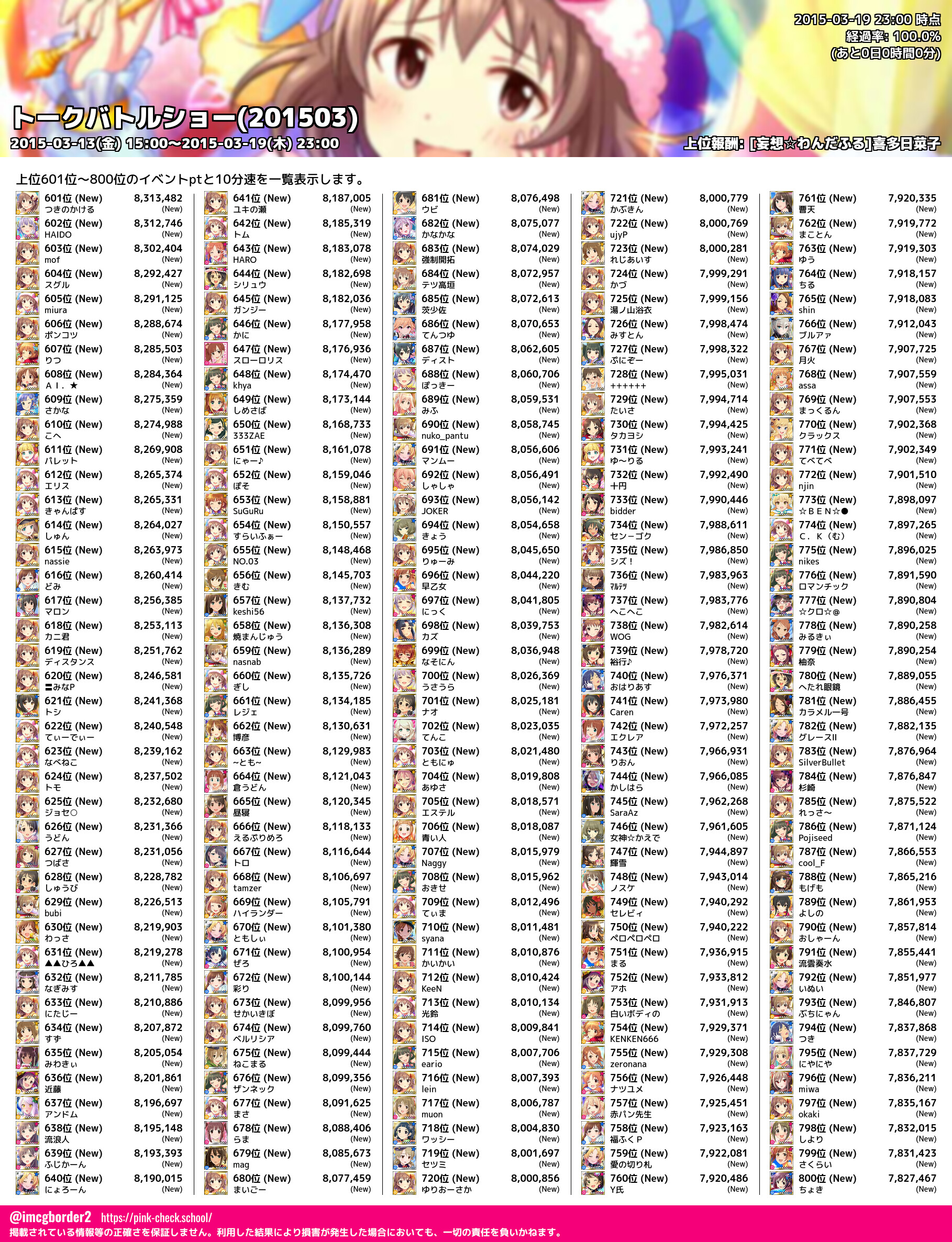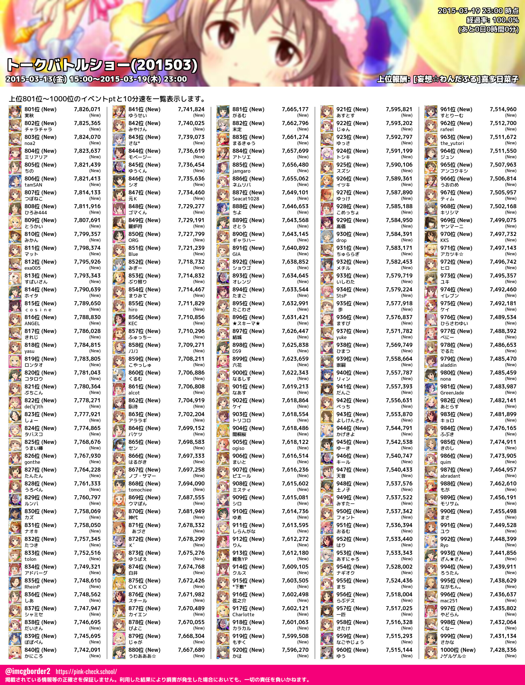 上位プロデューサースコア (2015-03-19 23:00 時点)