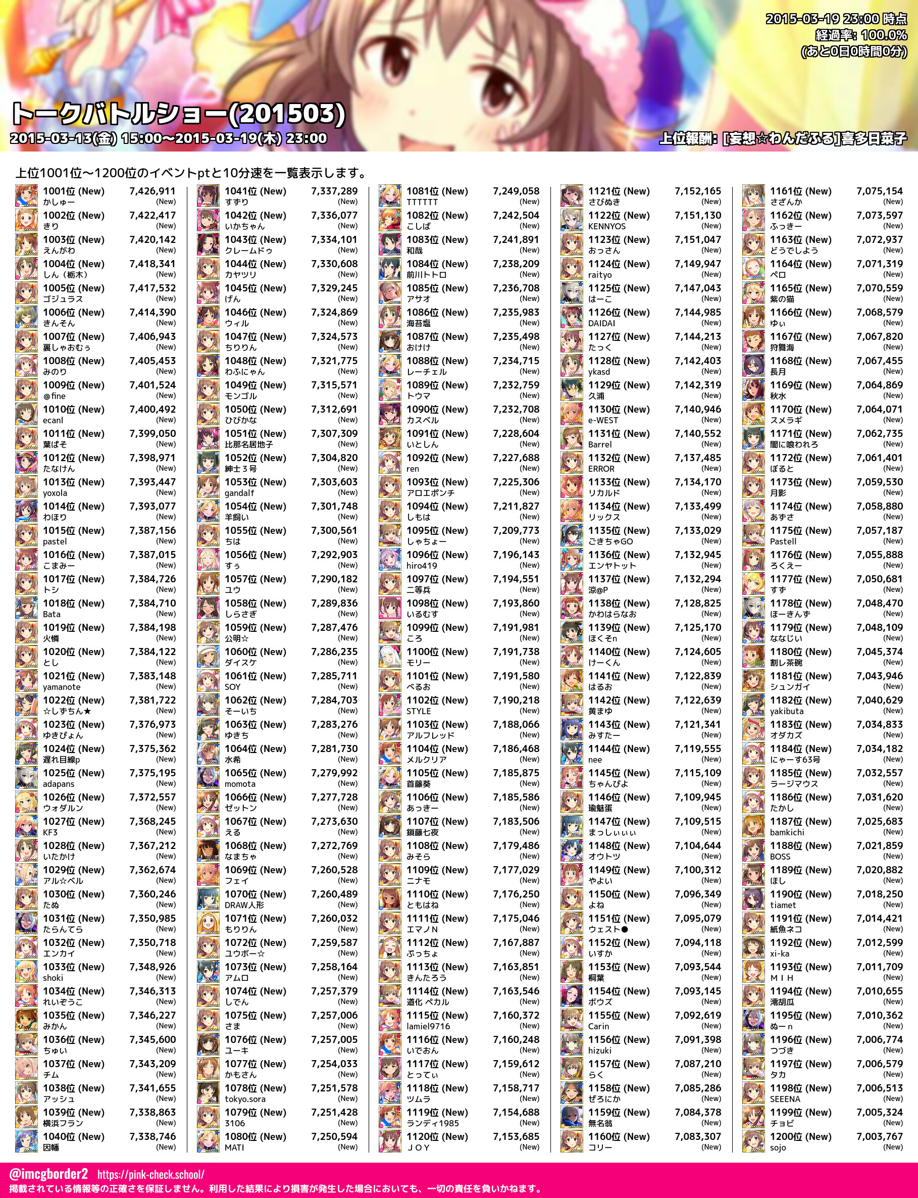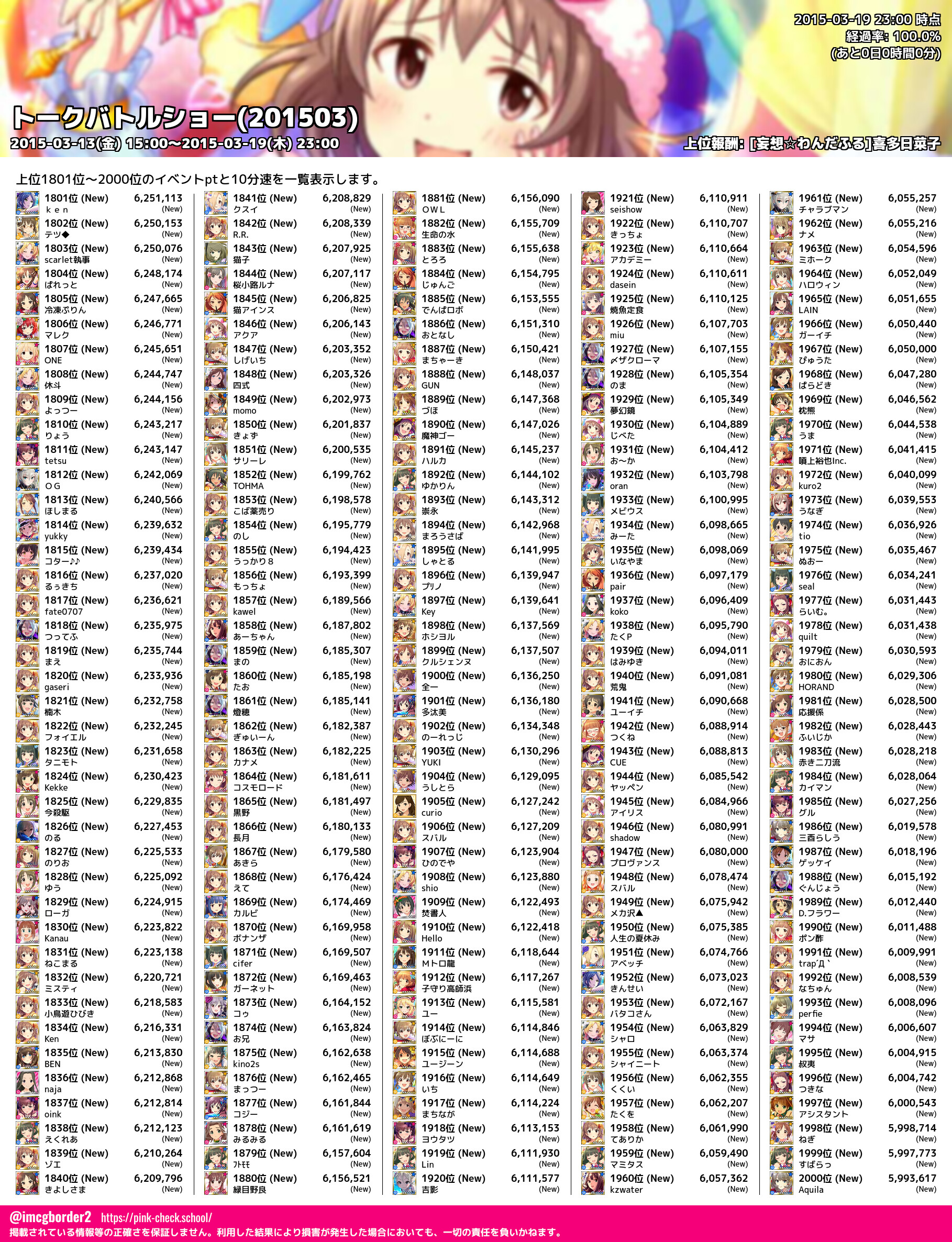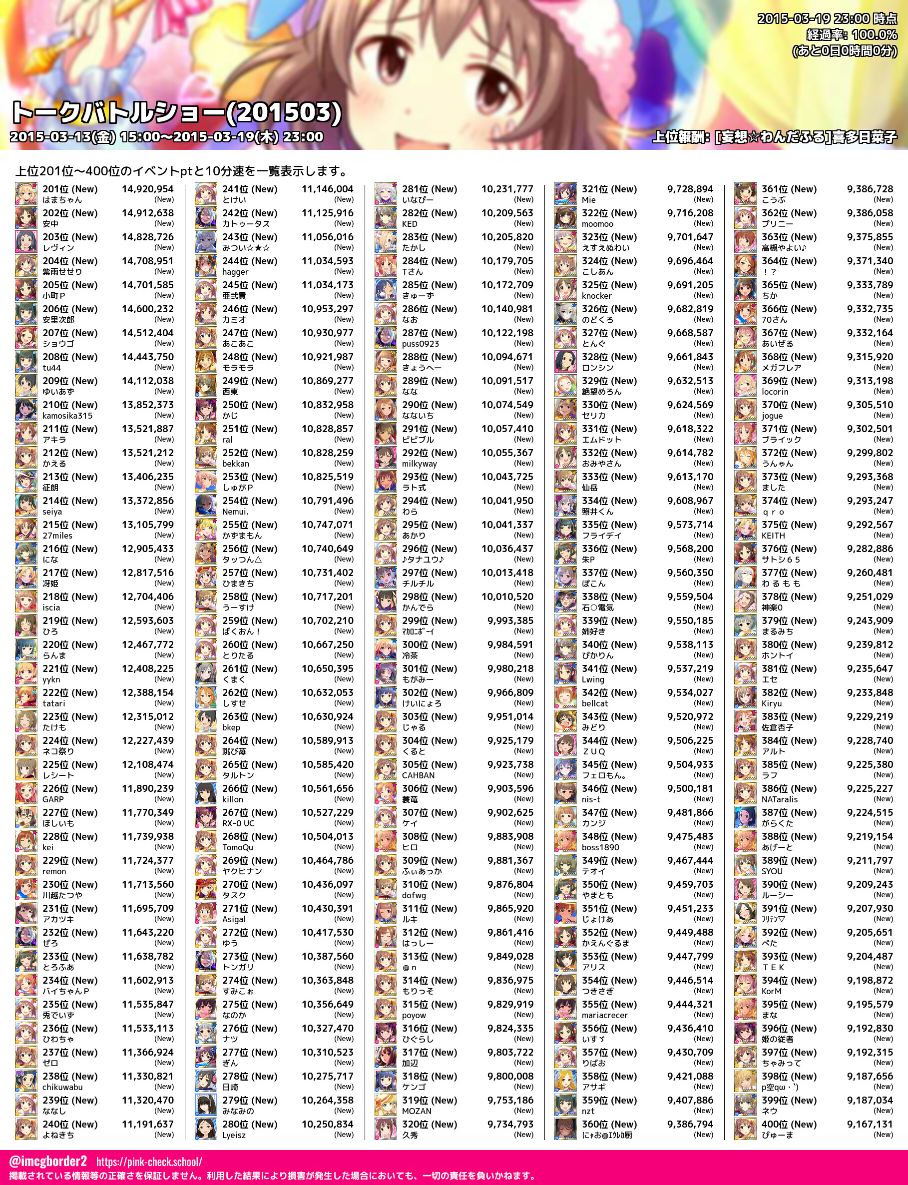 上位プロデューサースコア (2015-03-19 23:00 時点)