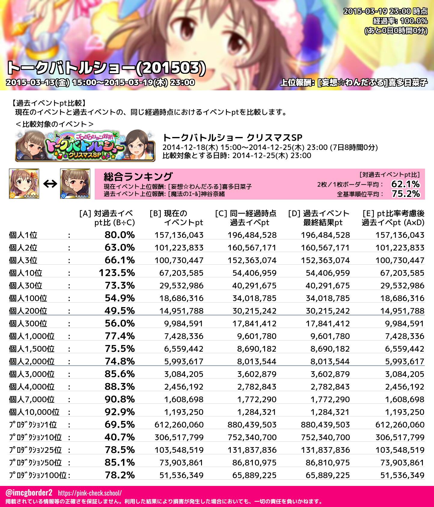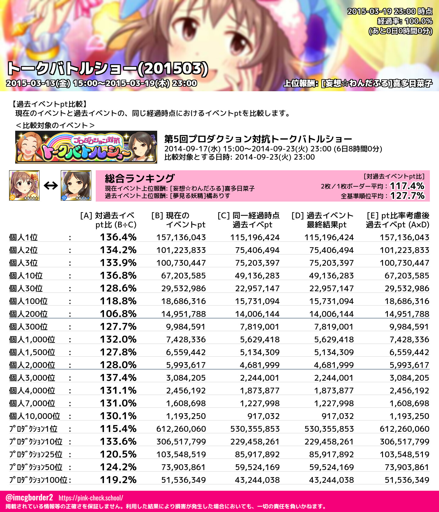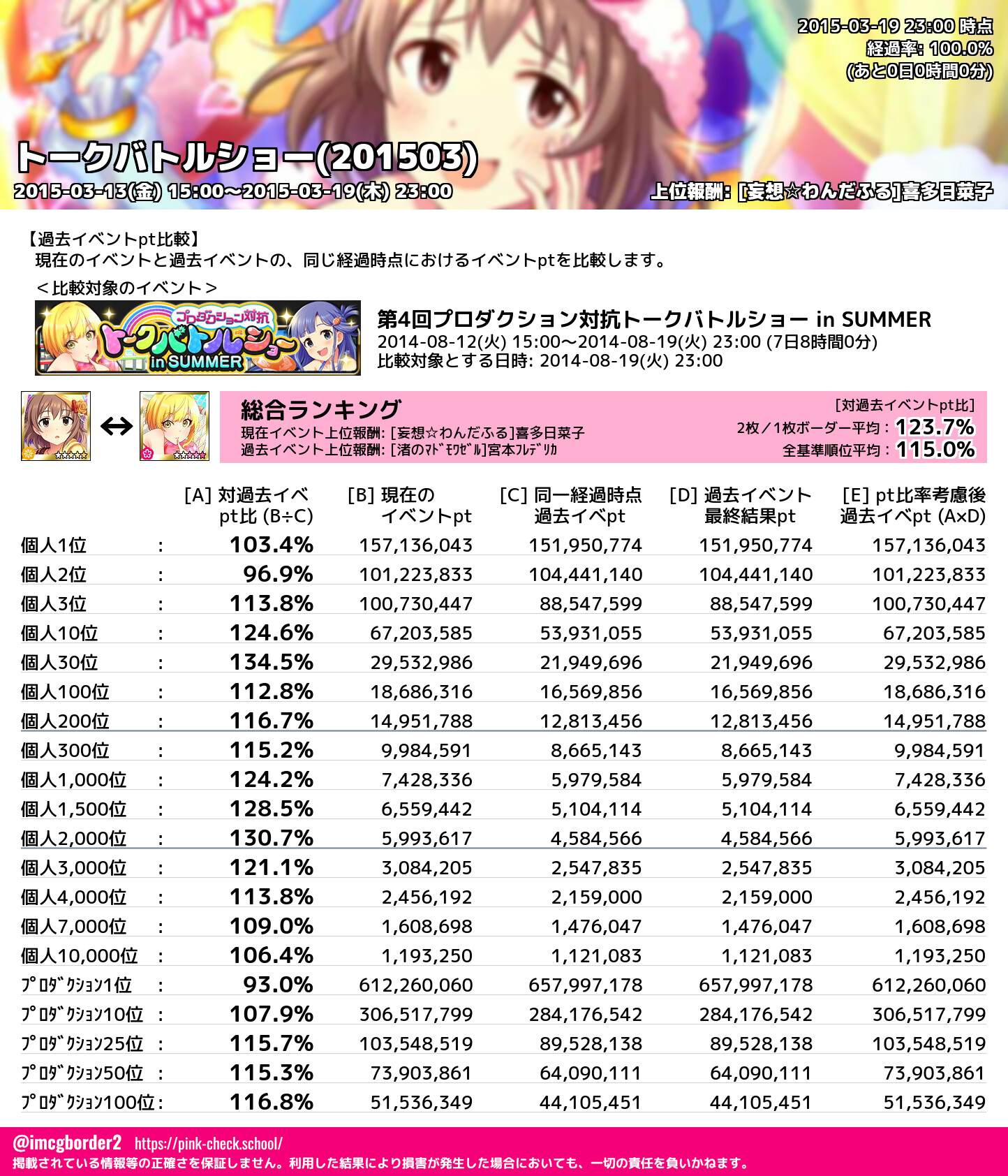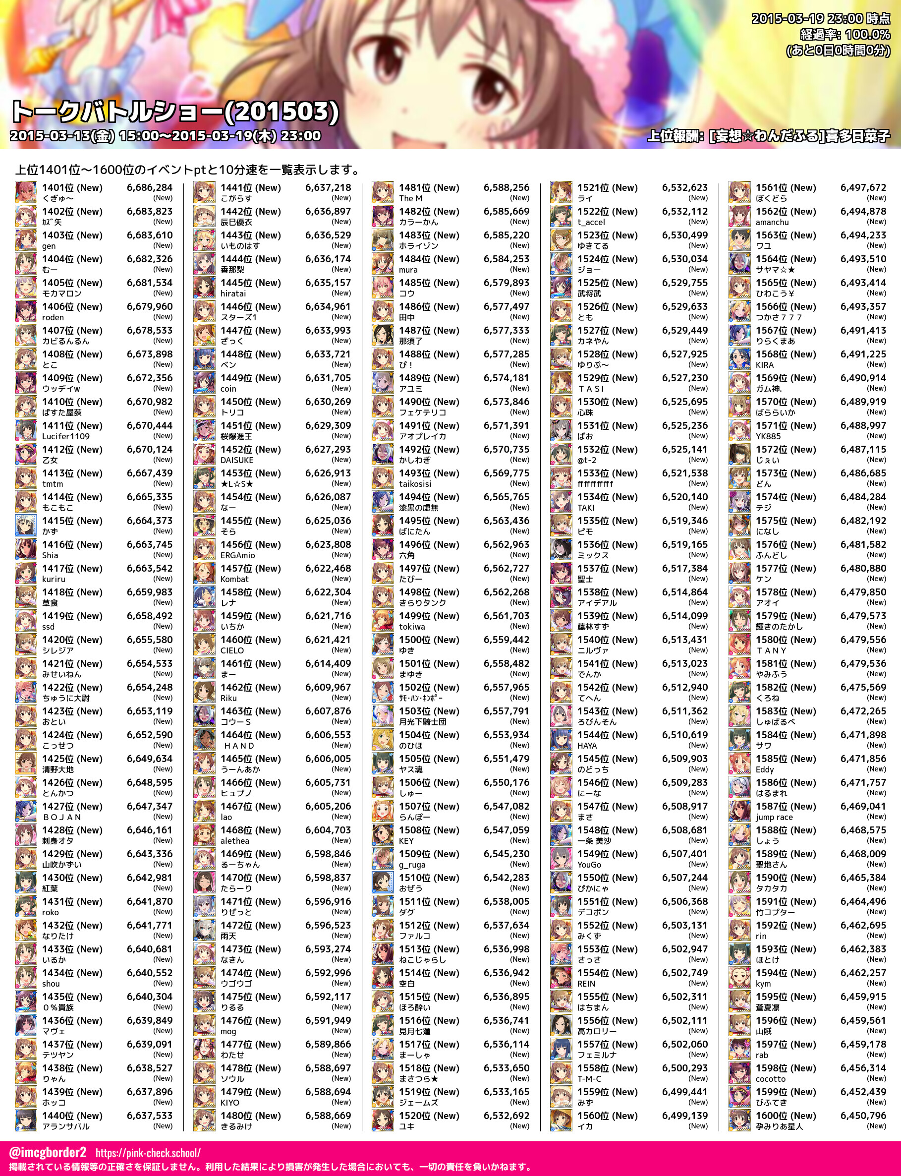 上位プロデューサースコア (2015-03-19 23:00 時点)