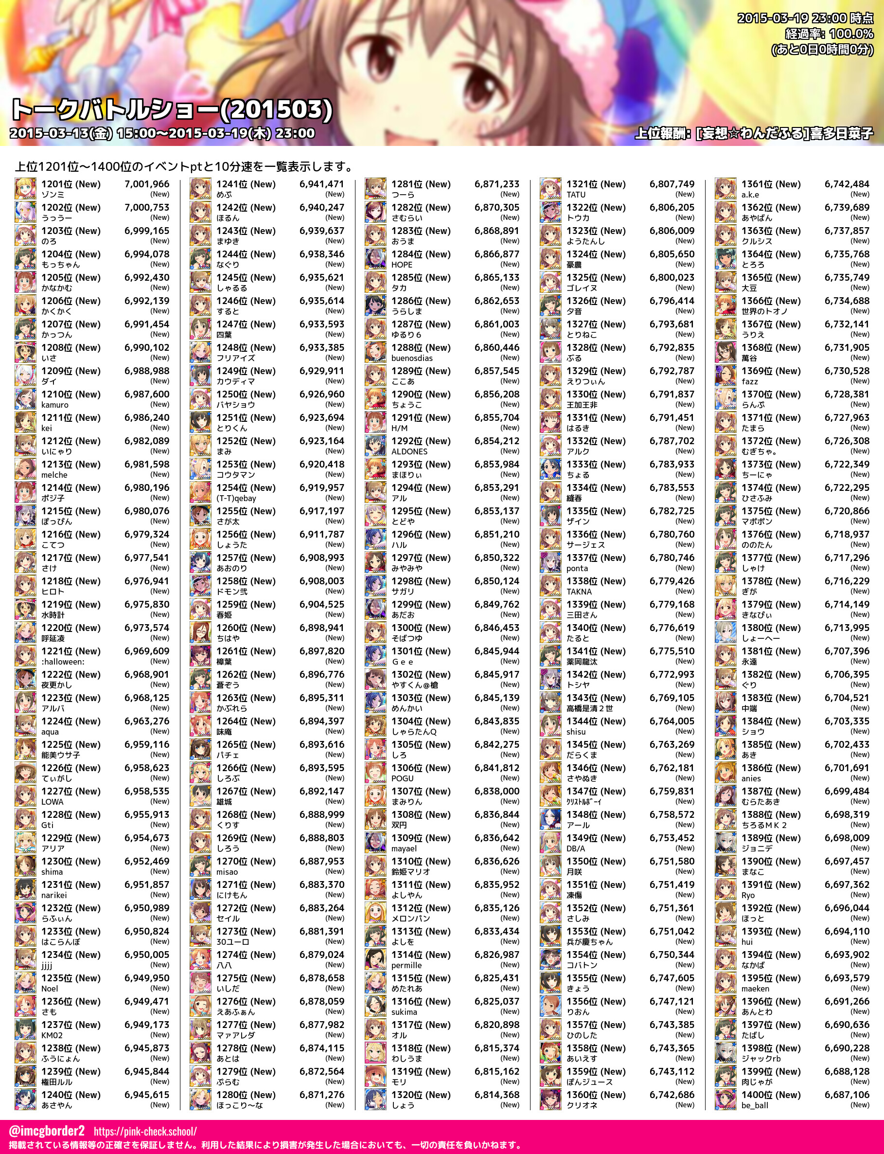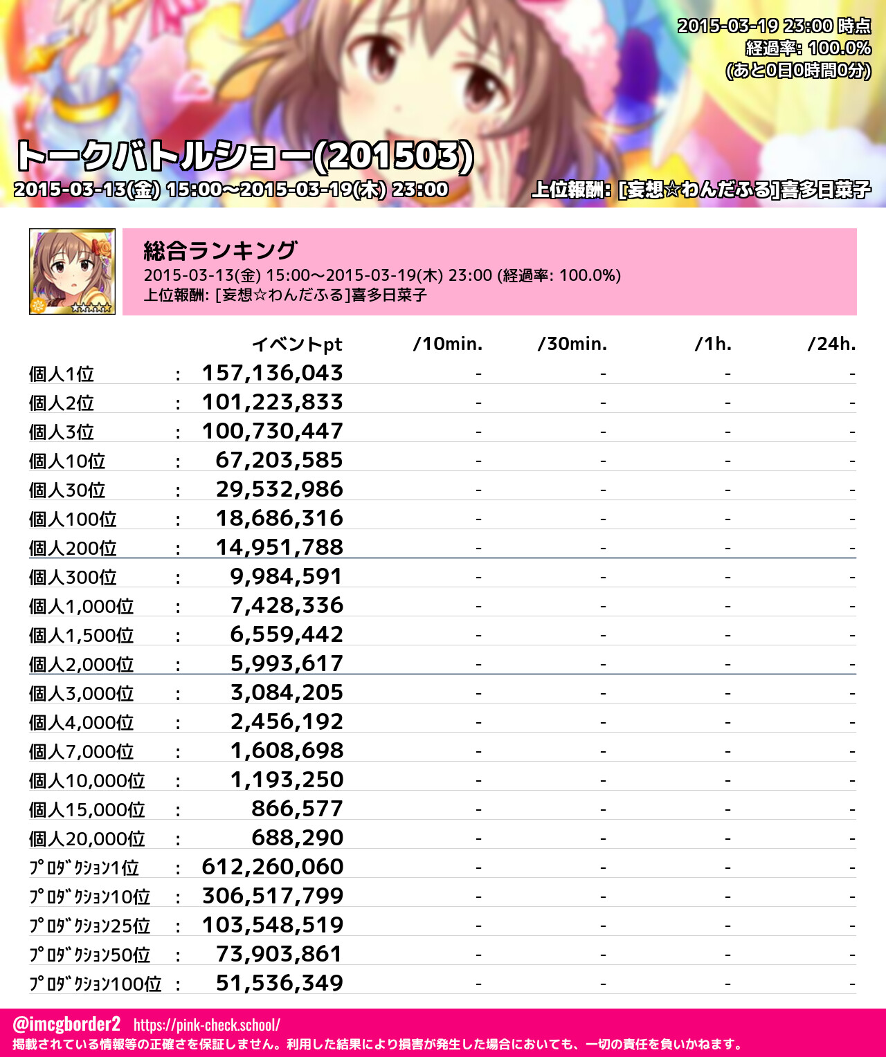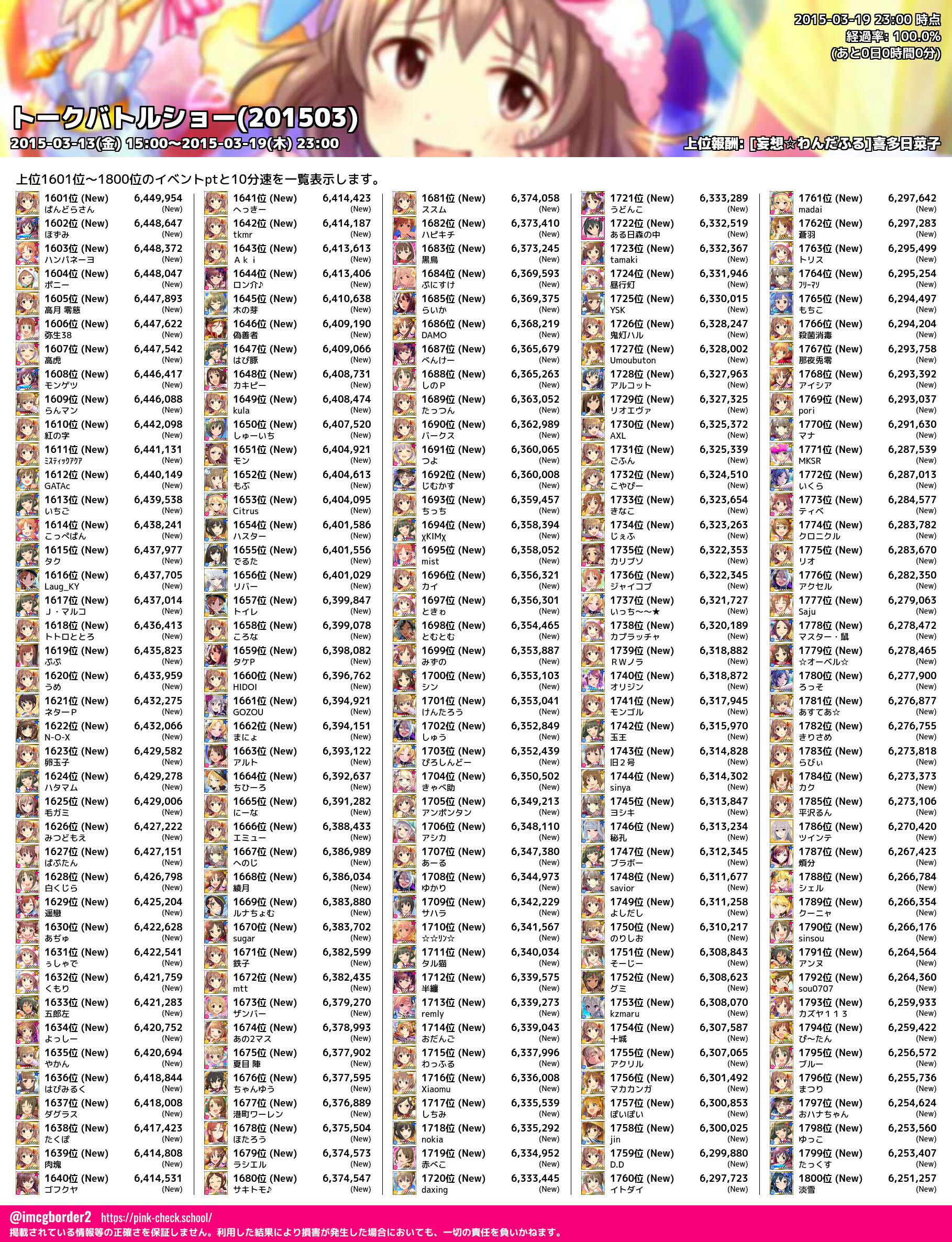 | 開催期間 | 2015-03-13(金) 15:00~2015-03-19(木) 23:00 |