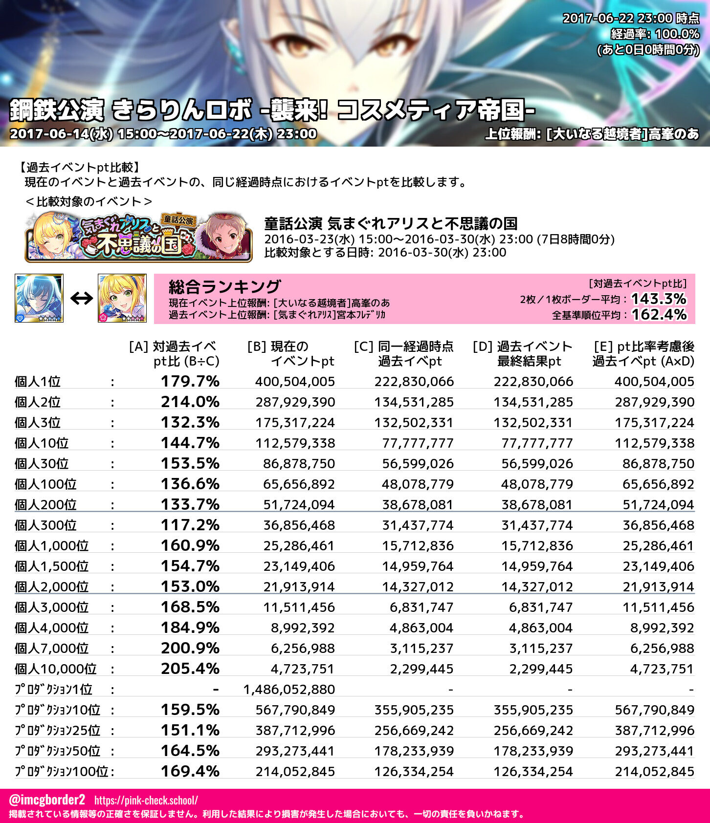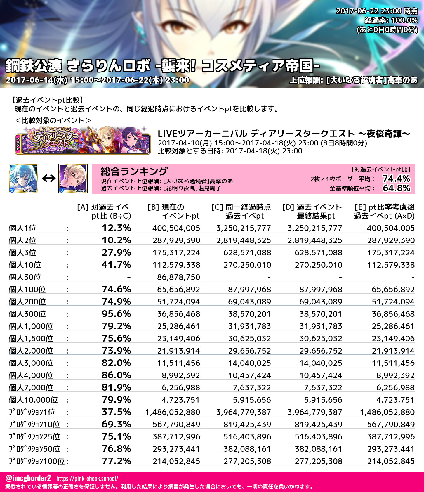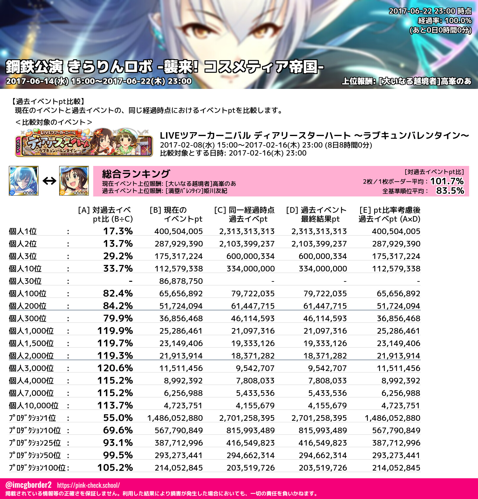 鋼鉄公演 きらりんロボ -襲来! コスメティア帝国- 結果集計完了