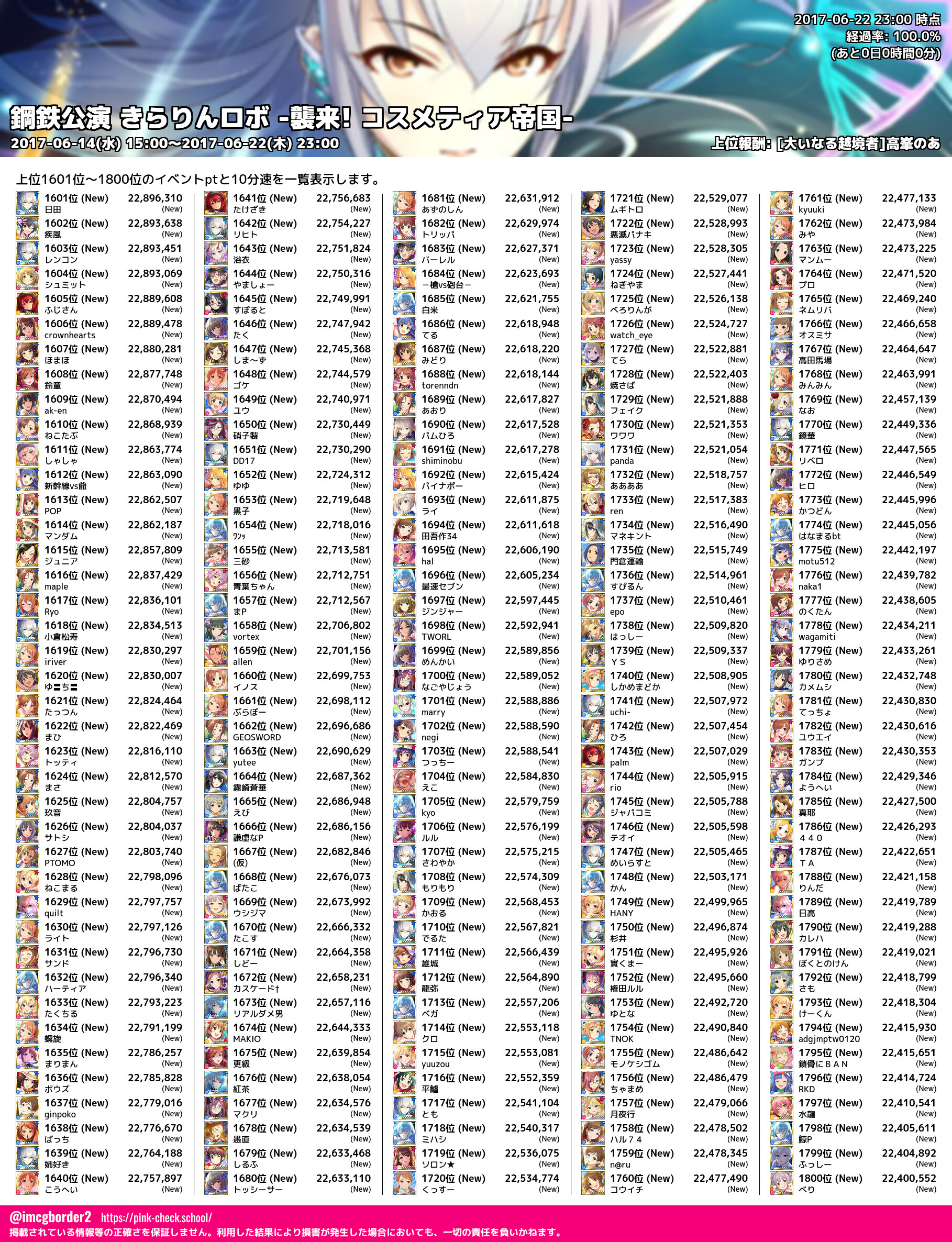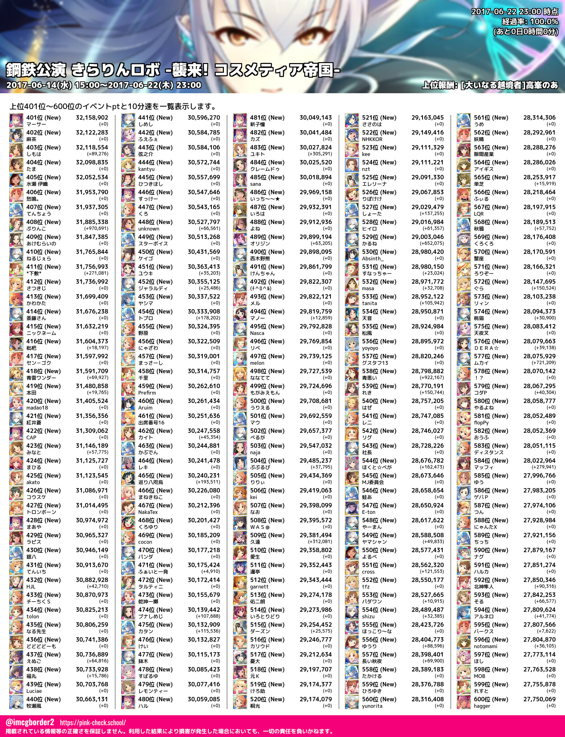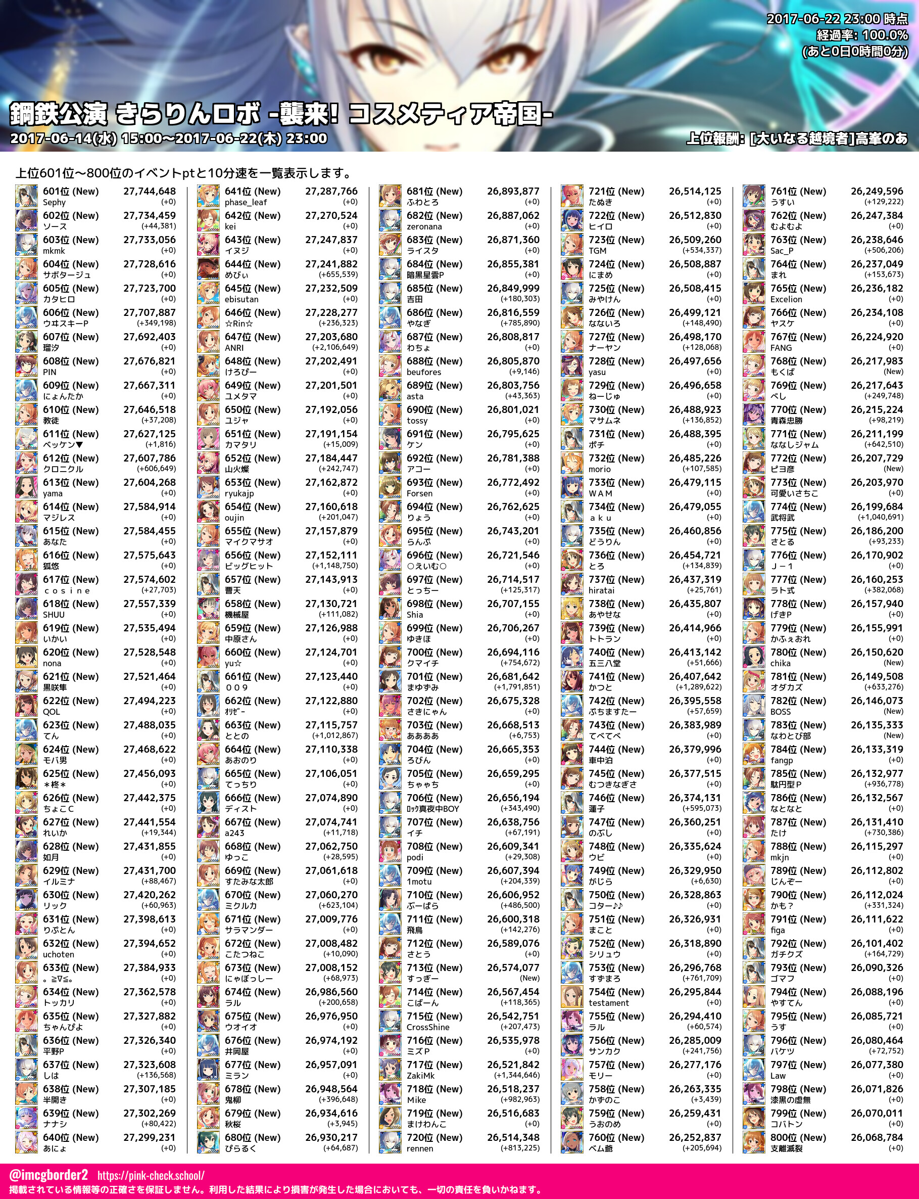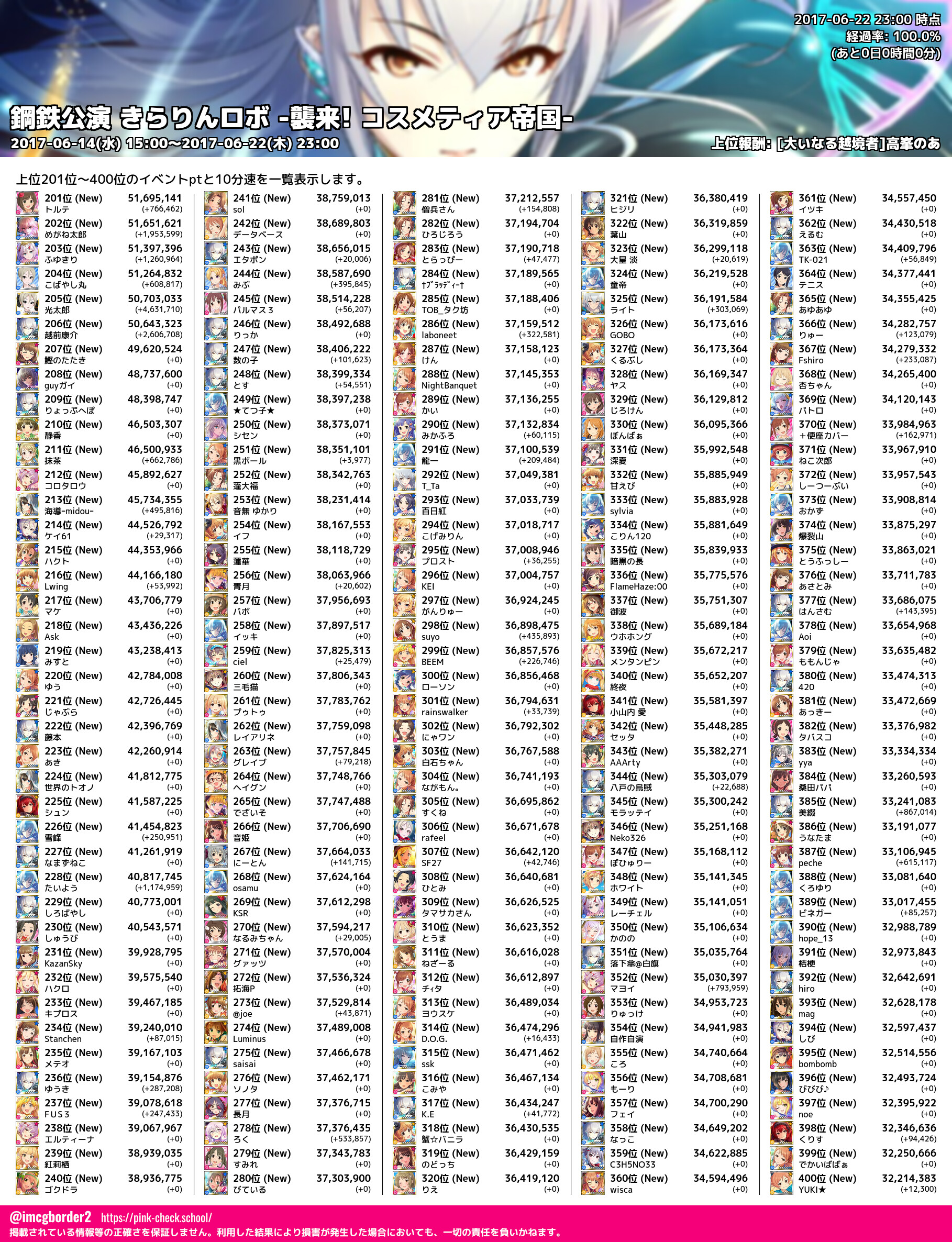 上位プロデューサースコア (2017-06-22 23:00 時点)