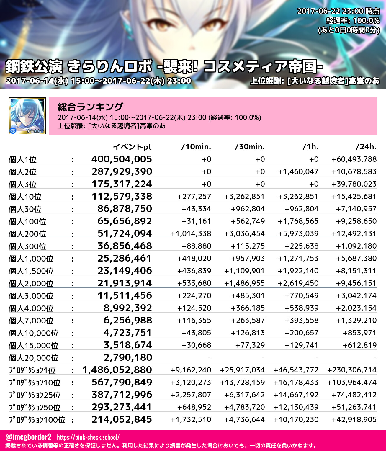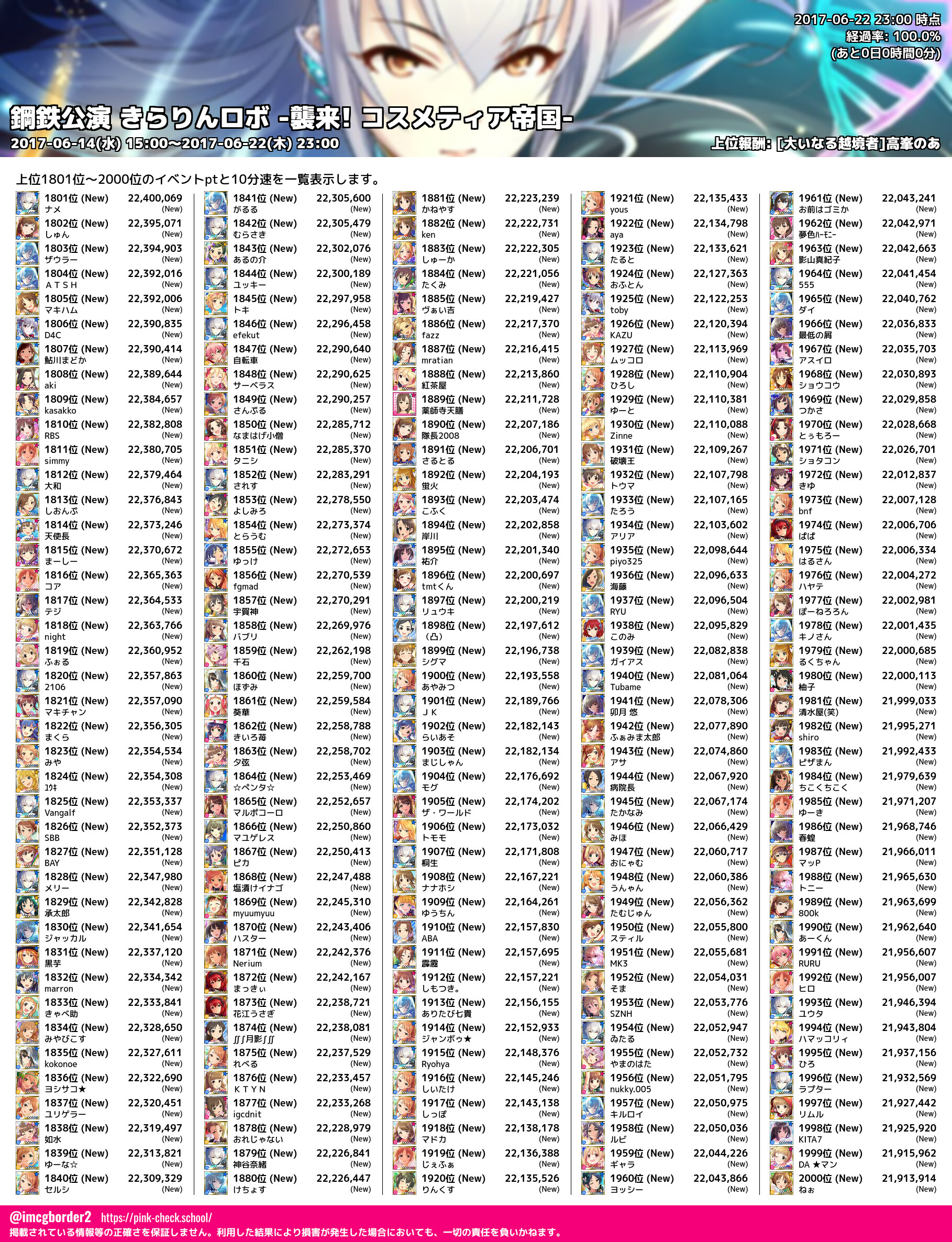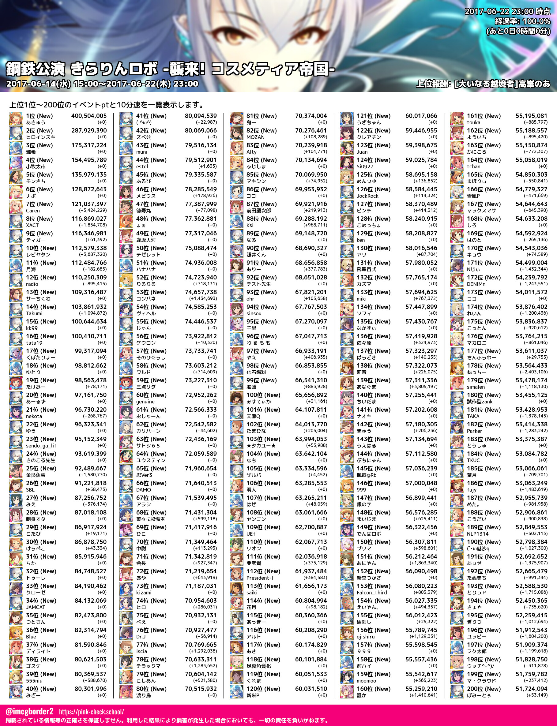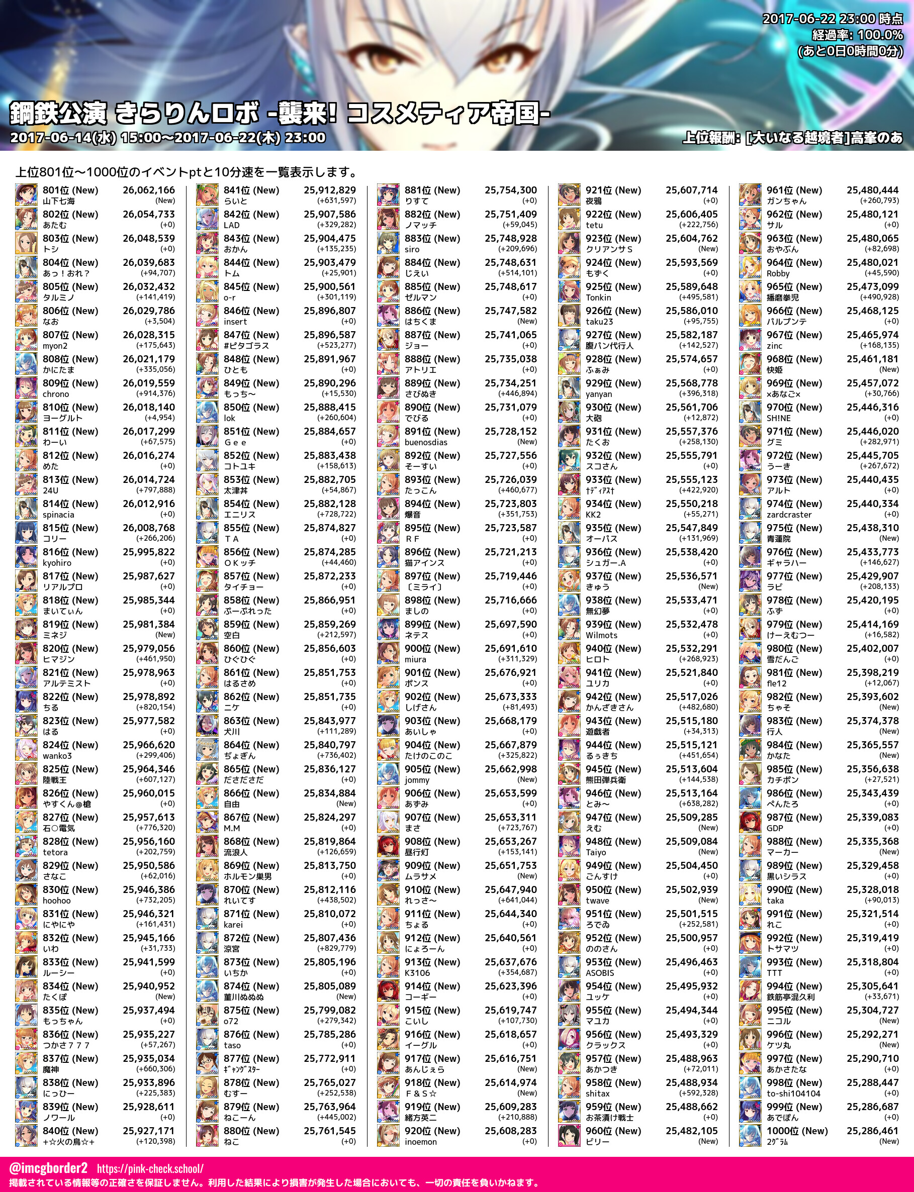上位プロデューサースコア (2017-06-22 23:00 時点)