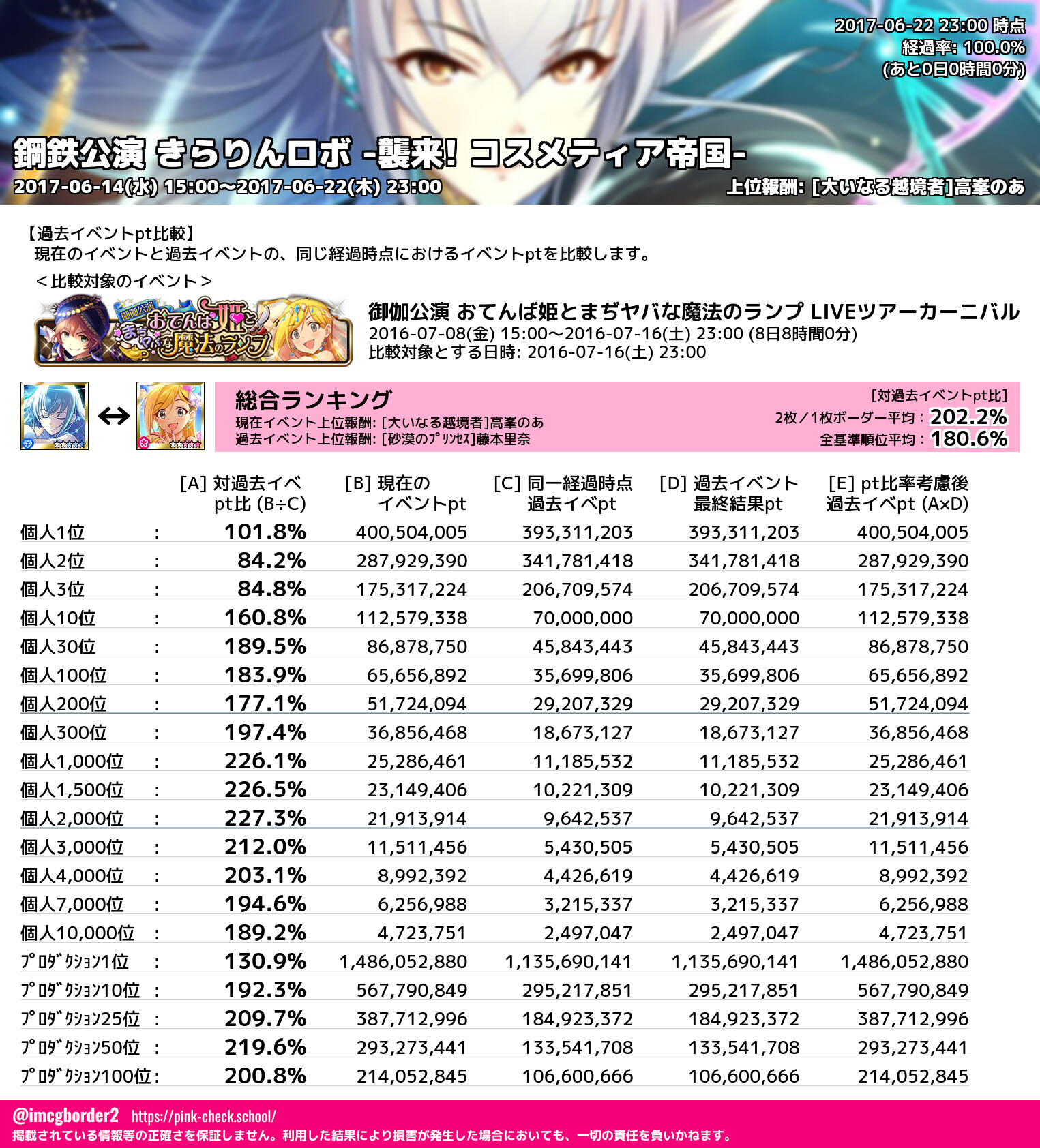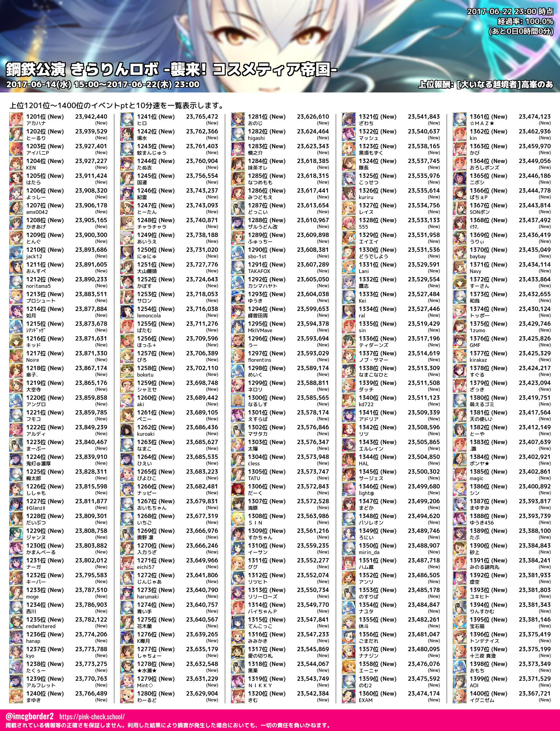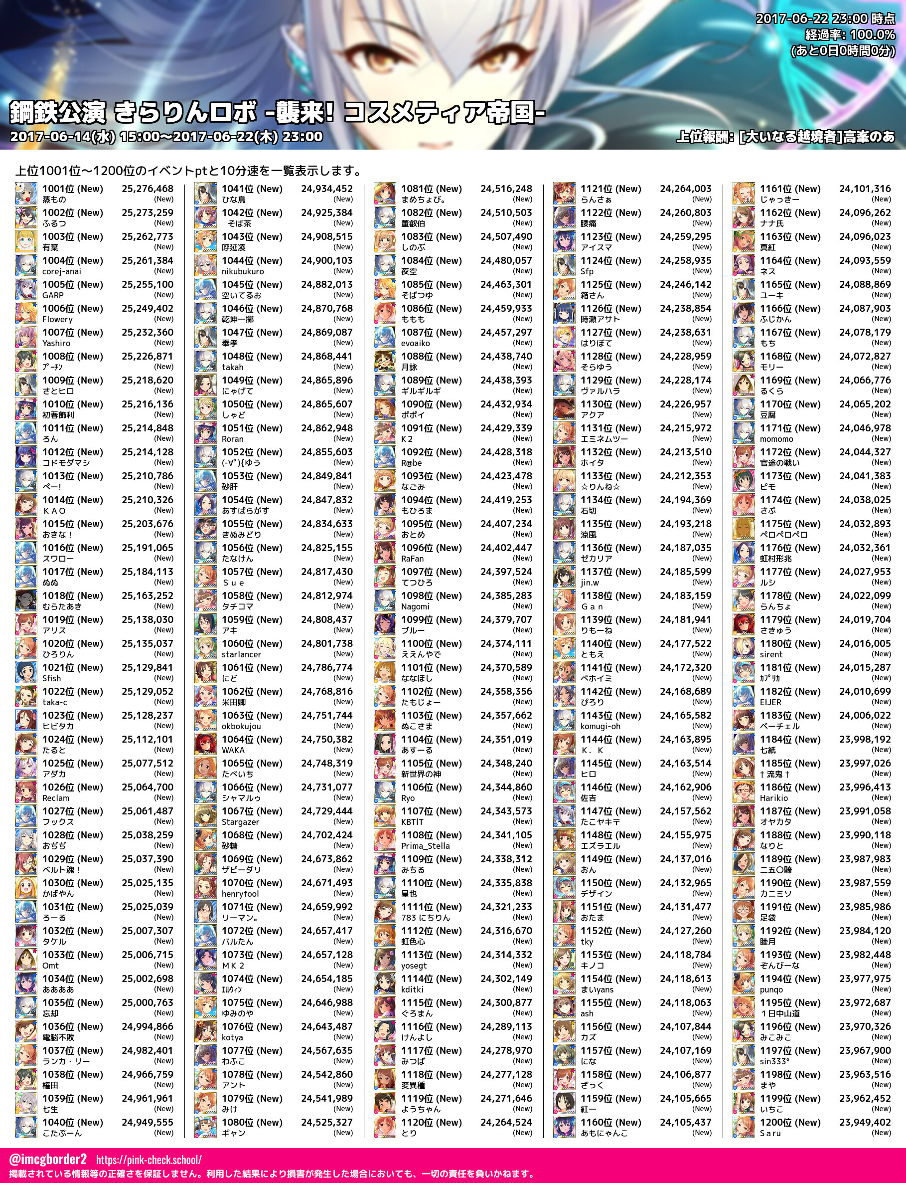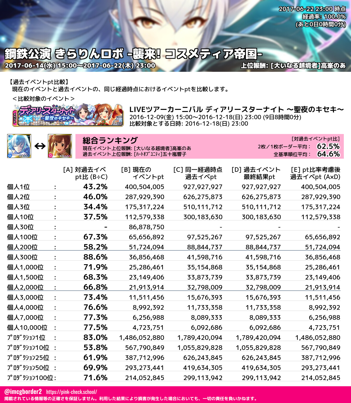 上位プロデューサースコア (2017-06-22 23:00 時点)