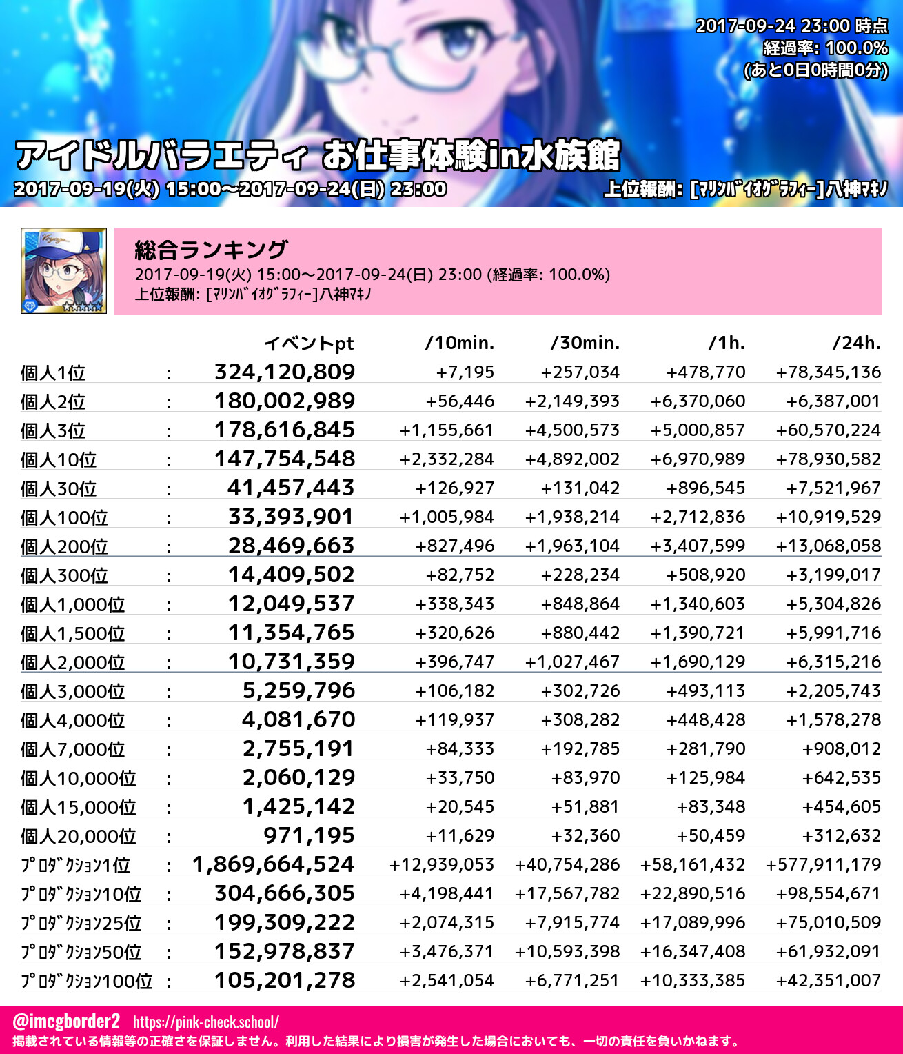 上位プロデューサースコア (2017-09-24 23:00 時点)