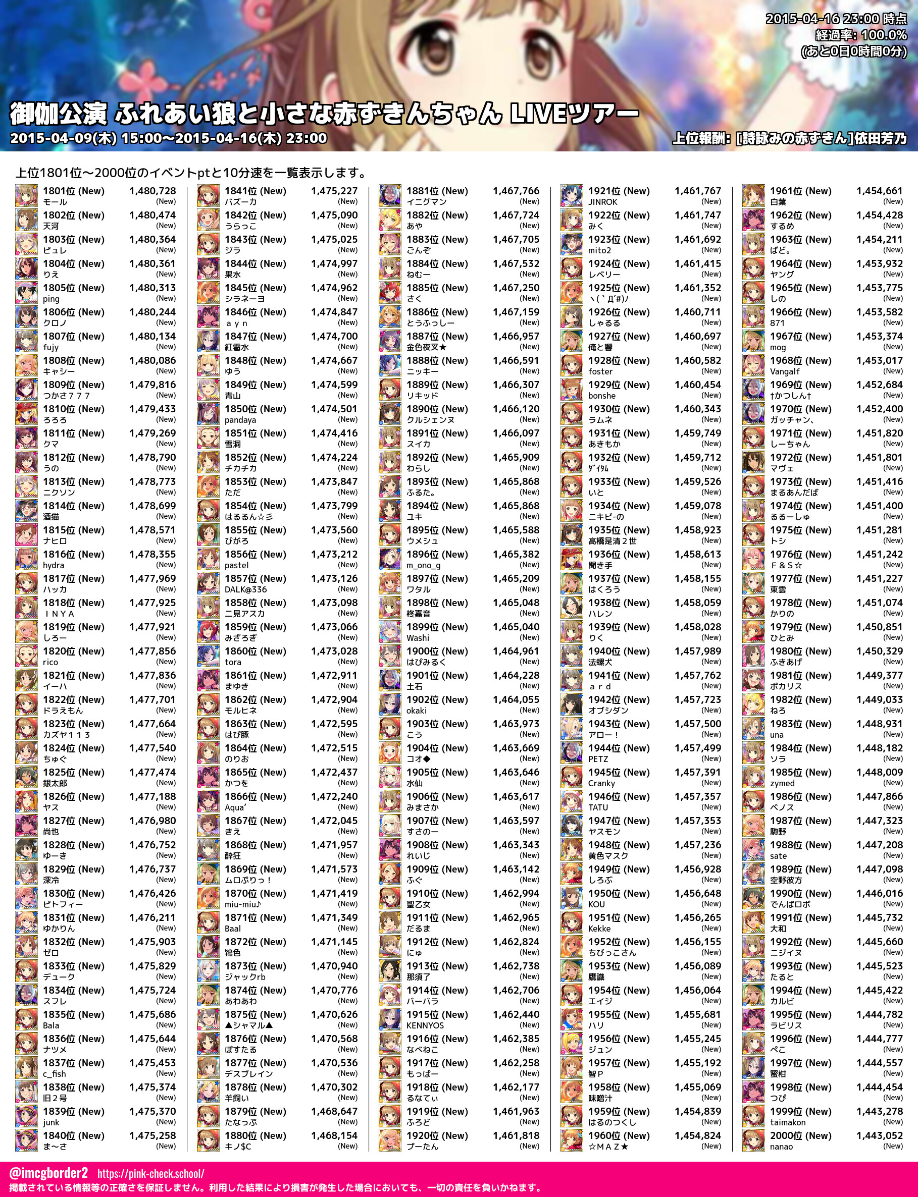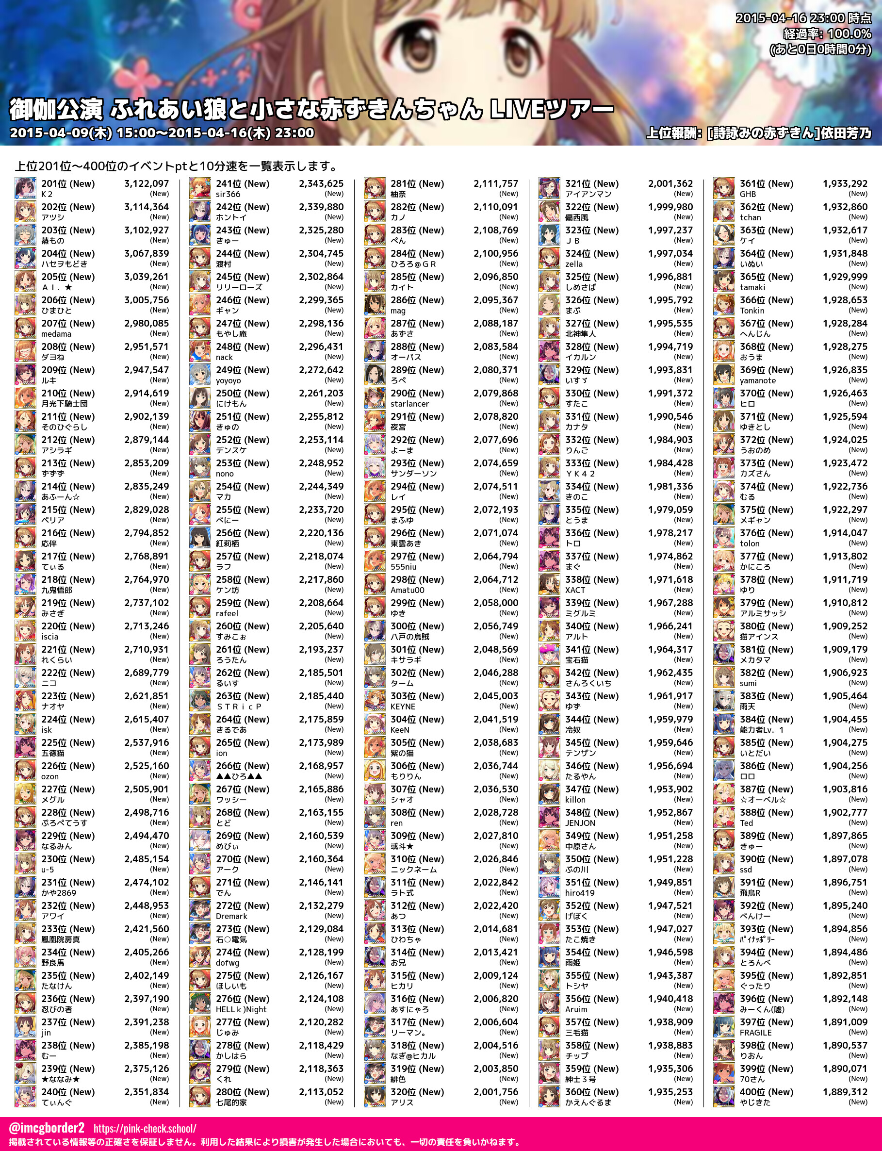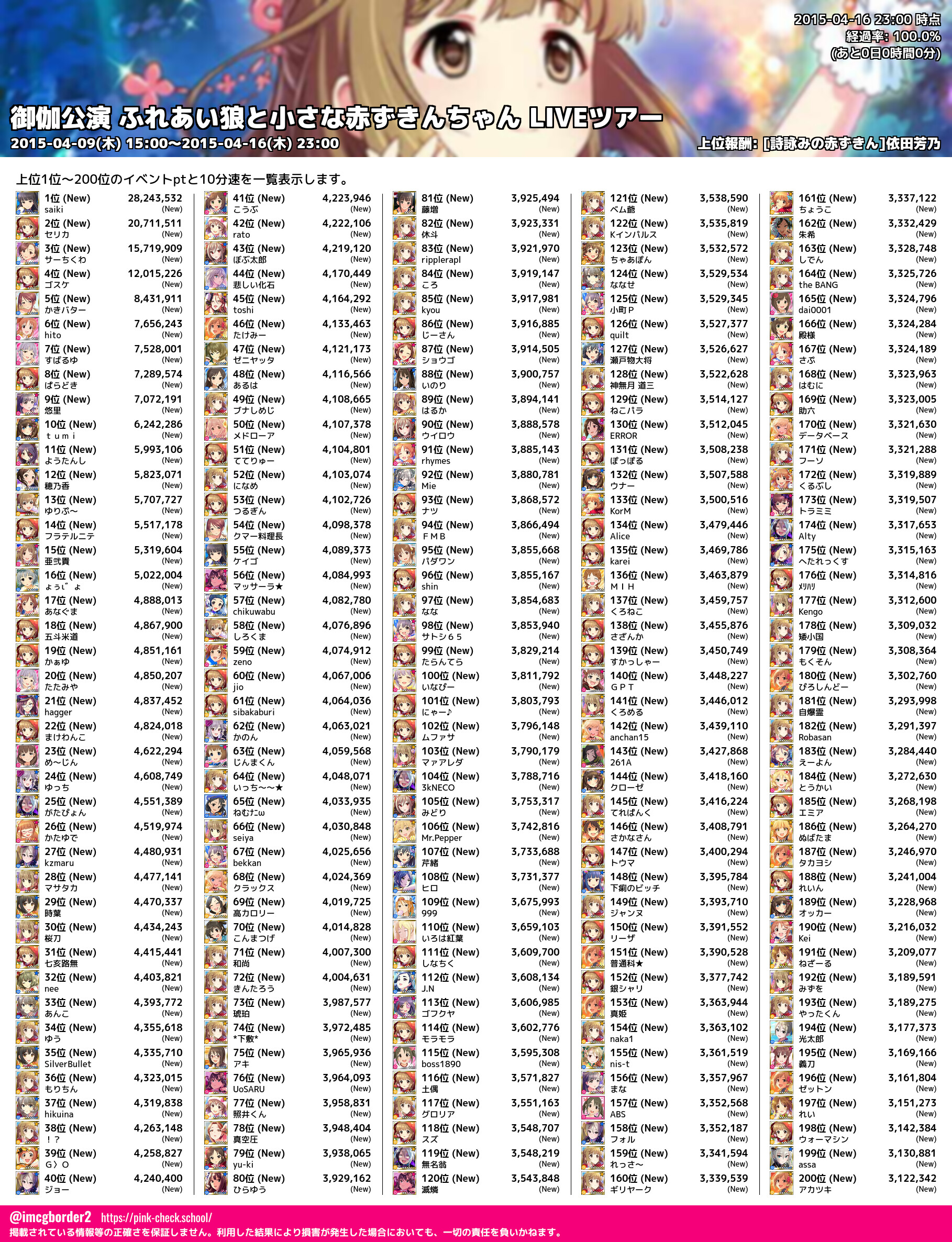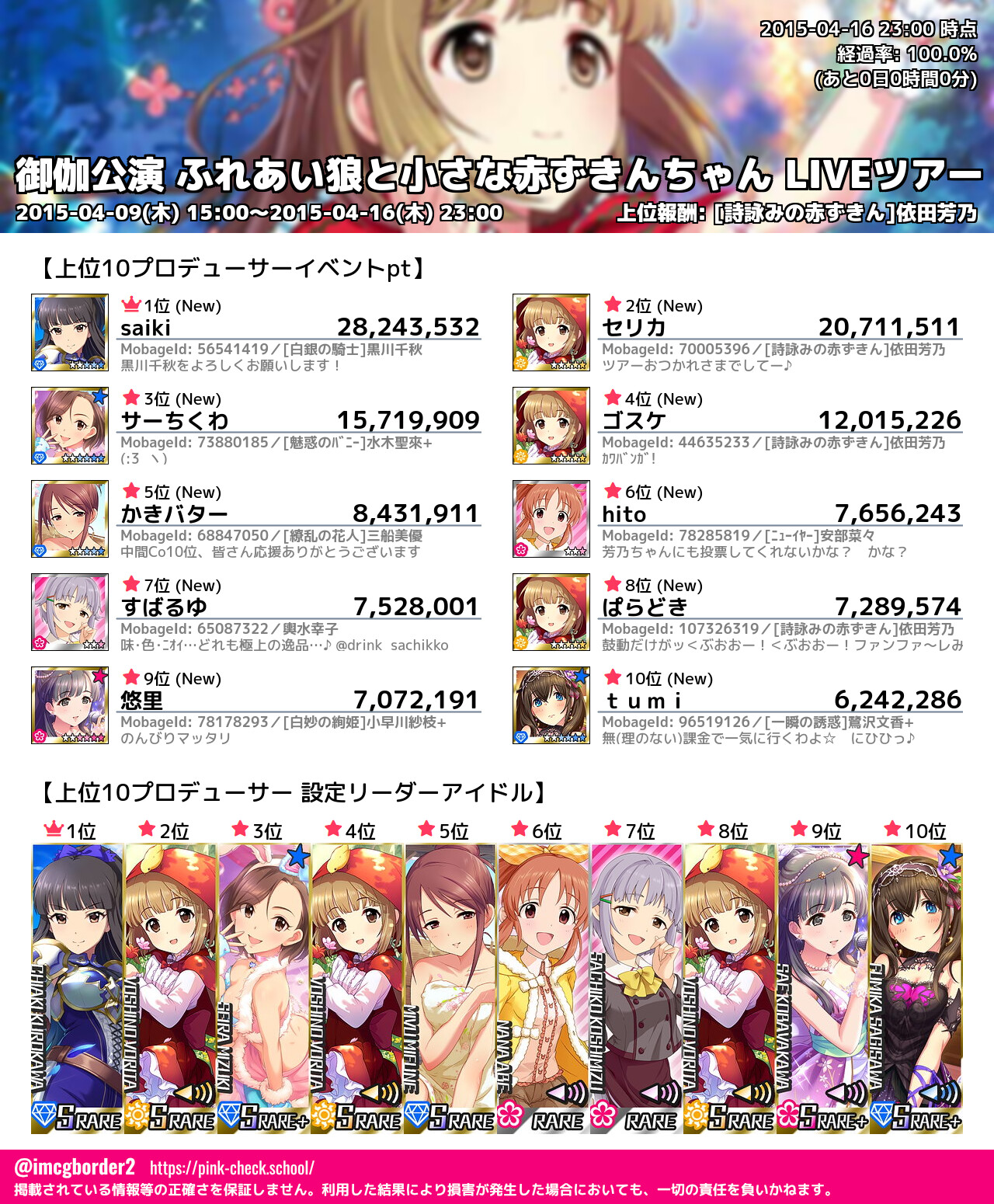 上位プロデューサースコア (2015-04-16 23:00 時点)