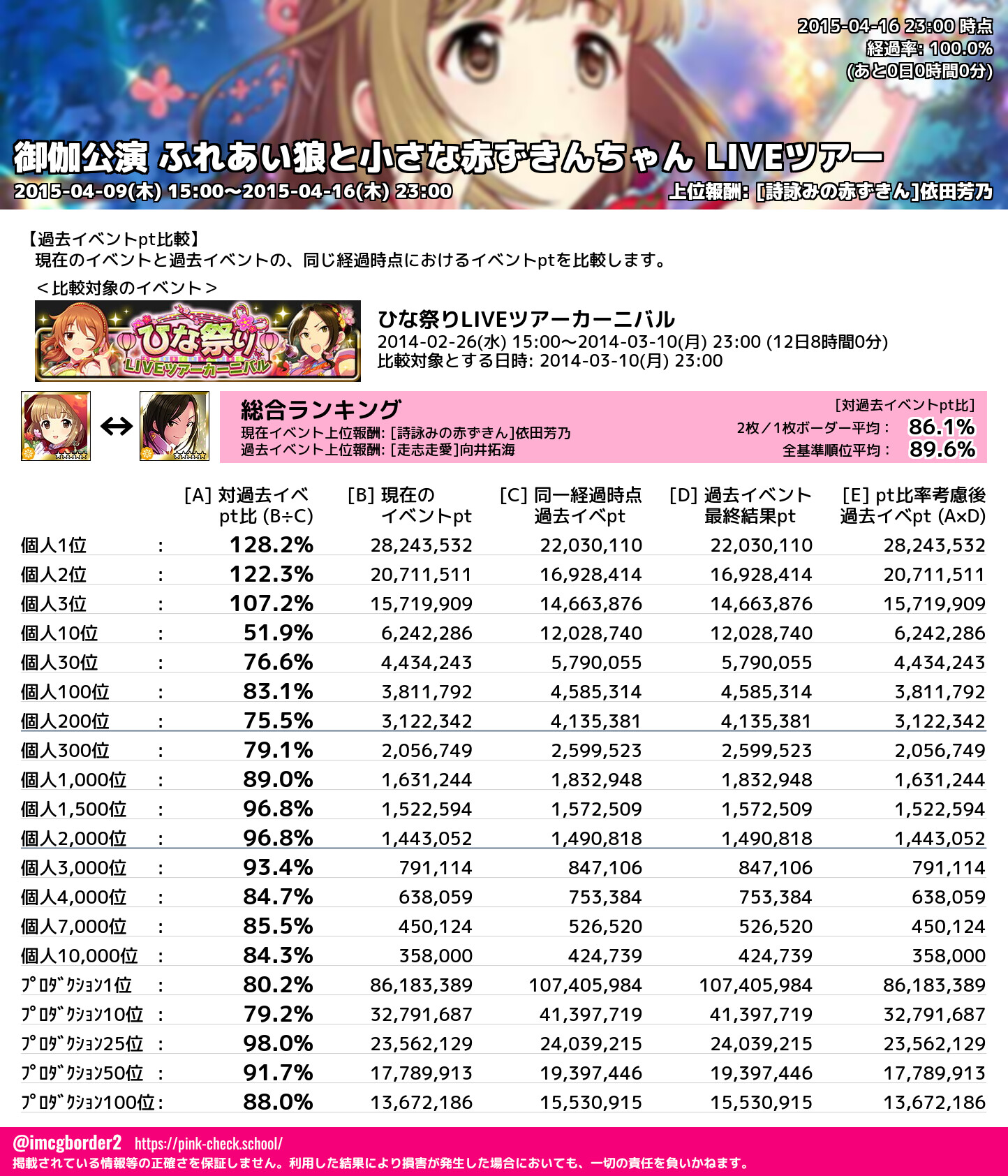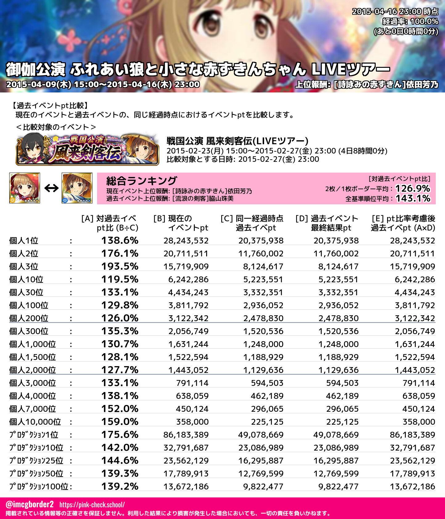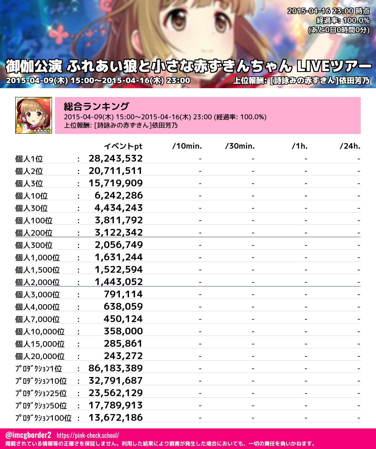 上位プロデューサースコア (2015-04-16 23:00 時点)