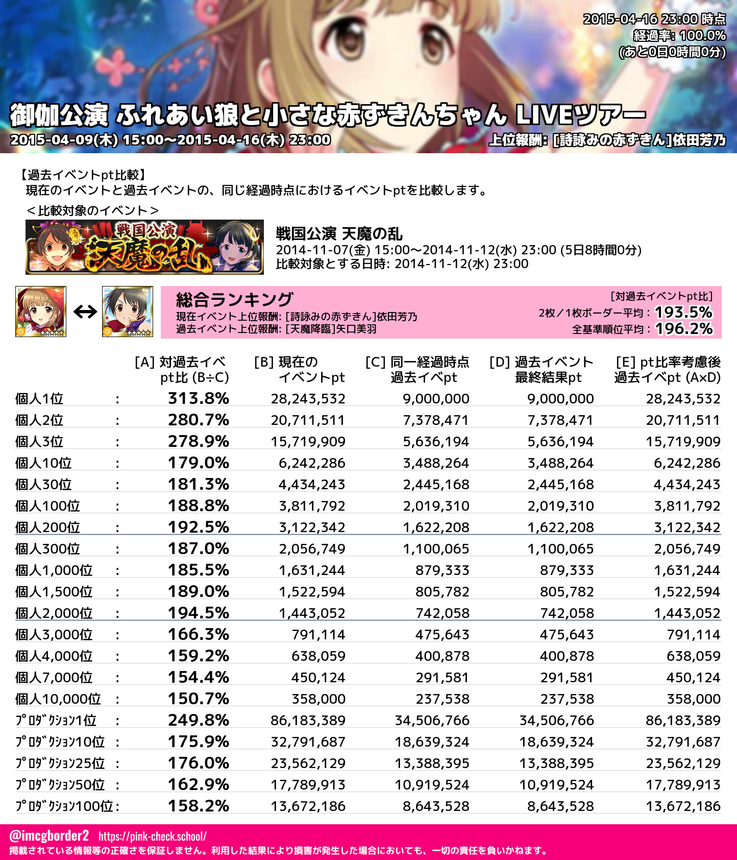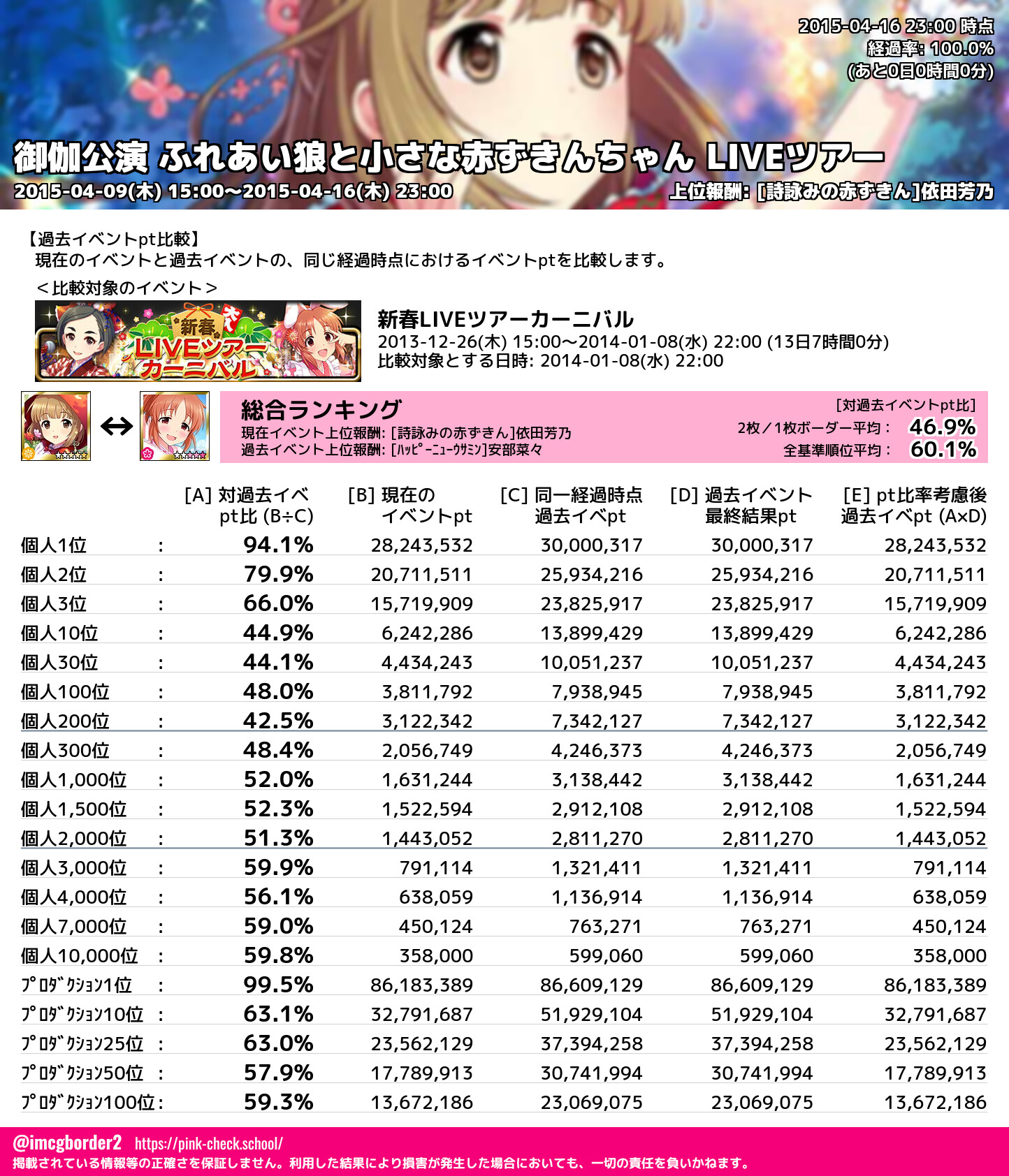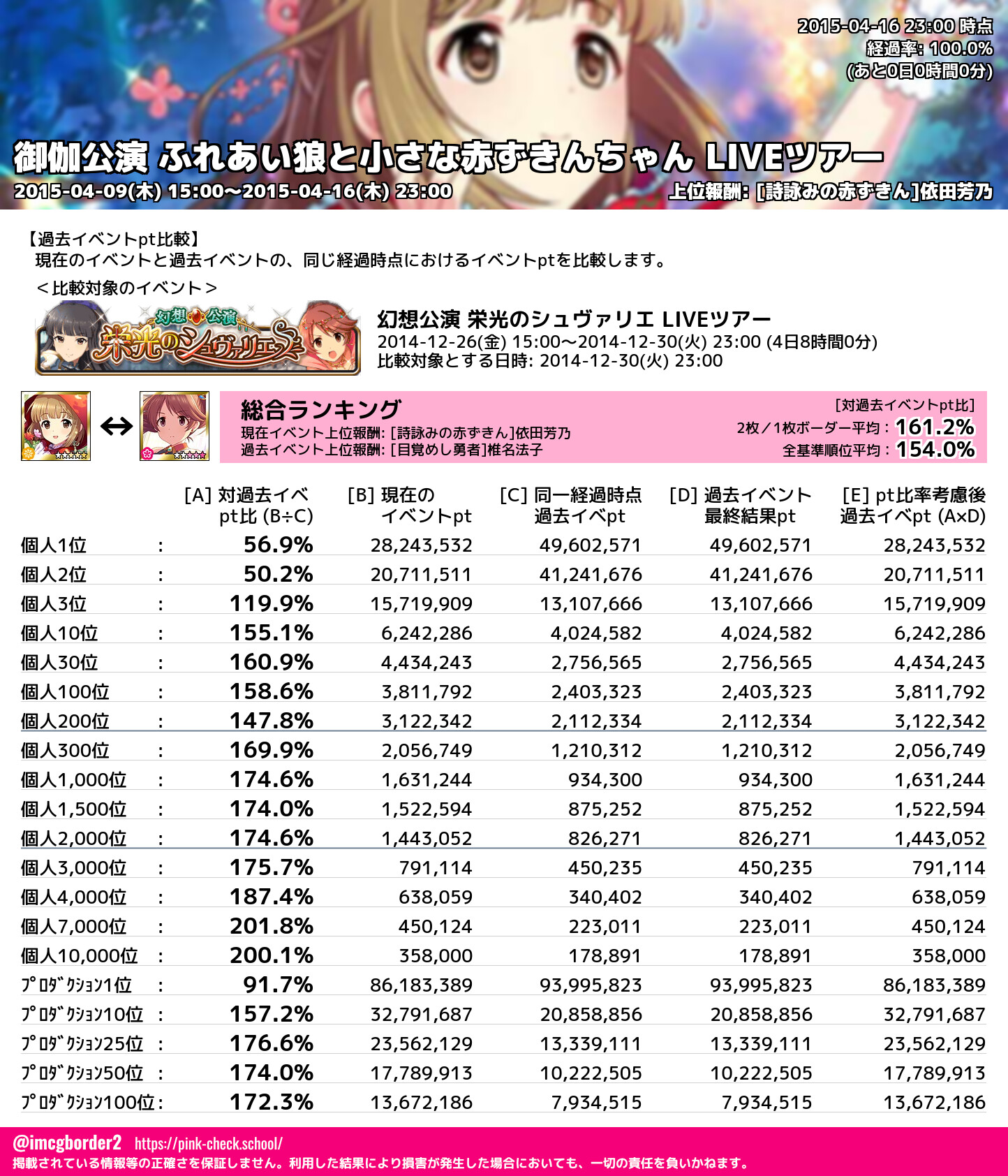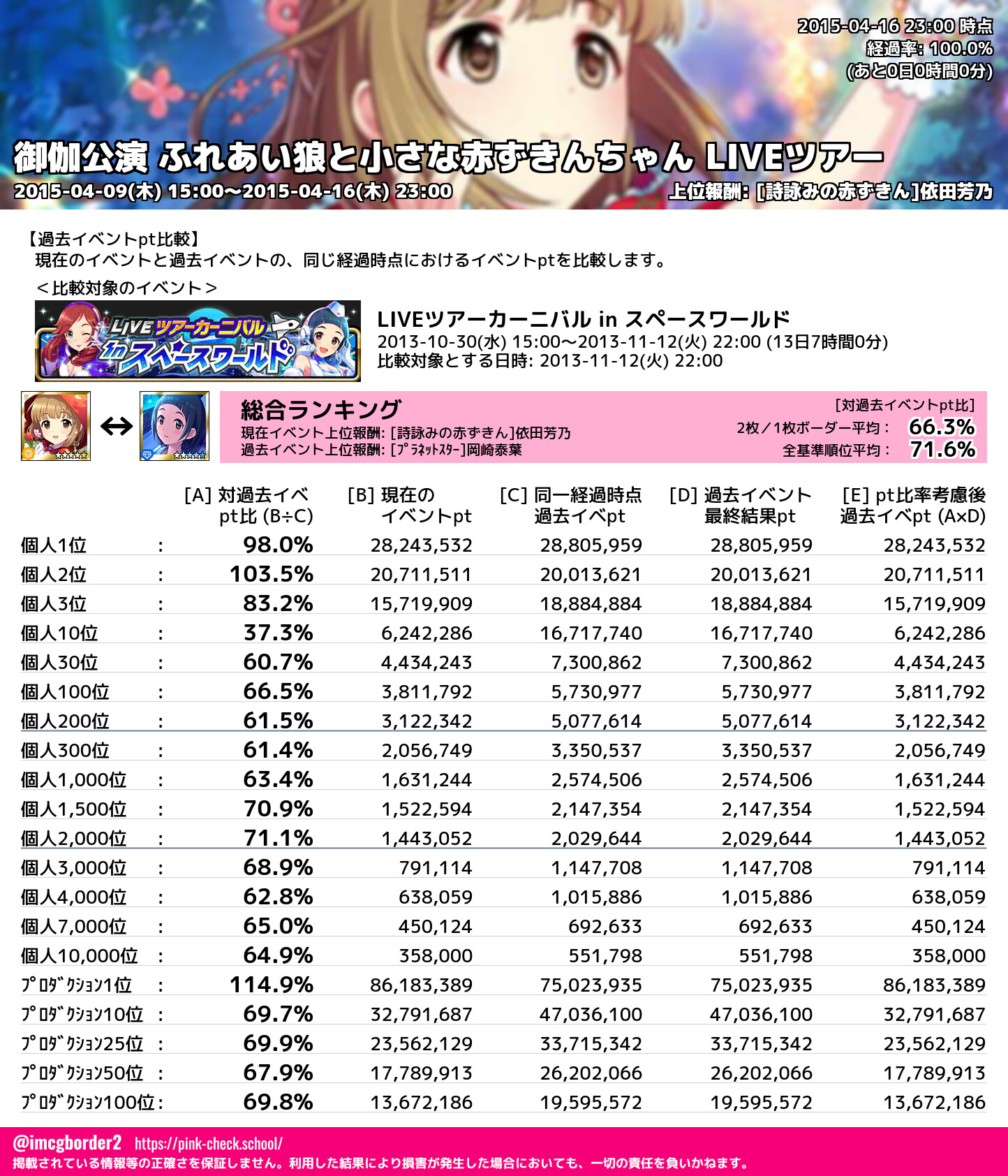 上位プロデューサースコア (2015-04-16 23:00 時点)