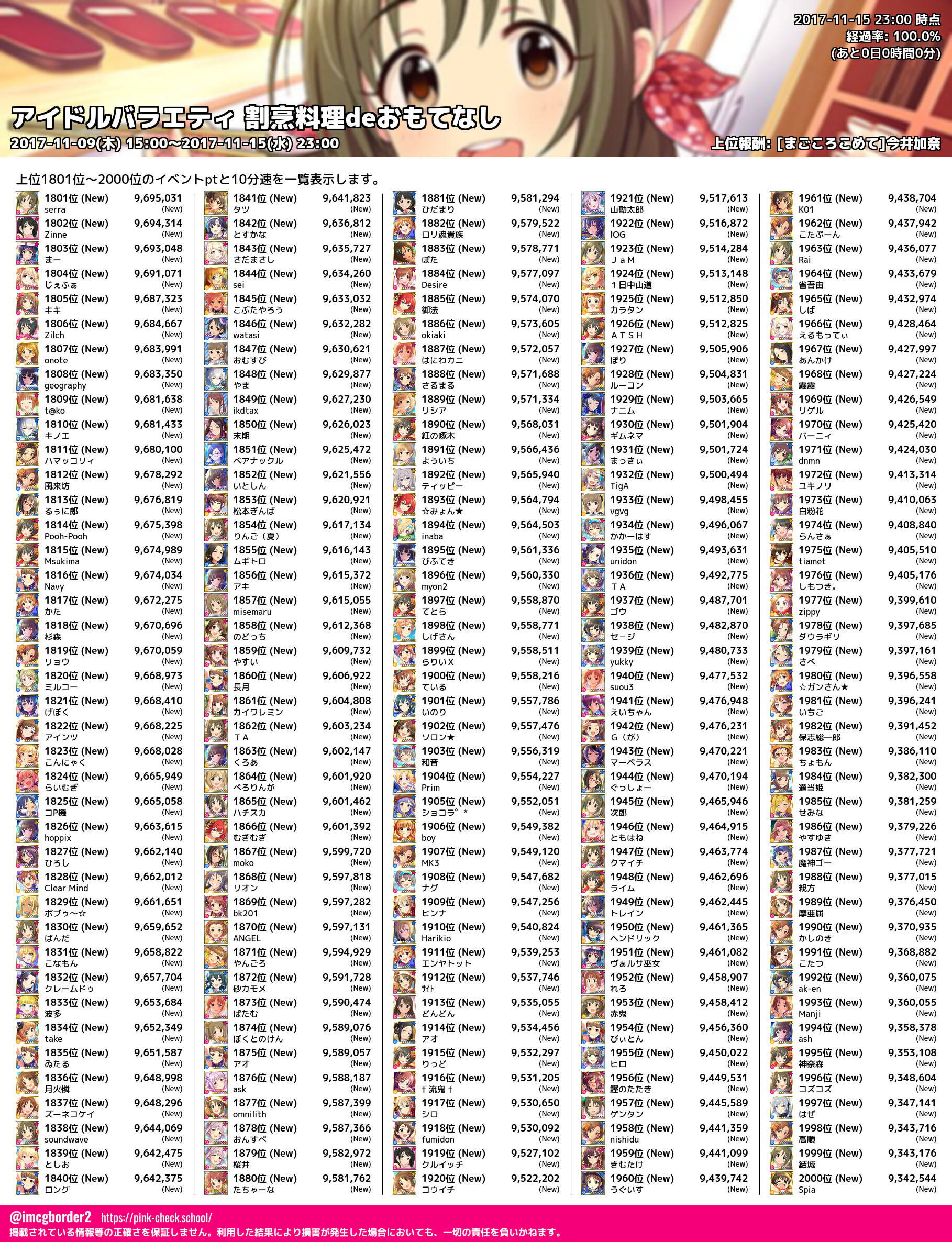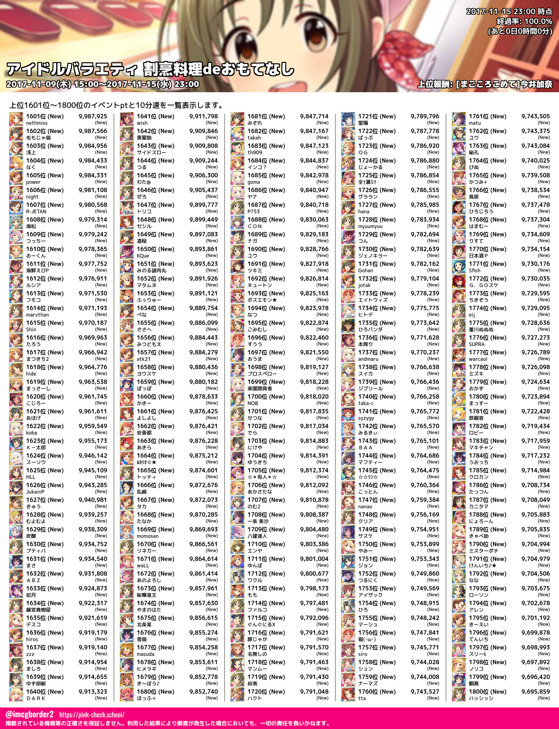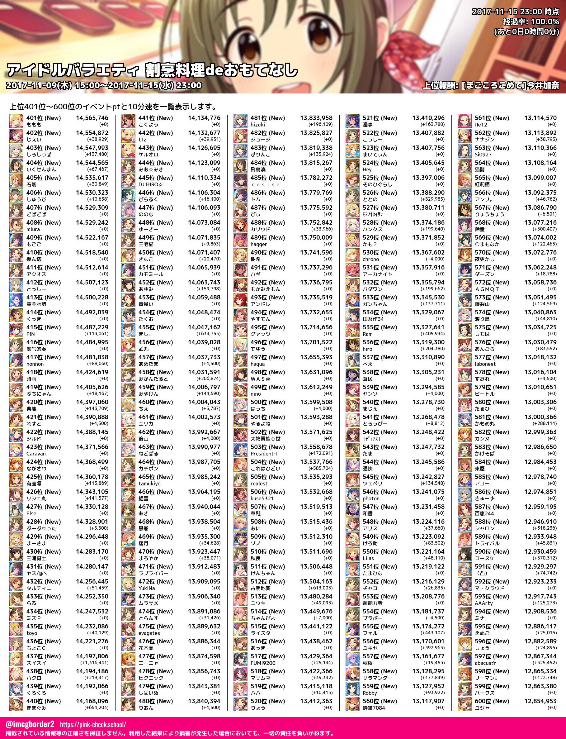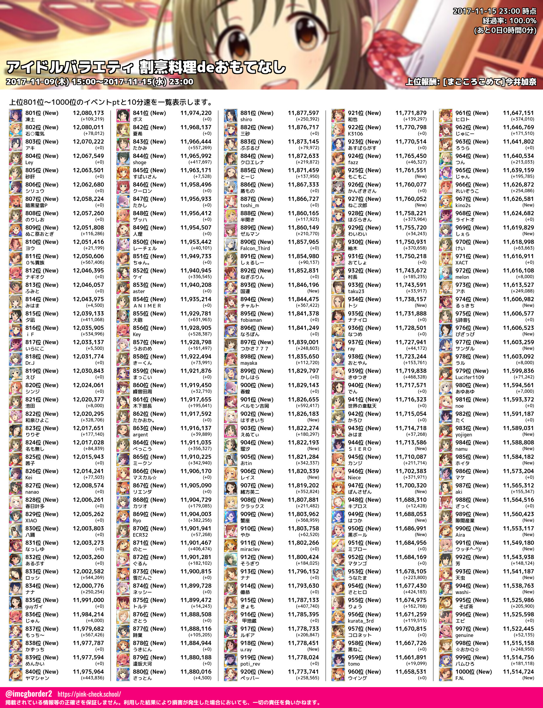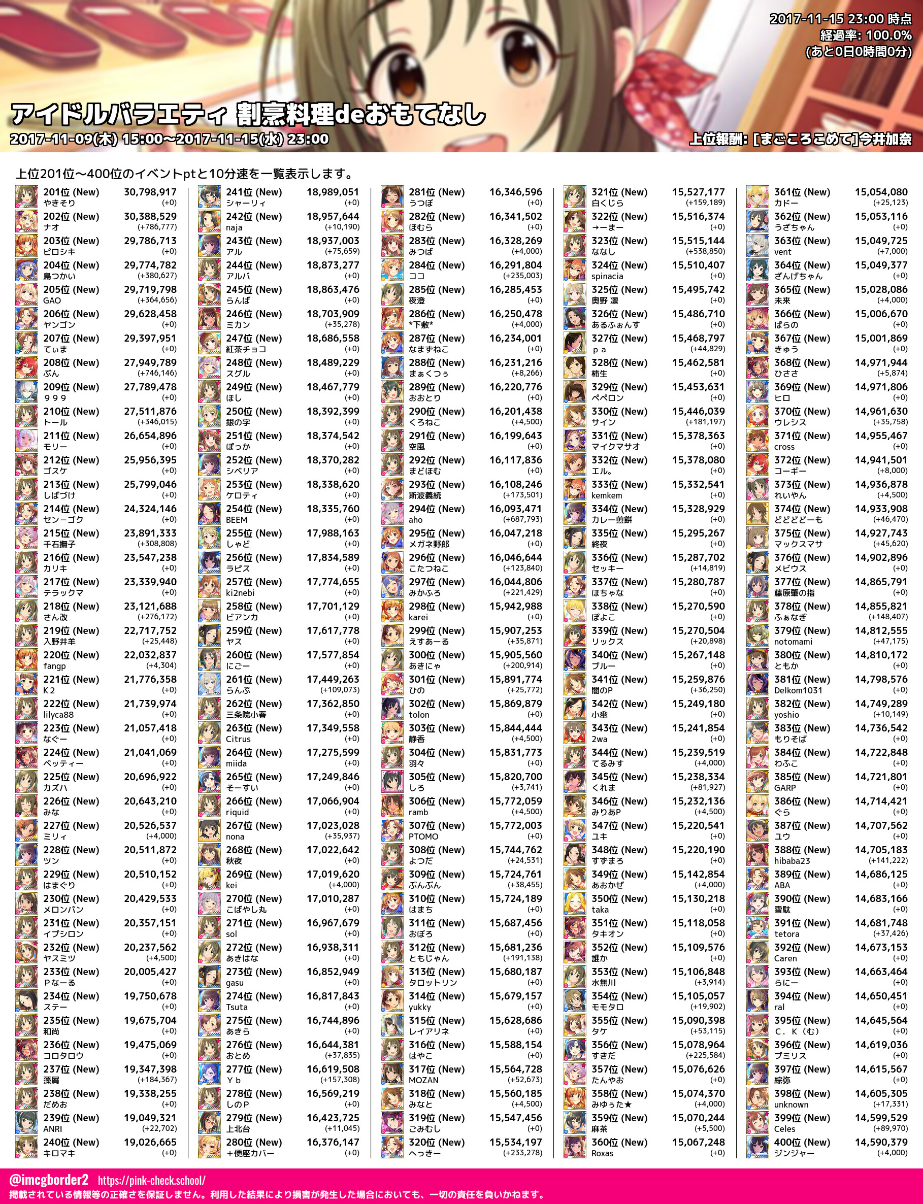 上位プロデューサースコア (2017-11-15 23:00 時点)
