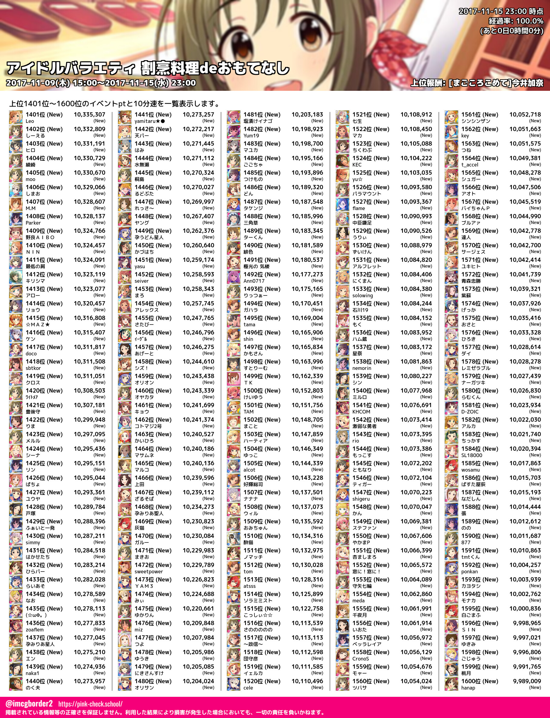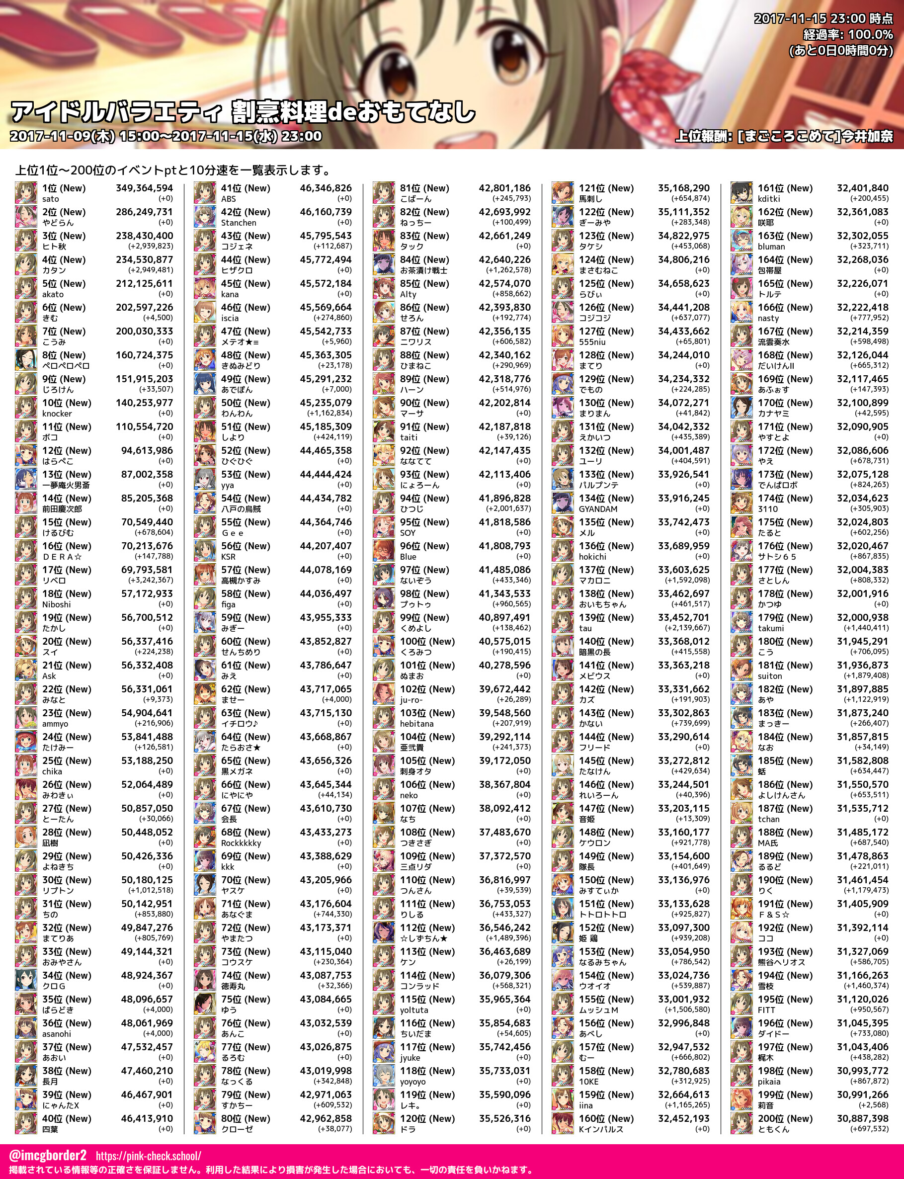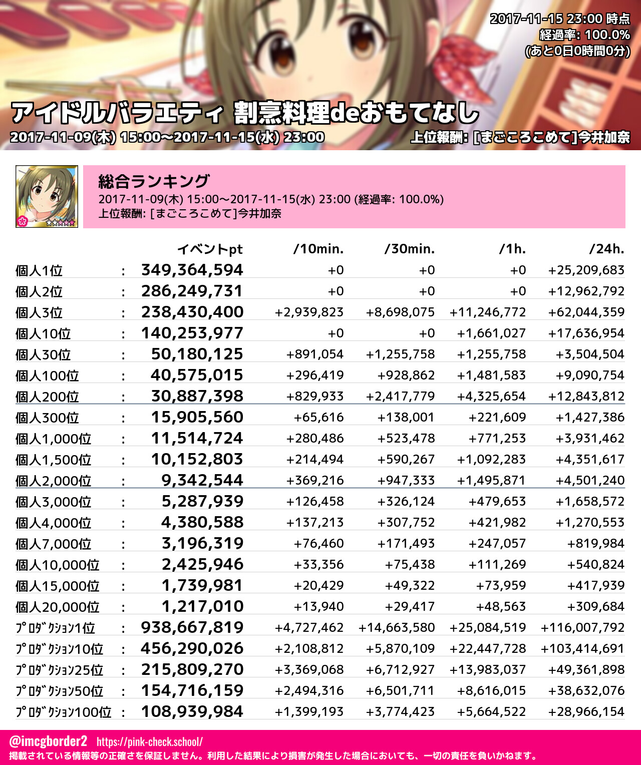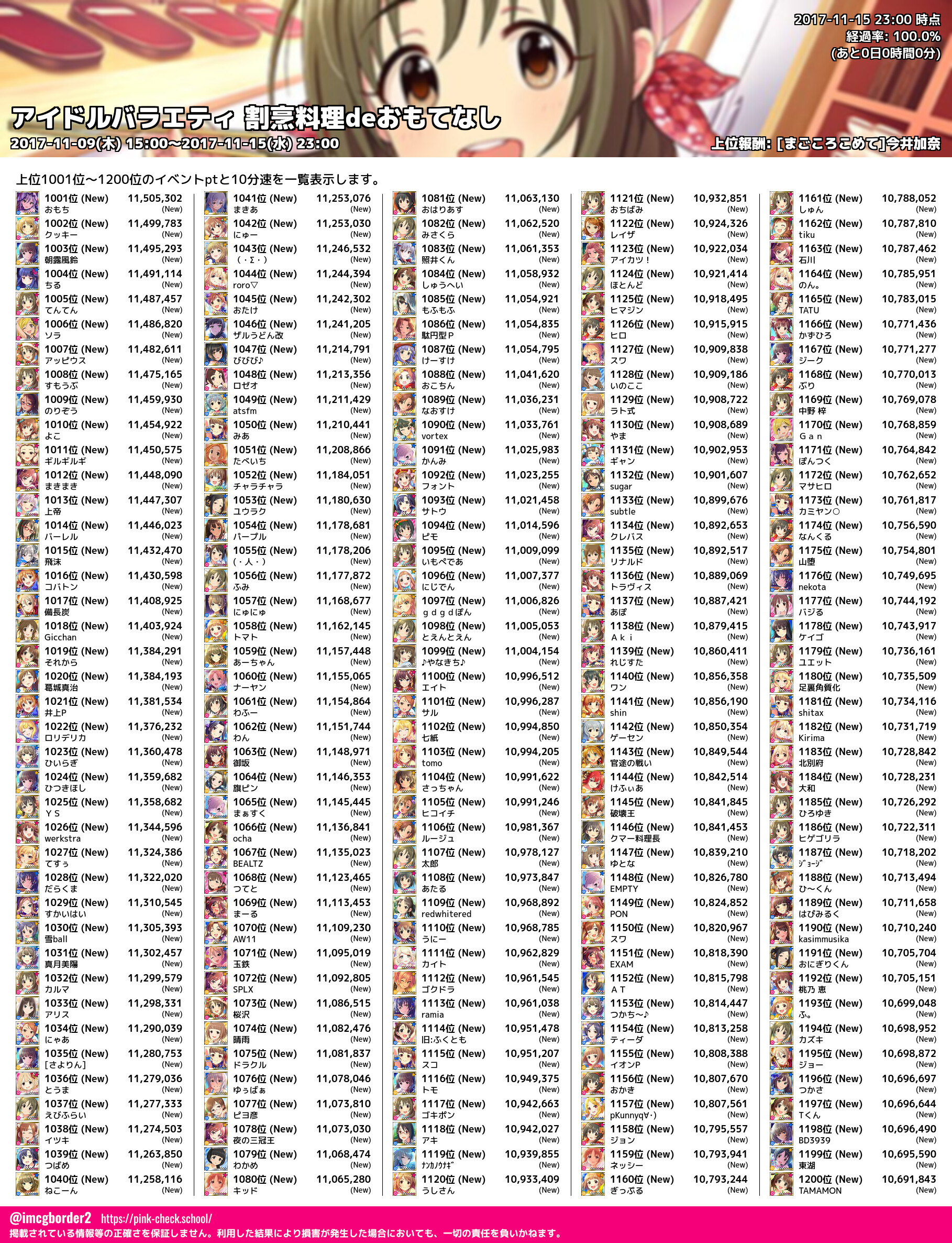 上位プロデューサースコア (2017-11-15 23:00 時点)