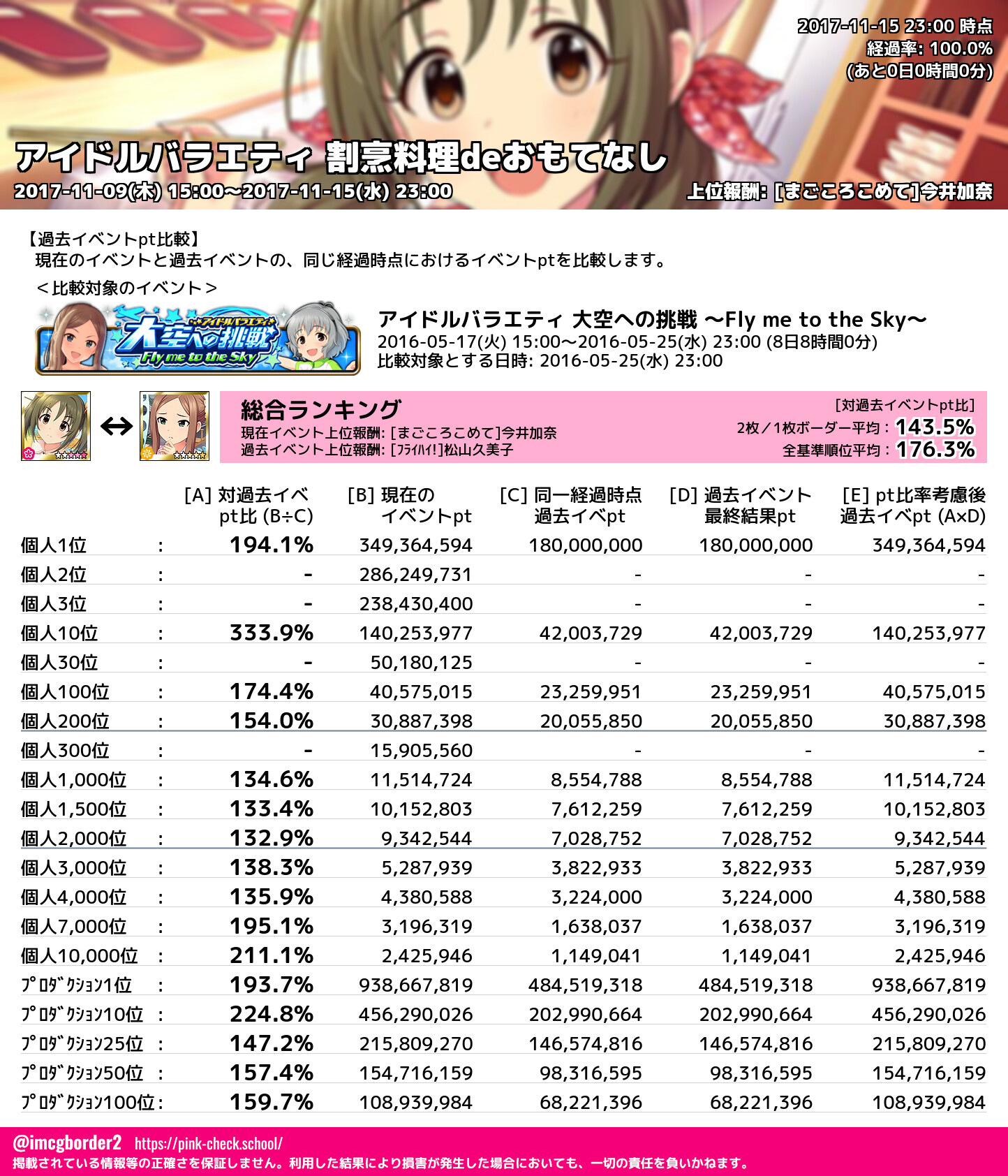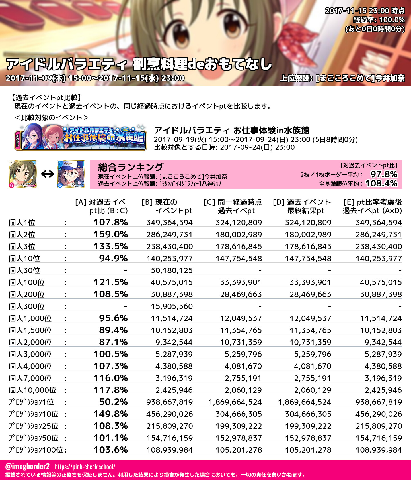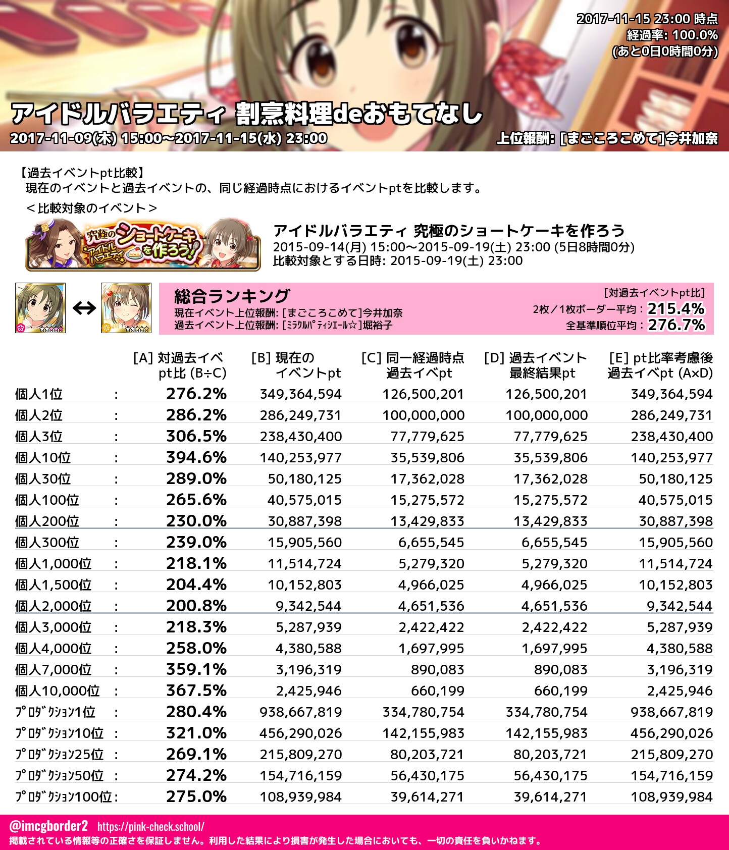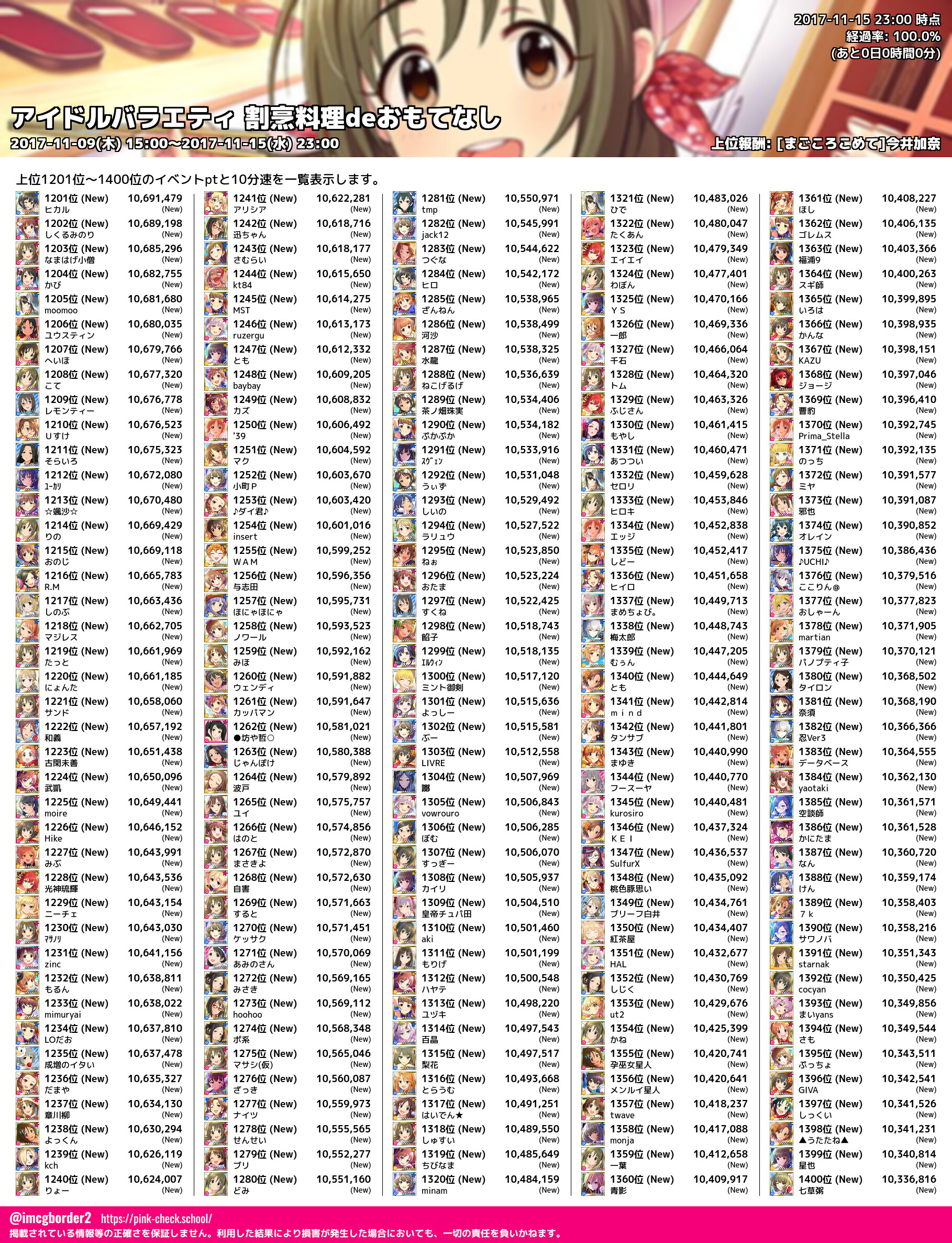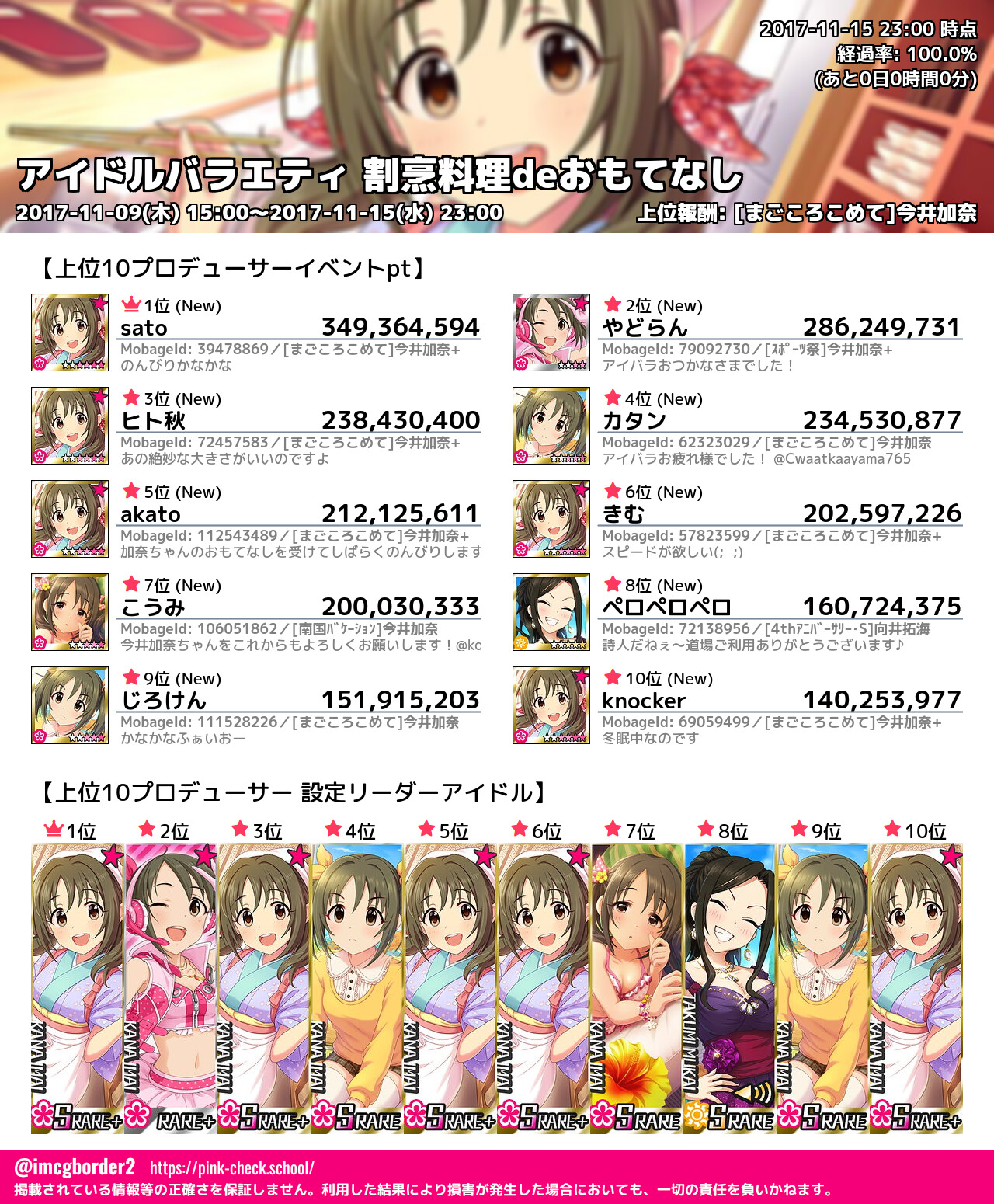 上位プロデューサースコア (2017-11-15 23:00 時点)