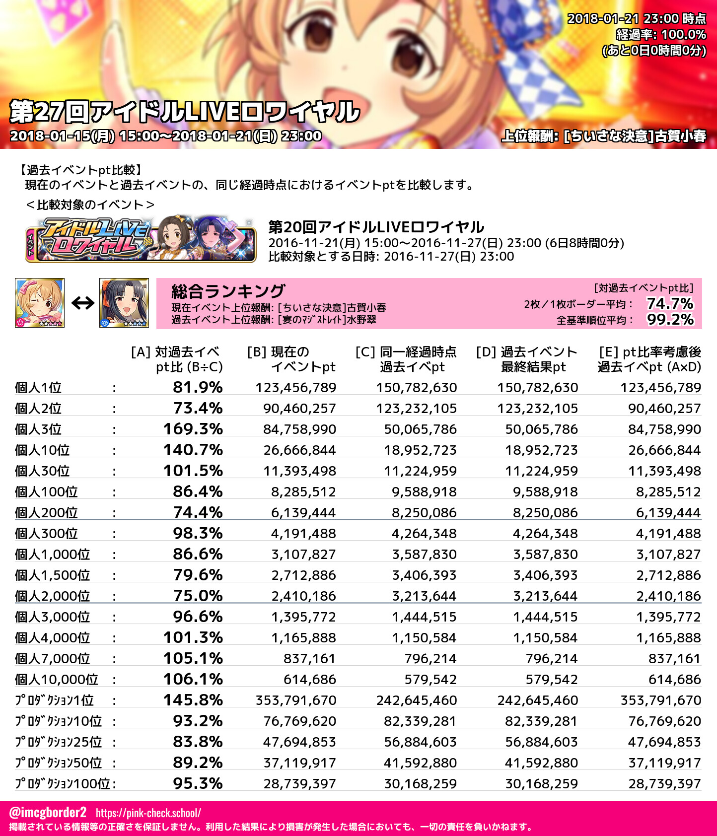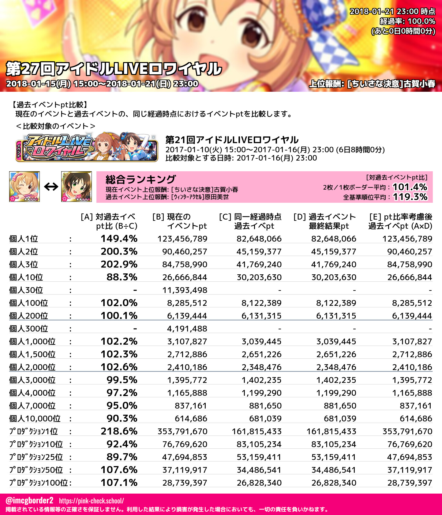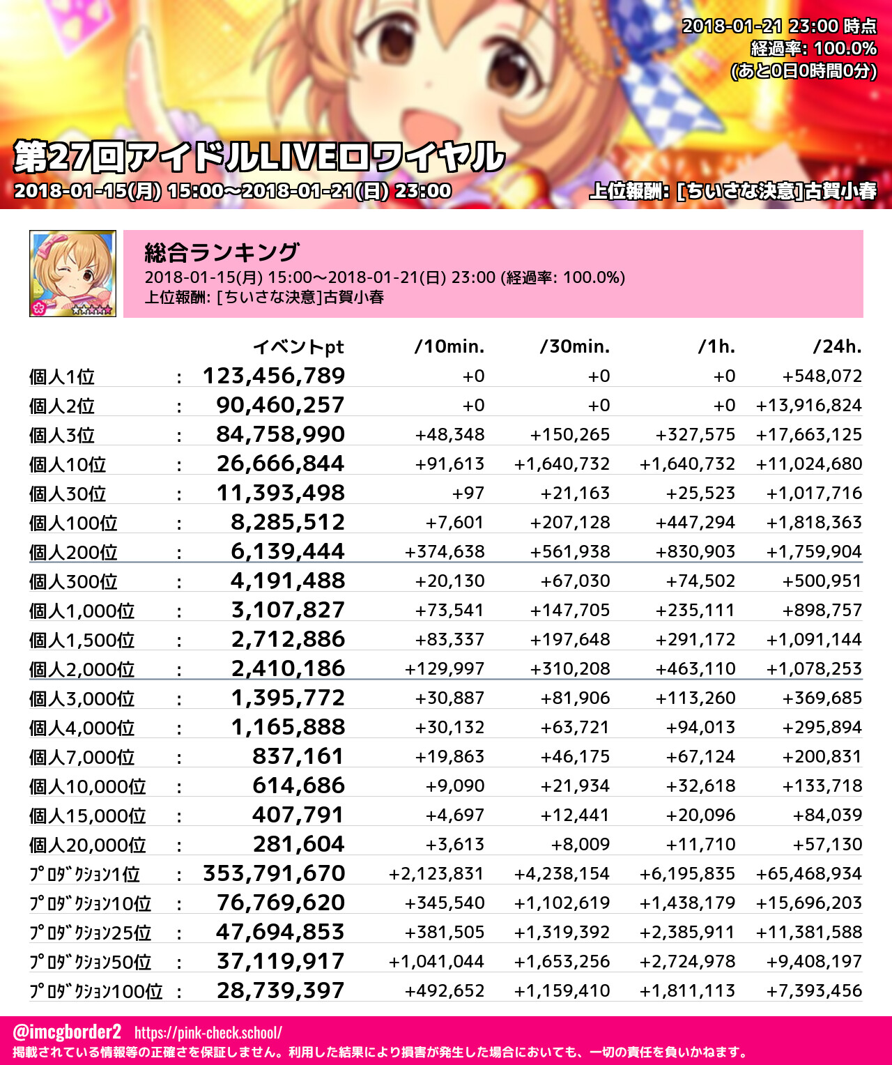 上位プロデューサースコア (2018-01-21 23:00 時点)
