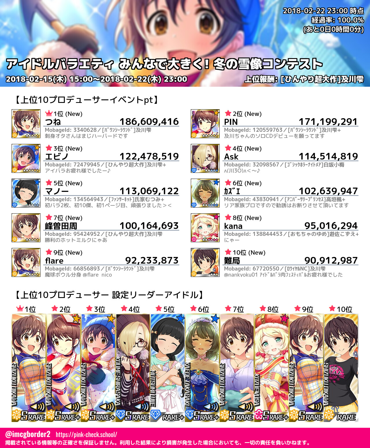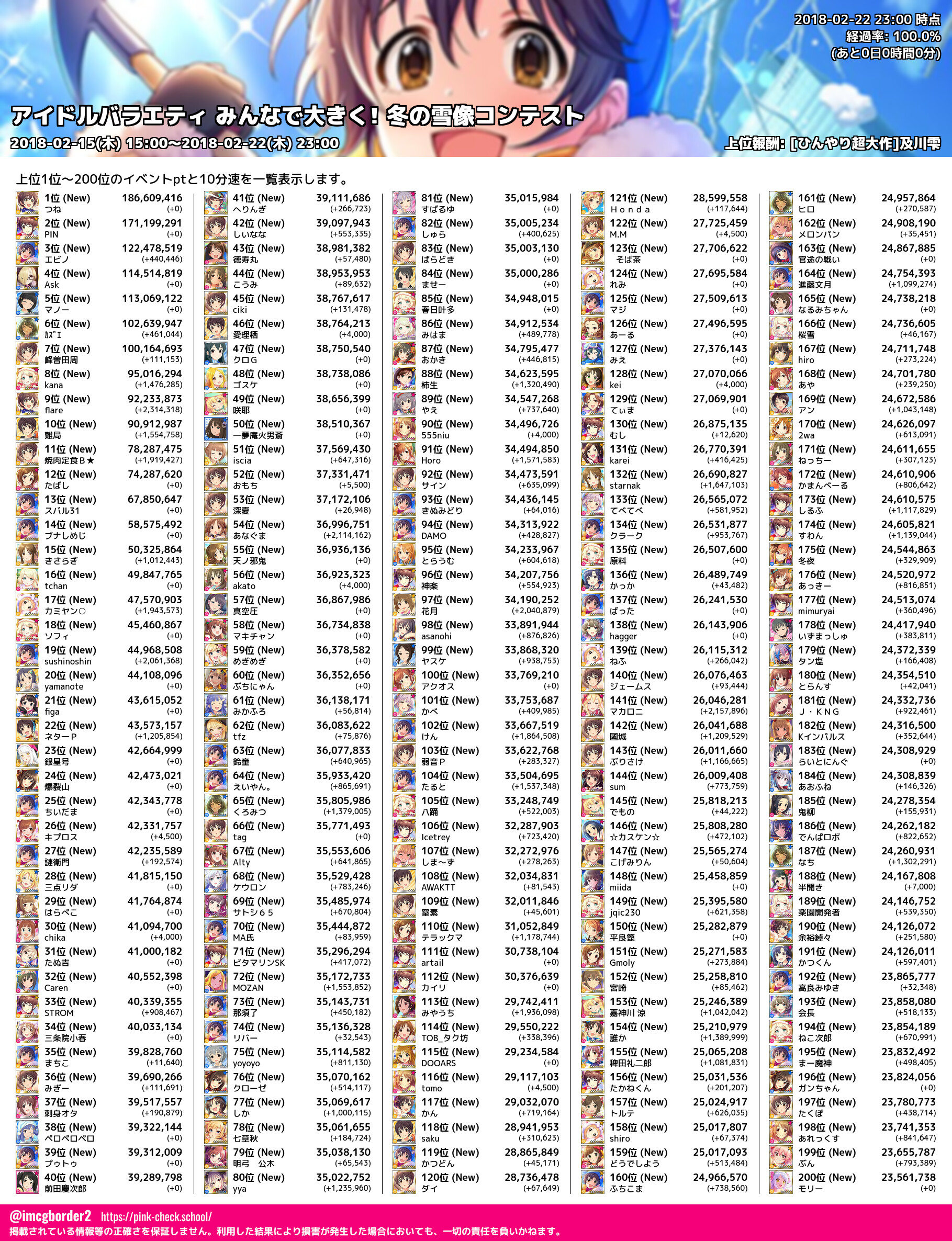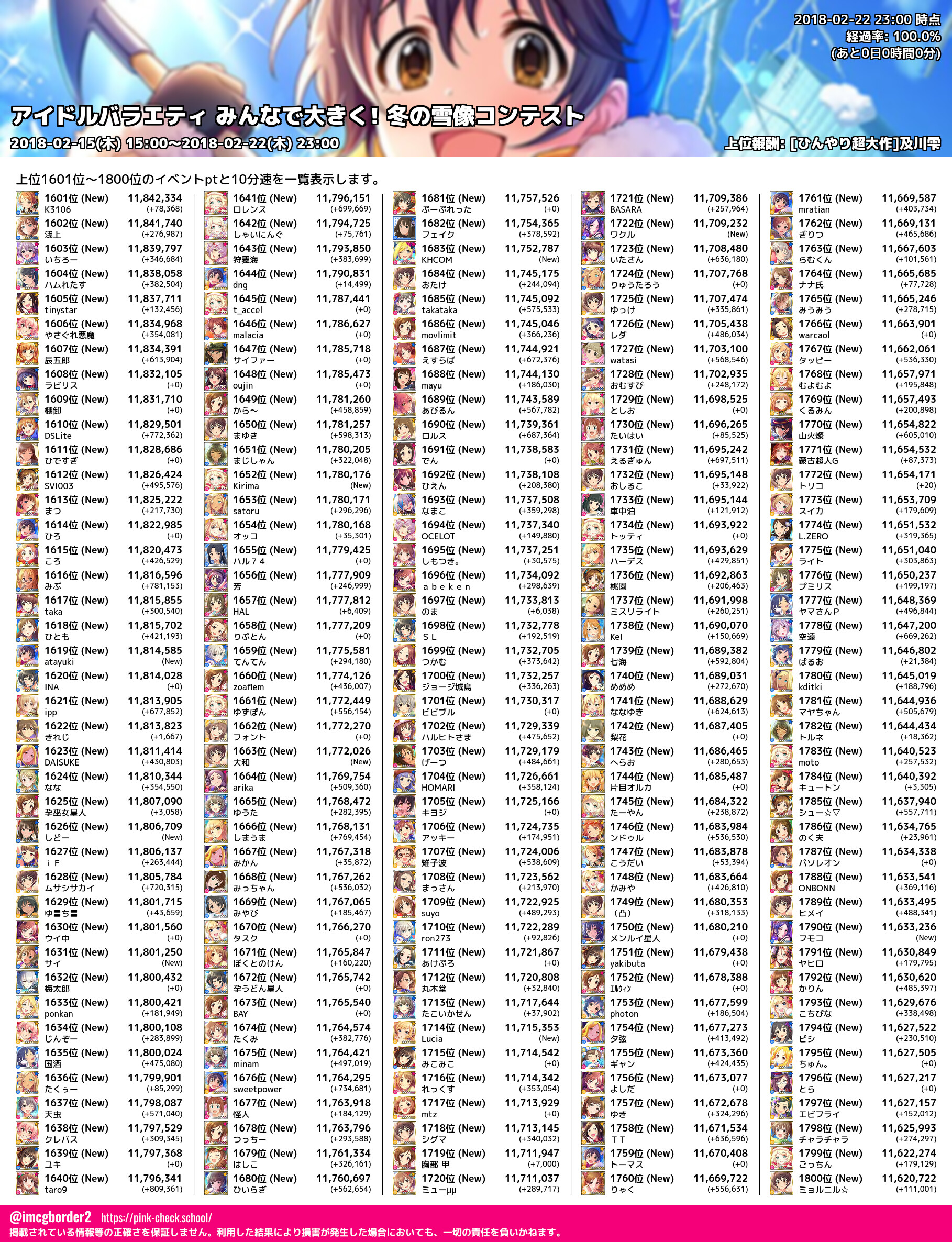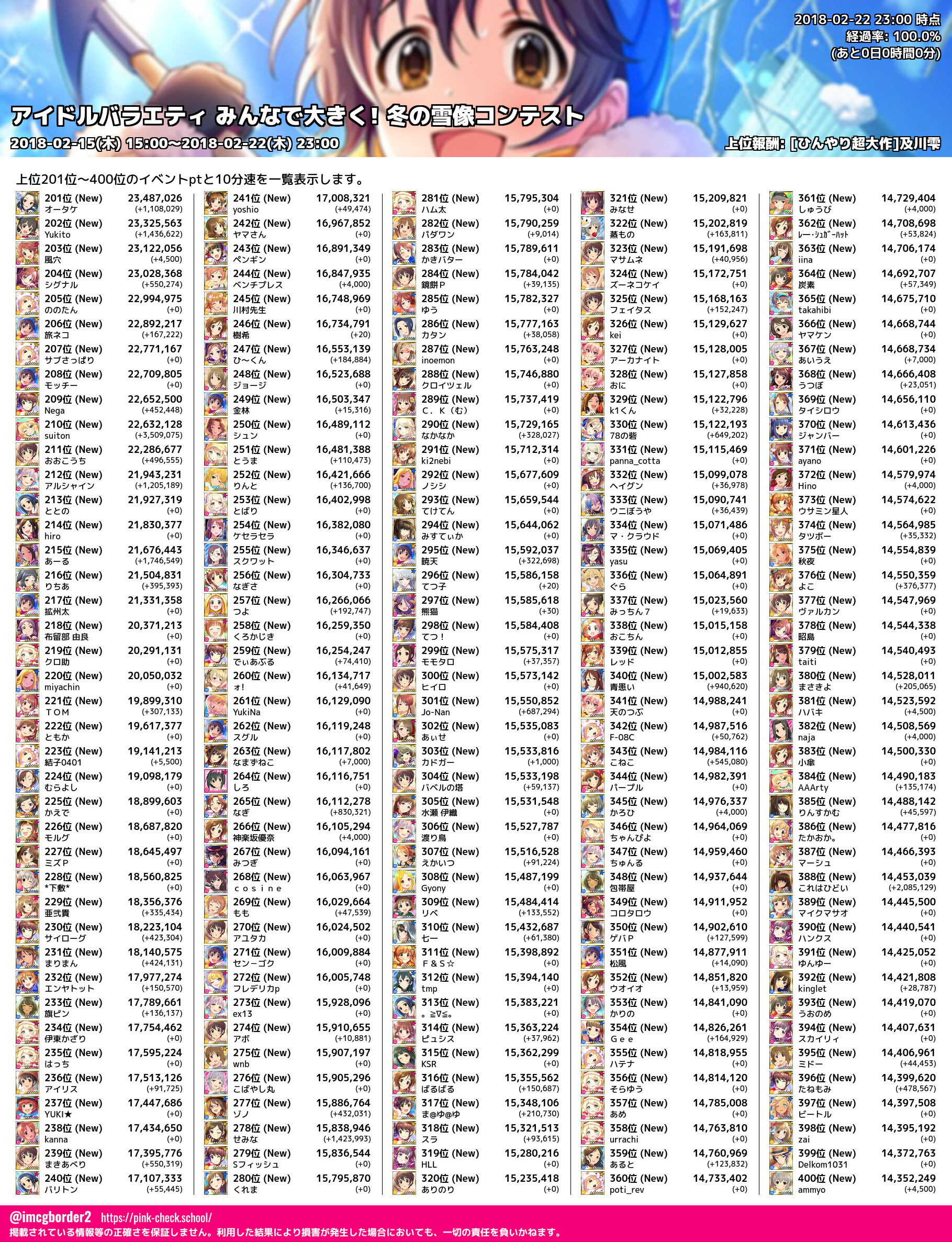 上位プロデューサースコア (2018-02-22 23:00 時点)