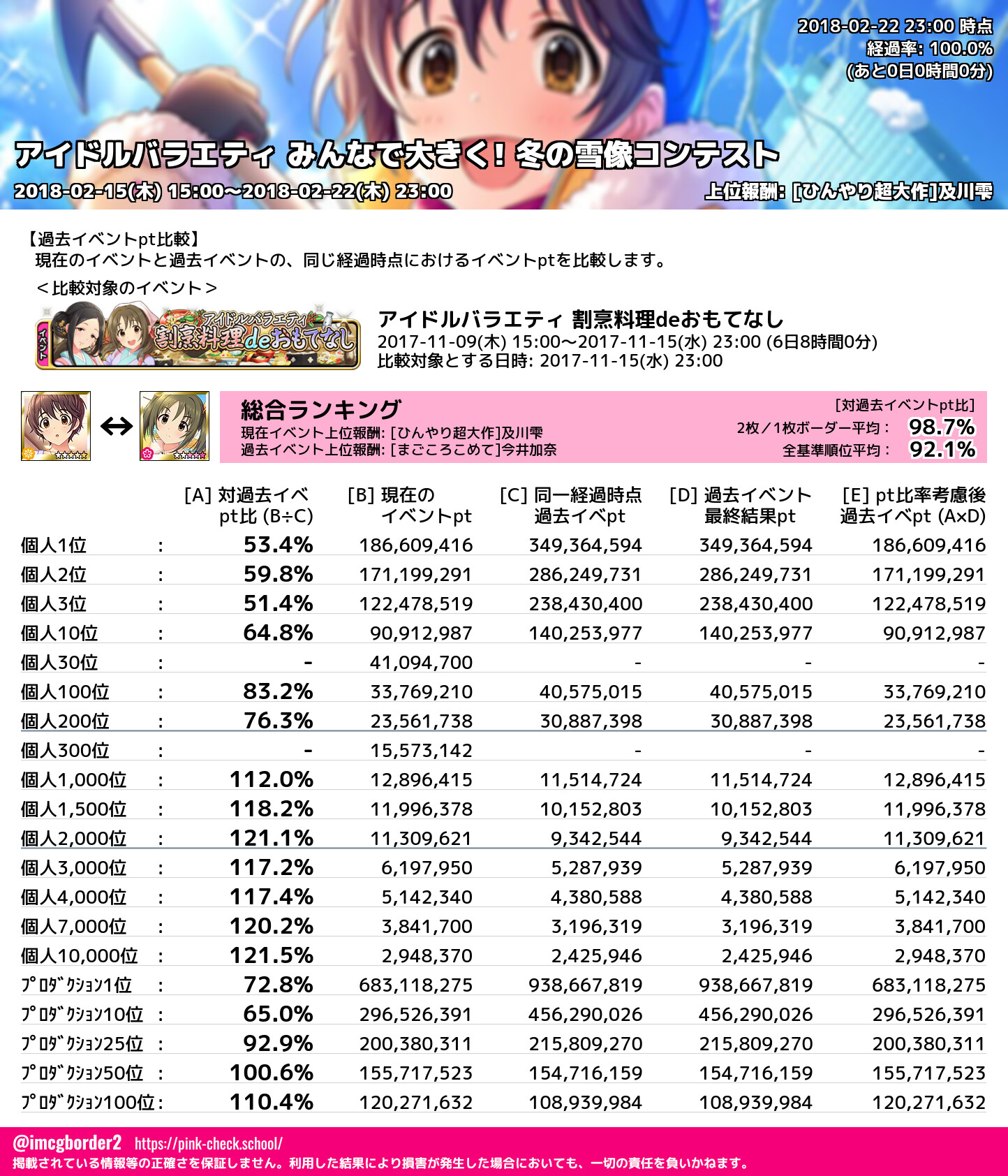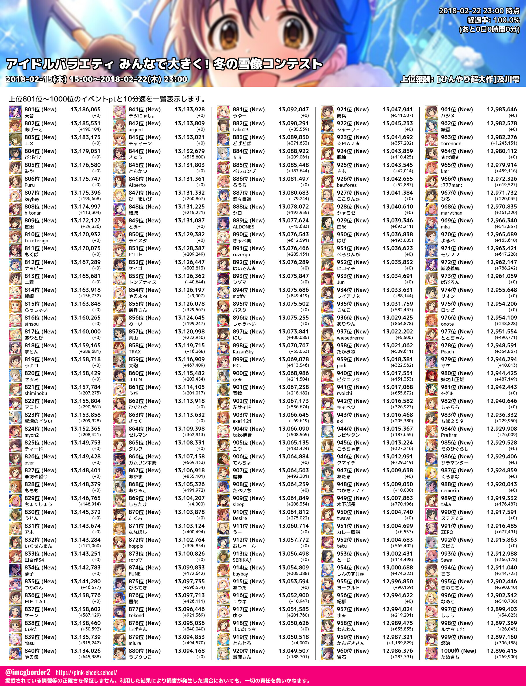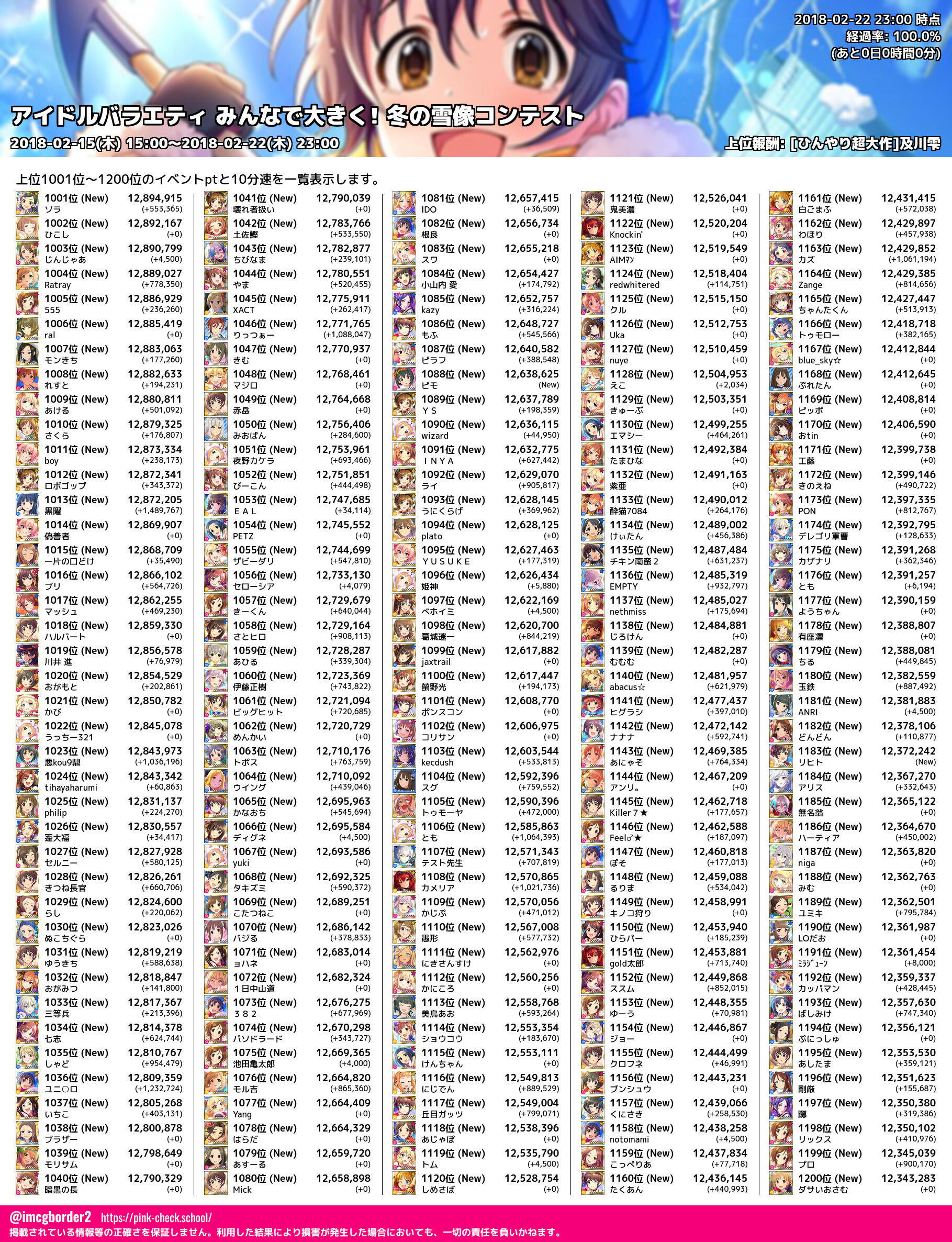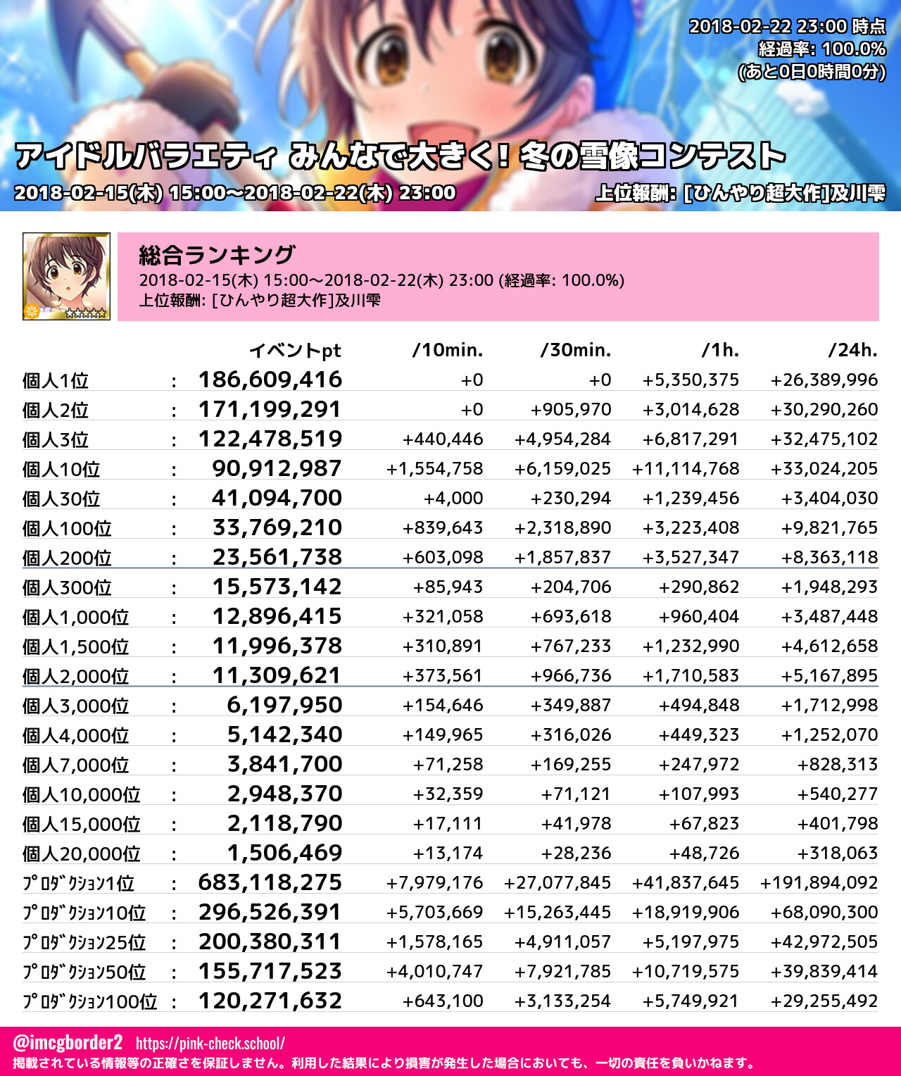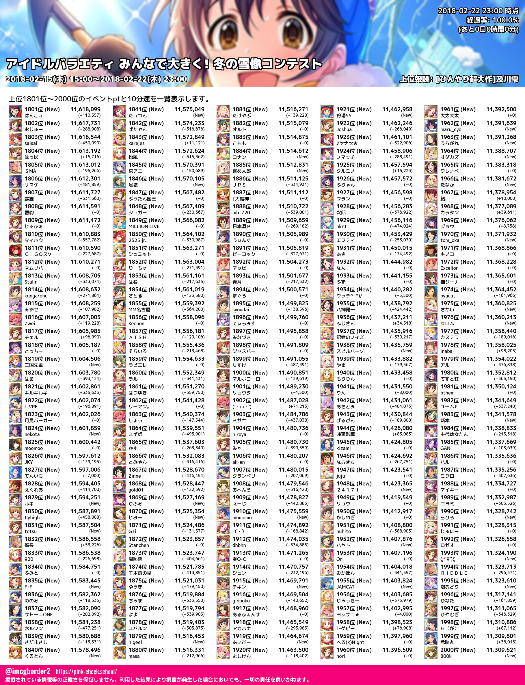 上位プロデューサースコア (2018-02-22 23:00 時点)