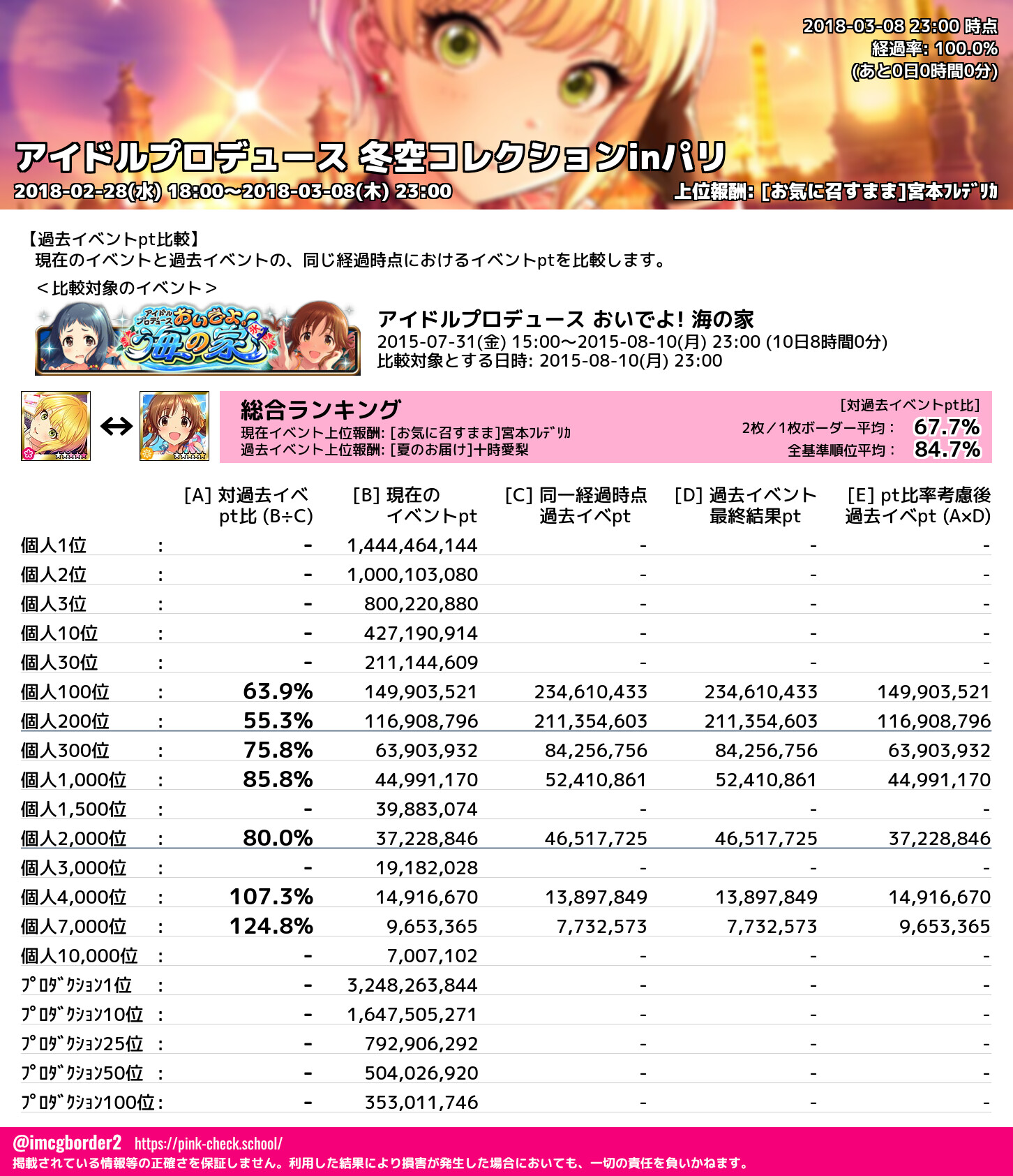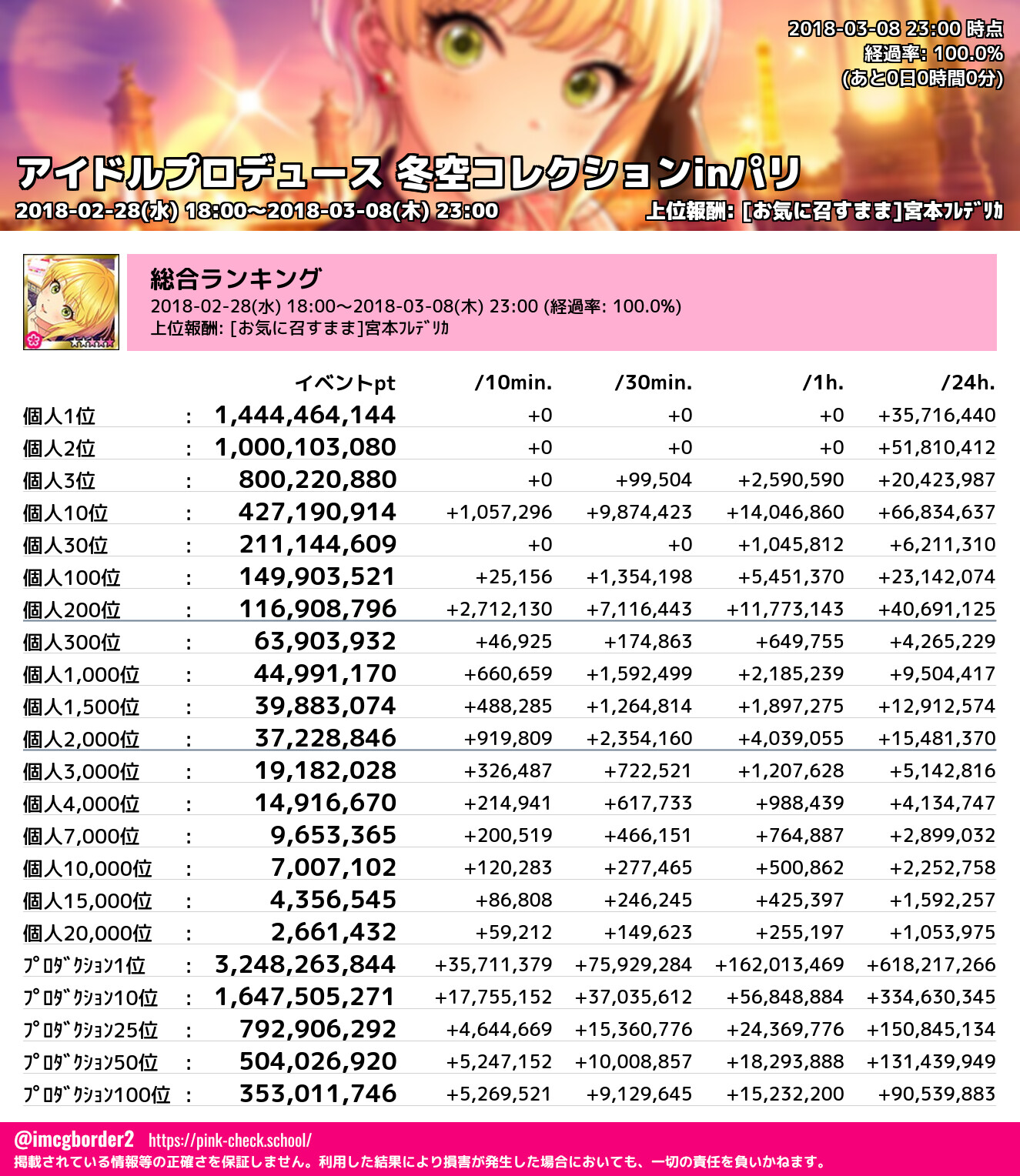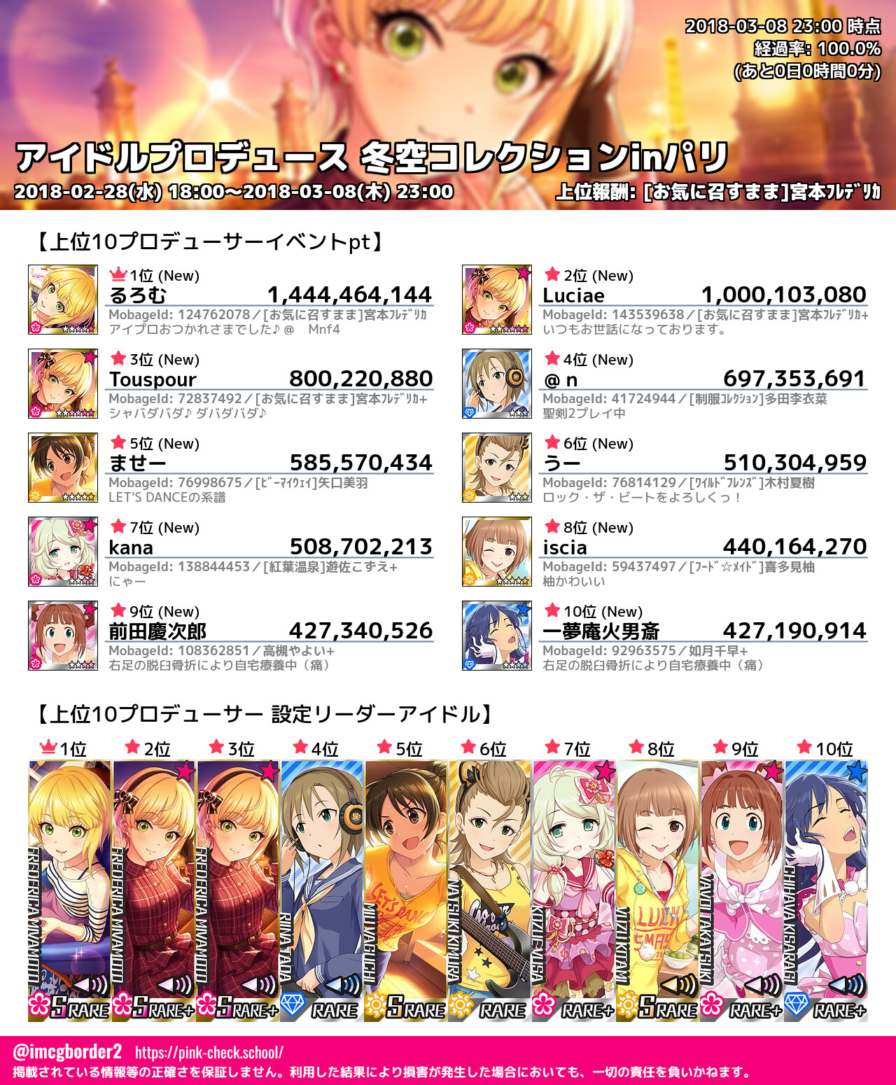 アイドルプロデュース 冬空コレクションinパリ 結果集計完了