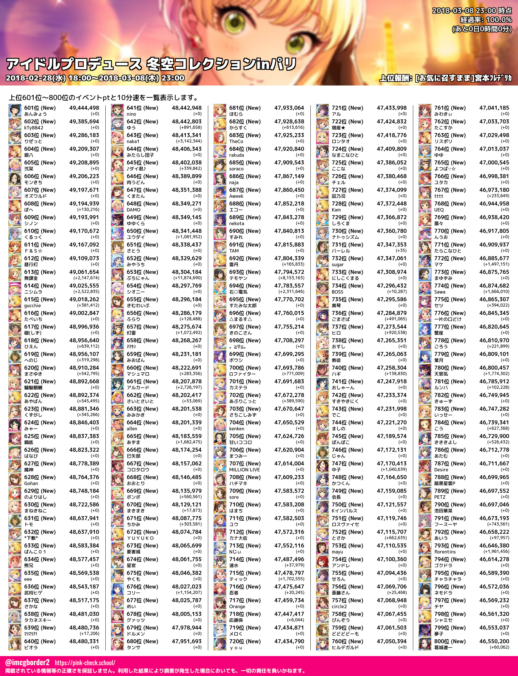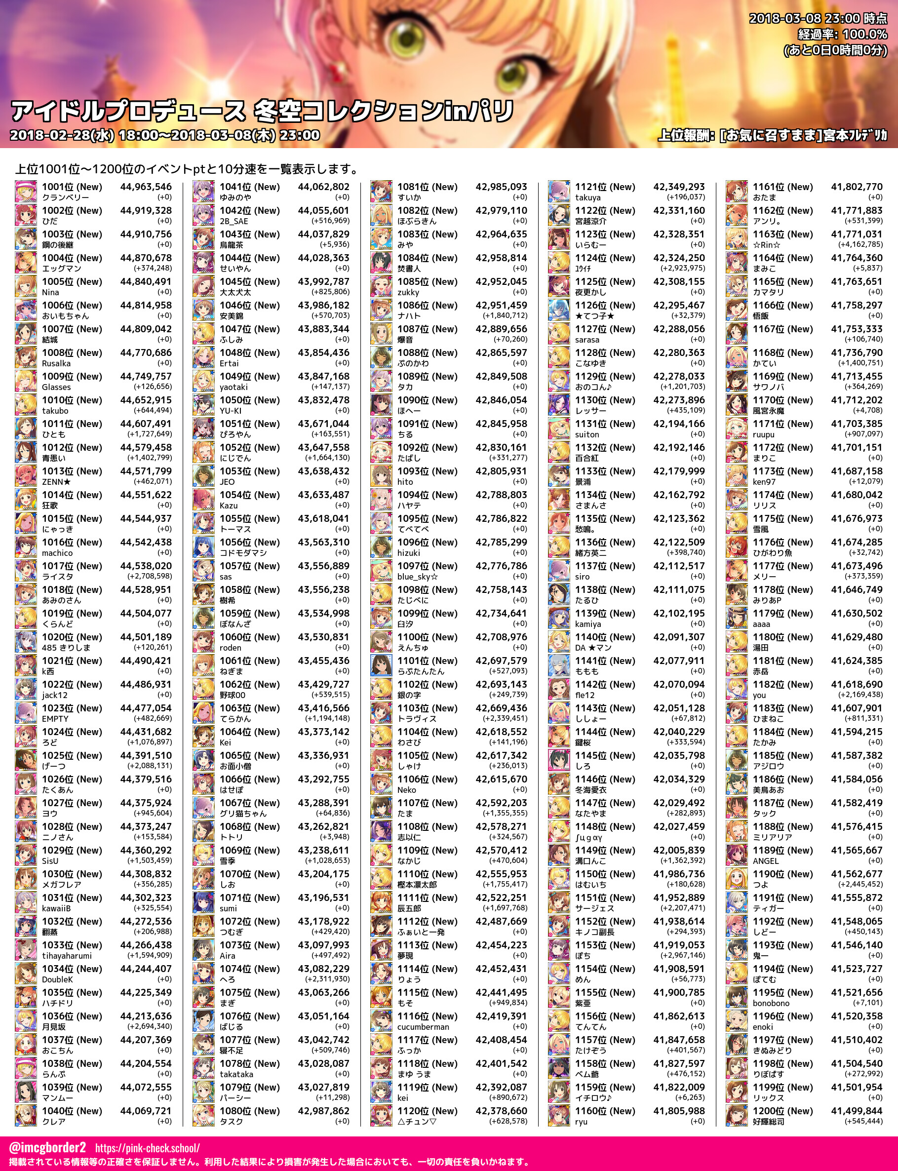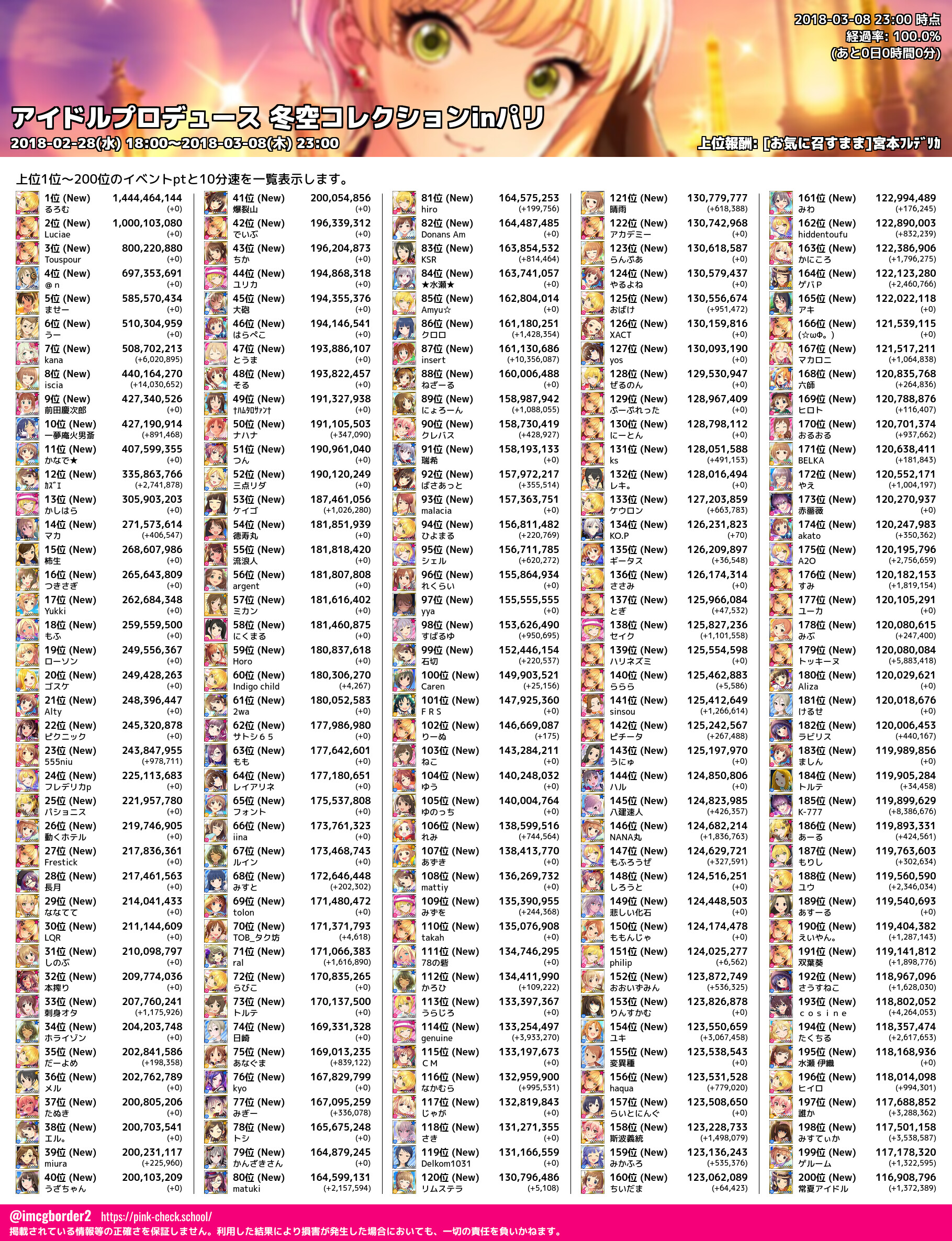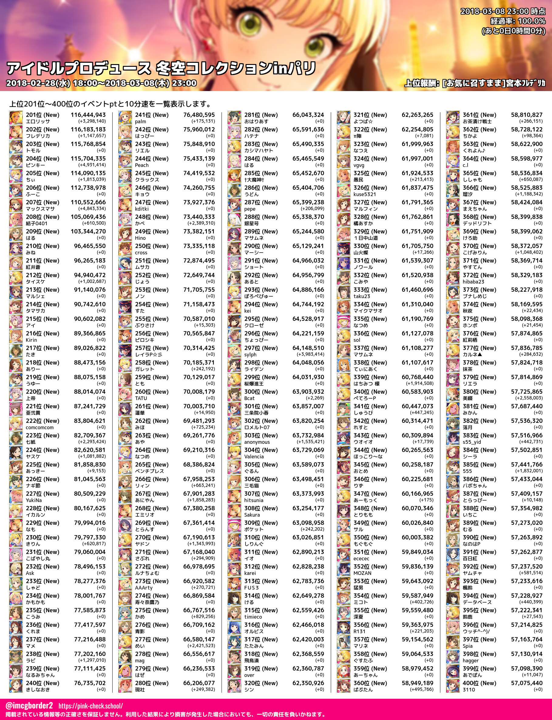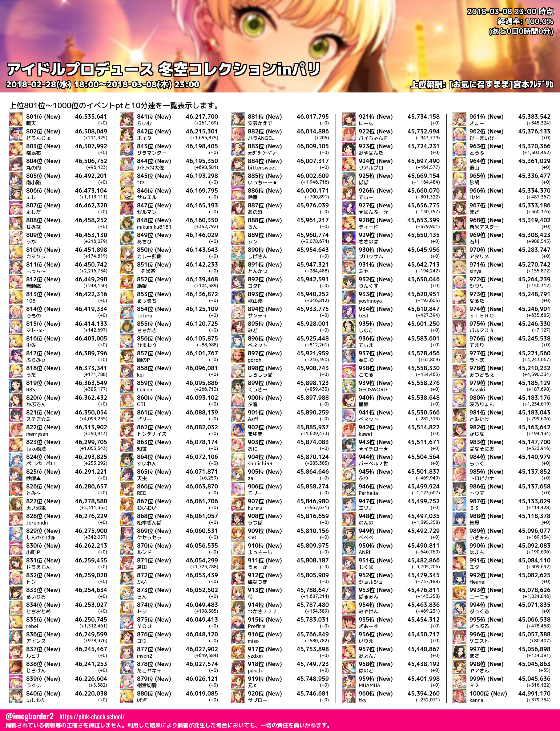 上位プロデューサースコア (2018-03-08 23:00 時点)