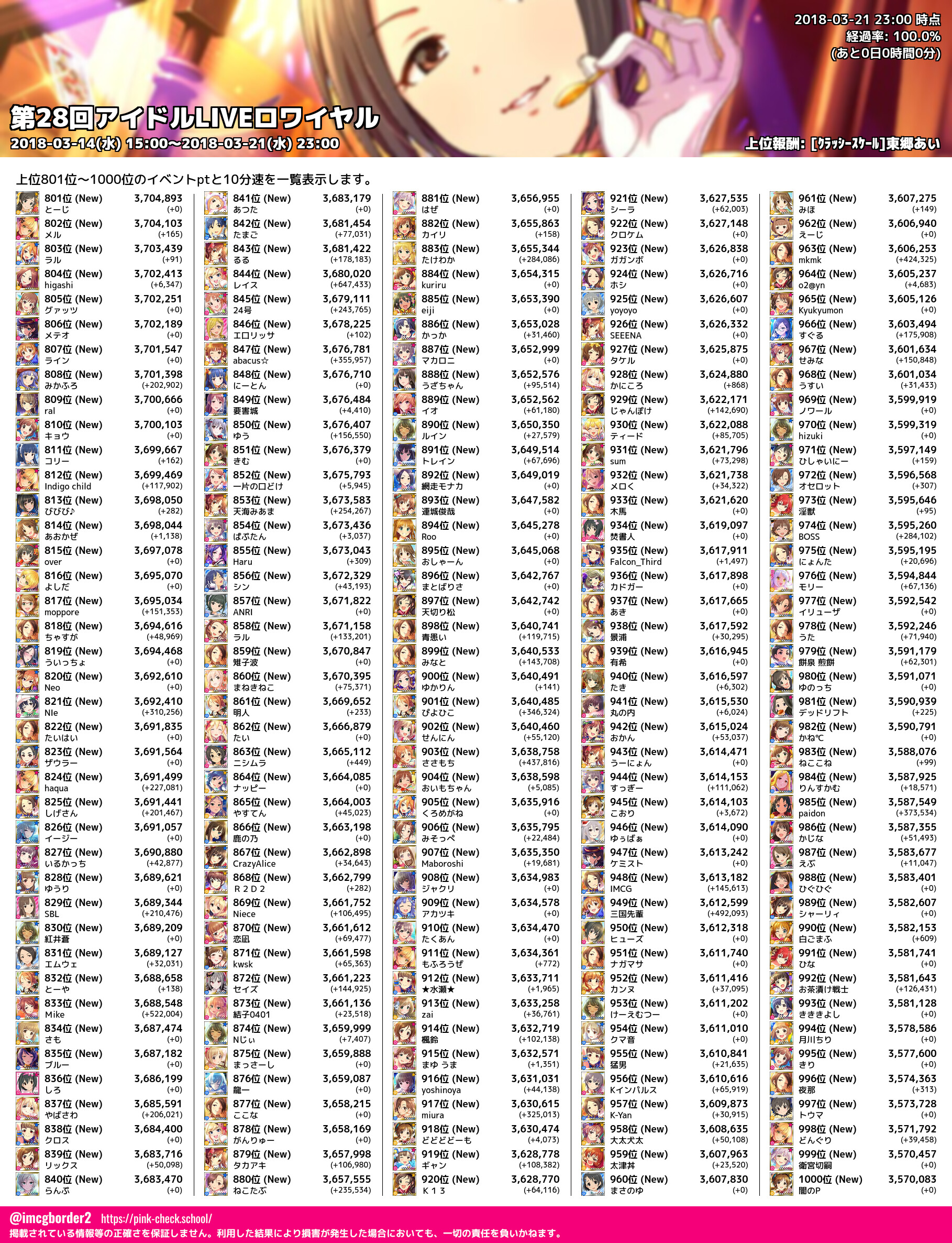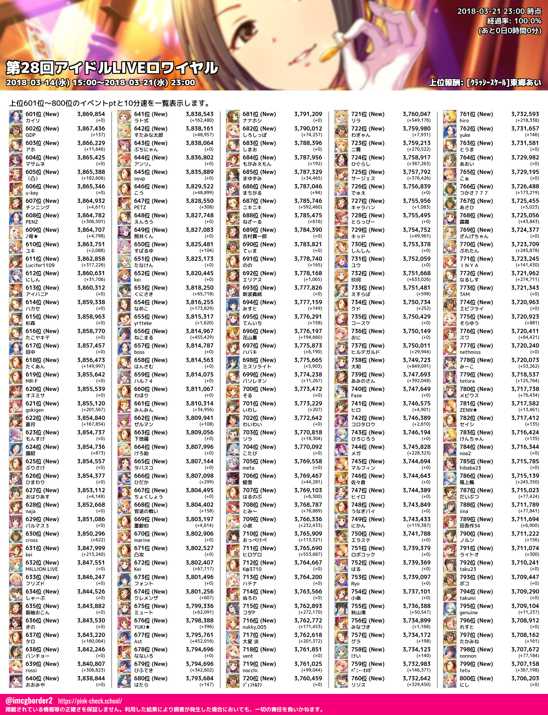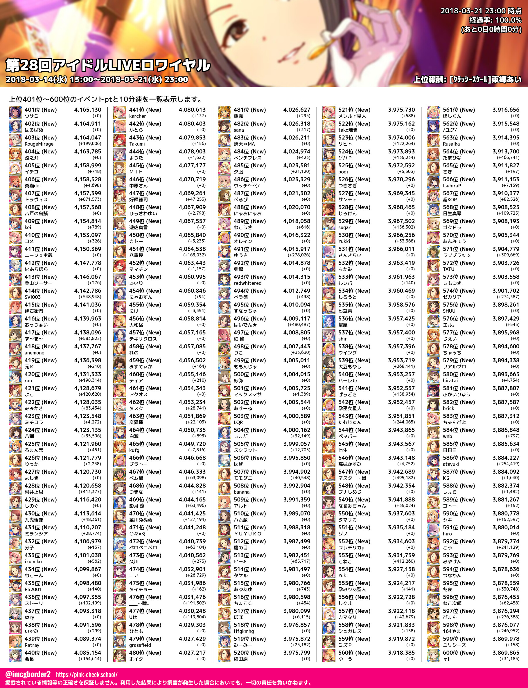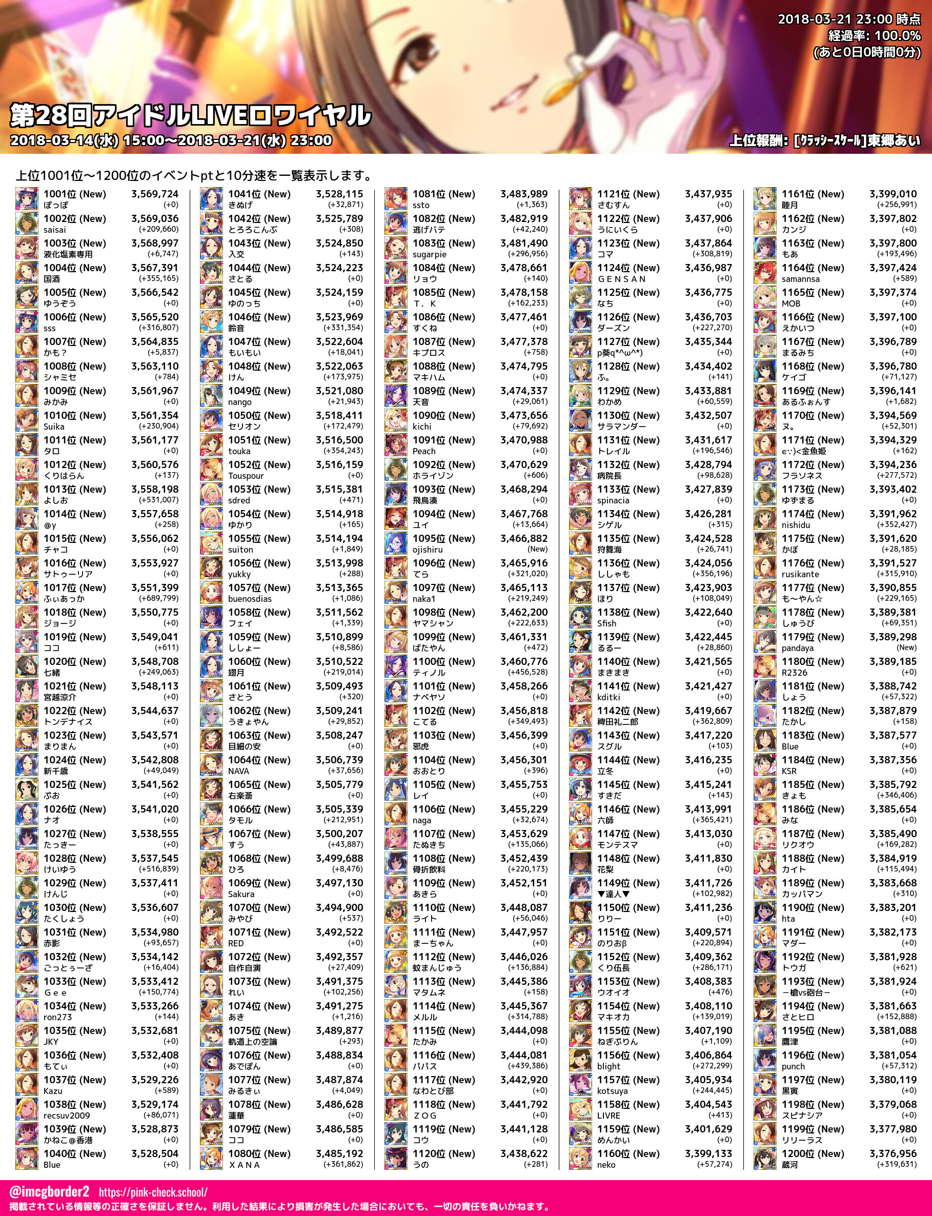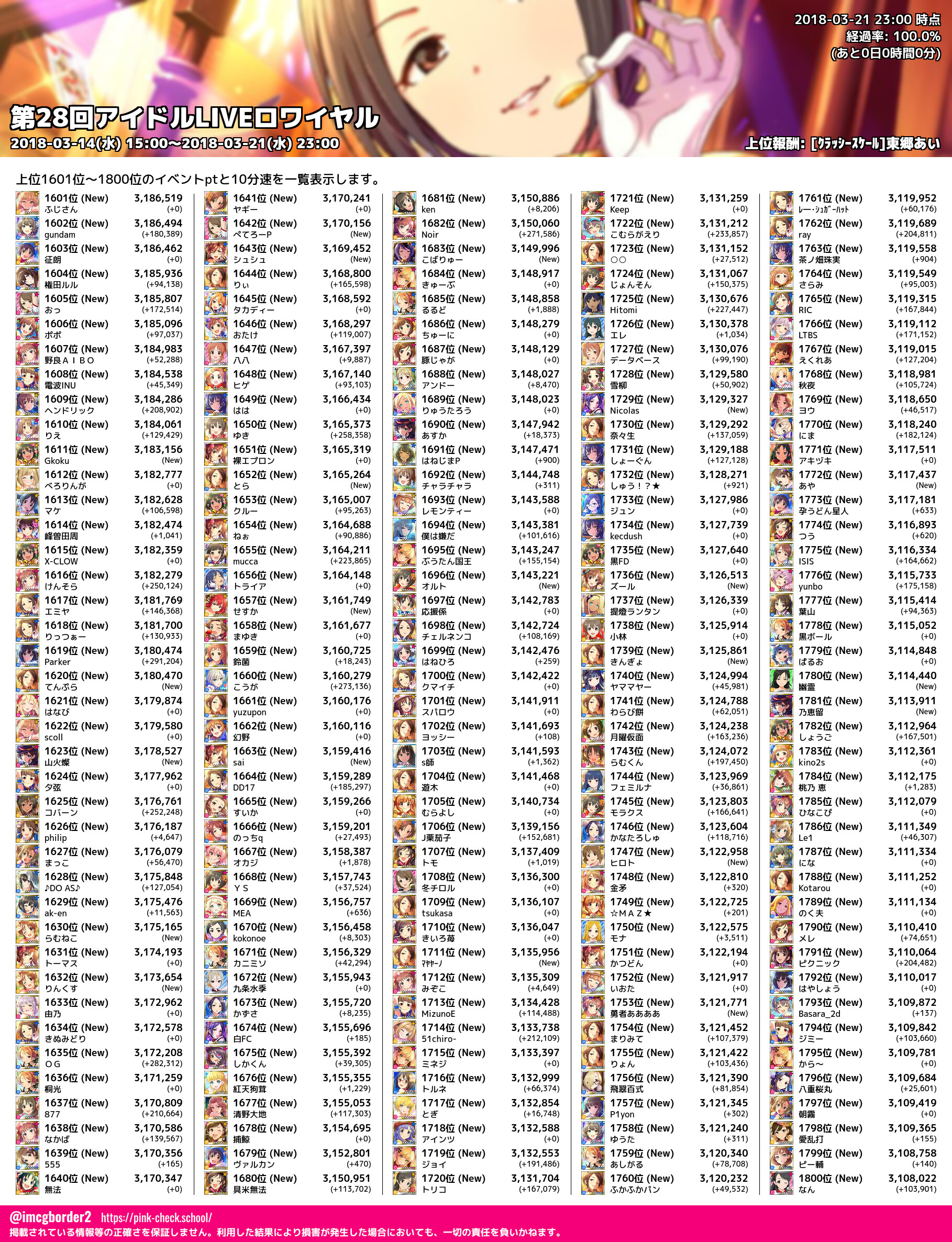 上位プロデューサースコア (2018-03-21 23:00 時点)