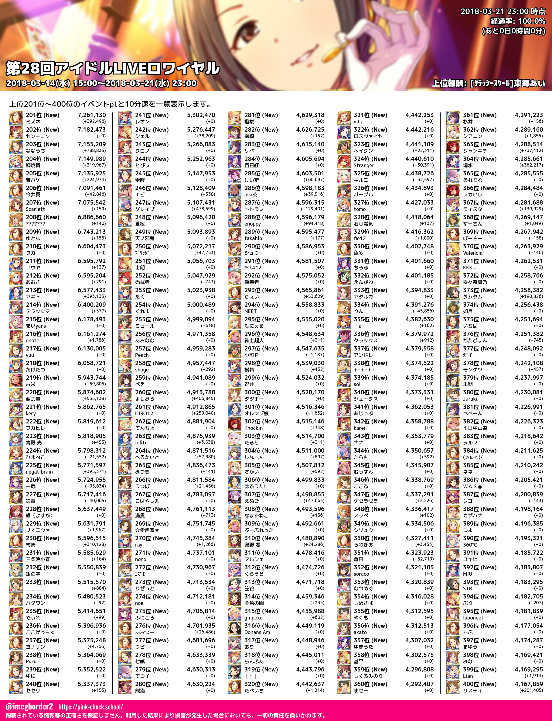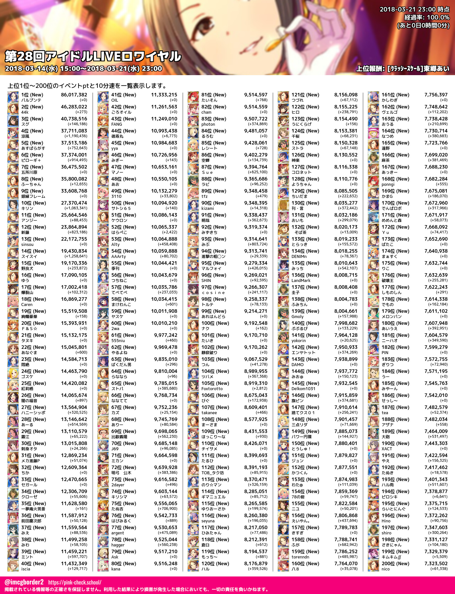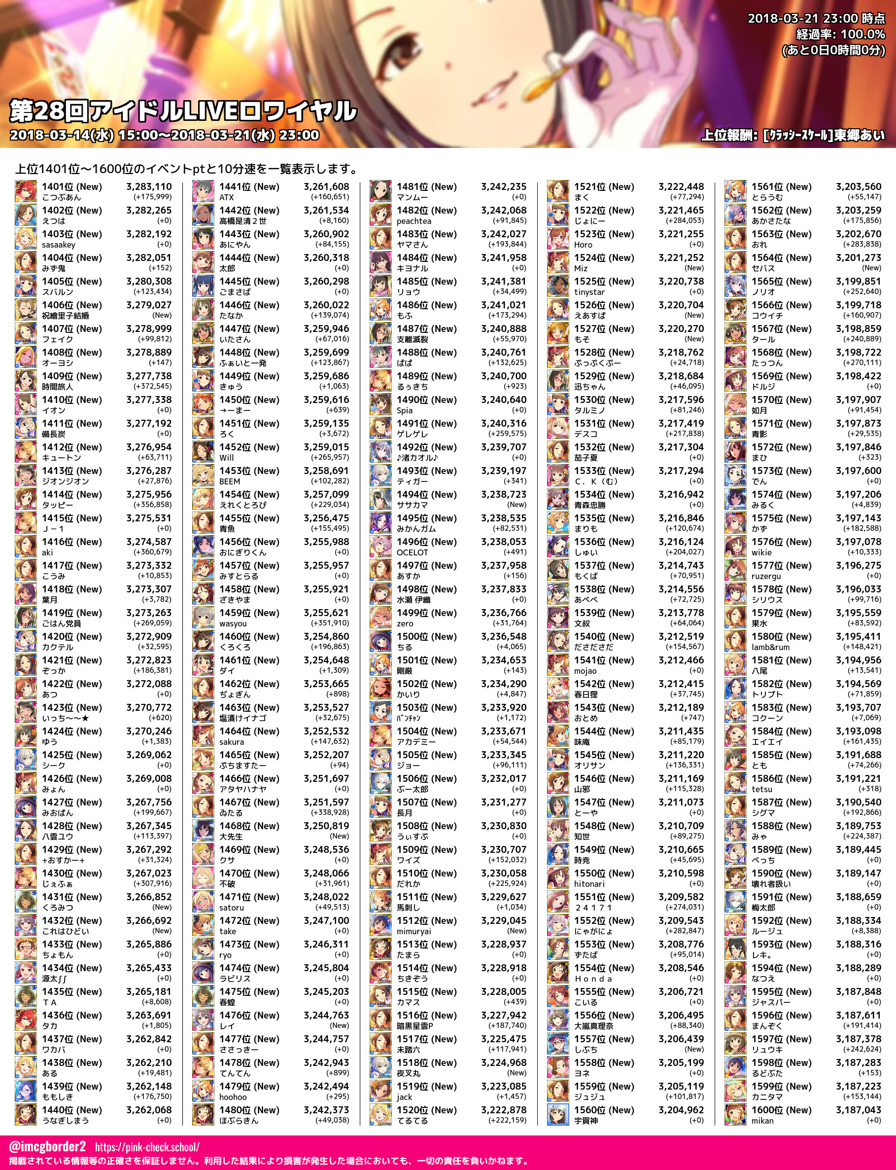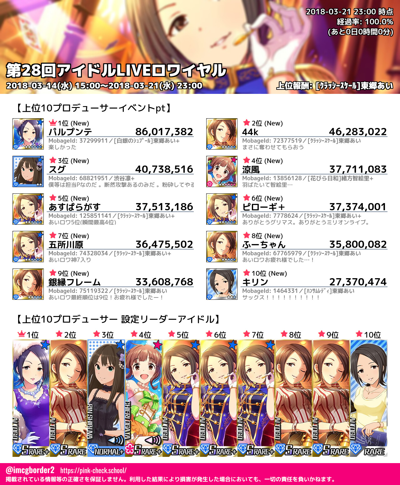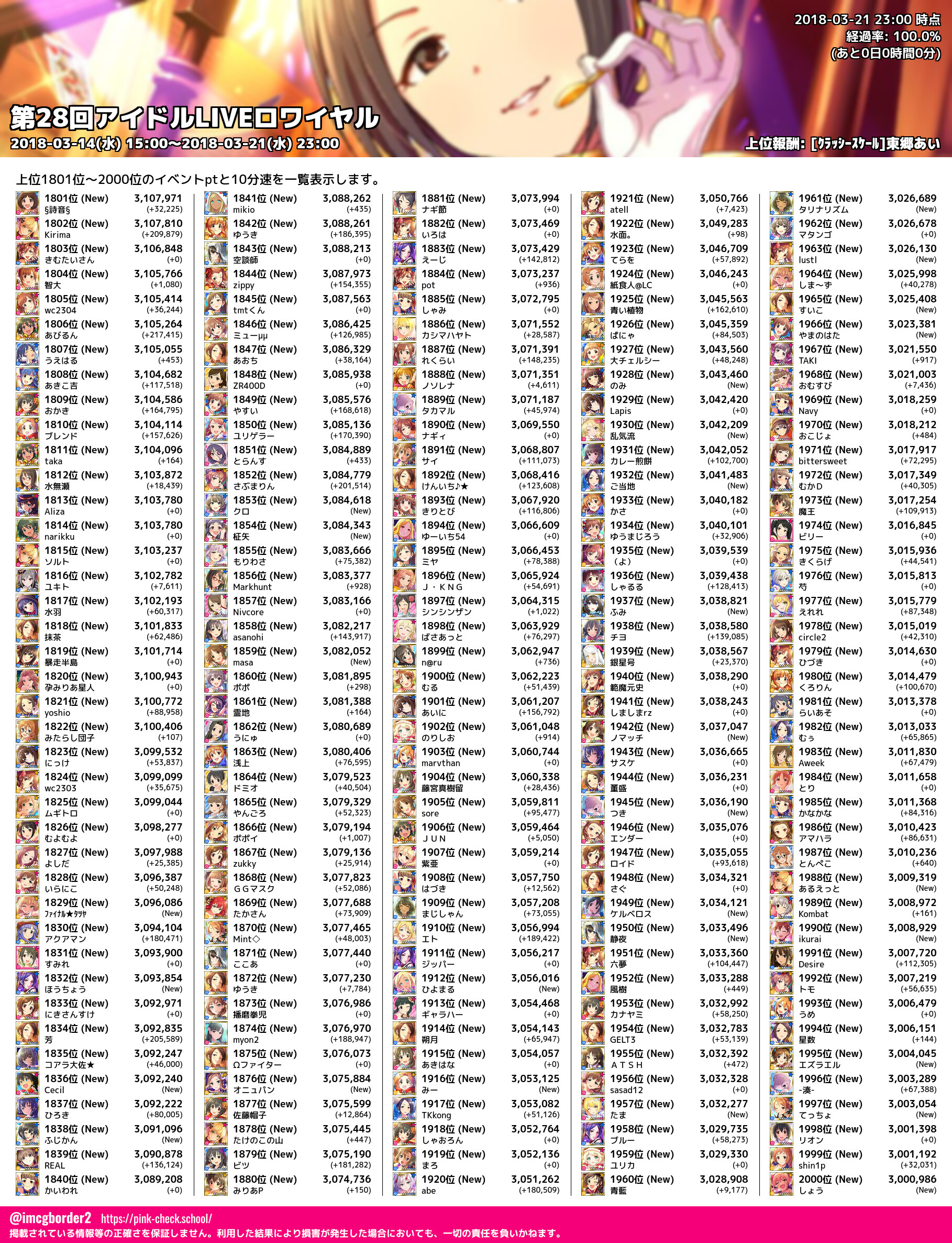 上位プロデューサースコア (2018-03-21 23:00 時点)