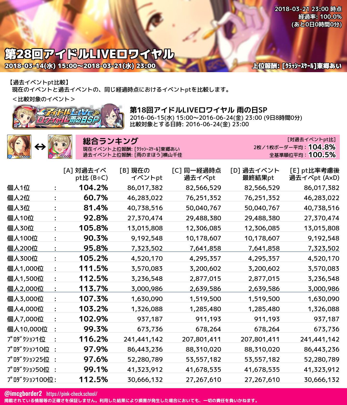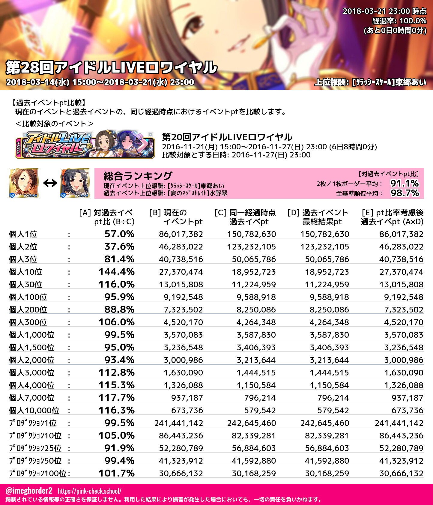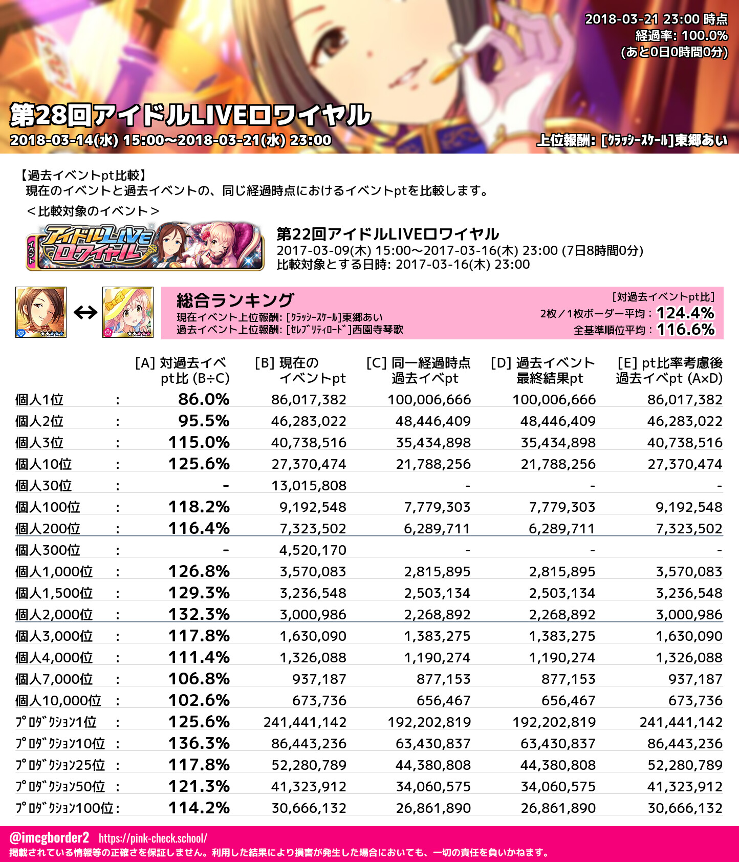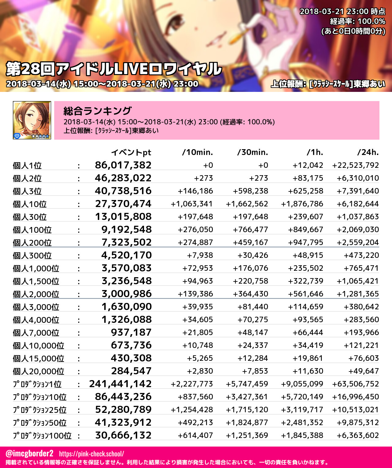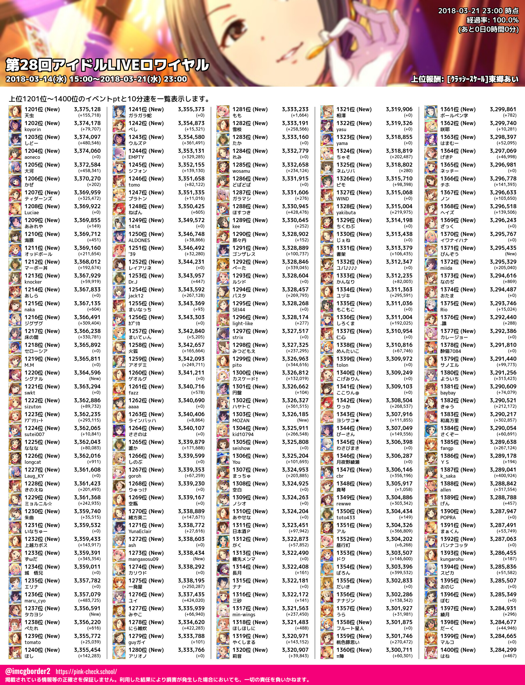 上位プロデューサースコア (2018-03-21 23:00 時点)