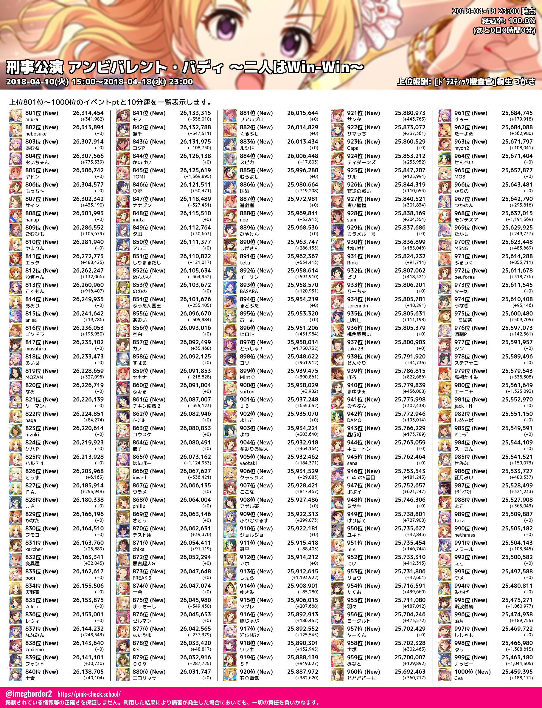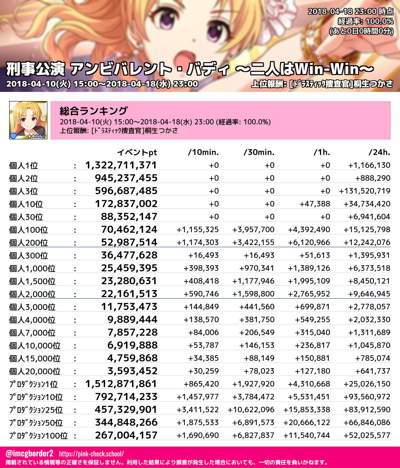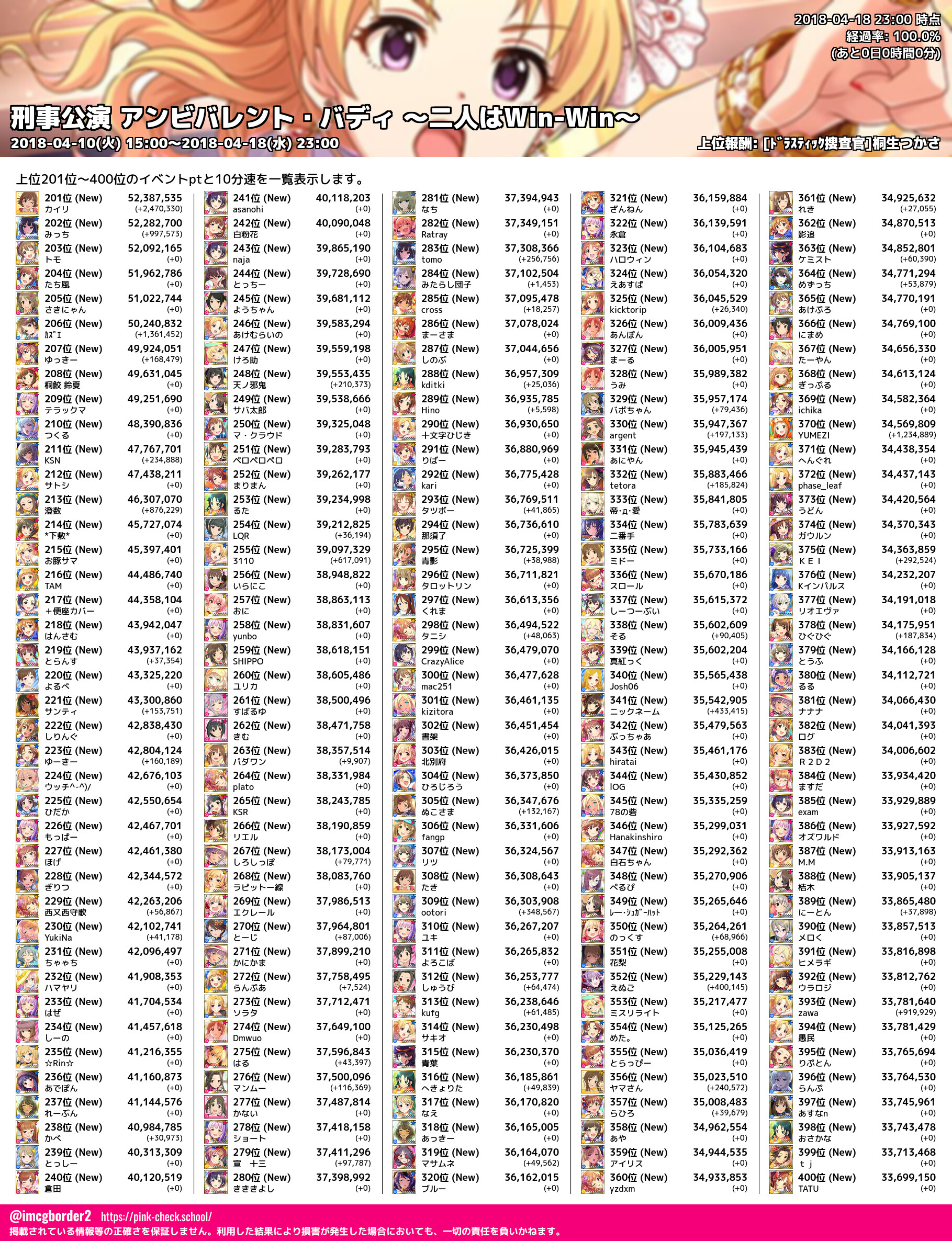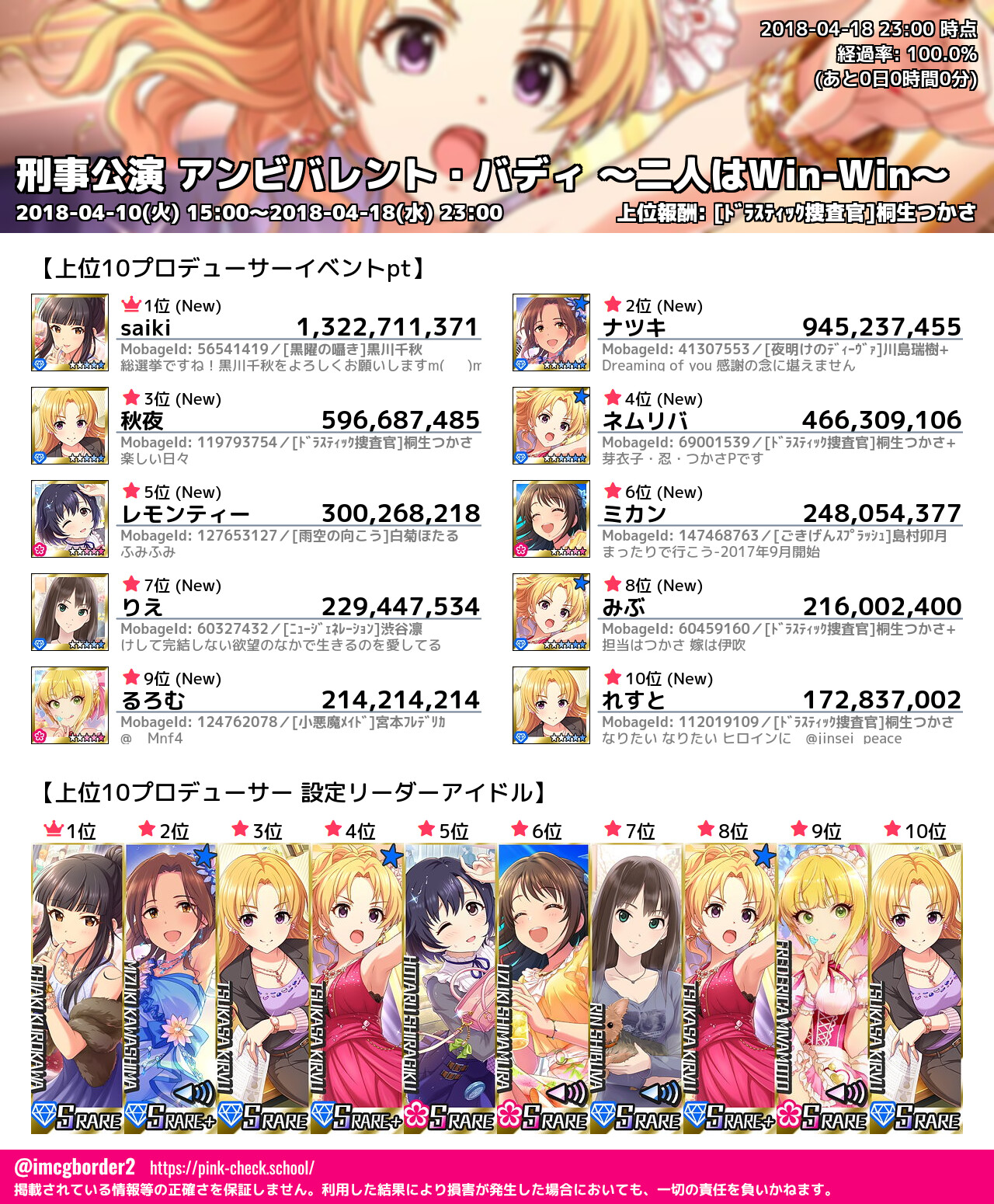 上位プロデューサースコア (2018-04-18 23:00 時点)
