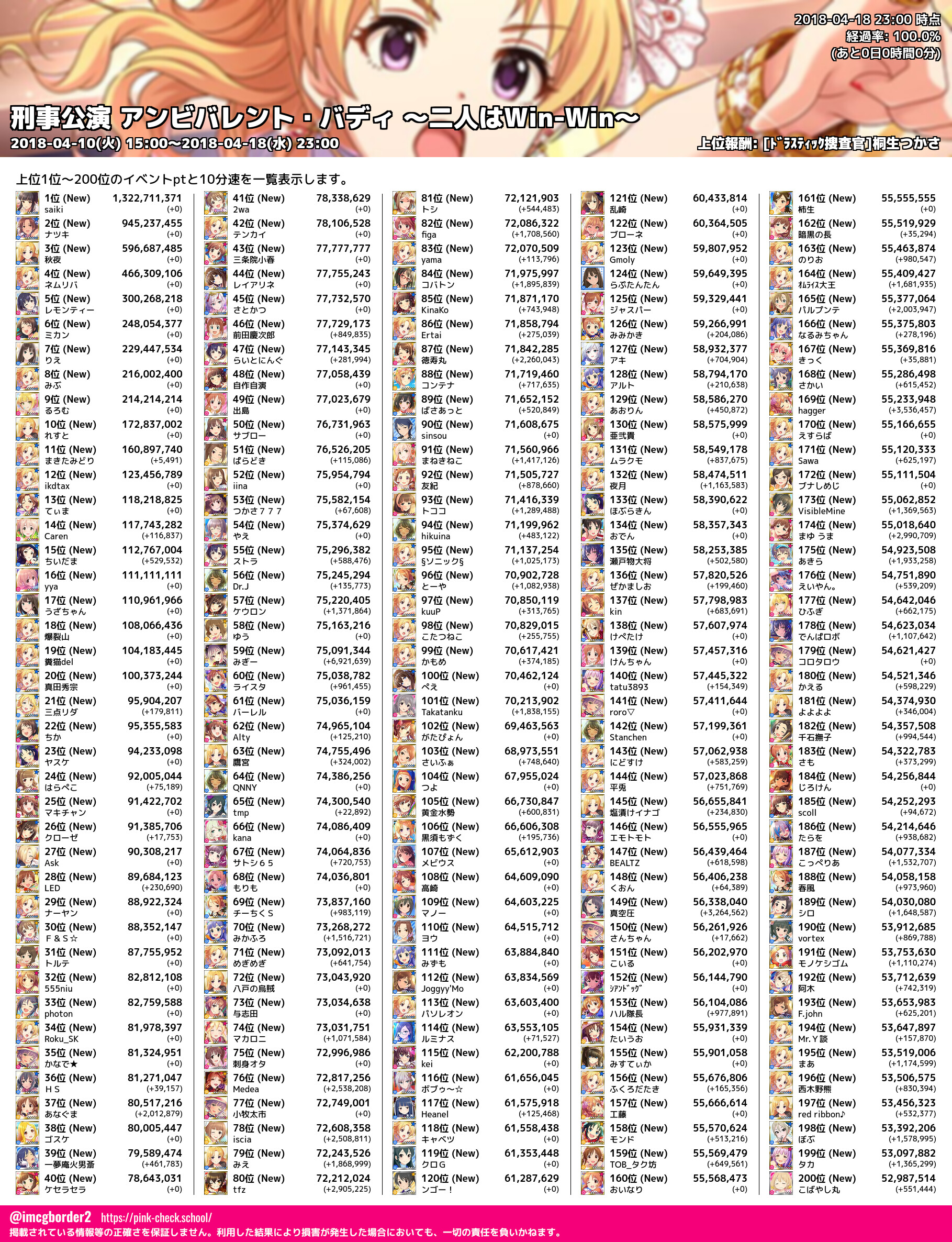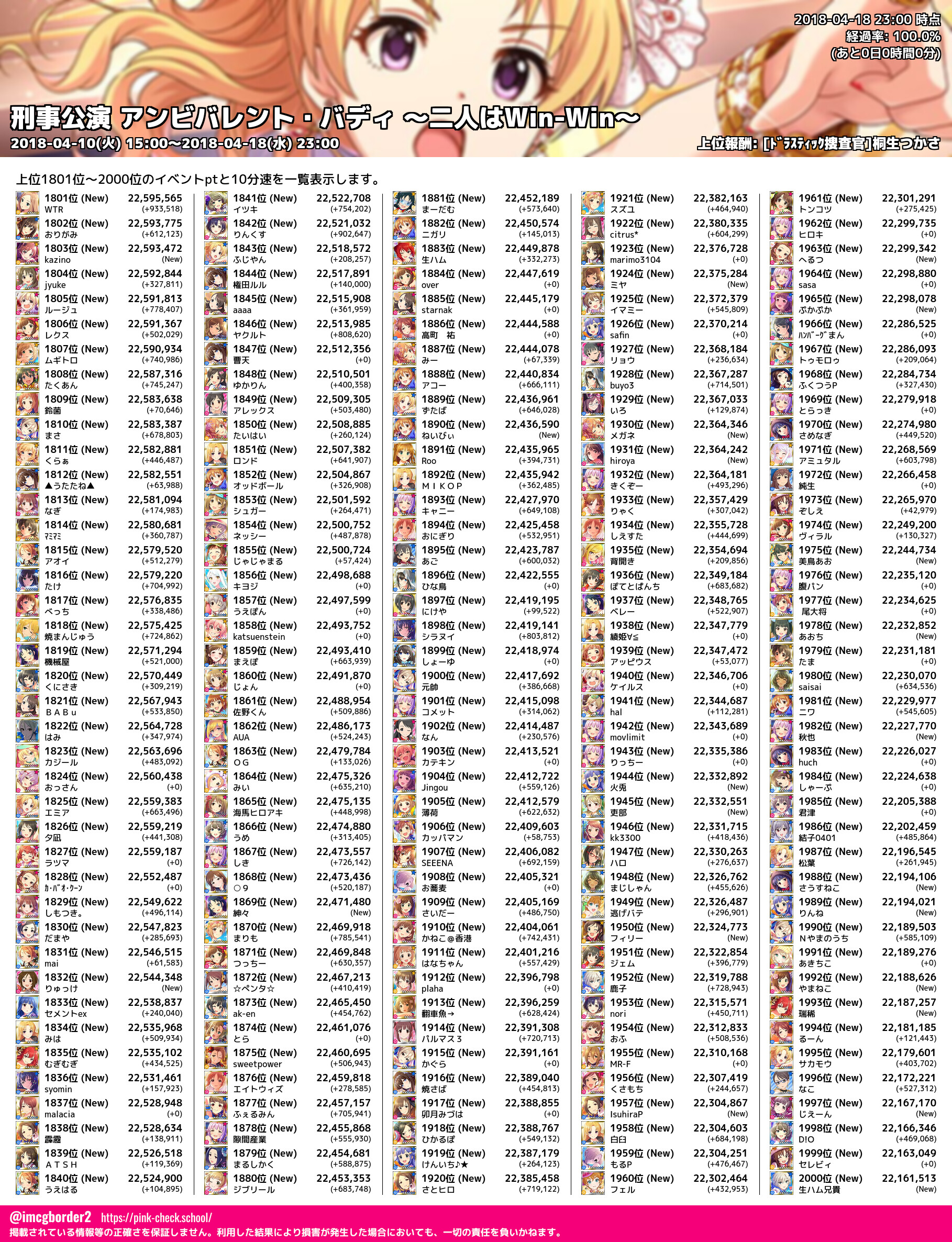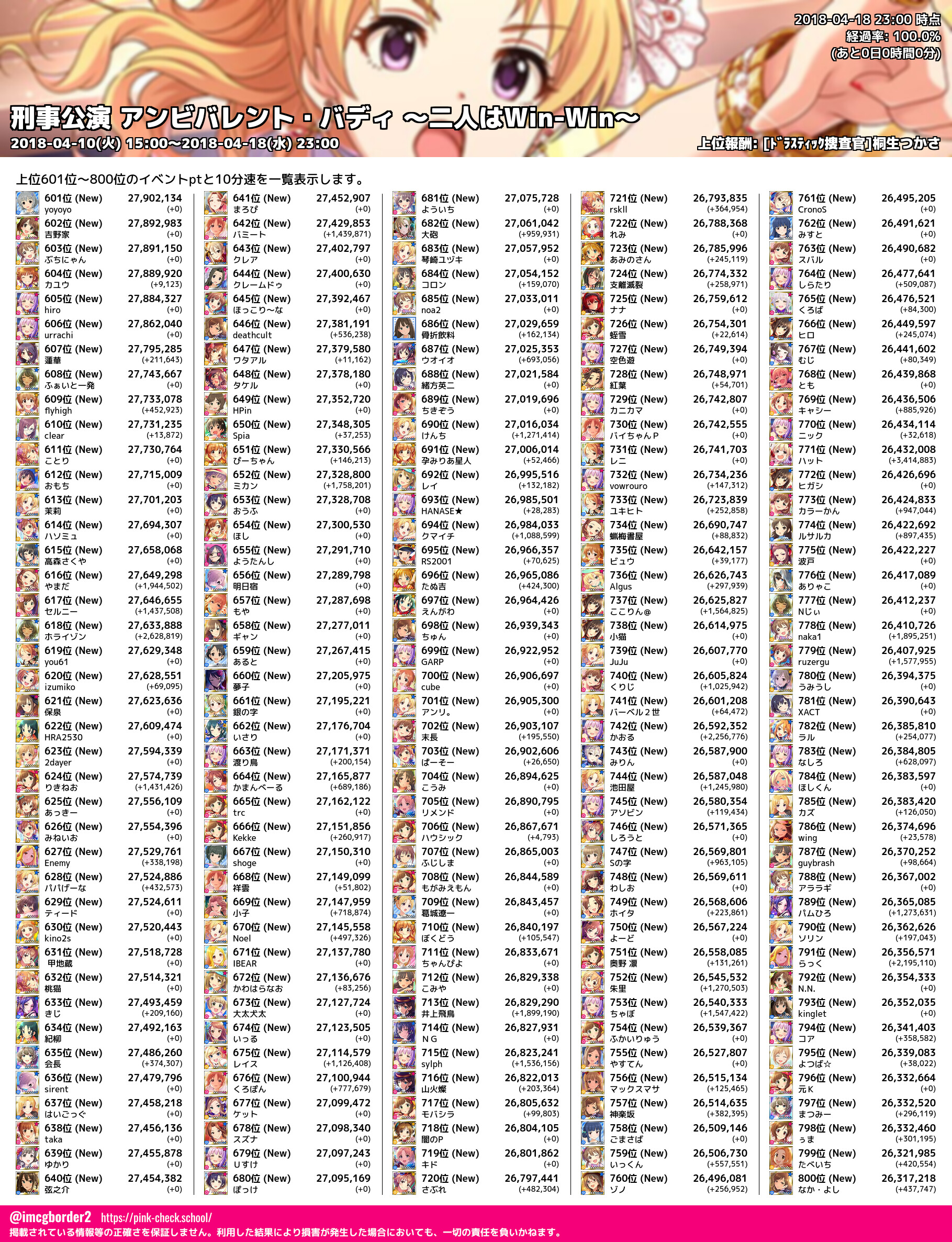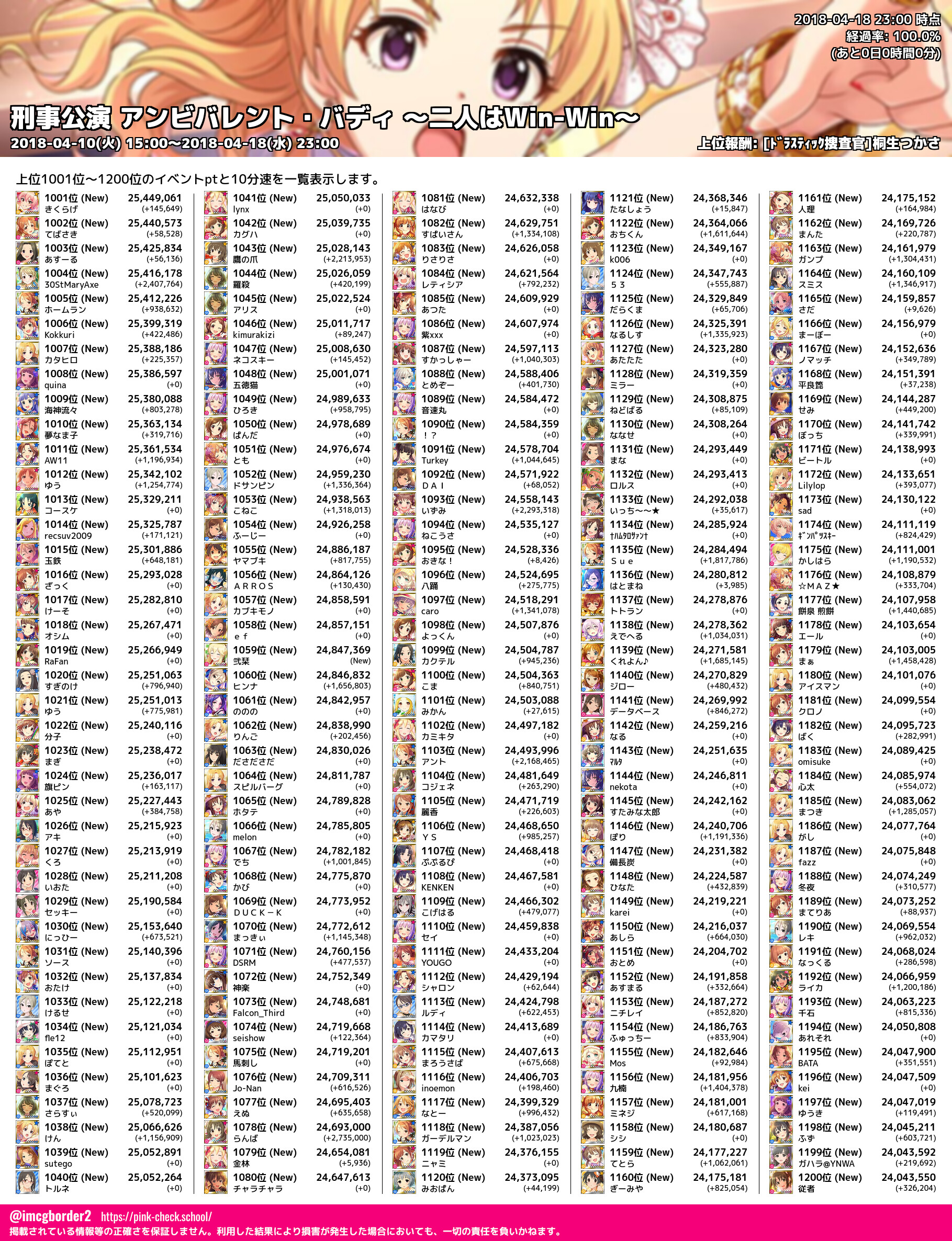 上位プロデューサースコア (2018-04-18 23:00 時点)