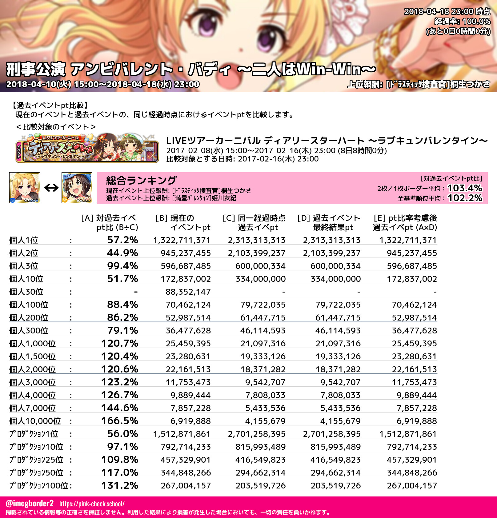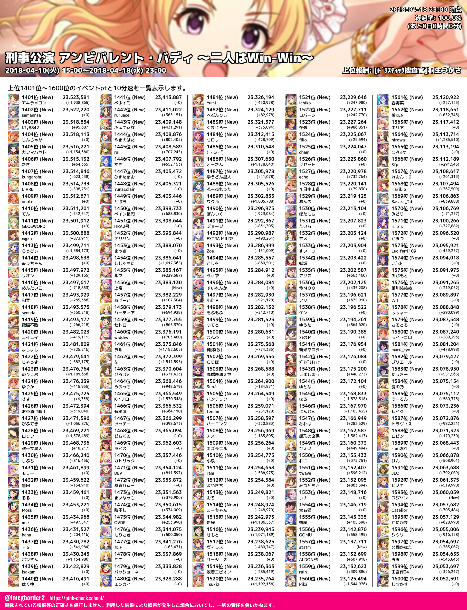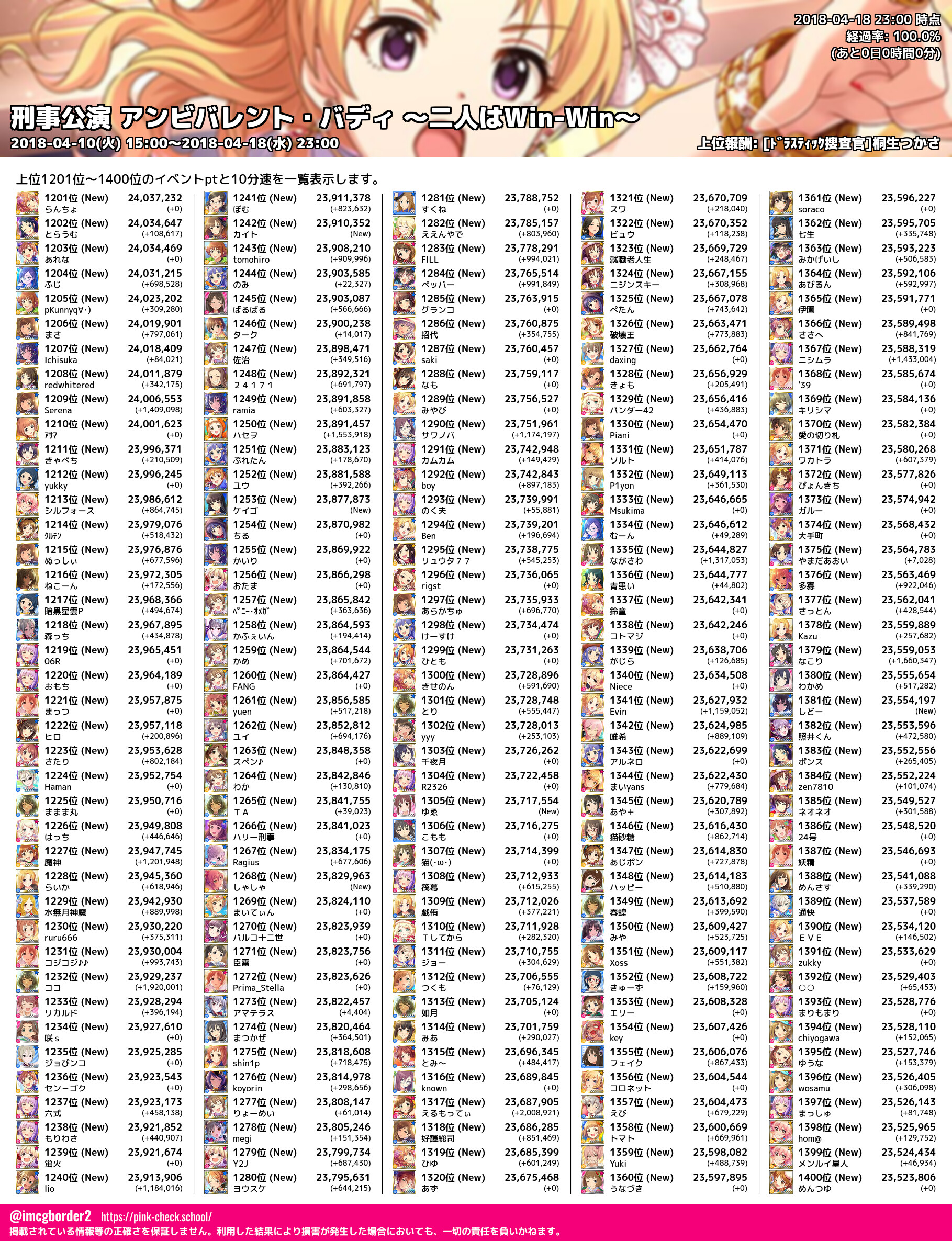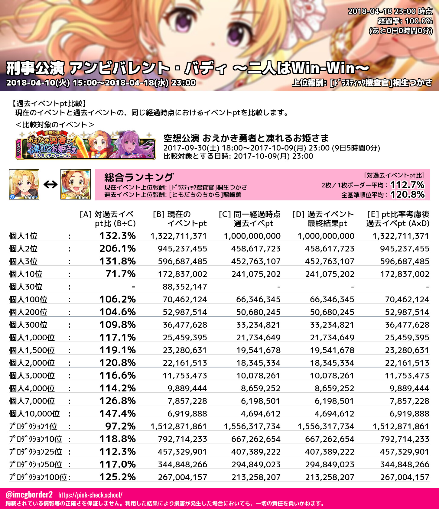 上位プロデューサースコア (2018-04-18 23:00 時点)