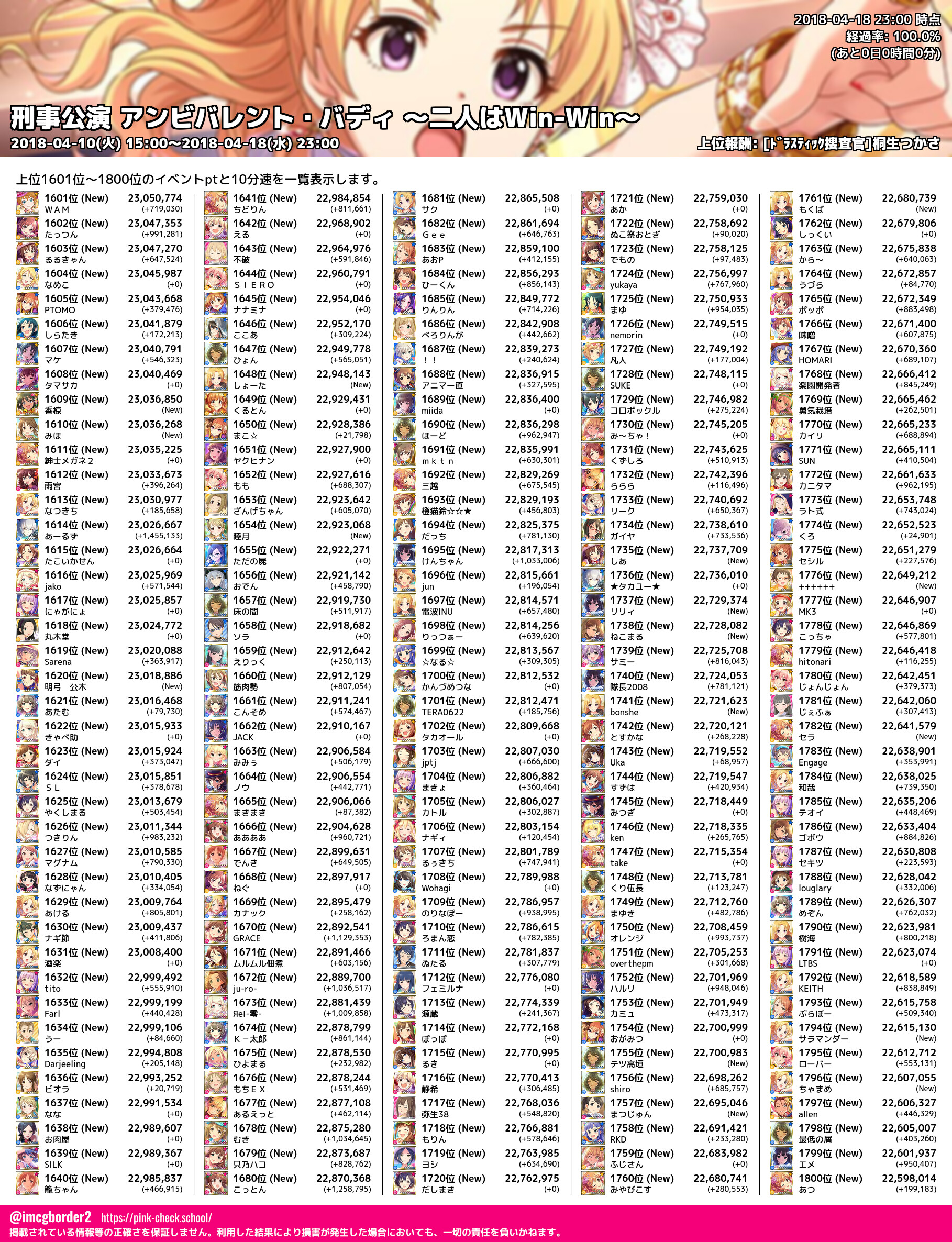 | 開催期間 | 2018-04-10(火) 15:00~2018-04-18(水) 23:00 |