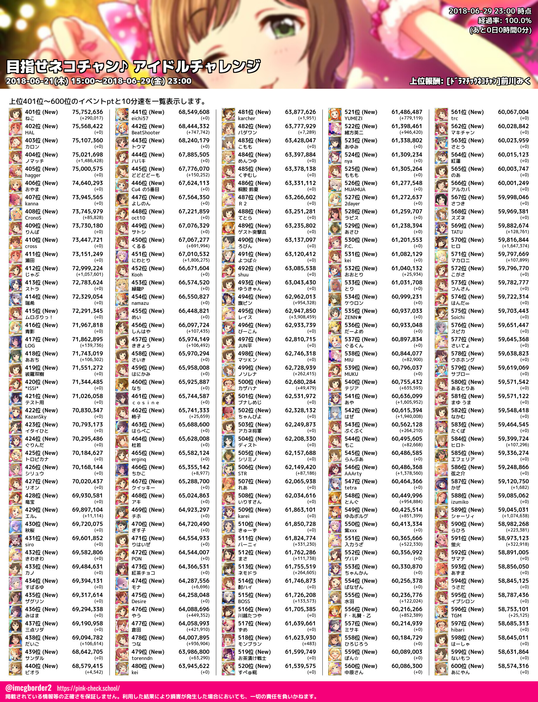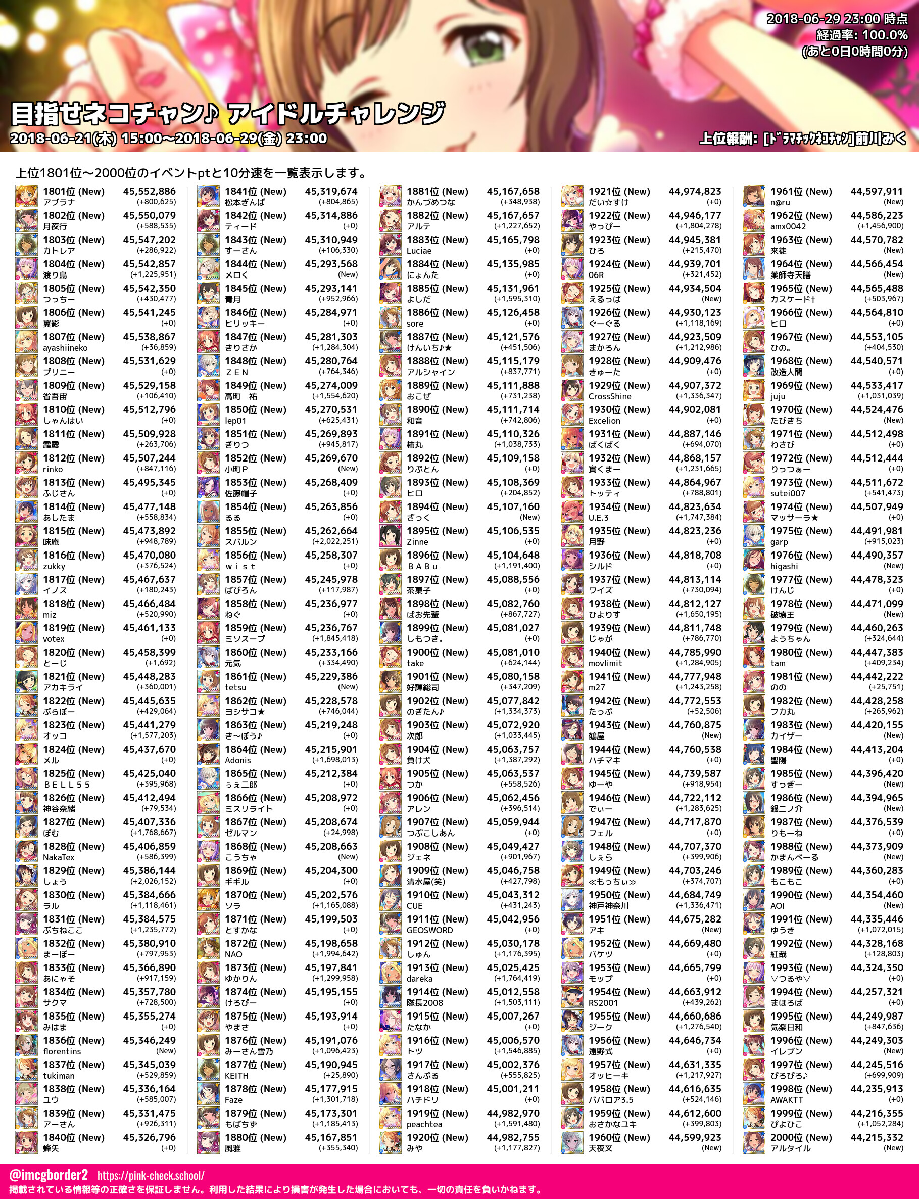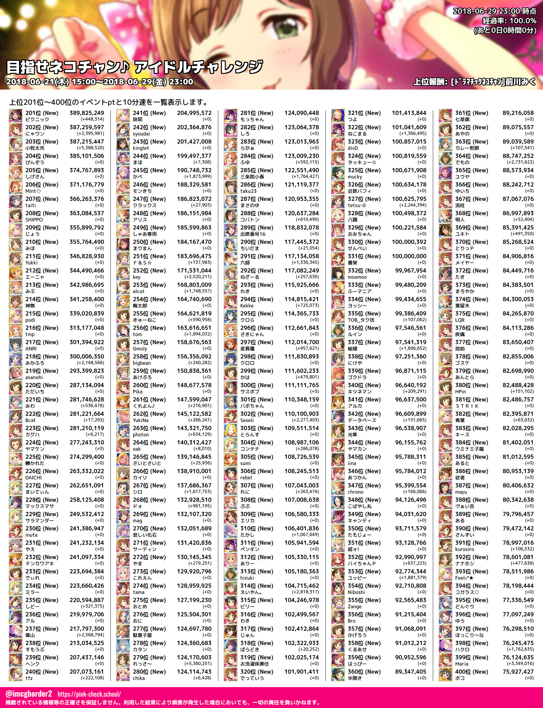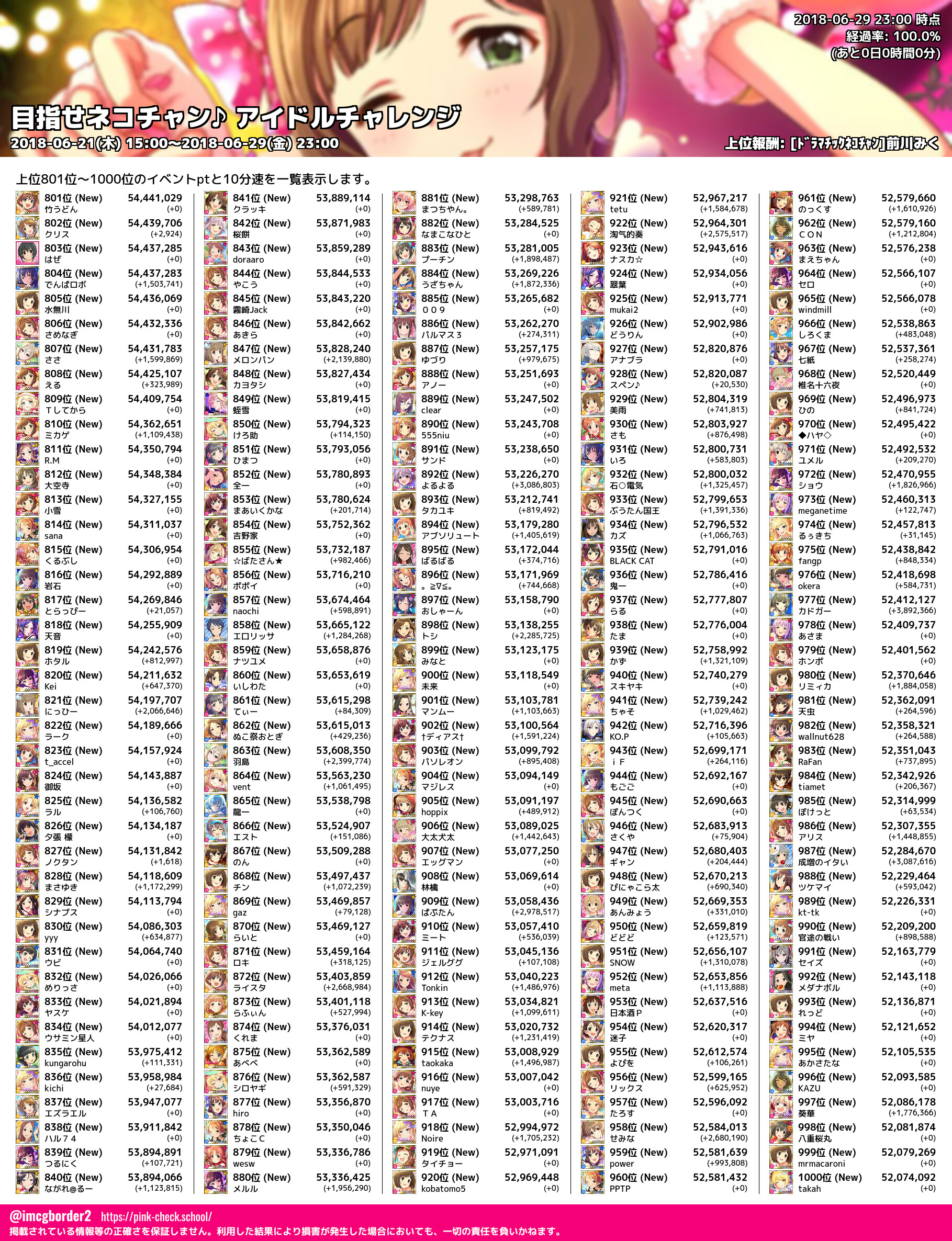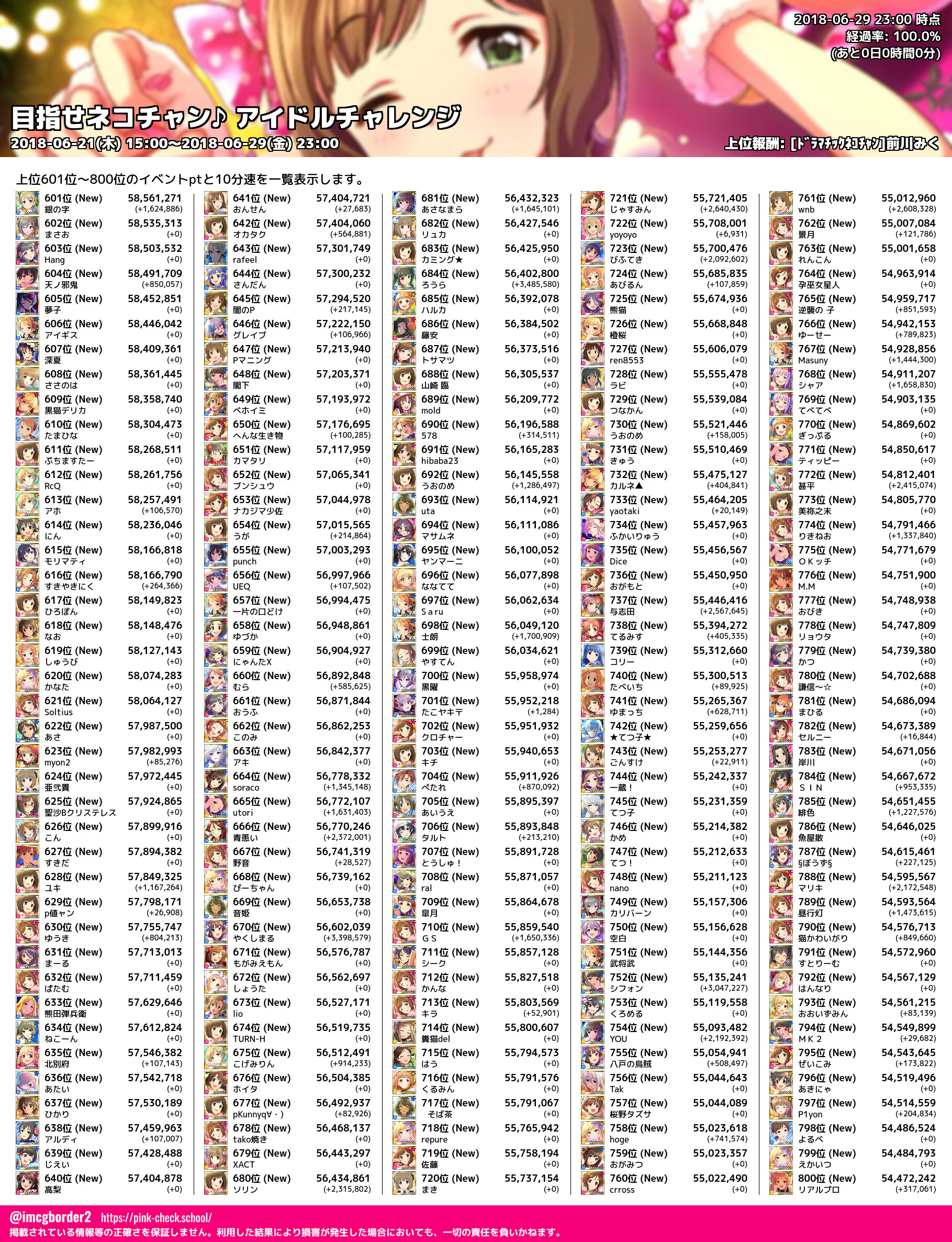 上位プロデューサースコア (2018-06-29 23:00 時点)