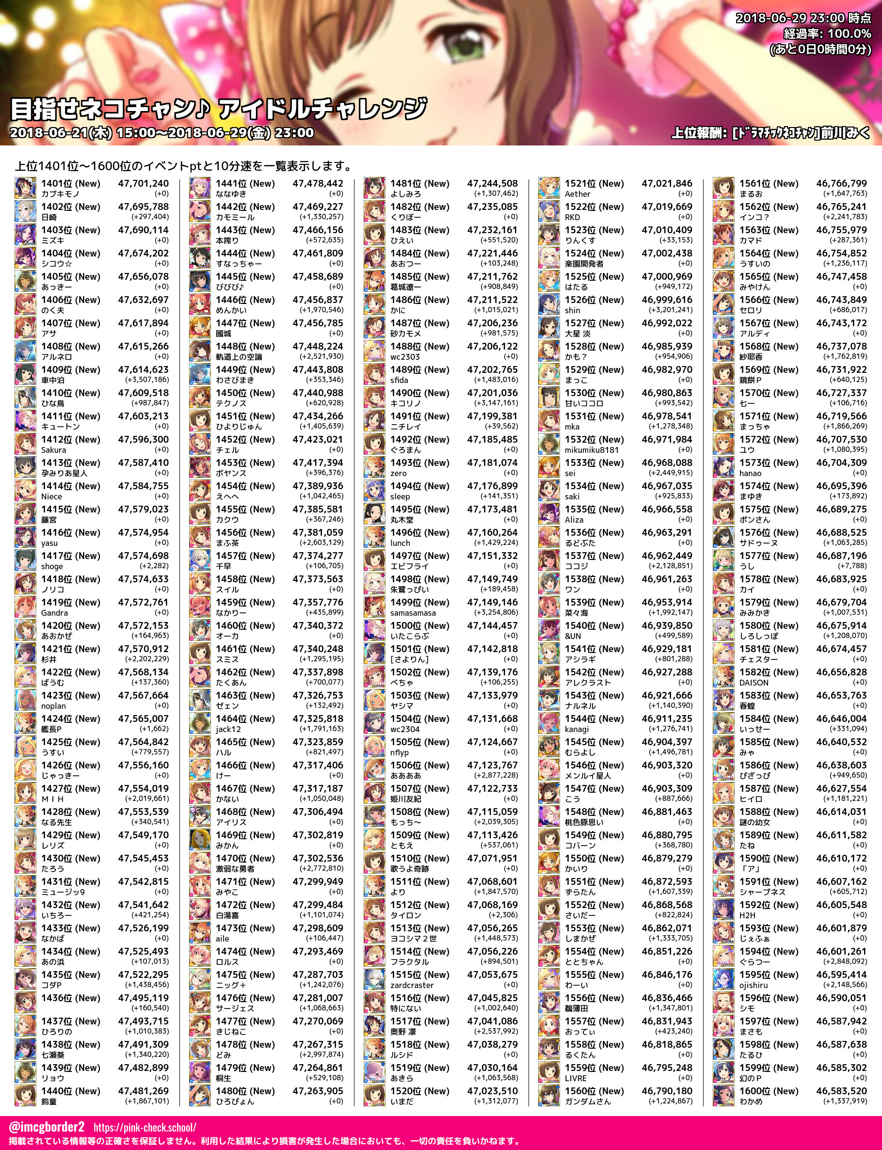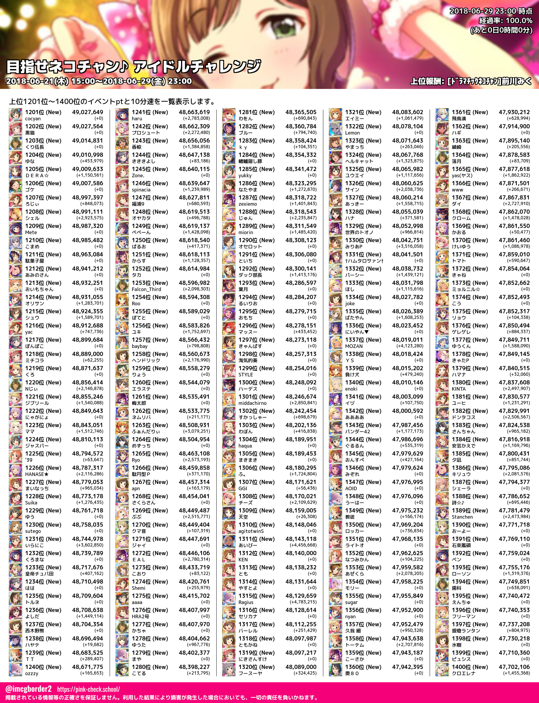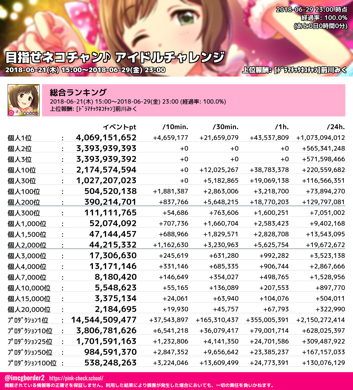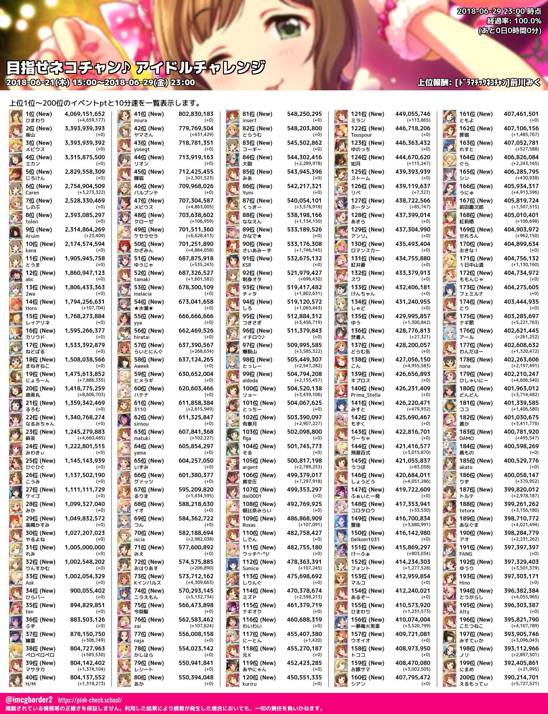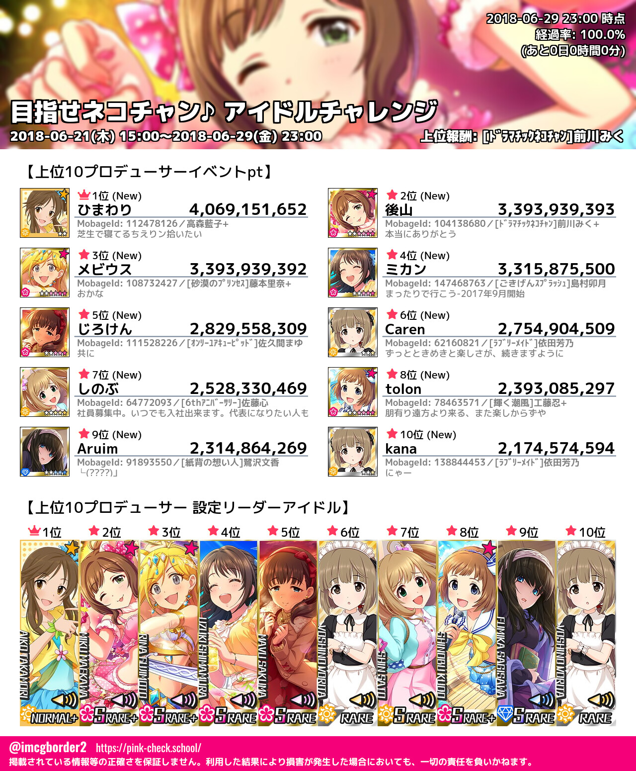 上位プロデューサースコア (2018-06-29 23:00 時点)