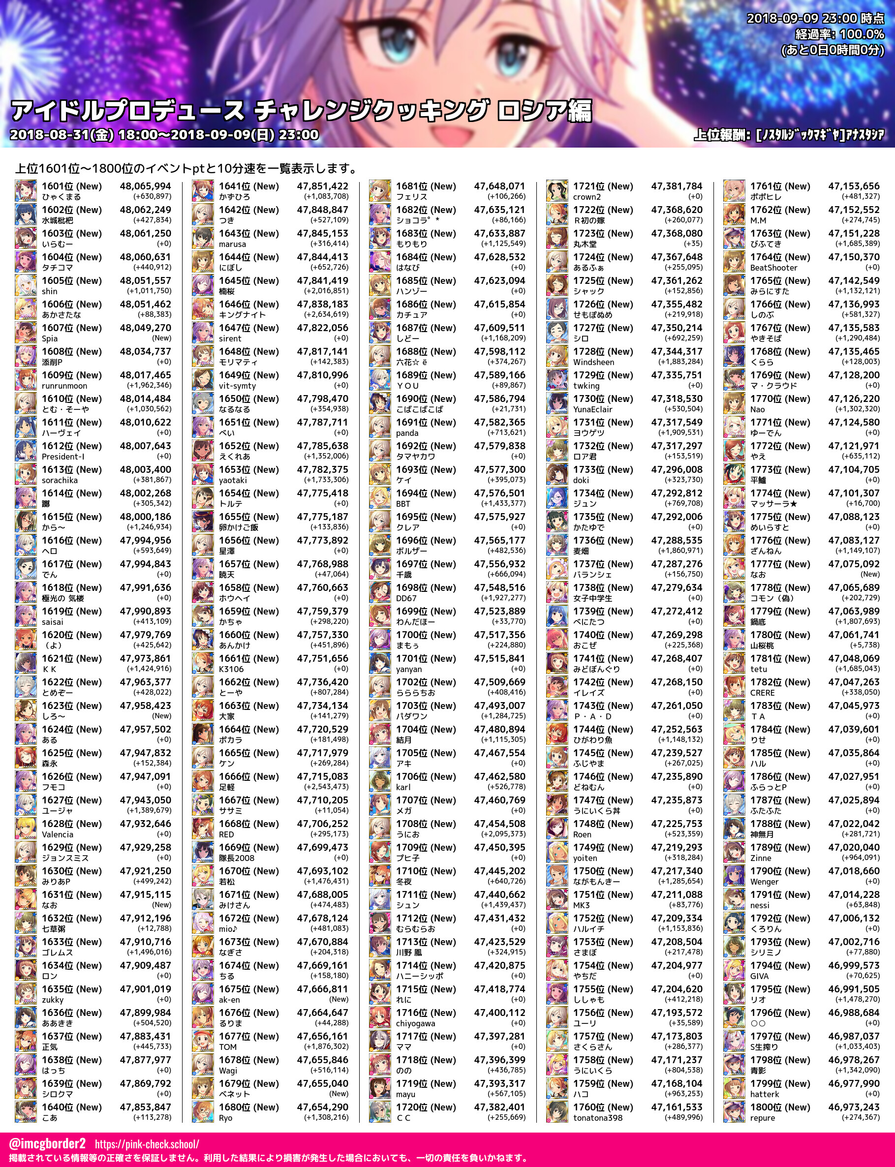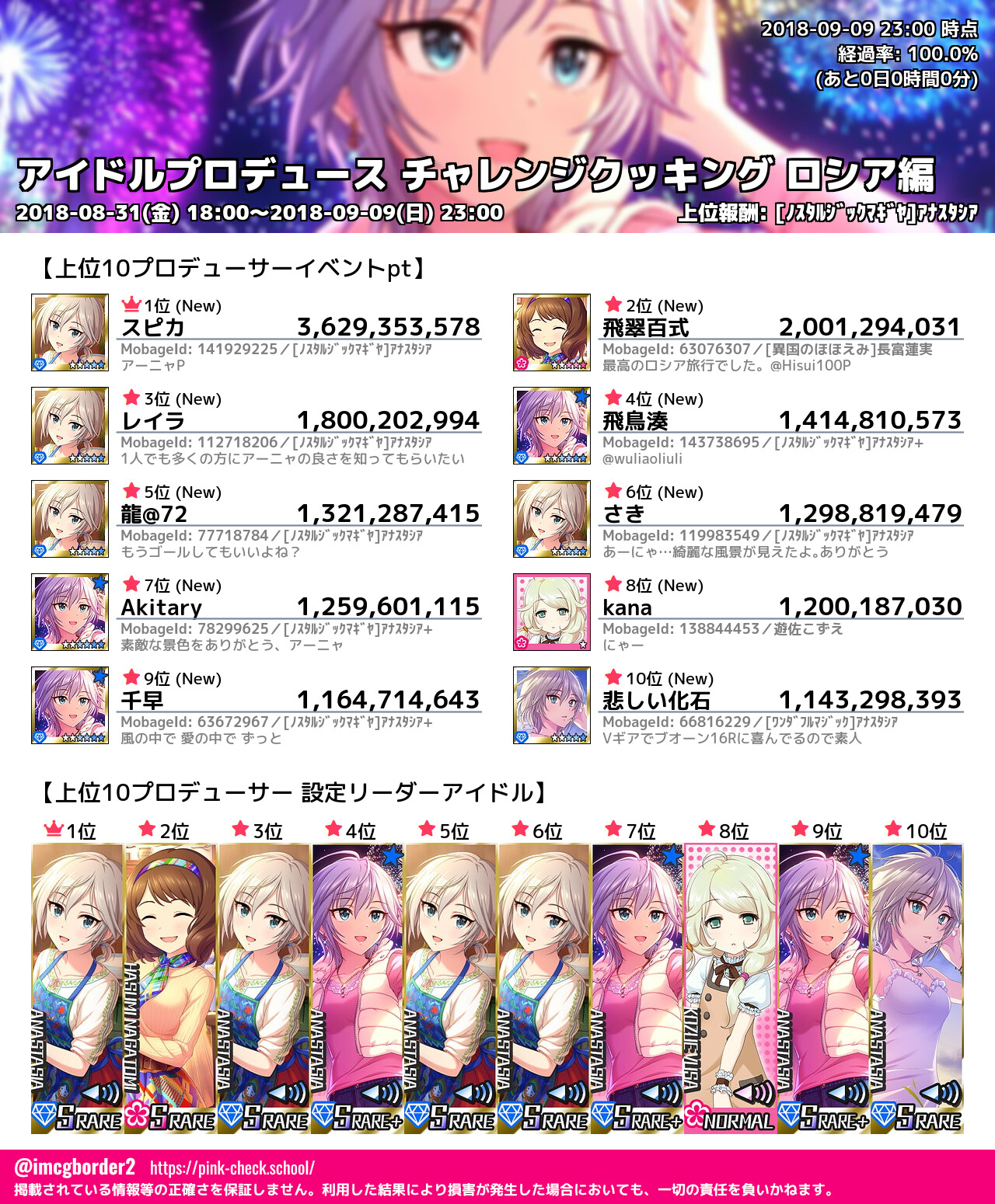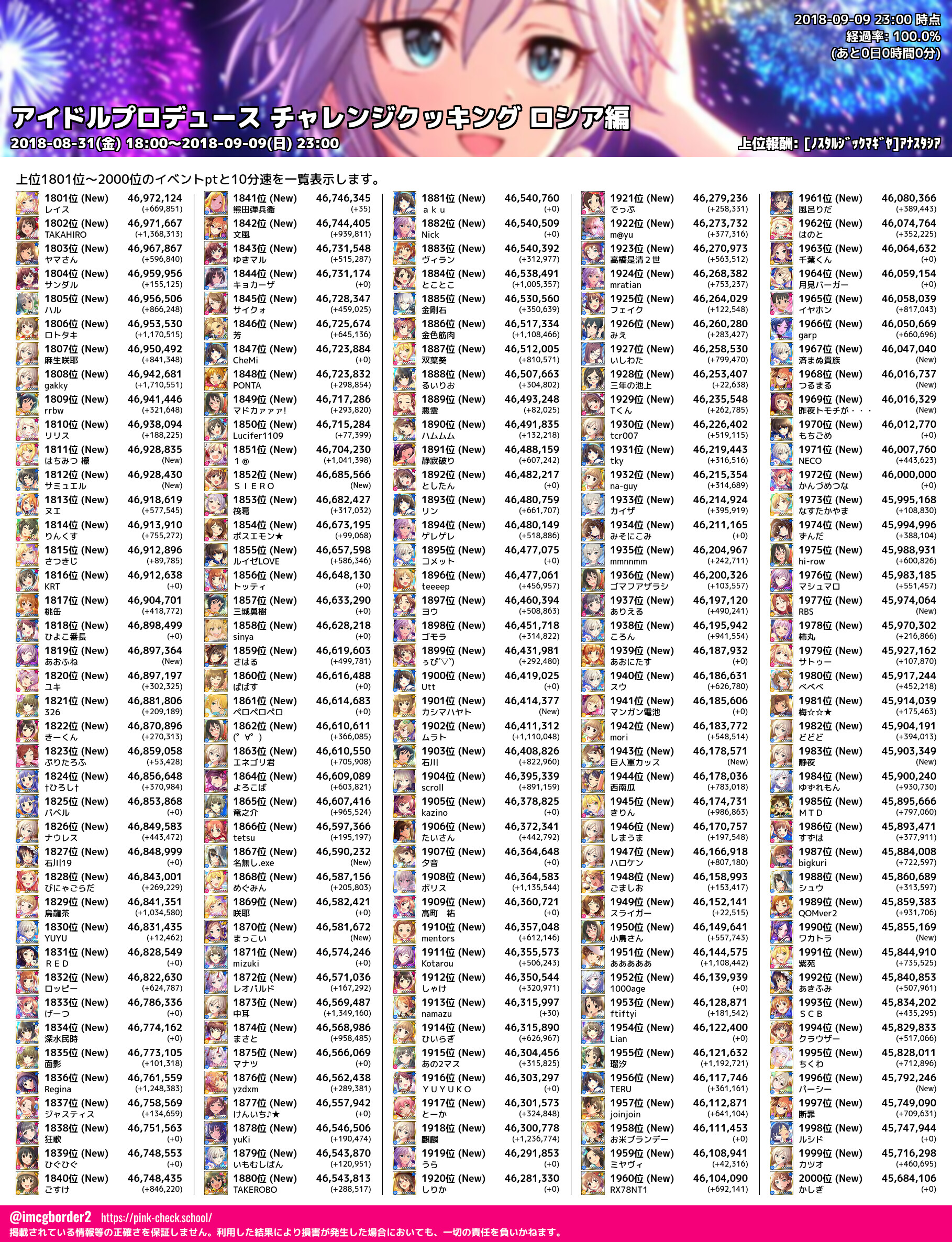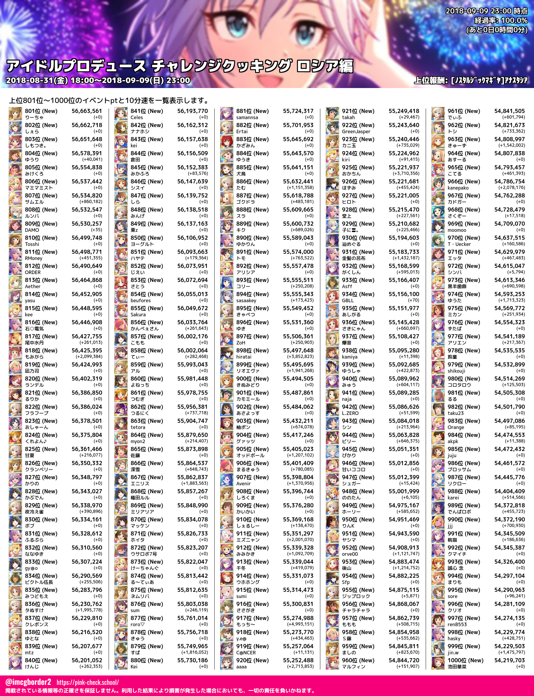 上位プロデューサースコア (2018-09-09 23:00 時点)