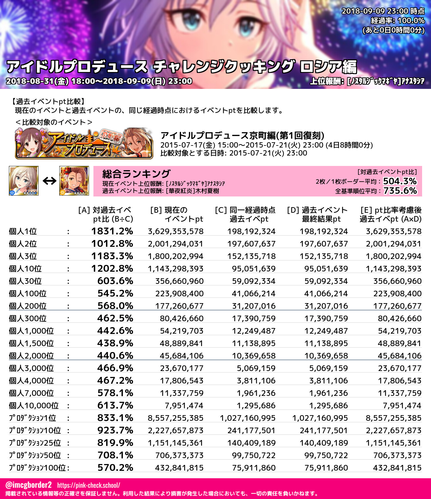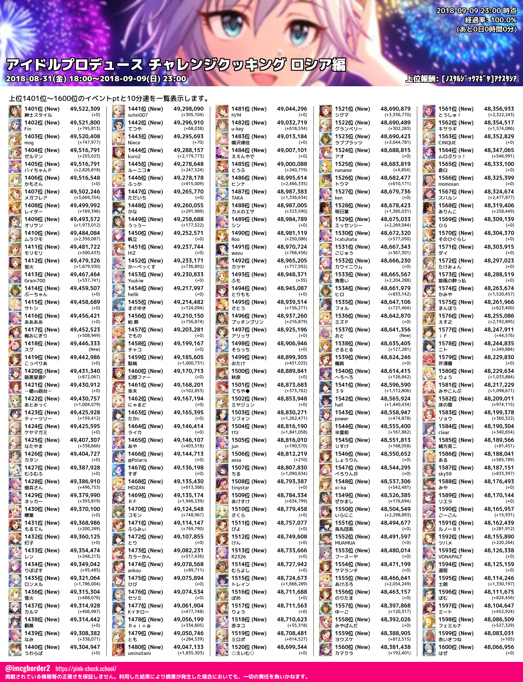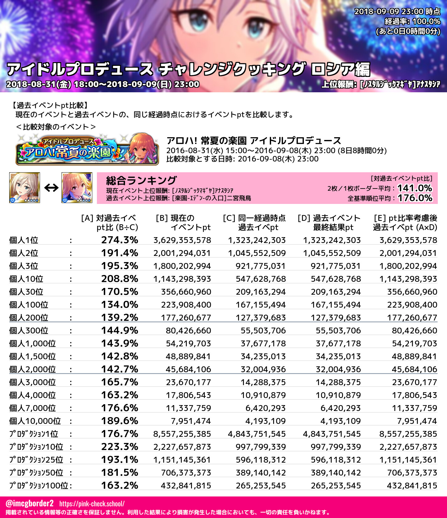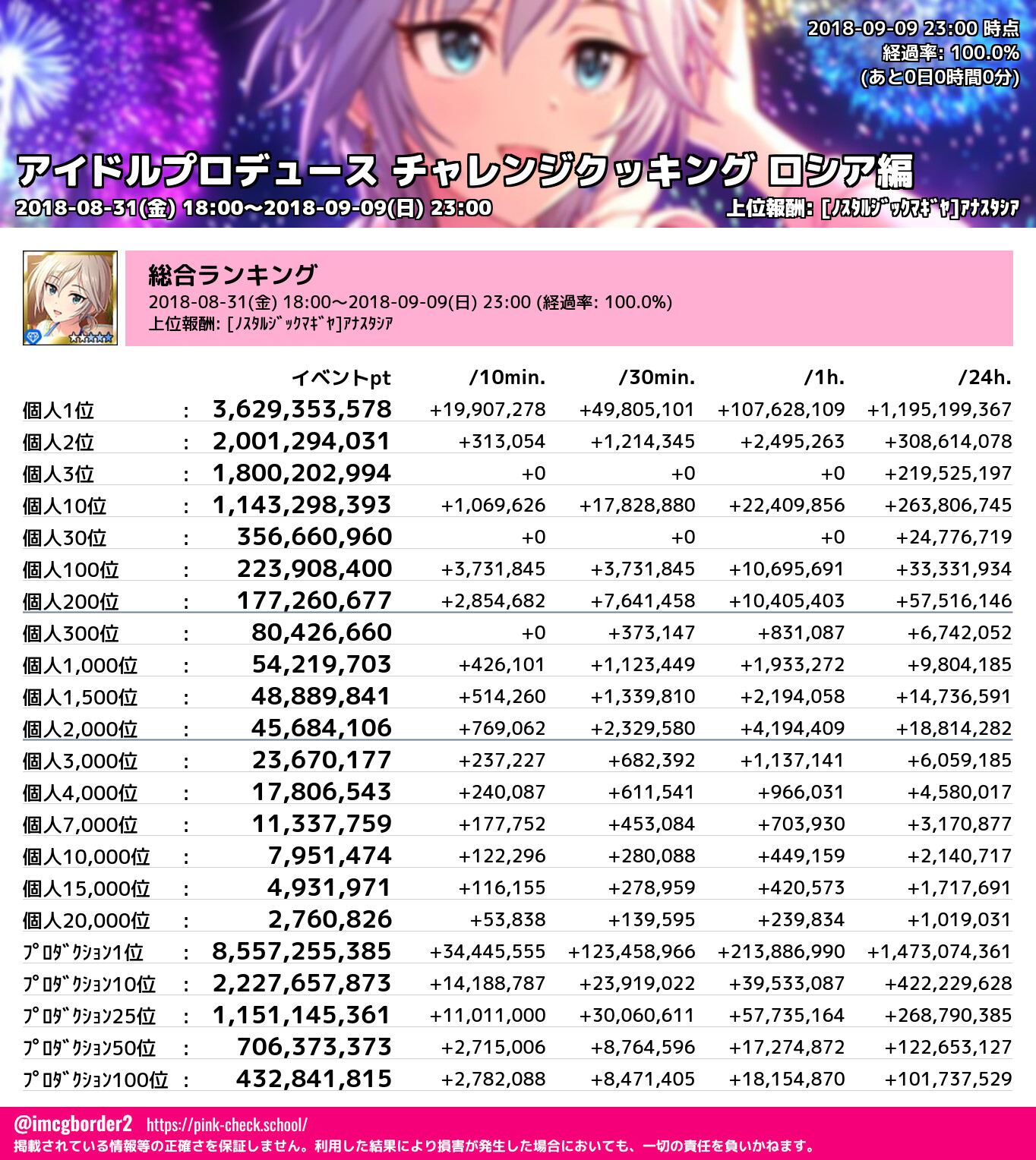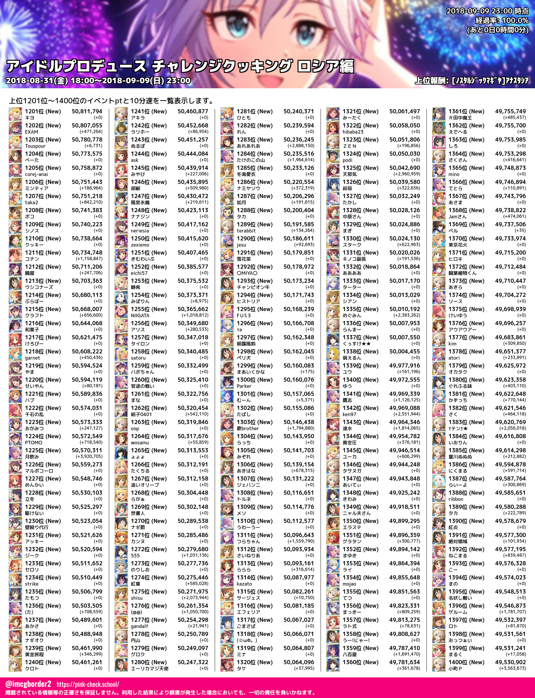 上位プロデューサースコア (2018-09-09 23:00 時点)