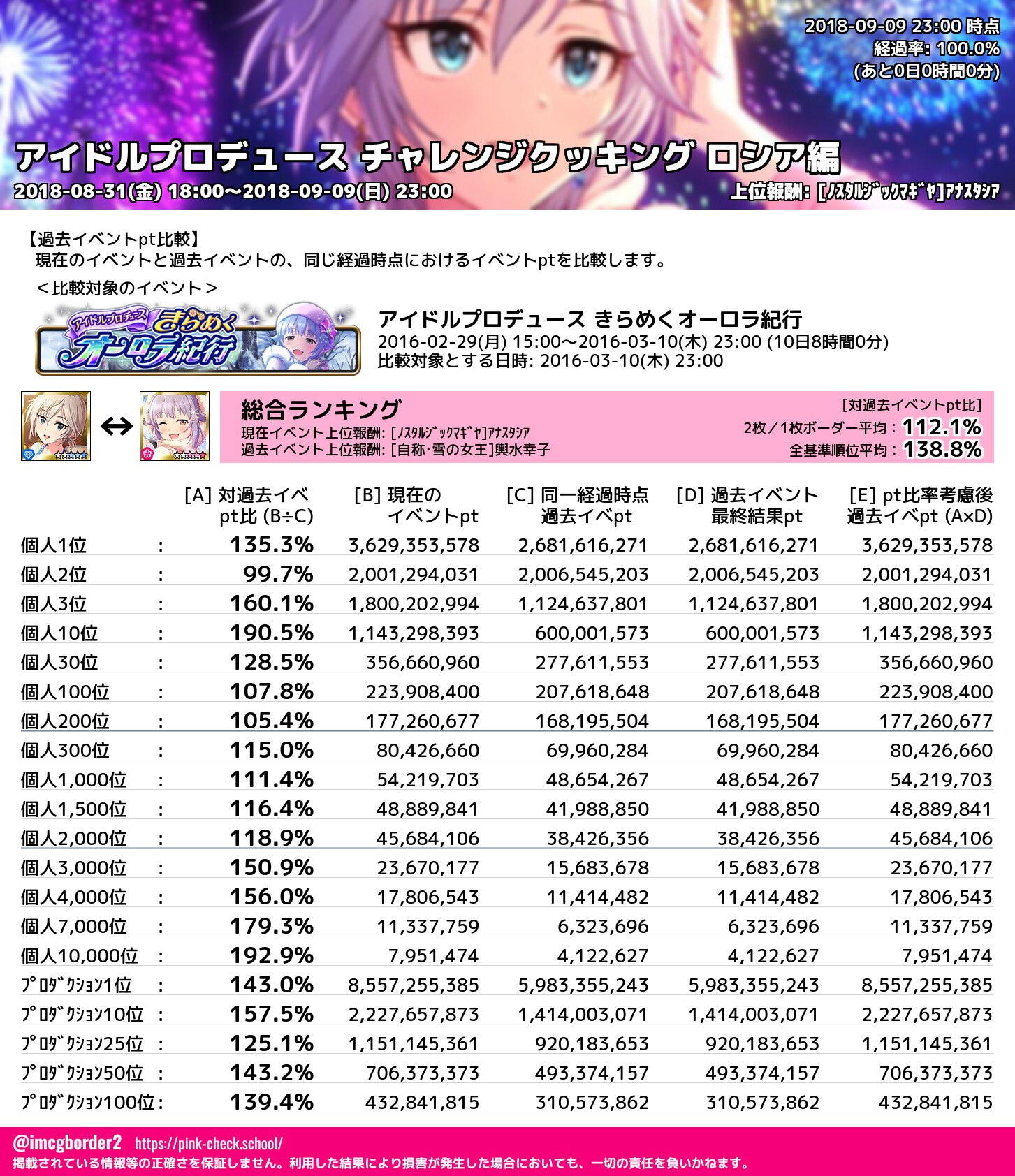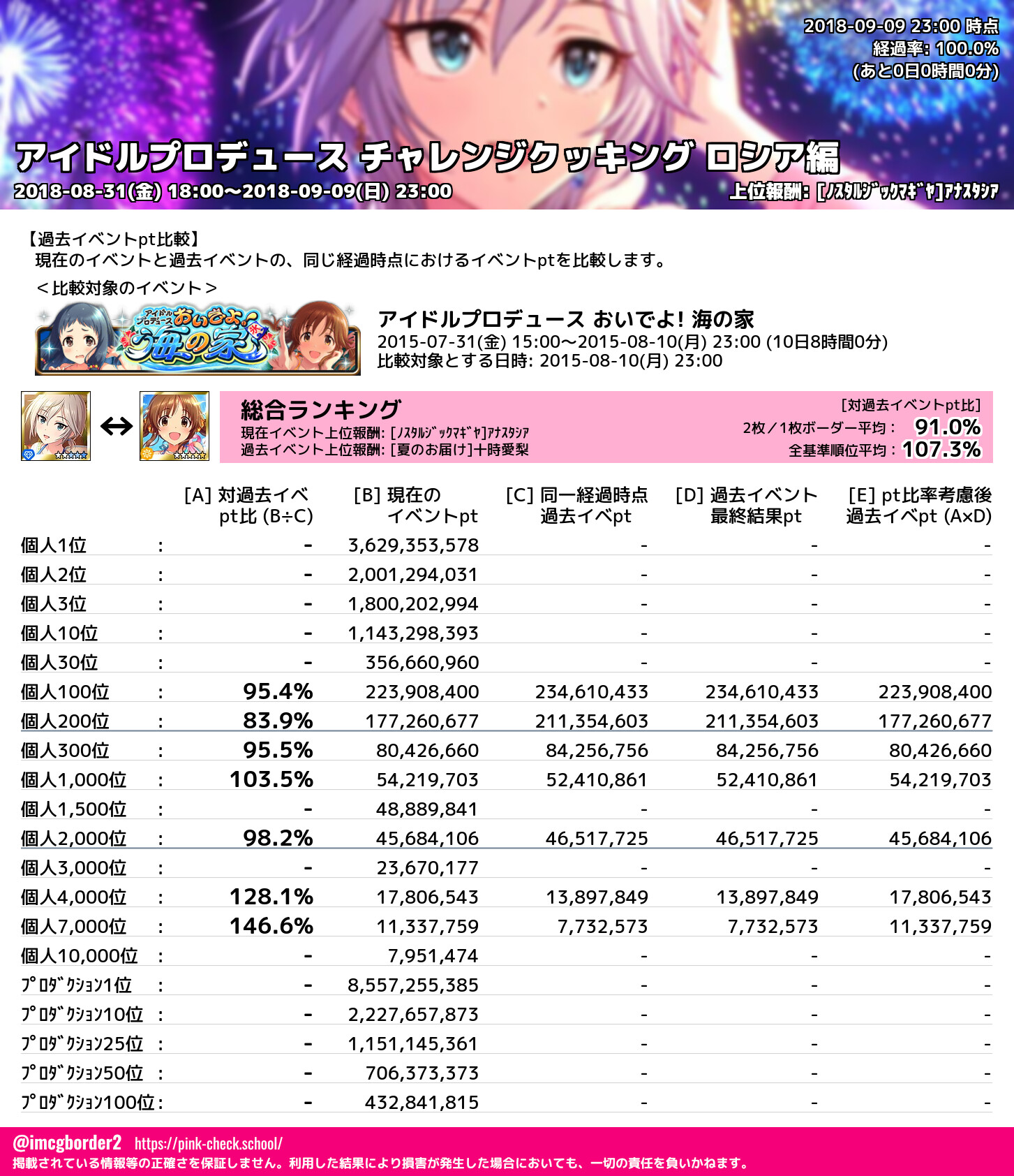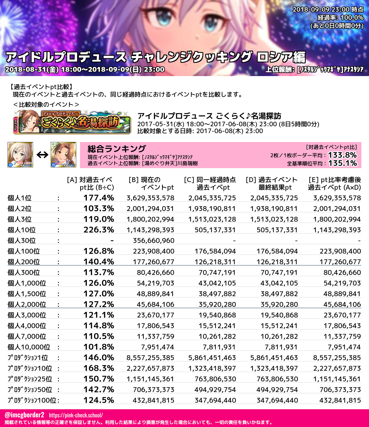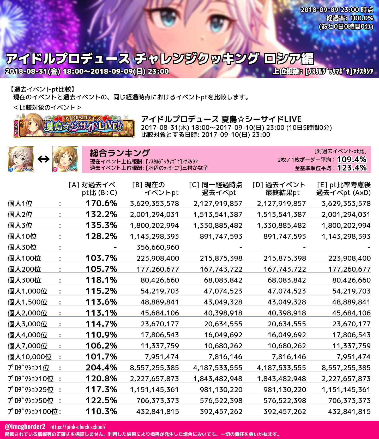 上位プロデューサースコア (2018-09-09 23:00 時点)