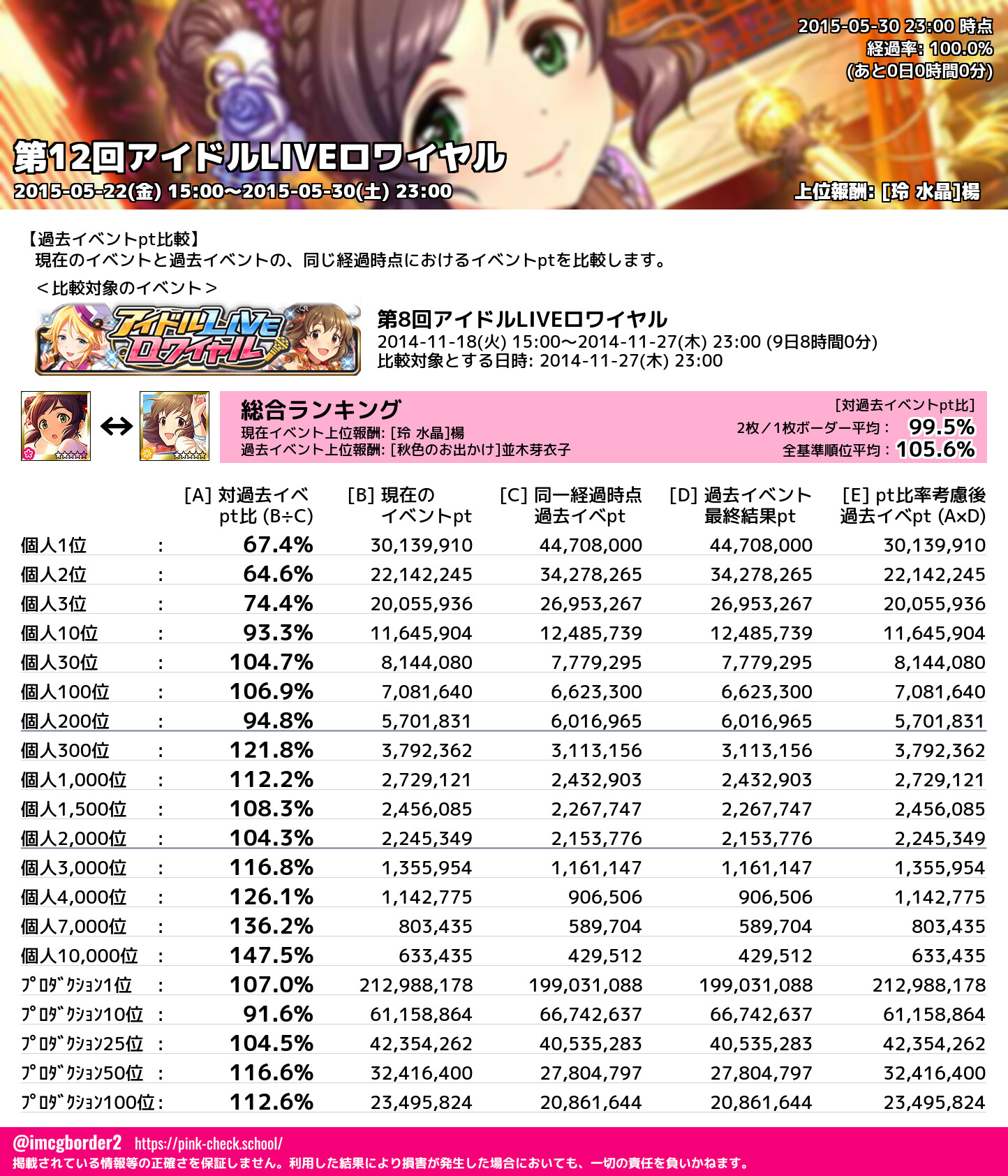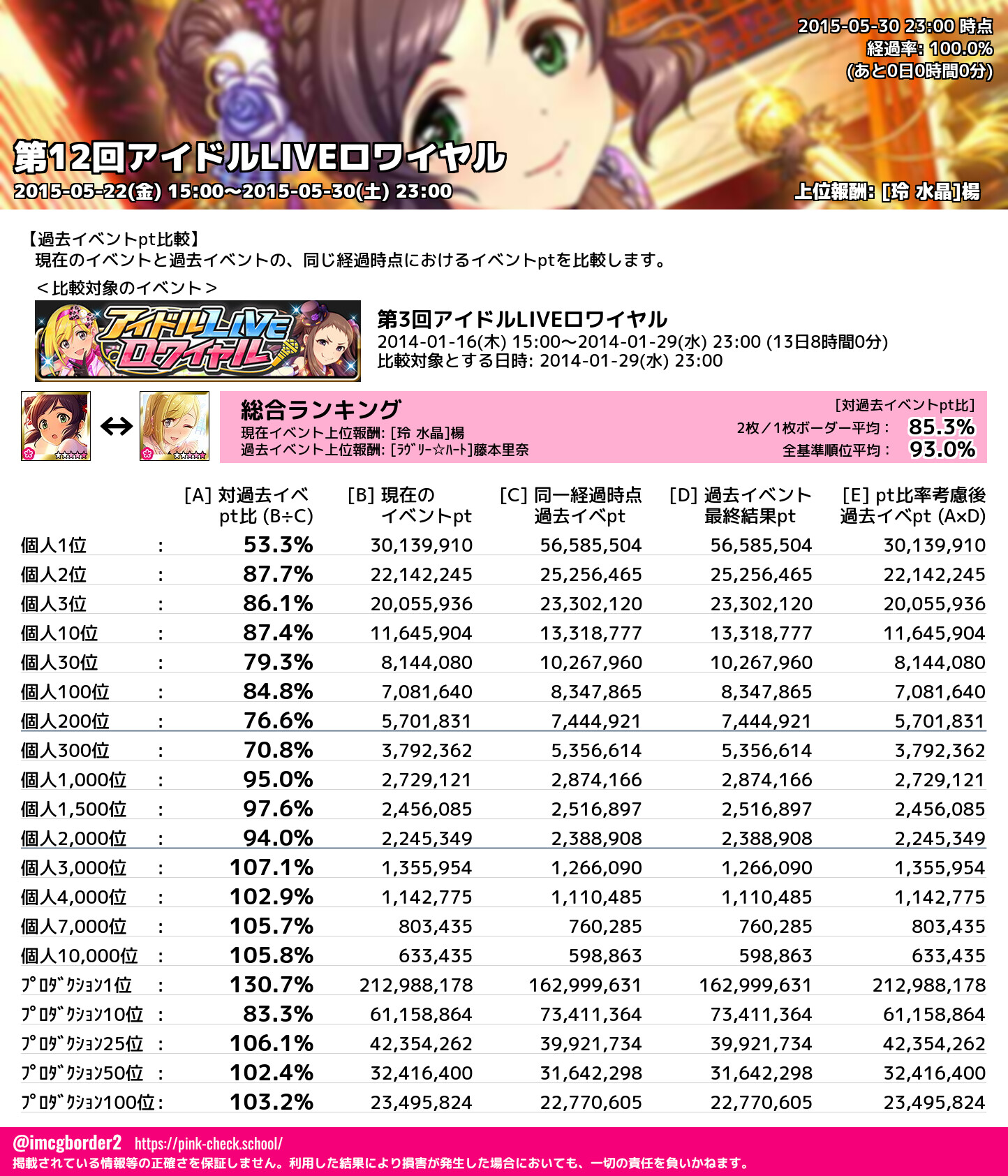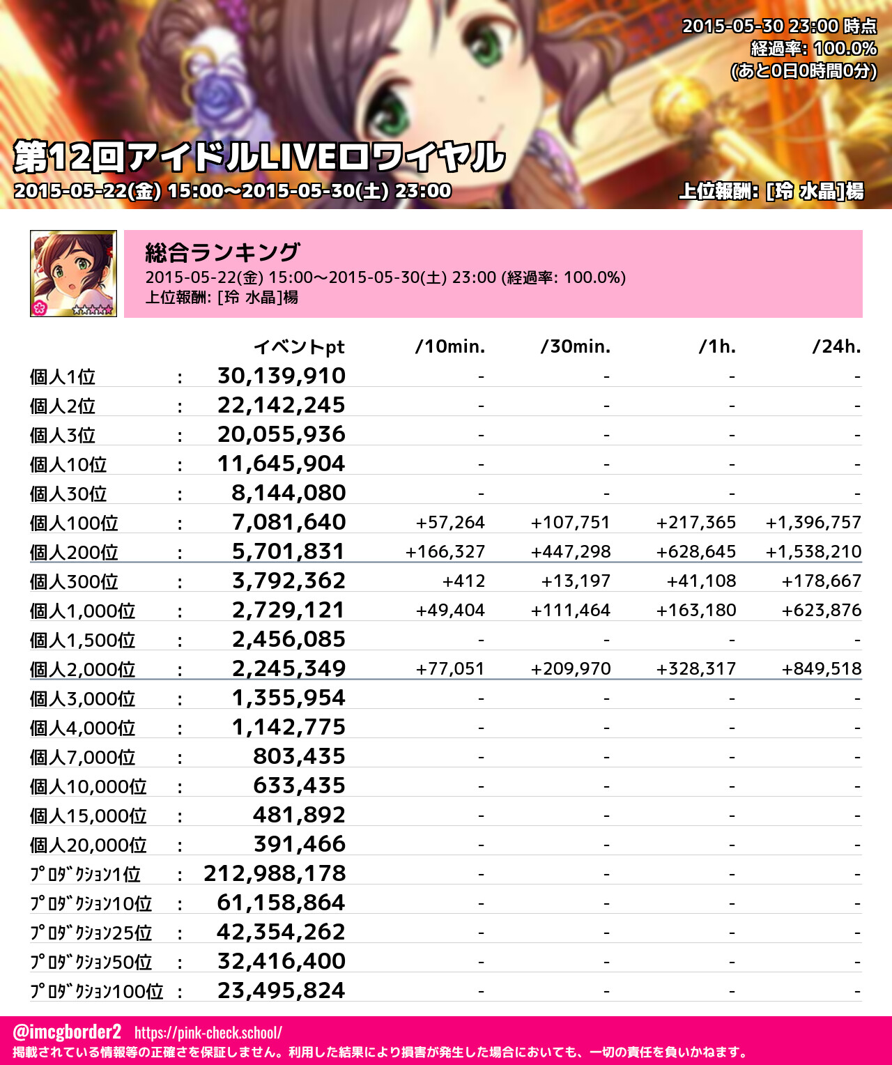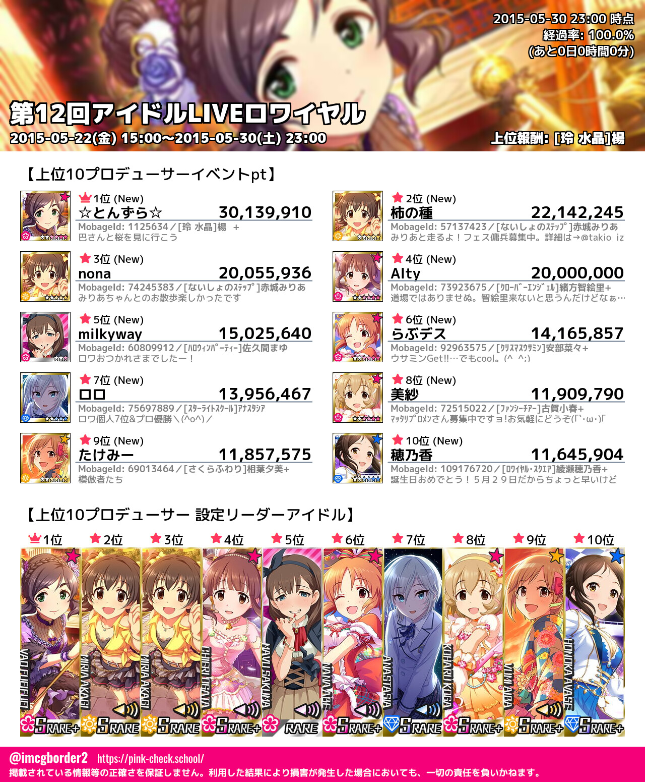 上位プロデューサースコア (2015-05-30 23:00 時点)